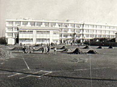 1977-1978頃の校舎の様子● まだ校庭も整地されておらず,プレハブも見られます。