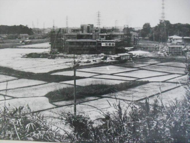 そして、昭和50年4月に開校するということで、工事が進められましたが、新校舎建築にあたっては、問題がたくさんあったため、工事は大幅におくれてしまいました。その原因のひとつは、学校予定地が水田であったためで、地ばんがゆるく土台をきずくのは大変でした。もともとこの地は、雑草におおわれた泥深い水田で、田下駄をはかないと入れないようなところでした。