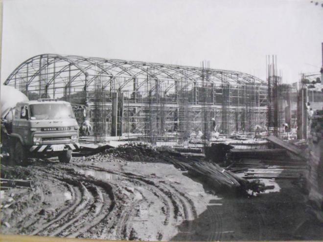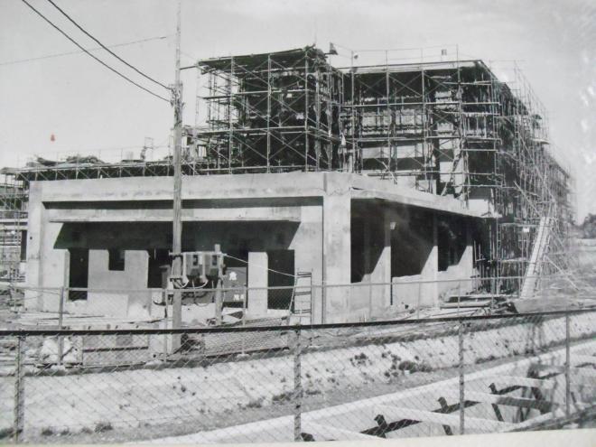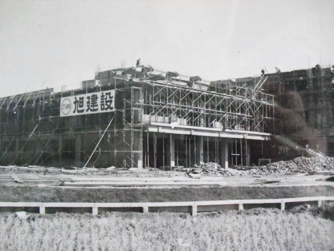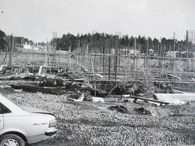 写真:建設中の体育館(完成は昭和51年3月)