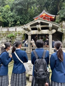 3泊4日の奈良・京都での修学旅行に行ってきました。1日目学校から奈良に向かい、法隆寺で学級での散策をしました。ガイドさんにいろいろなことを教わりました。夜は宿「よしだや」で学年の仲間とゆっくり過ごしました。2、3日目は班活動をしました。奈良の東大寺や平城宮、京都の宇治や金閣寺、嵐山いろいろな場所で各班のテーマを探求しました。夜は宿「平新」で体験活動やレク大会を行い、思い出深い経験をしました。4日目は学年で能を体験し、清水寺の見学をしてから千葉まで帰ってきました。このあとも、旅ノートに学習をまとめたり、後輩にプレゼンをしたりと大忙しですが、頑張りましょう。
