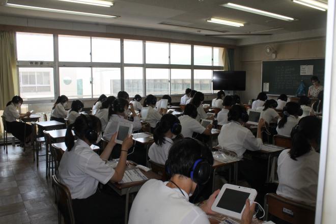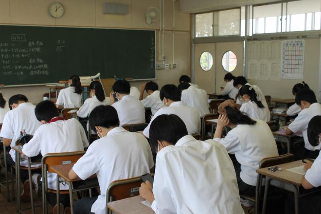 8月27日(土)、GTEC、進路希望調査を行いました。GTECは、英語のスピーキング・リーディング・ライティング・リスニングを行う試験です。スピーキングでは、タブレットを利用しタブレットに自分の音声を入力します。生徒は、一生懸命取り組んでいました。