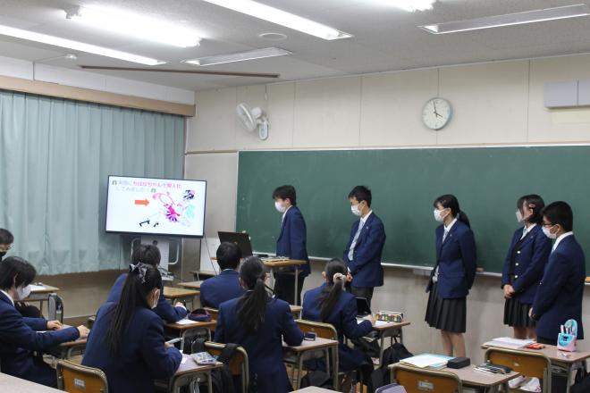 11月28日(火)に、1学年総合探究で行われている自己の興味関心と千葉市を結び付け、千葉市への提言を行うための課題意識を培う。また、課題意識に基づき、問いをつくる。「千葉市創生プロジェクト」についての全体発表班選出するため講師の方々をお呼びし、全体発表のグループ決めが行われました。どの班もしっかりと調査や考察がしっかりとまとまっており、スライドもきれいに作成していました。生徒一人一人が頑張った証拠だと思います。選ばれなかった班もありますがいい経験になったと思います。選出された班は全体発表に向け頑張ってください。