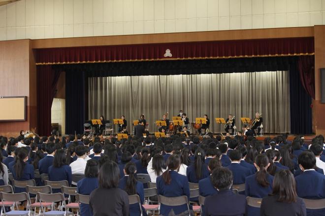 11月29日(火)に、本校体育館にて千葉交響楽団による演奏が行われました。感染予防予防として、午前の部・午後の部に分けて演奏を聴きました。生でこのような音楽を聞くのはなかなか機会がないことなので生徒は感銘を受けていました。やはり音楽の力というのは凄いと実感した1日でした。