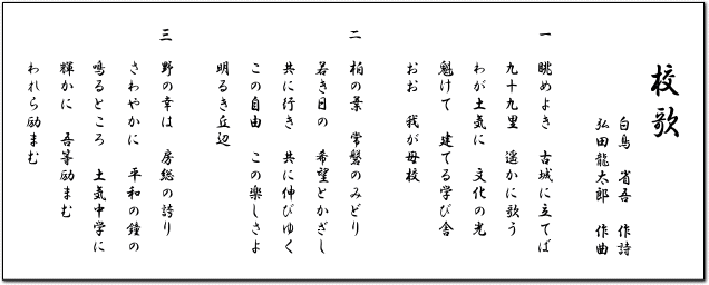「頭に確かな学力を 心に思いやりと礼節を 体に粘り強い意志を」