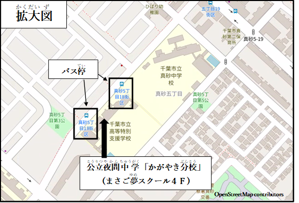 1. バス(千葉海浜交通)をご利用の場合 1番乗り場から 「5丁目経由 新検見川駅行き」に乗車 ⇒「真砂5丁目18街区」下車 徒歩1分