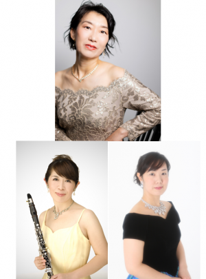 (上)山中和穂さん【ソプラノ歌手】、(左下)守屋和佳子さん【クラリネット奏者】、(右下)石井博子さん【ピアニスト】