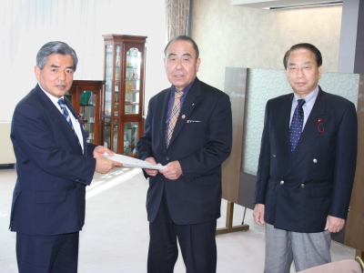委員長(写真中央)及び奥井憲興副委員長(写真右)から協議結果報告書が提出されました。