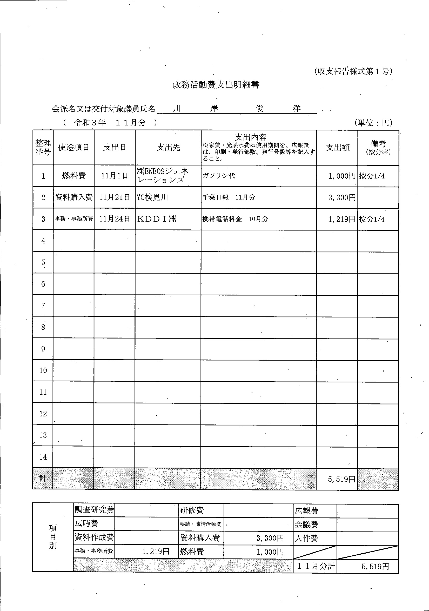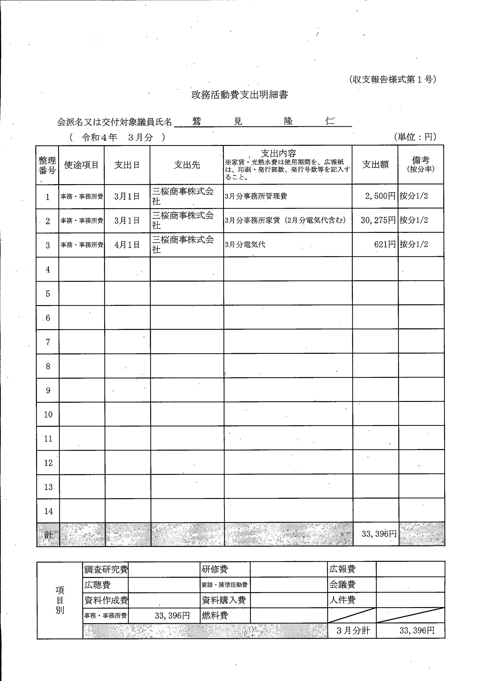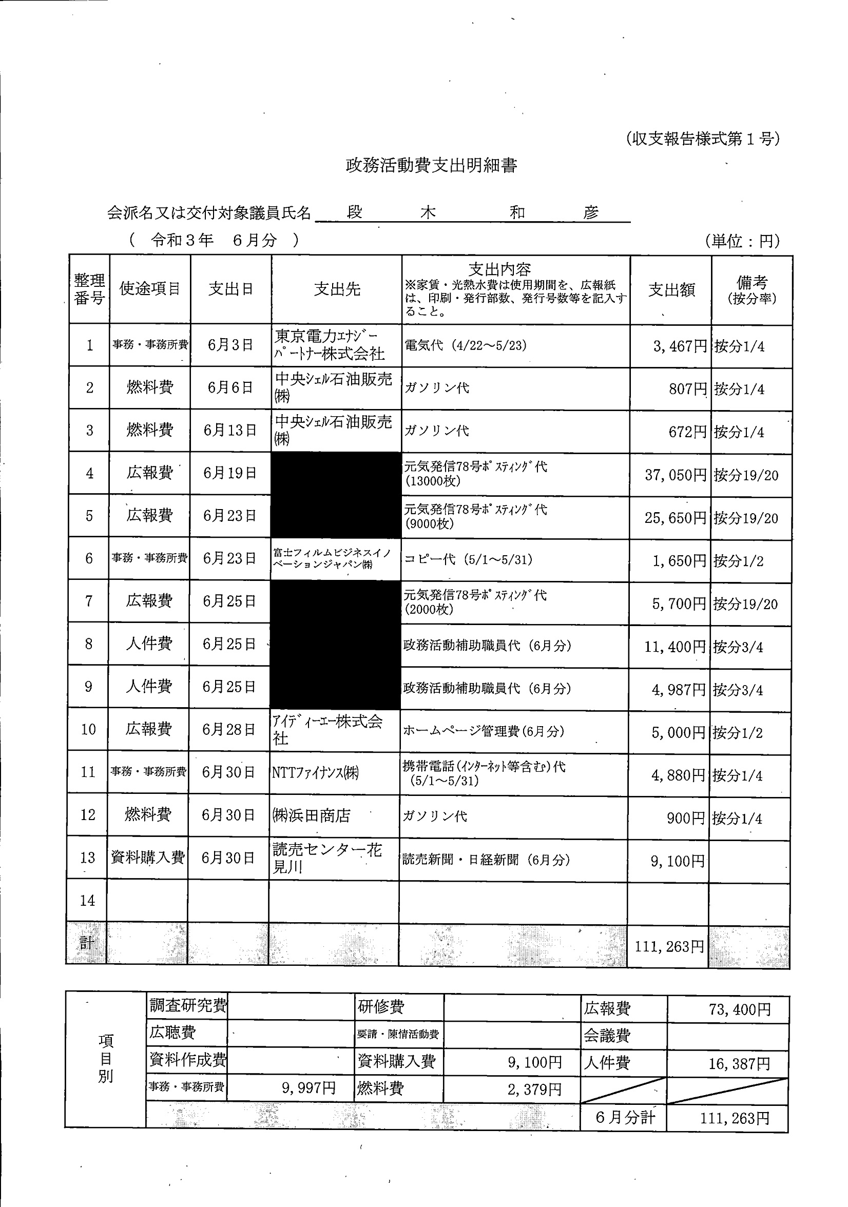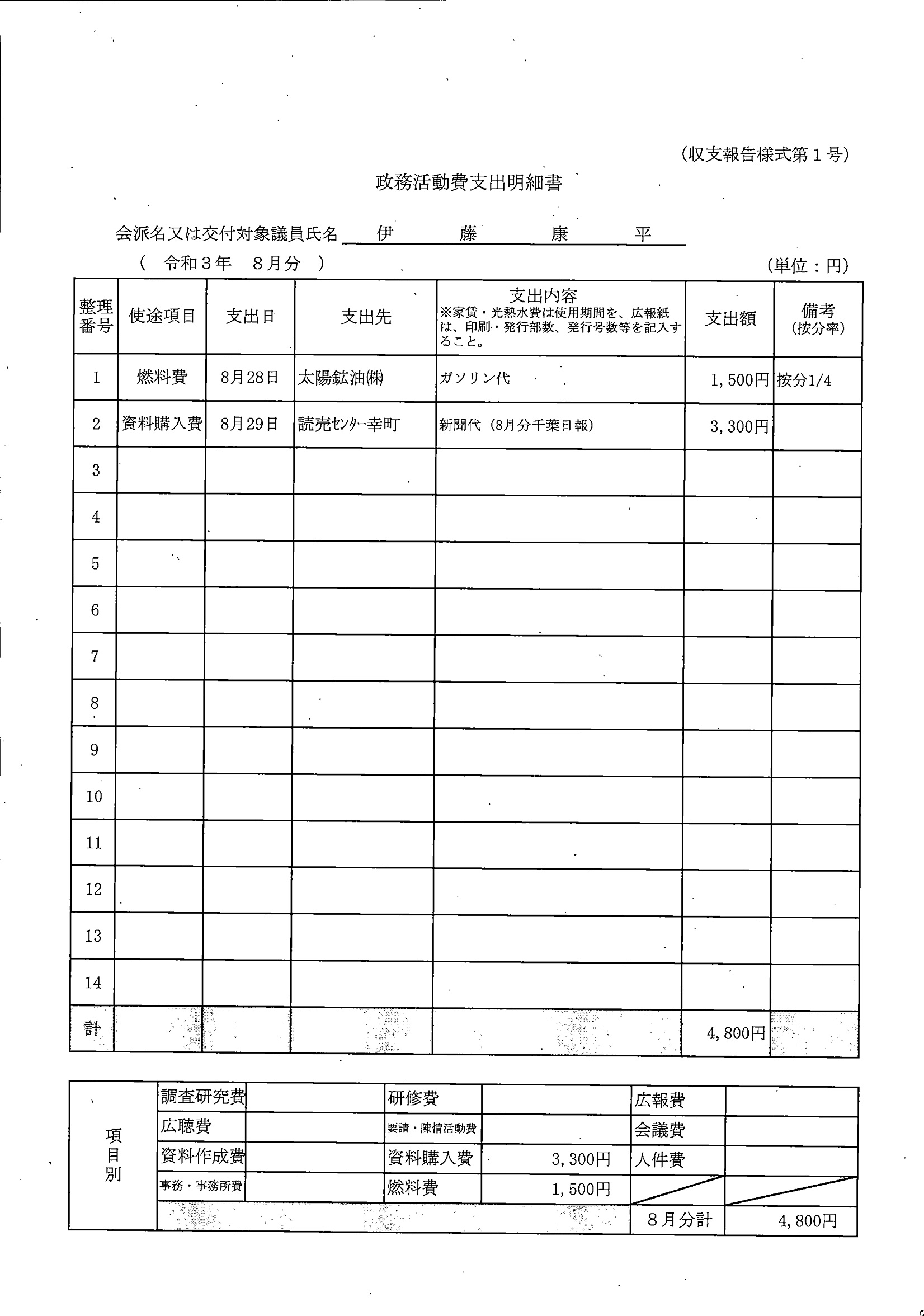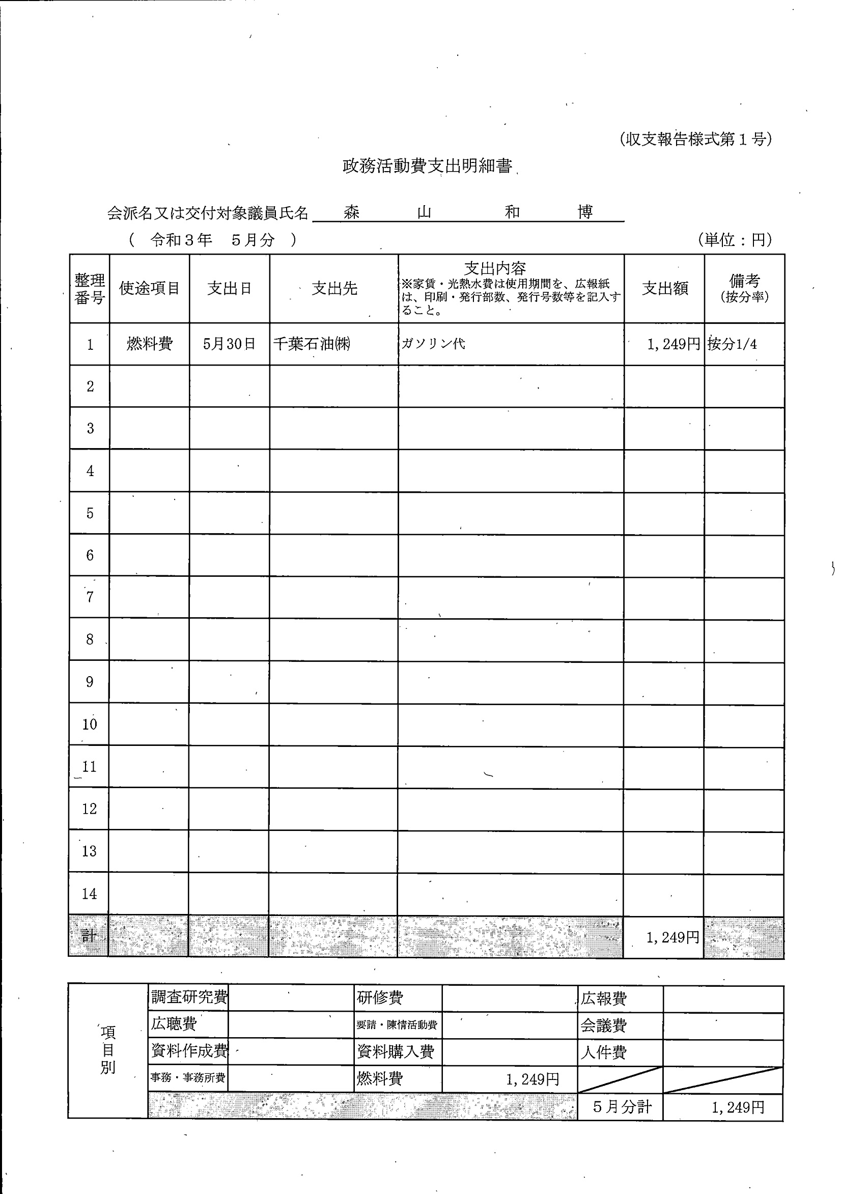 千葉市議会トップページ > 広報・情報公開 > 政務活動費 > 令和3年度交付分(政務活動費収支報告書)