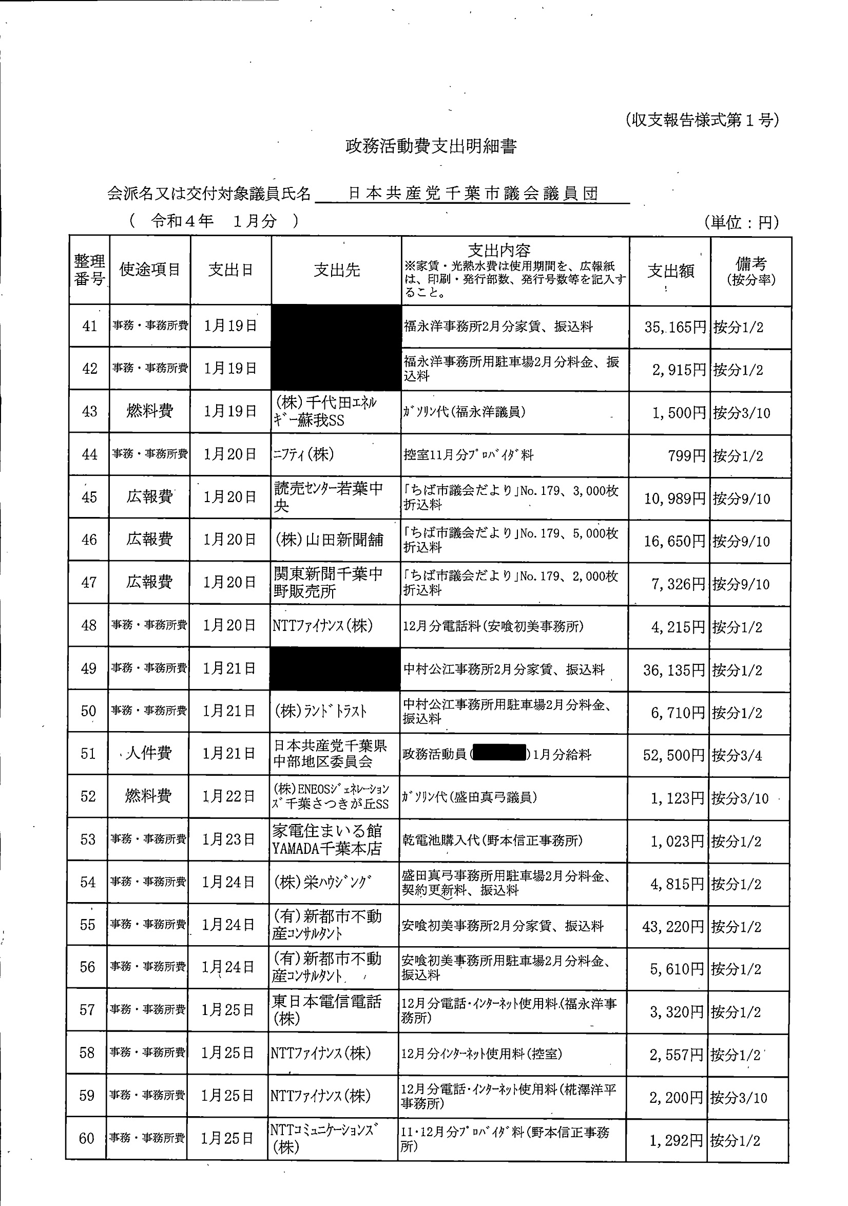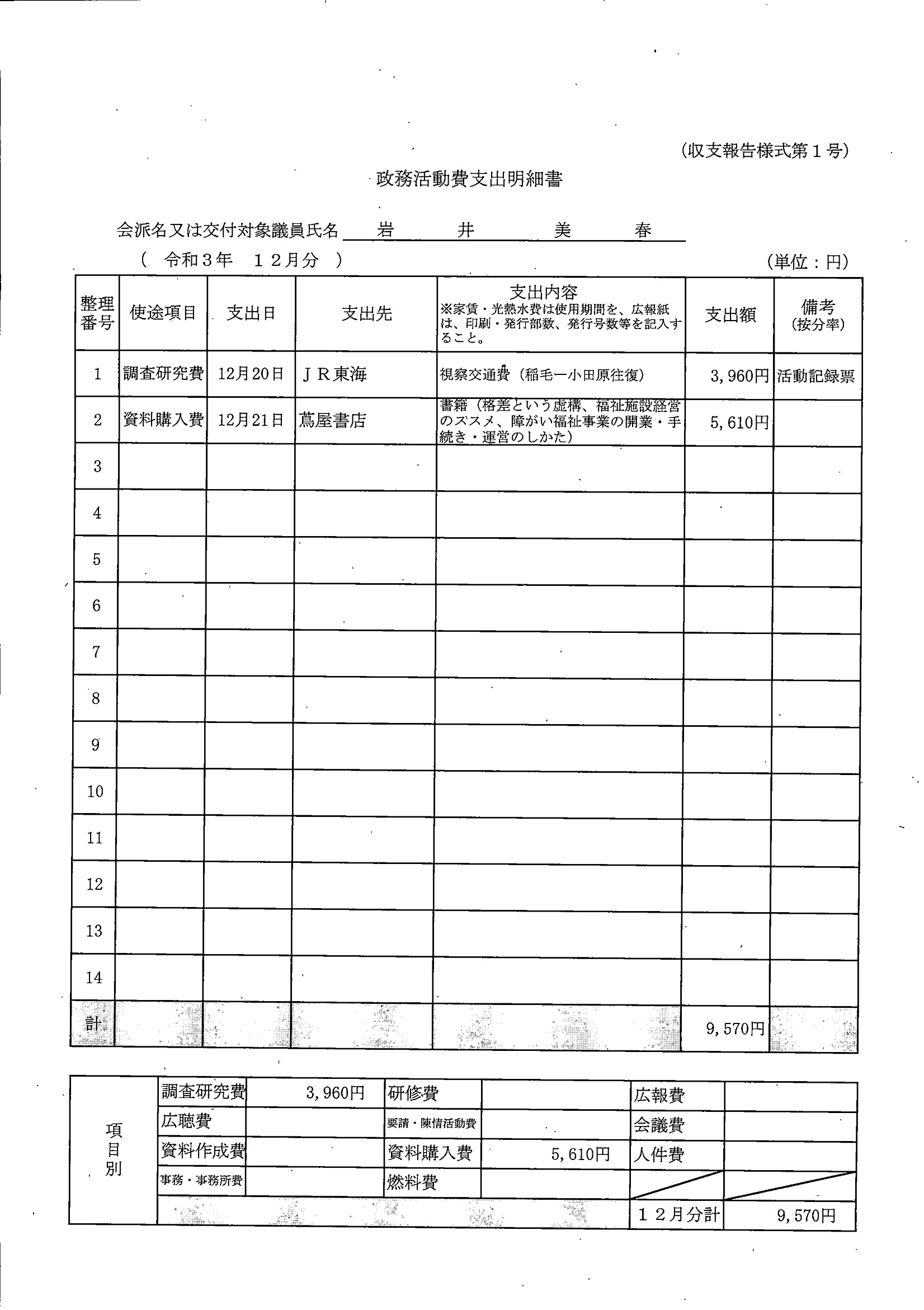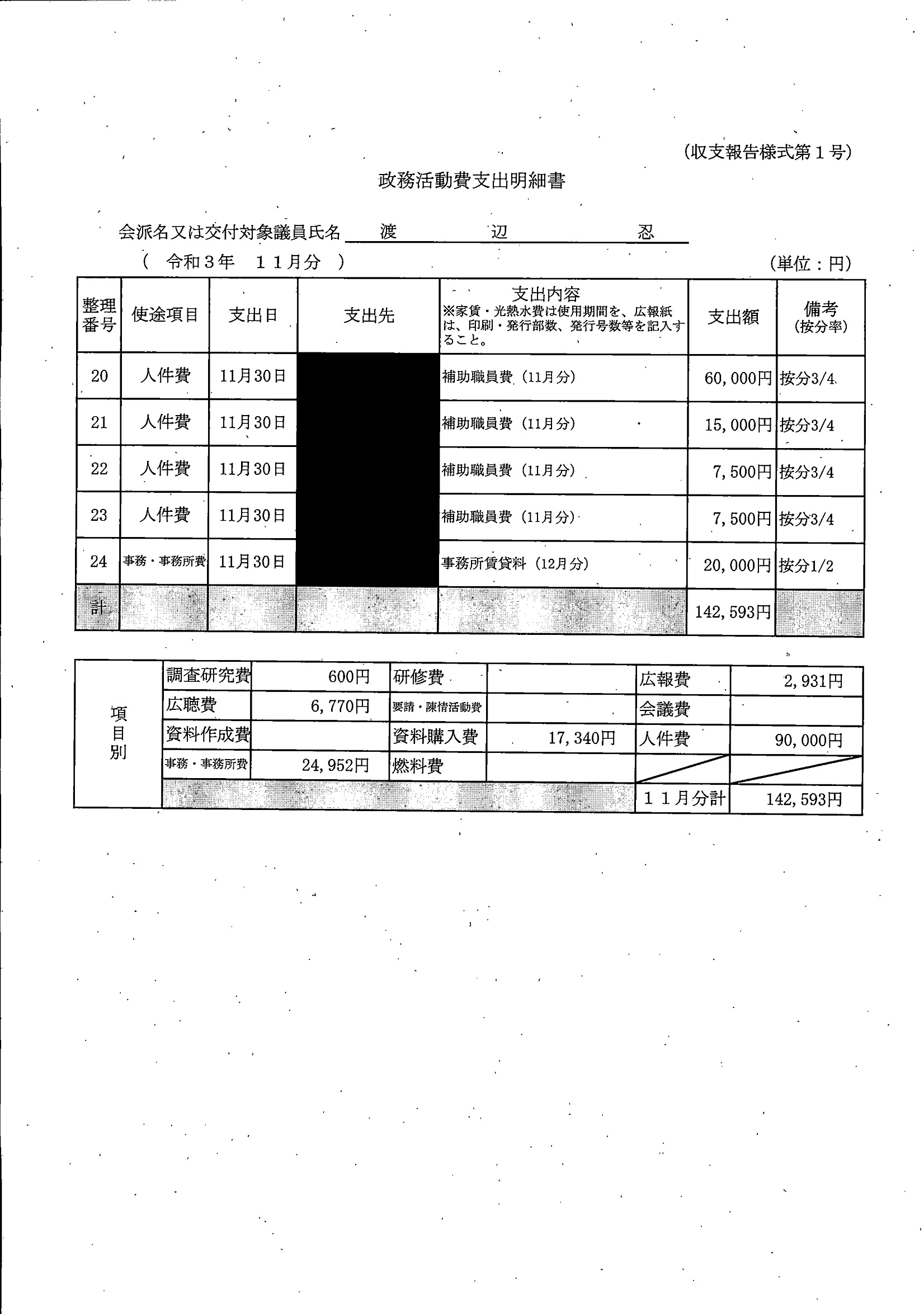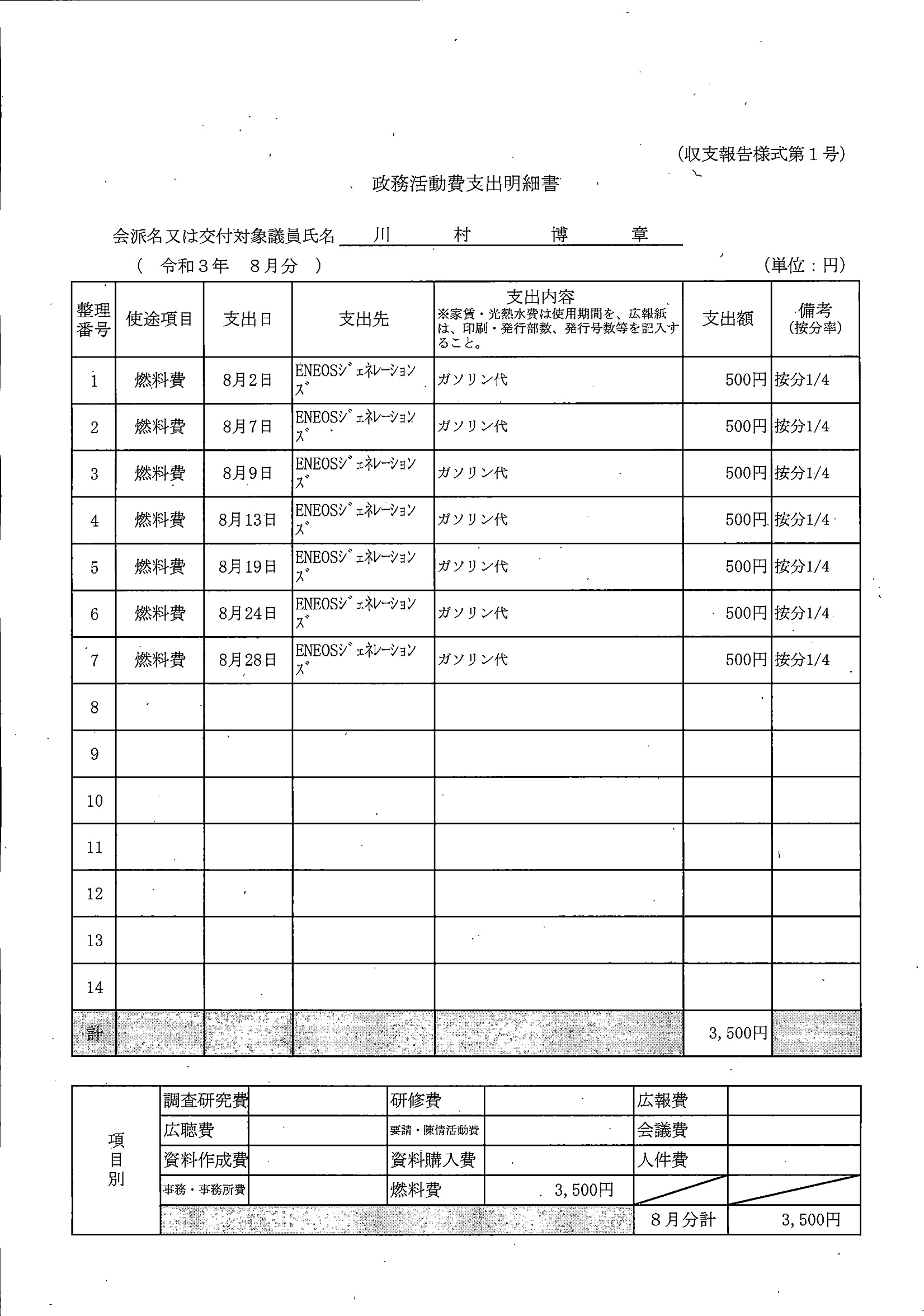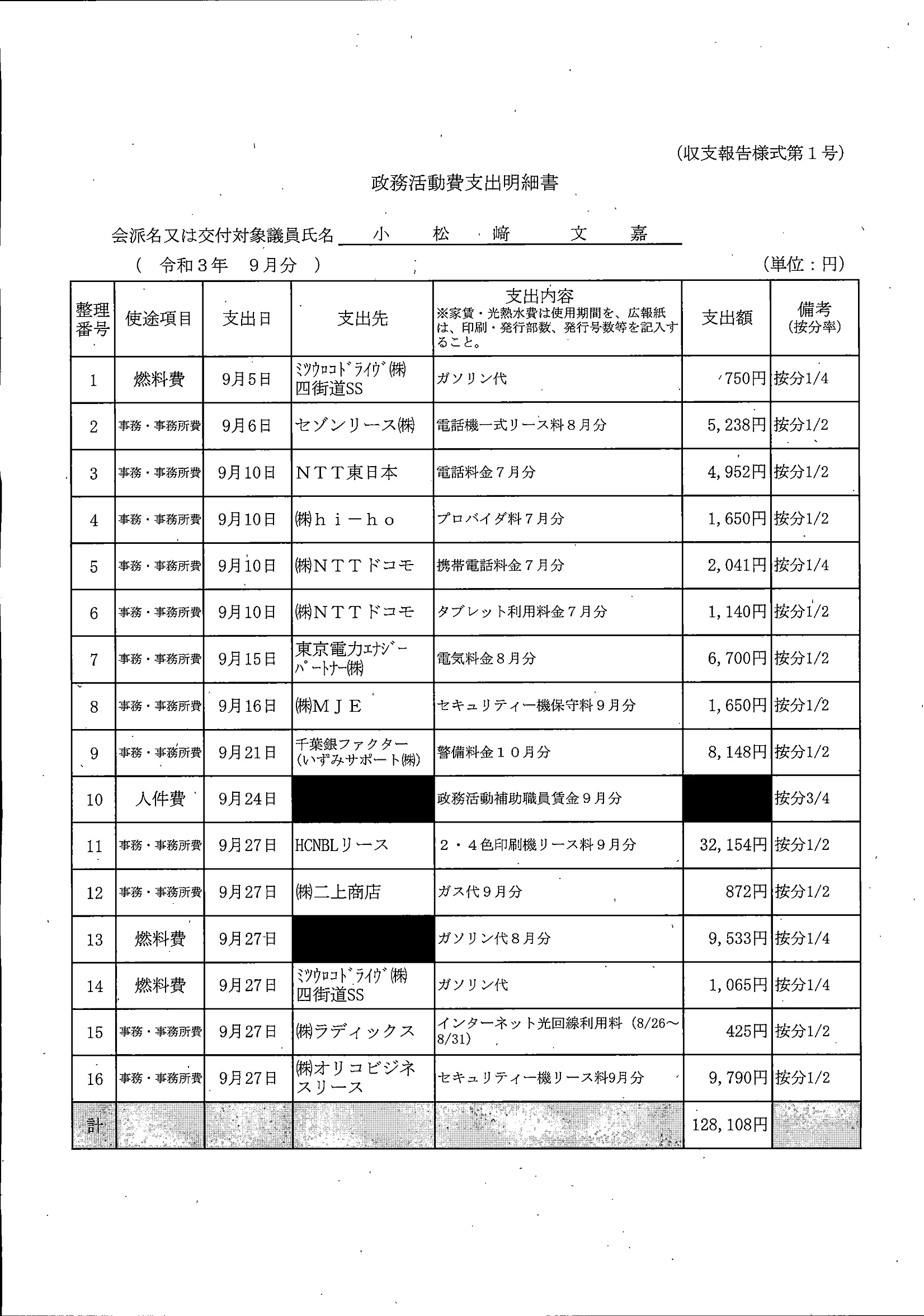 千葉市議会トップページ > 広報・情報公開 > 政務活動費 > 令和3年度交付分(政務活動費収支報告書)