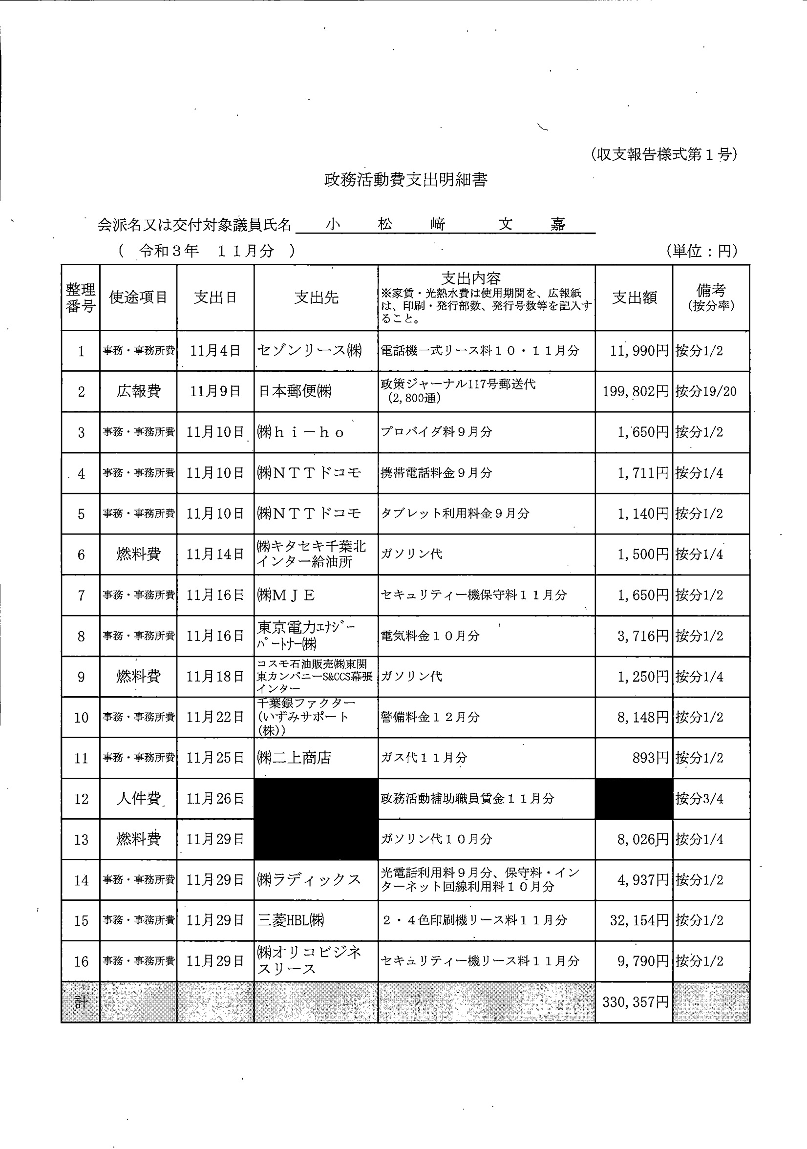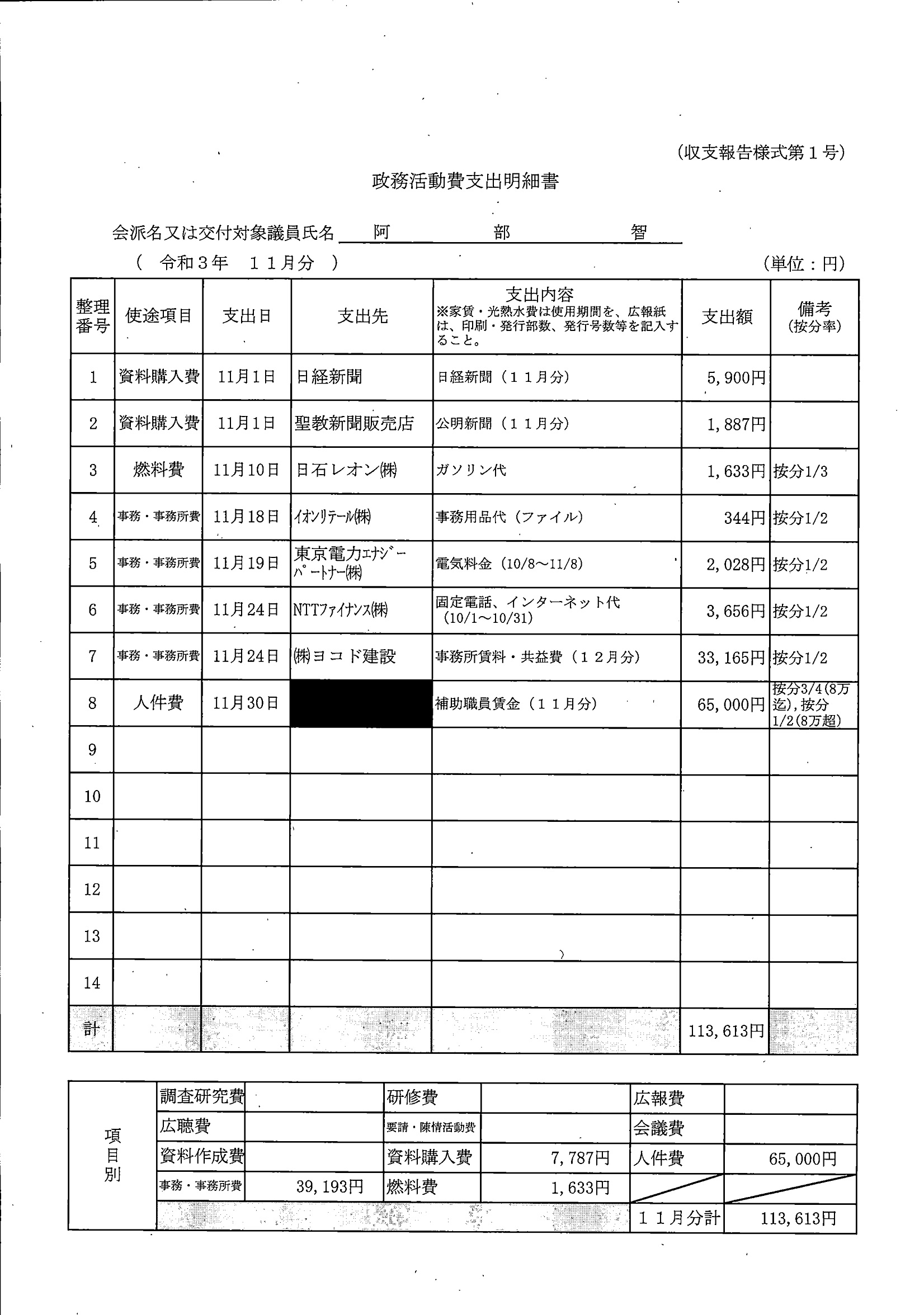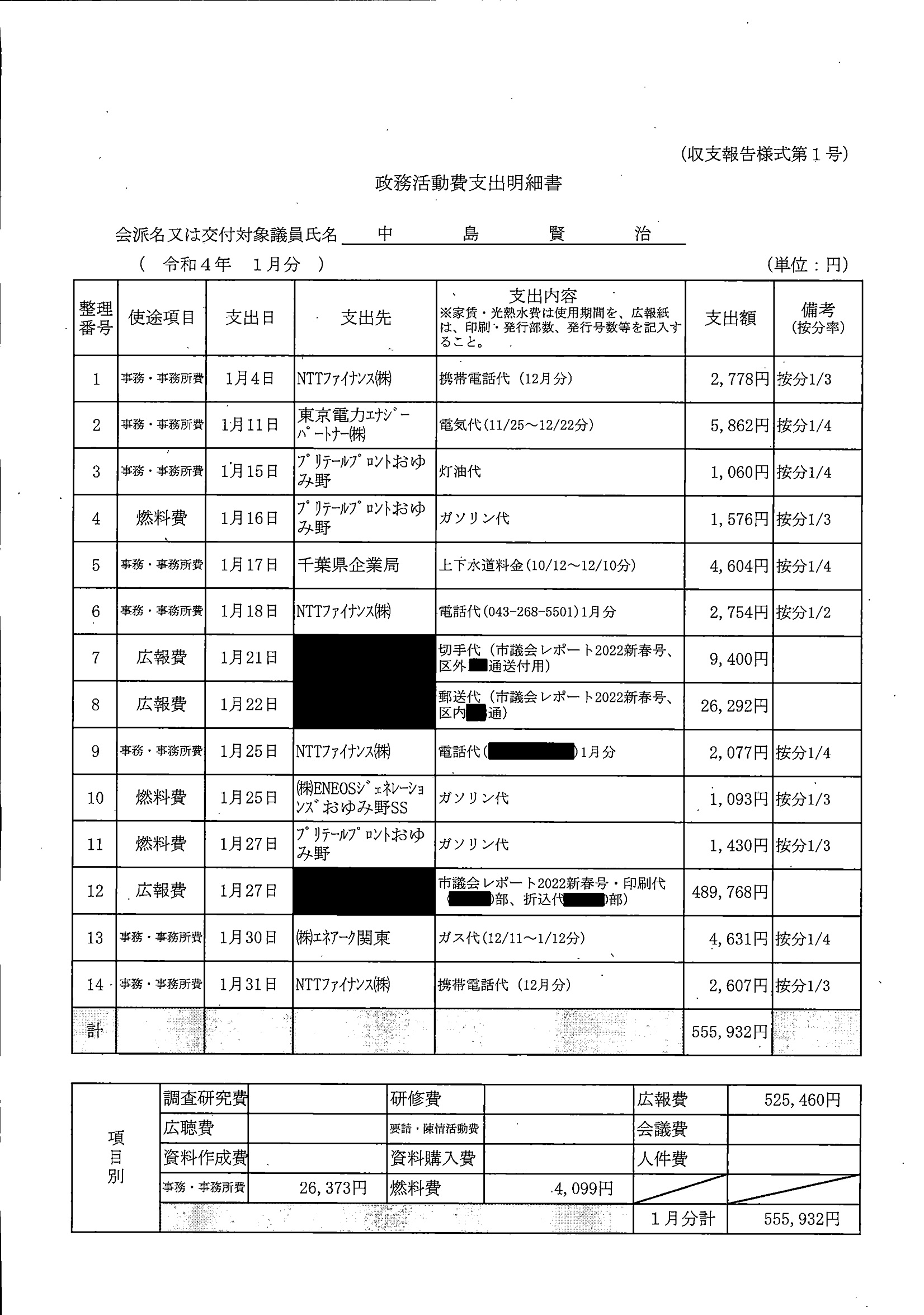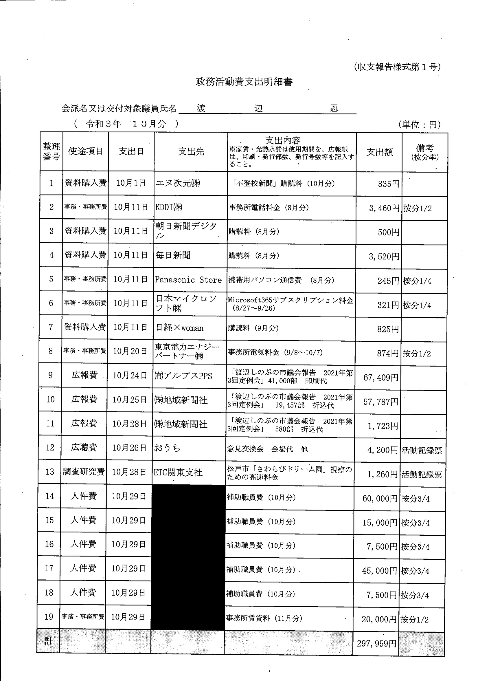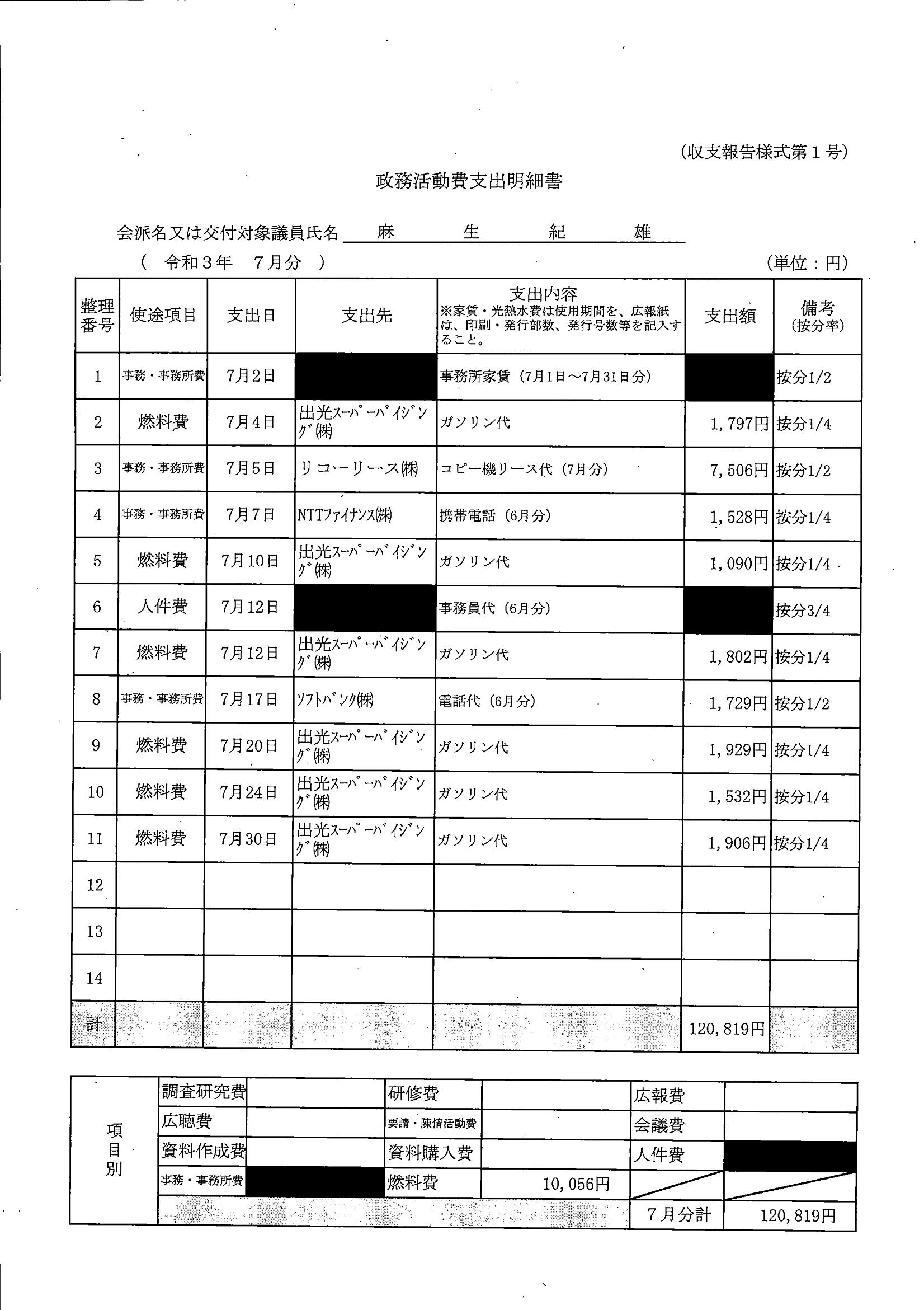千葉市議会トップページ > 広報・情報公開 > 政務活動費 > 令和3年度交付分(政務活動費収支報告書)