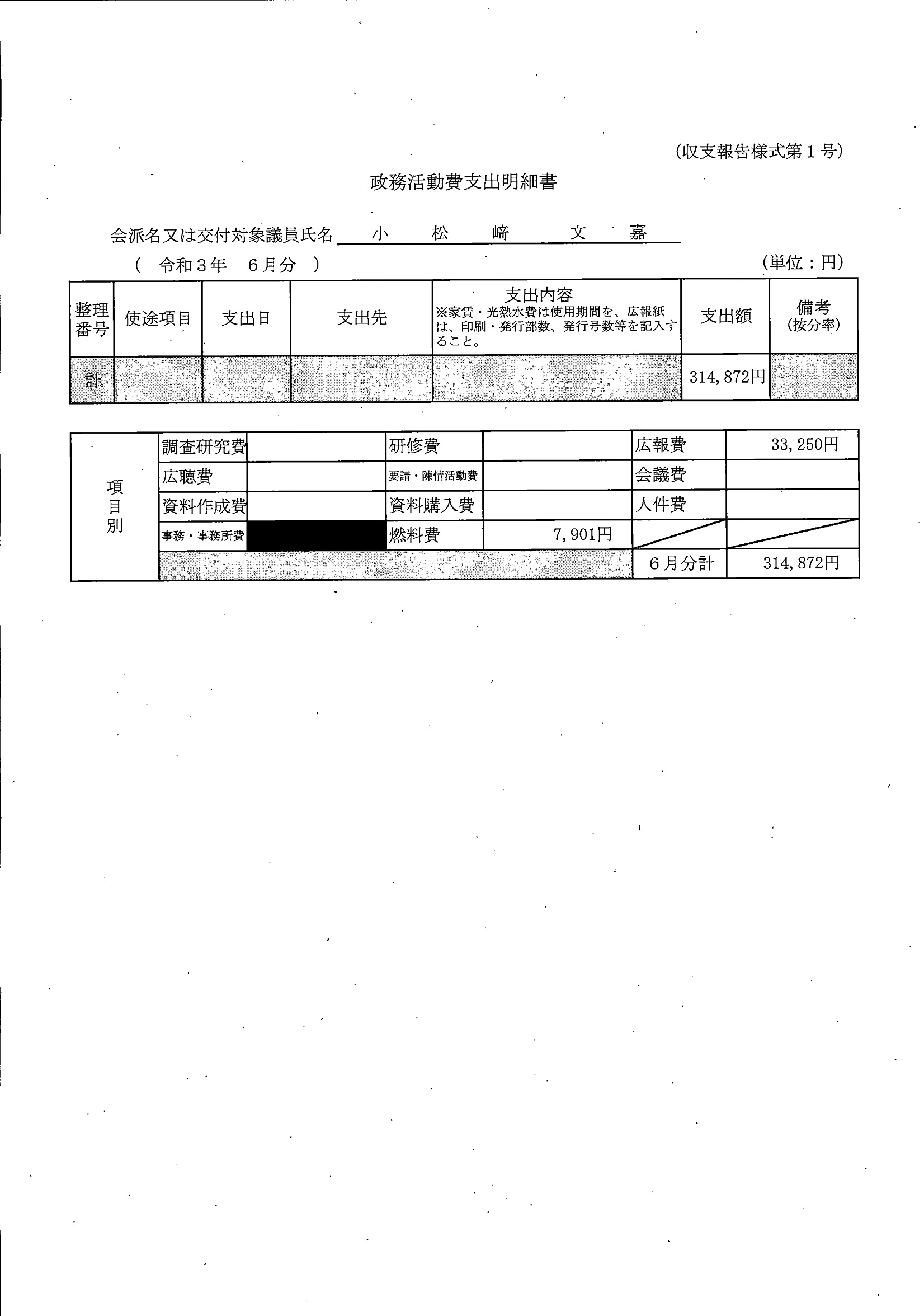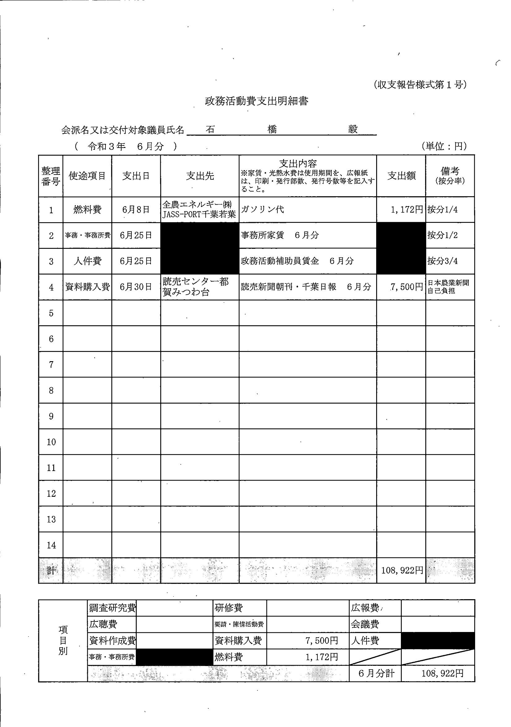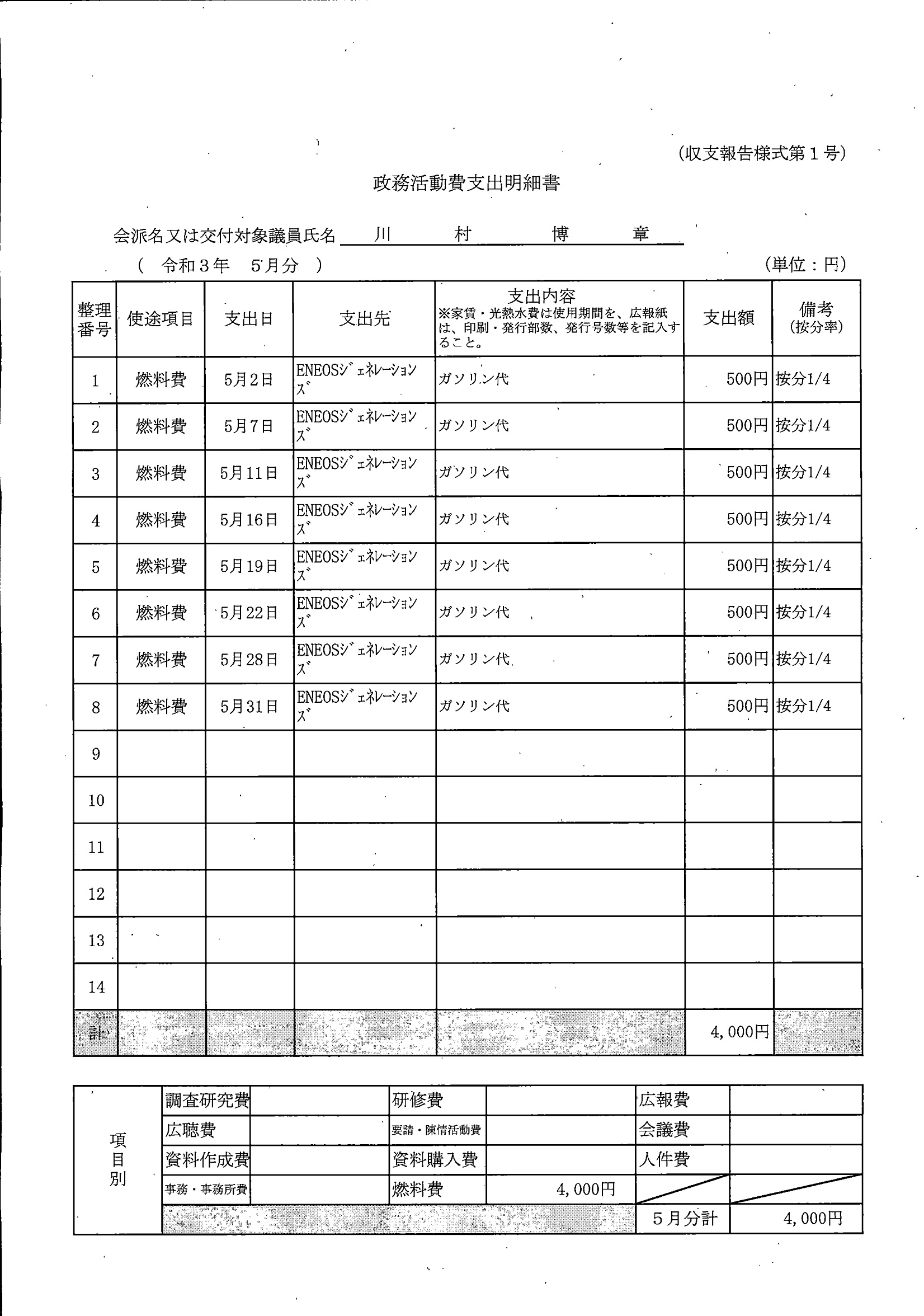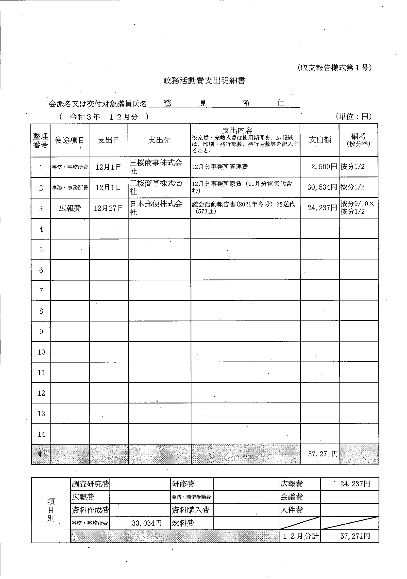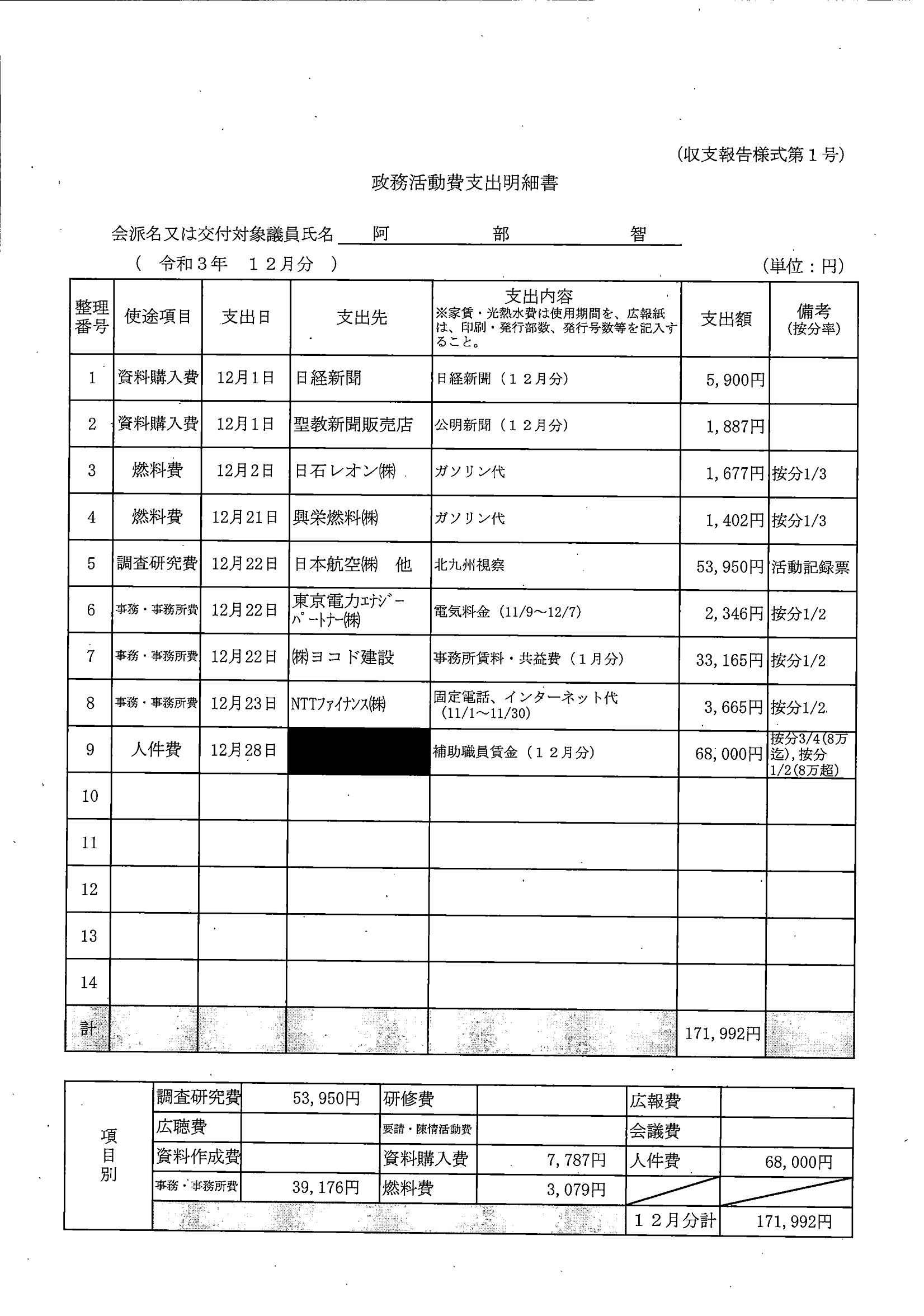 千葉市議会トップページ > 広報・情報公開 > 政務活動費 > 令和3年度交付分(政務活動費収支報告書)