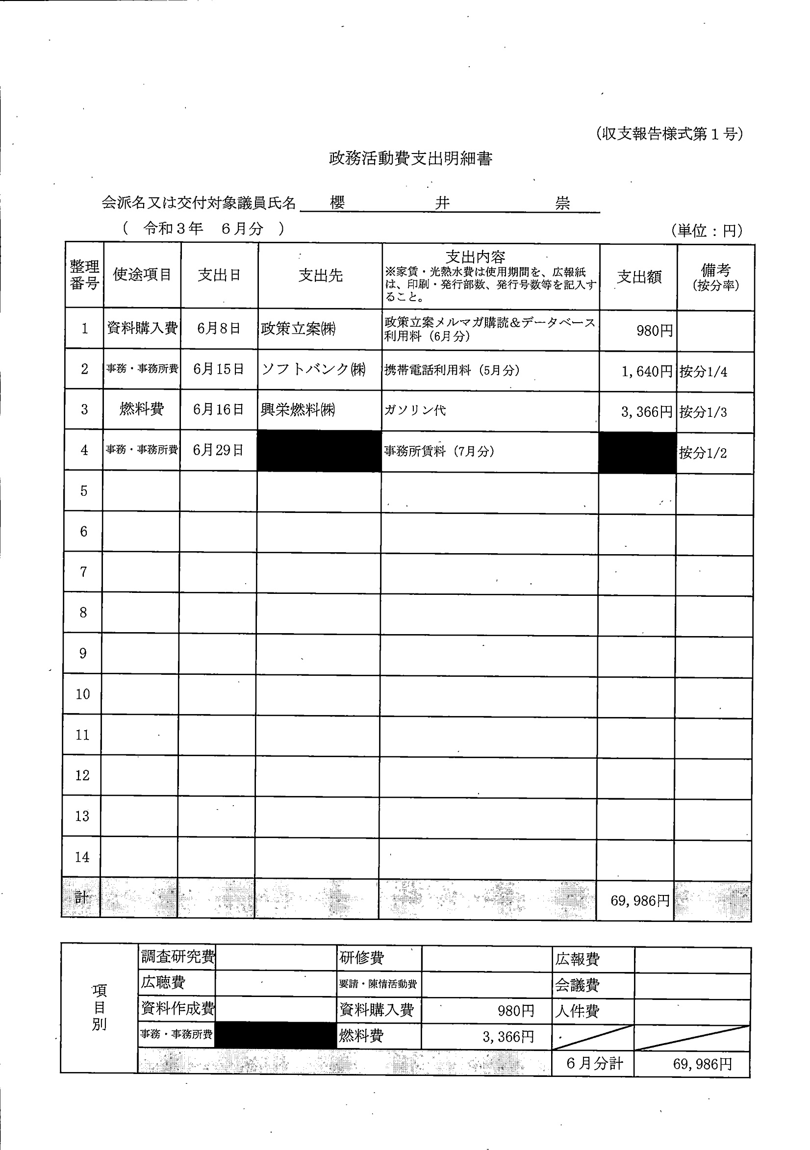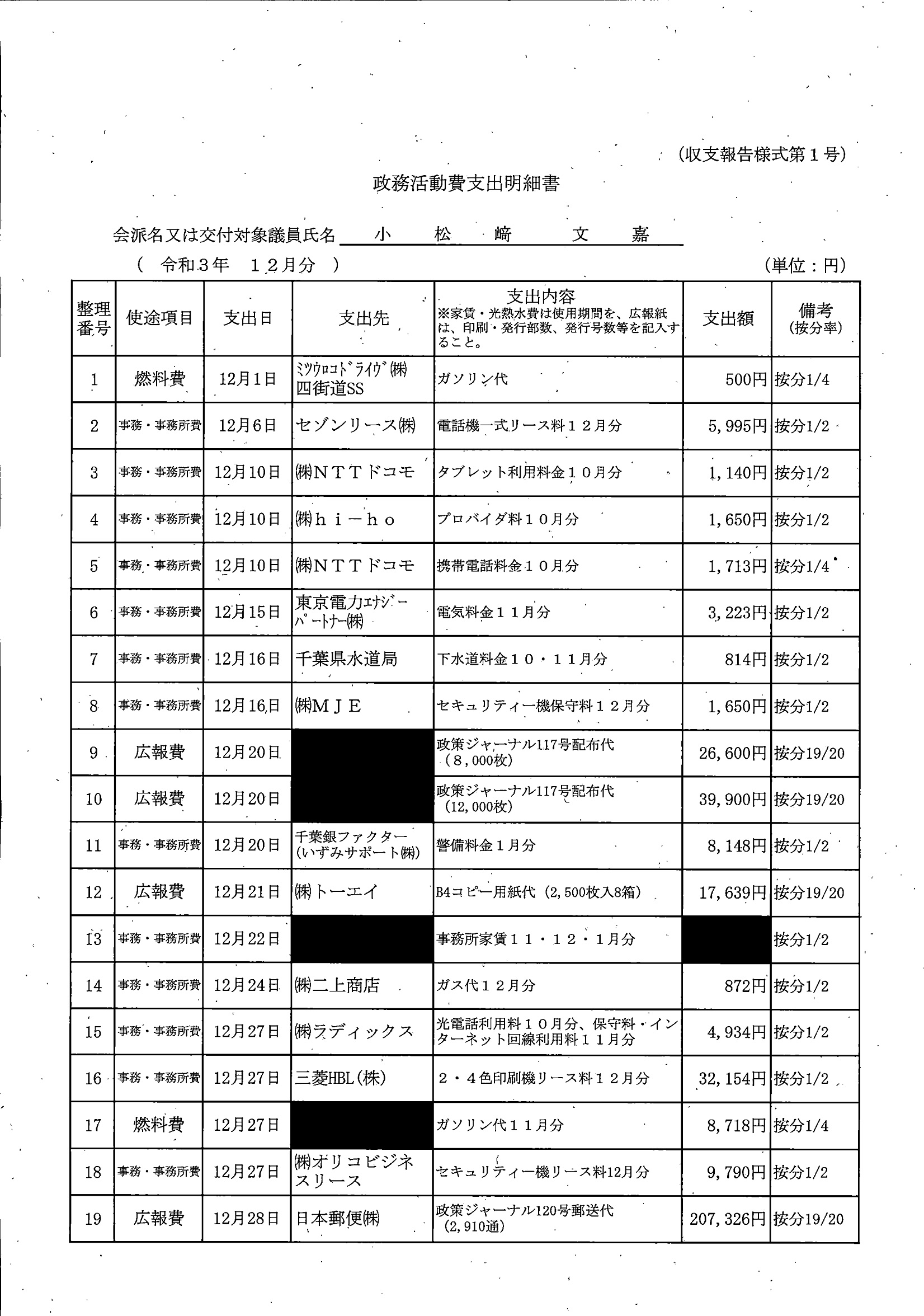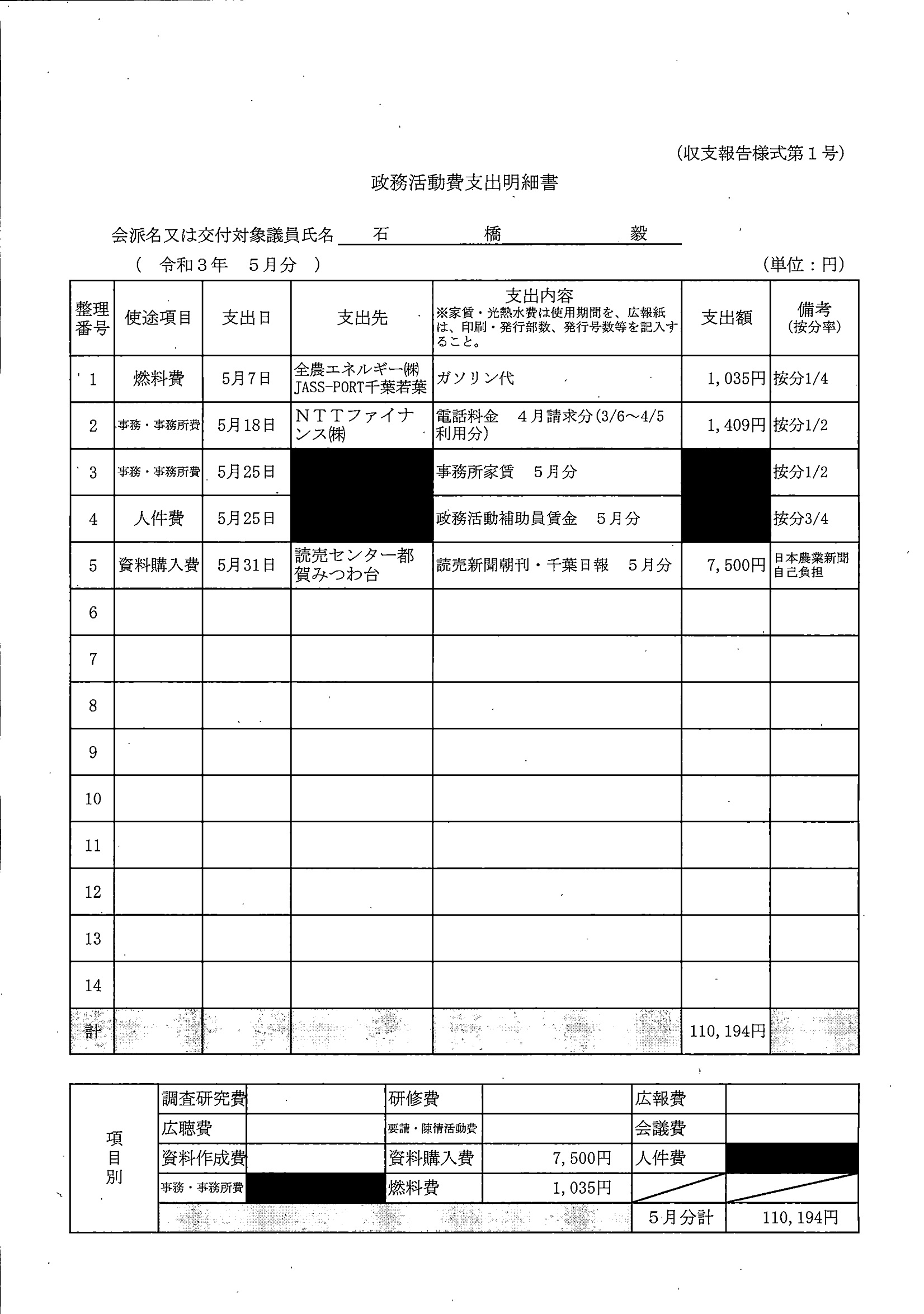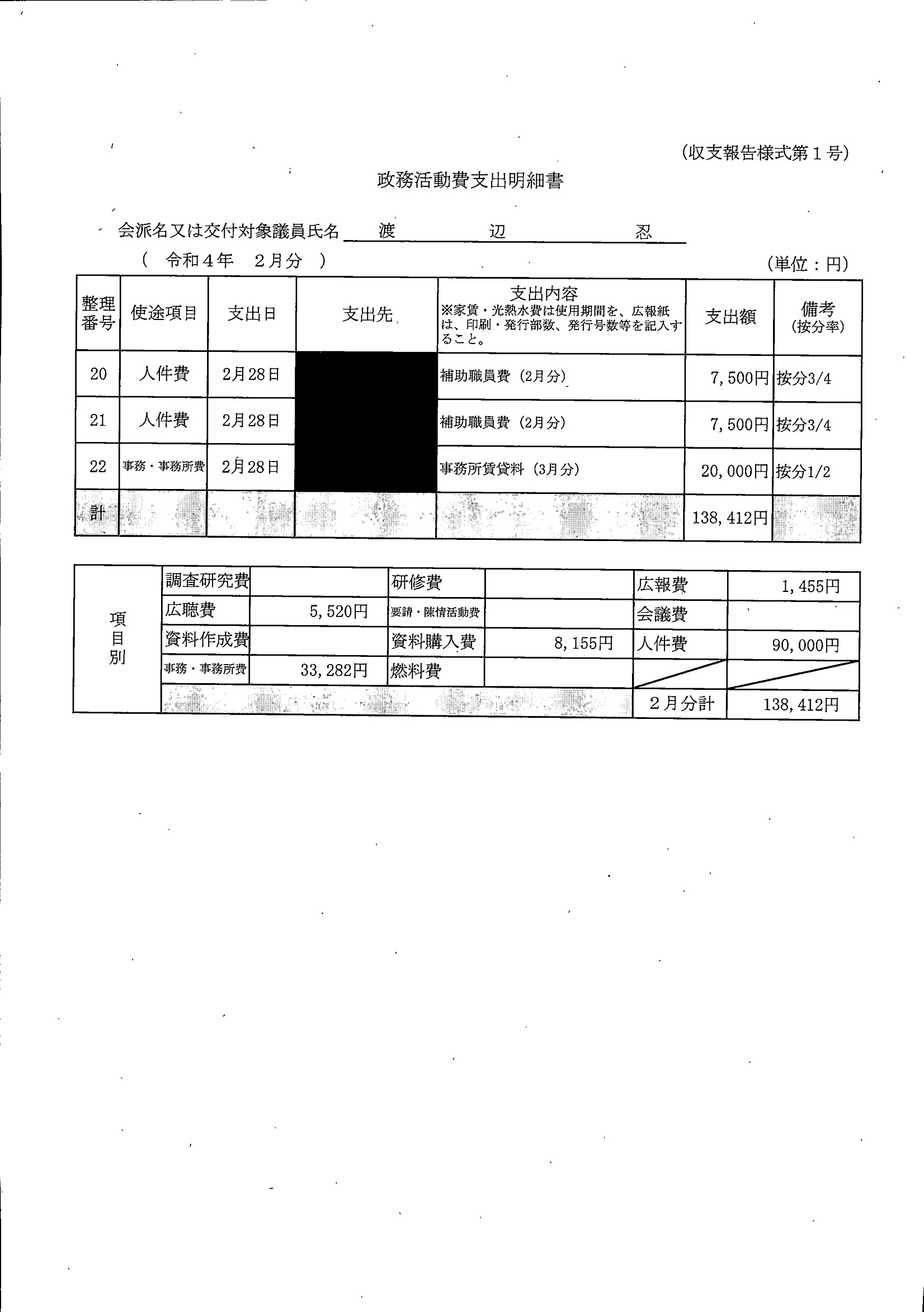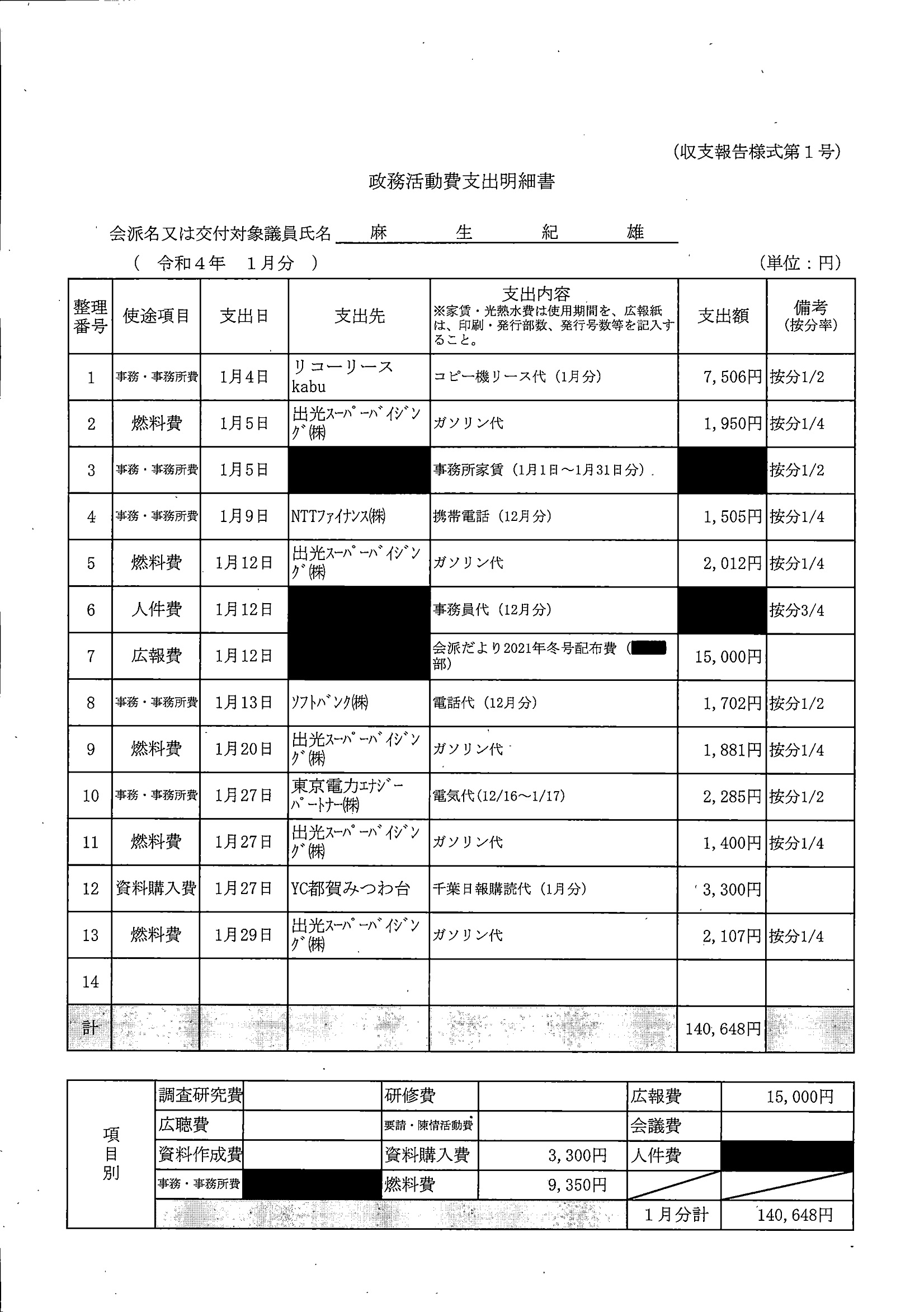 千葉市議会トップページ > 広報・情報公開 > 政務活動費 > 令和3年度交付分(政務活動費収支報告書)