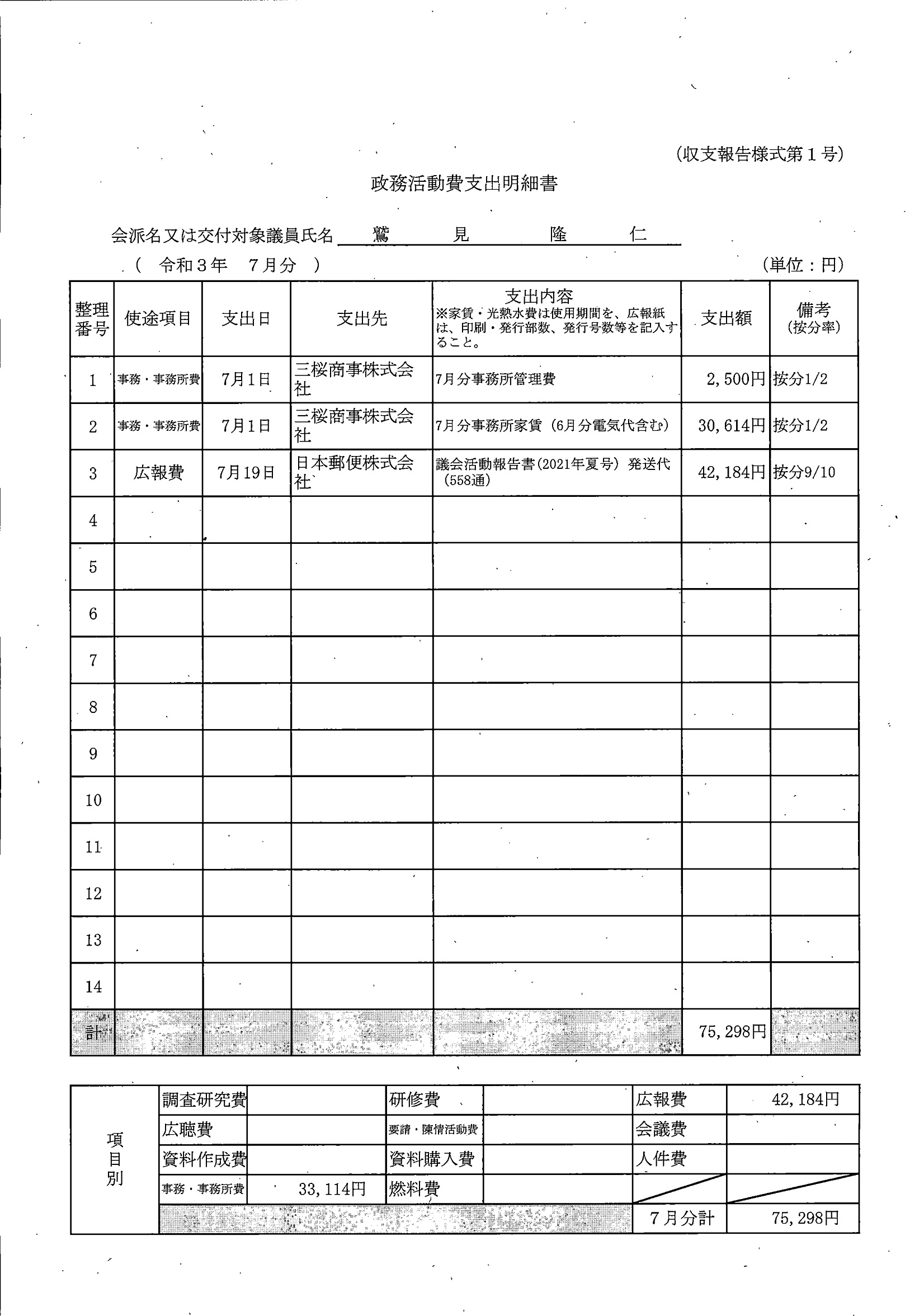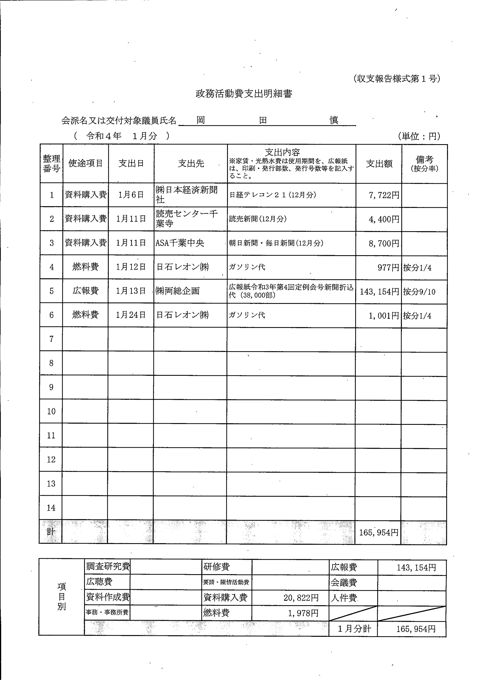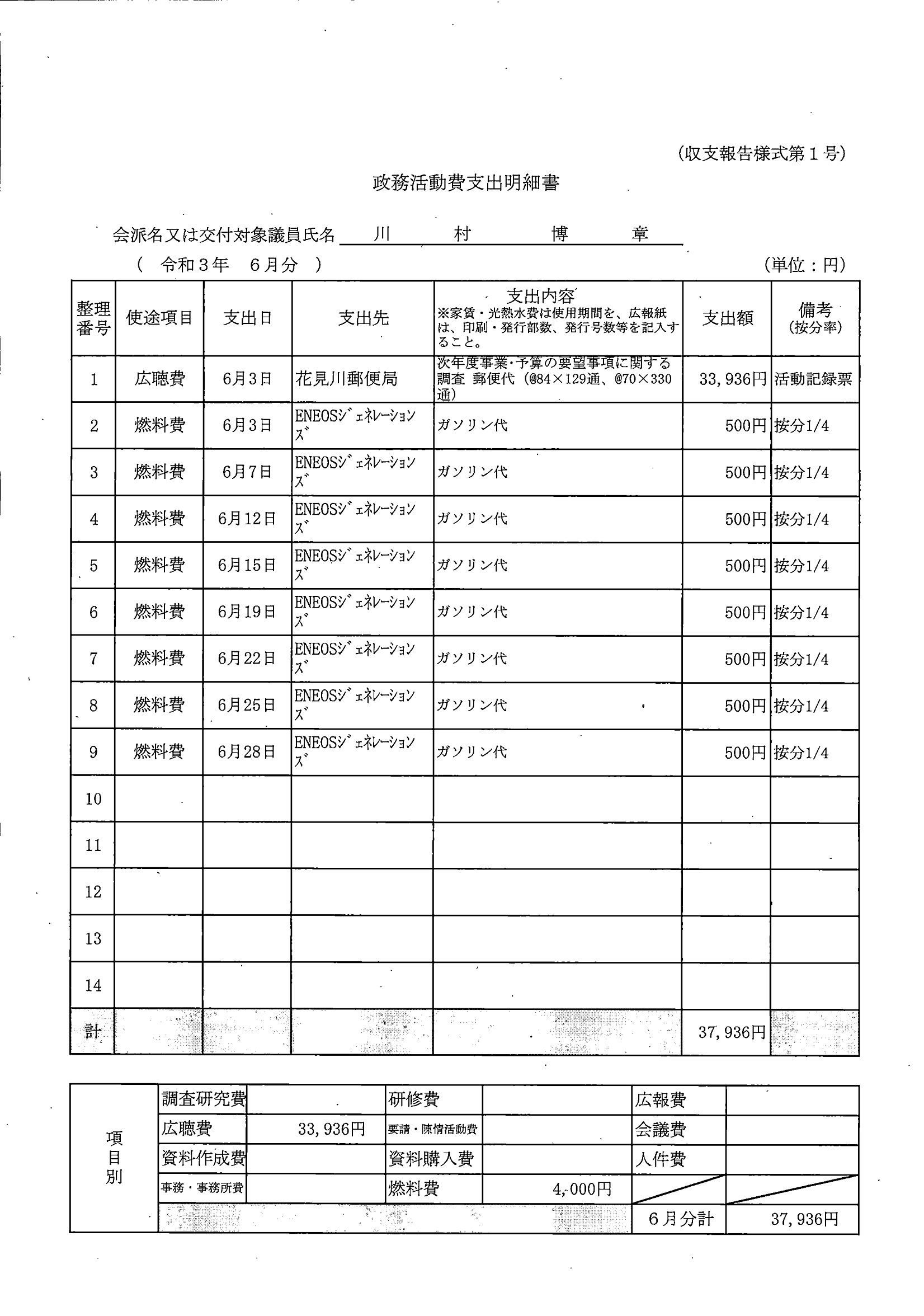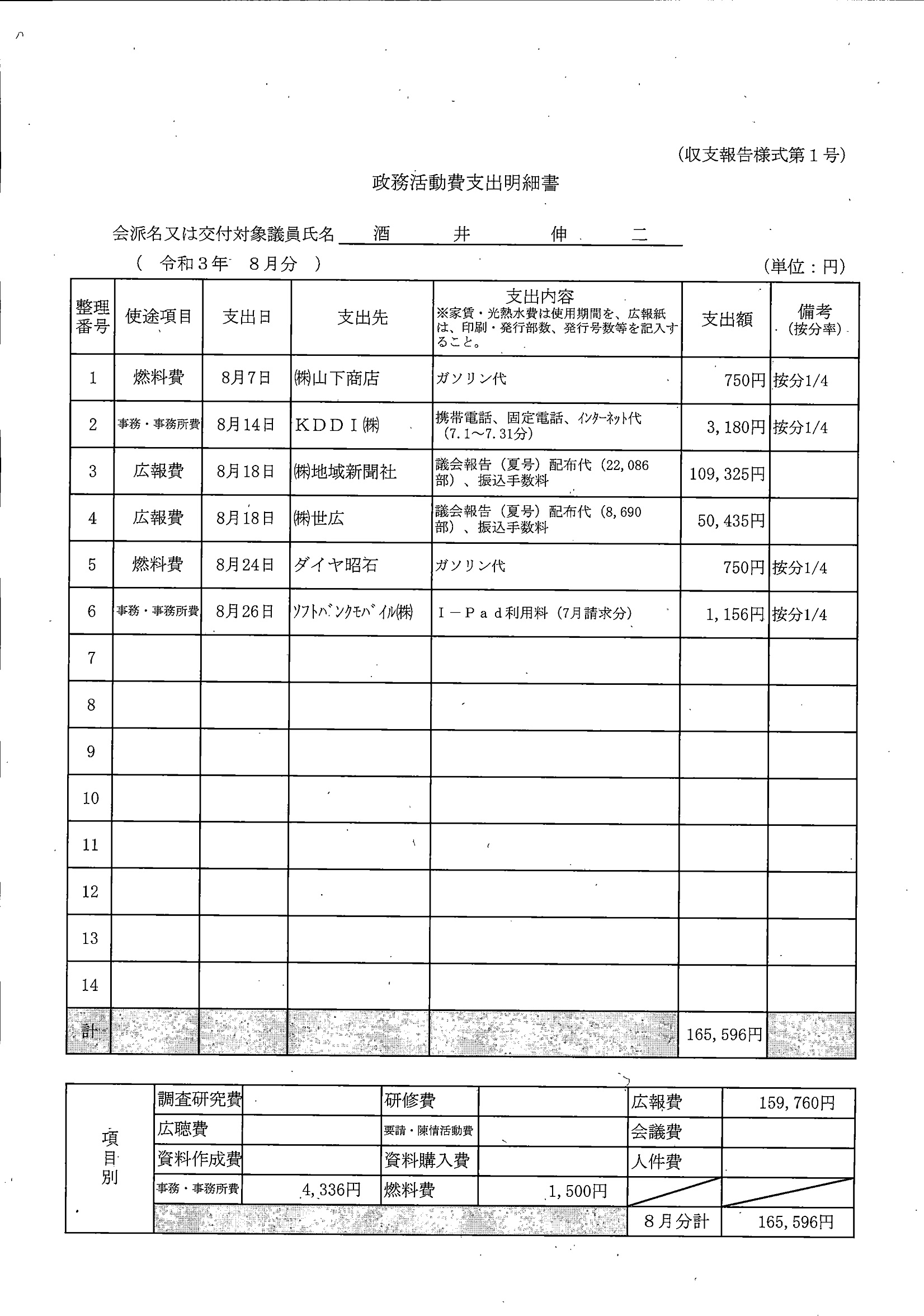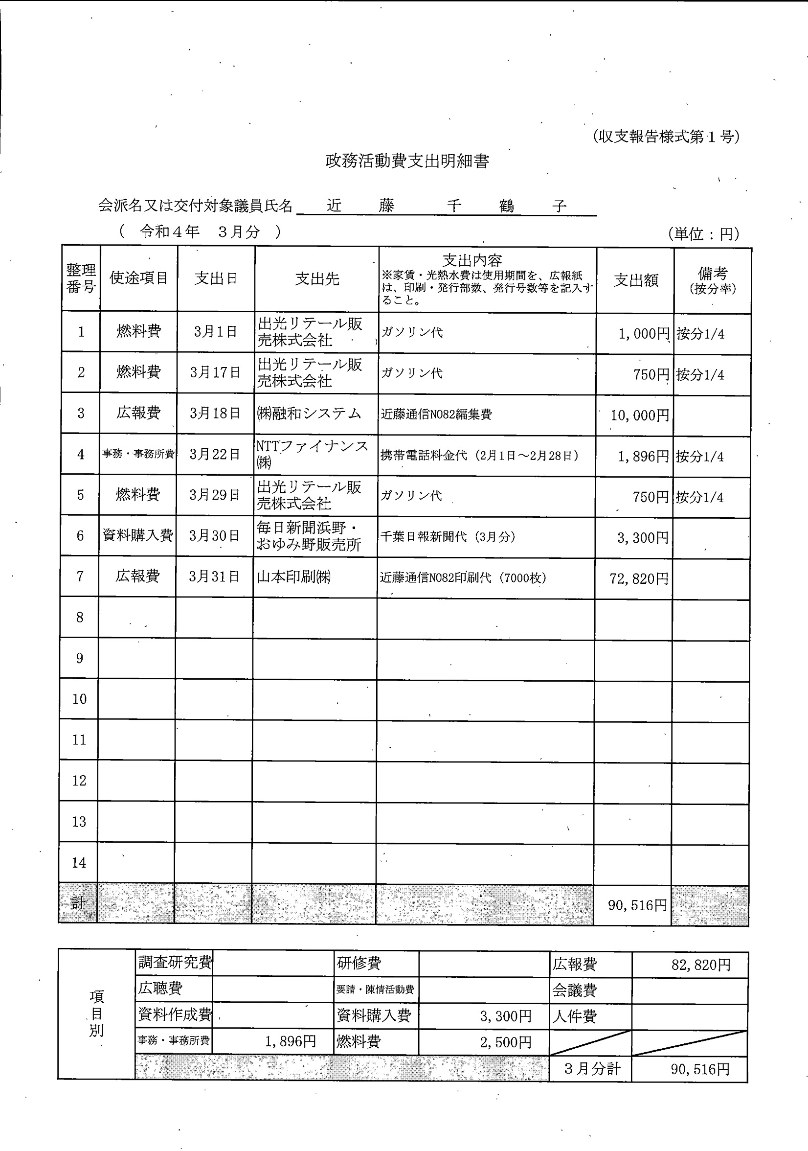 千葉市議会トップページ > 広報・情報公開 > 政務活動費 > 令和3年度交付分(政務活動費収支報告書)