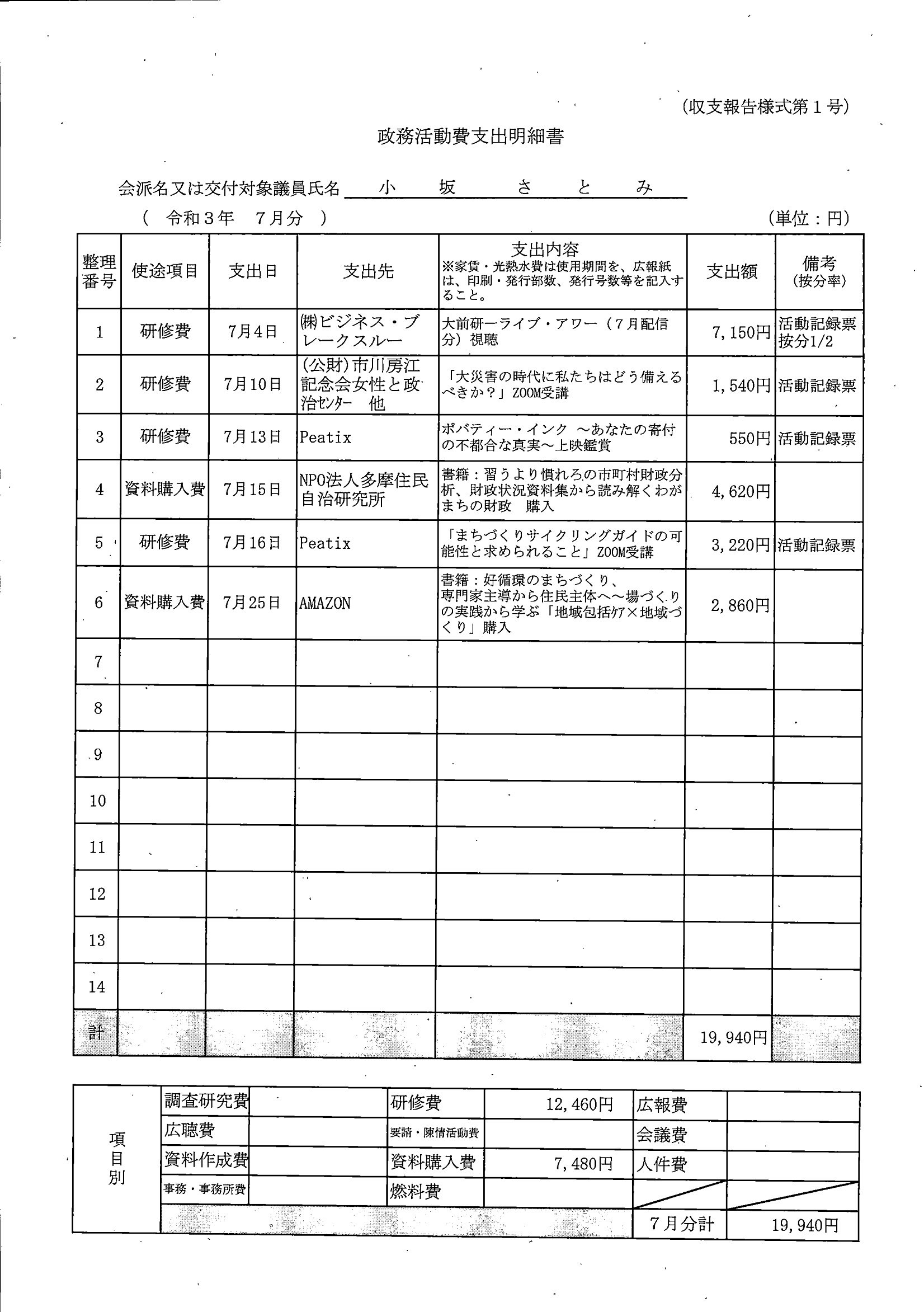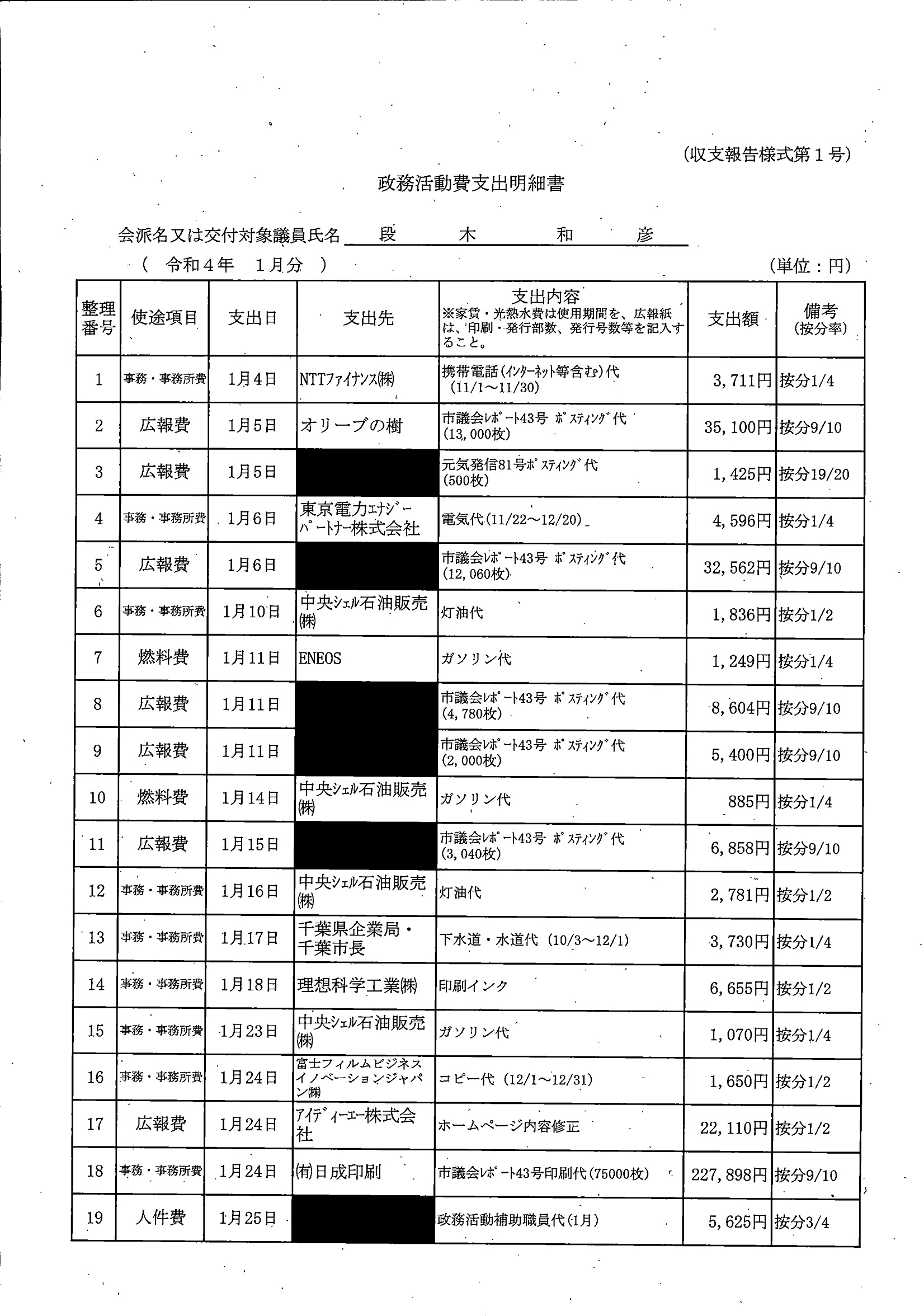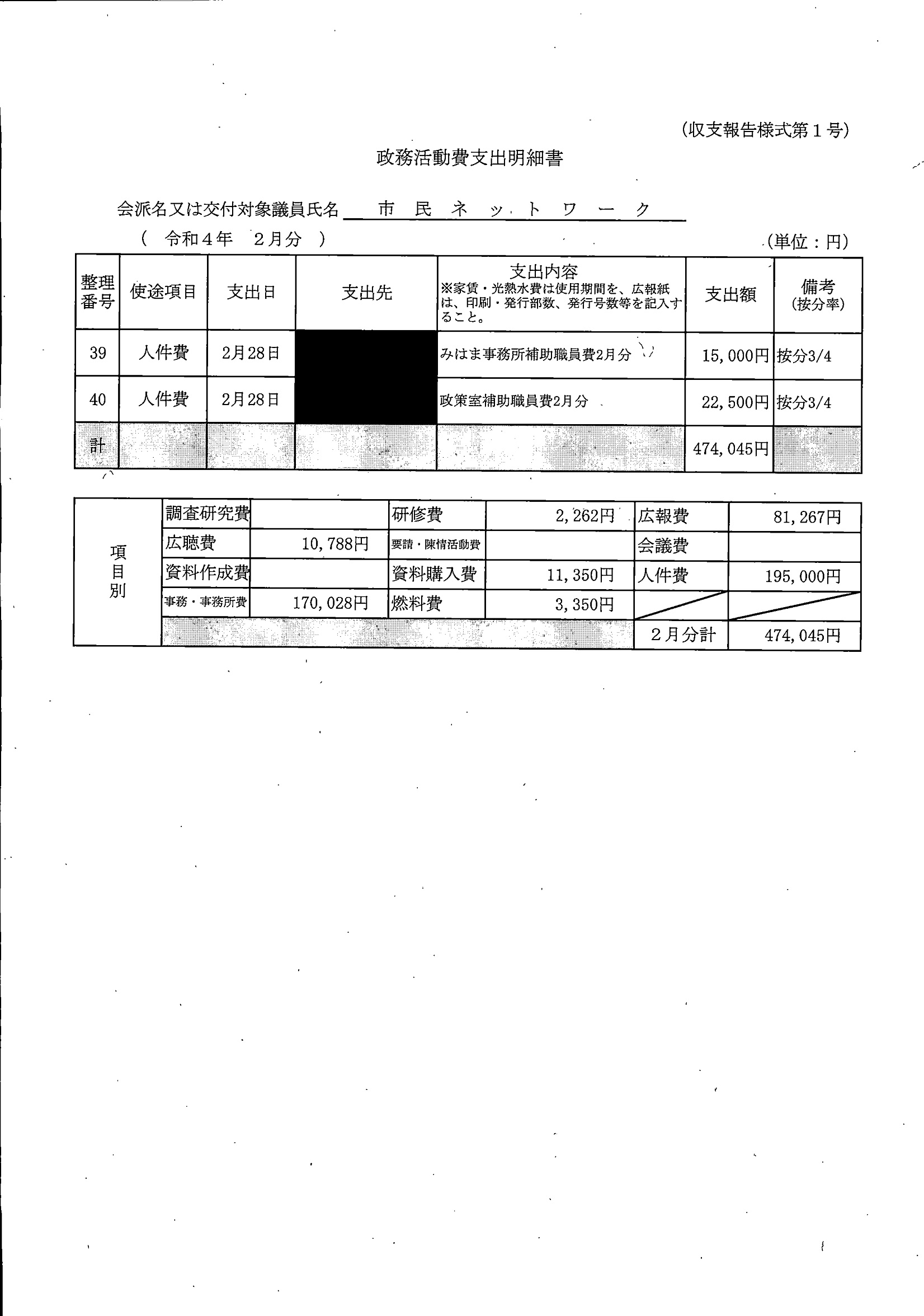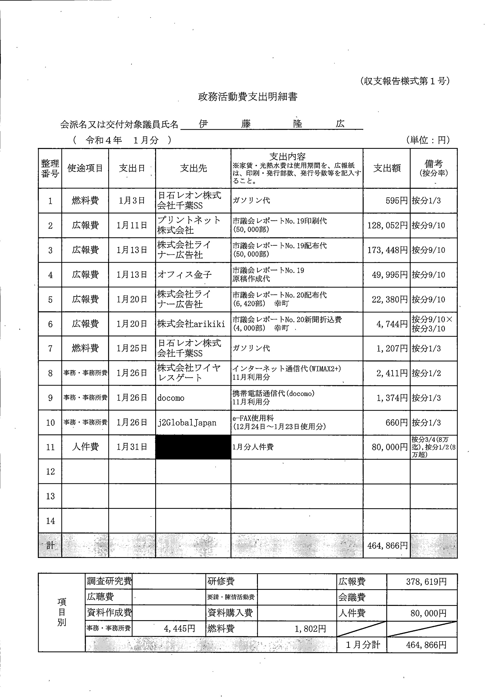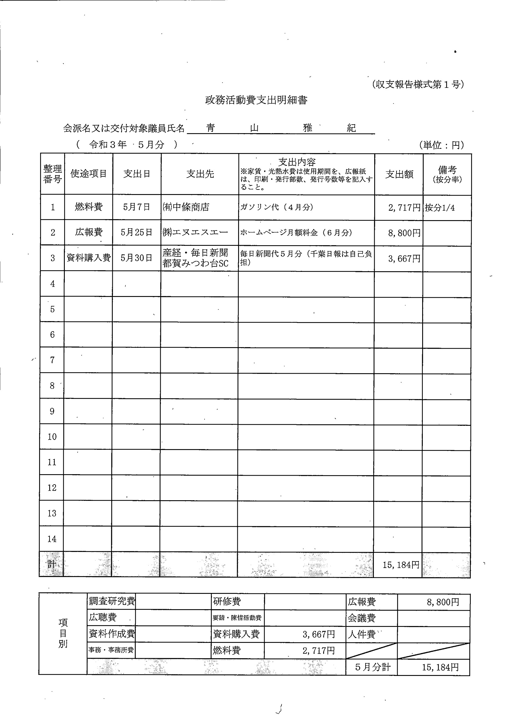 千葉市議会トップページ > 広報・情報公開 > 政務活動費 > 令和3年度交付分(政務活動費収支報告書)
