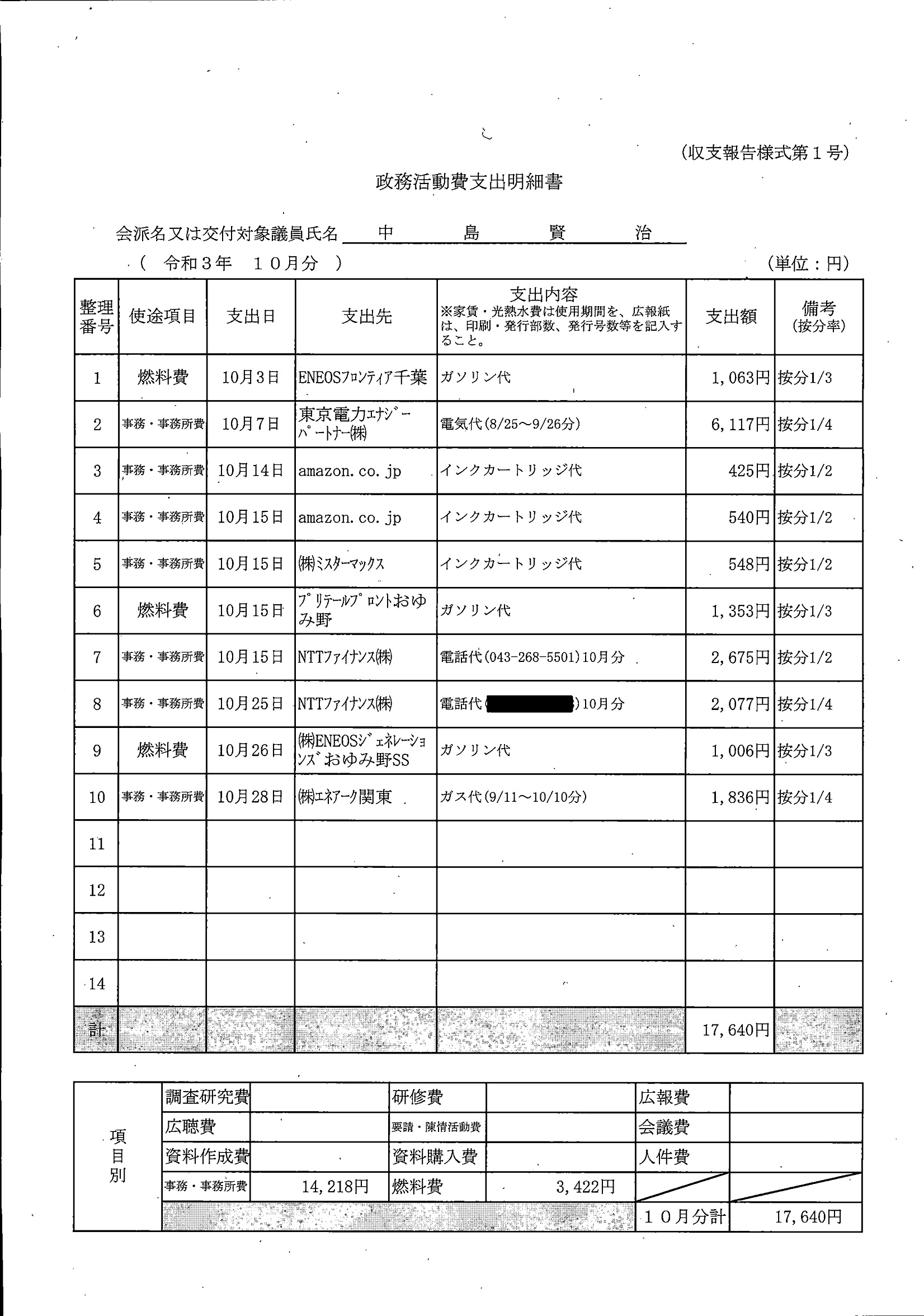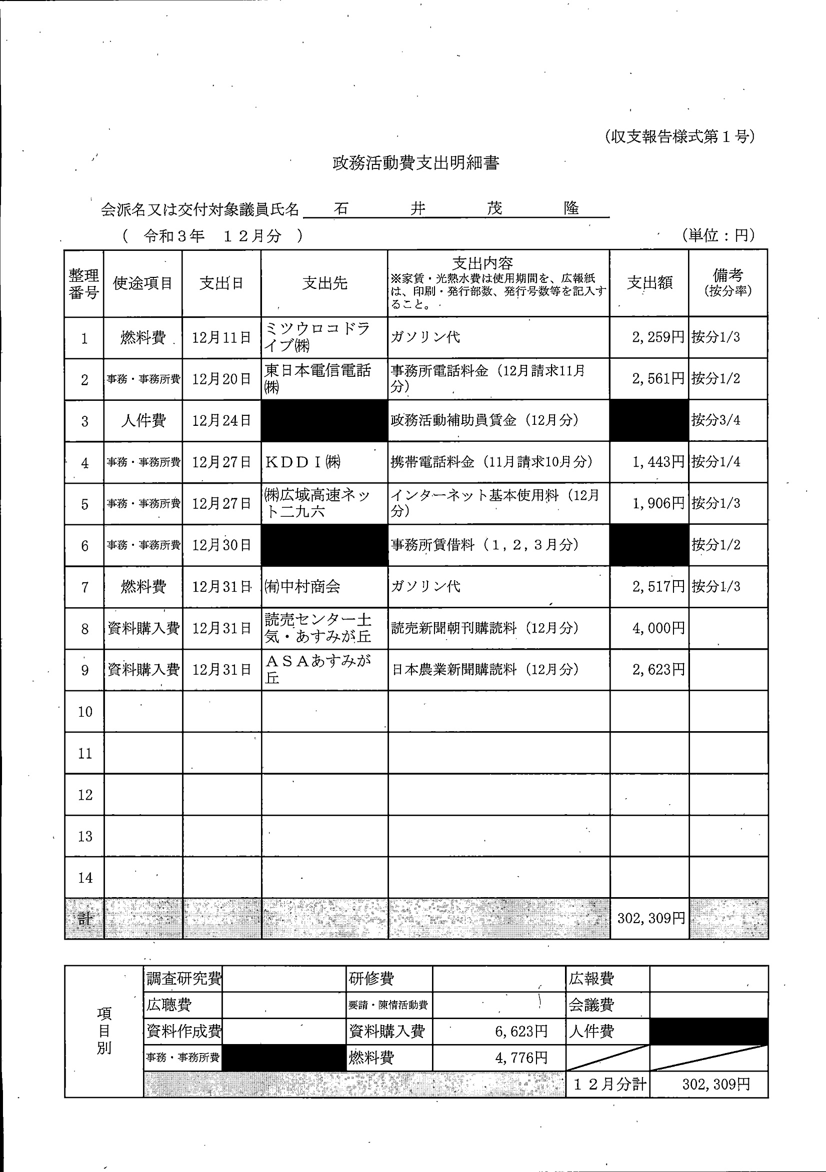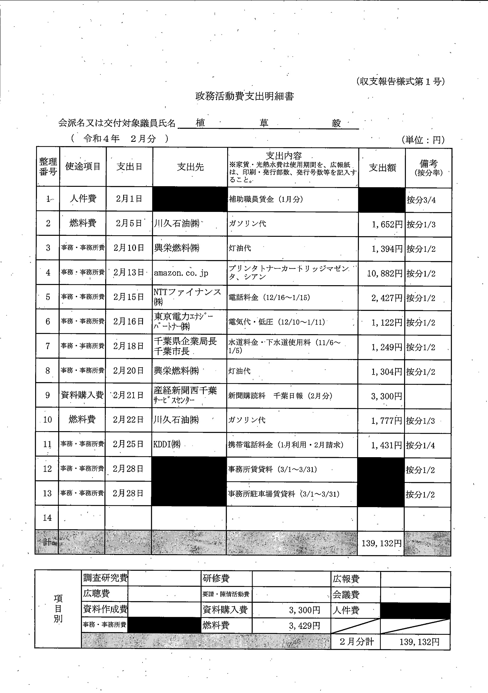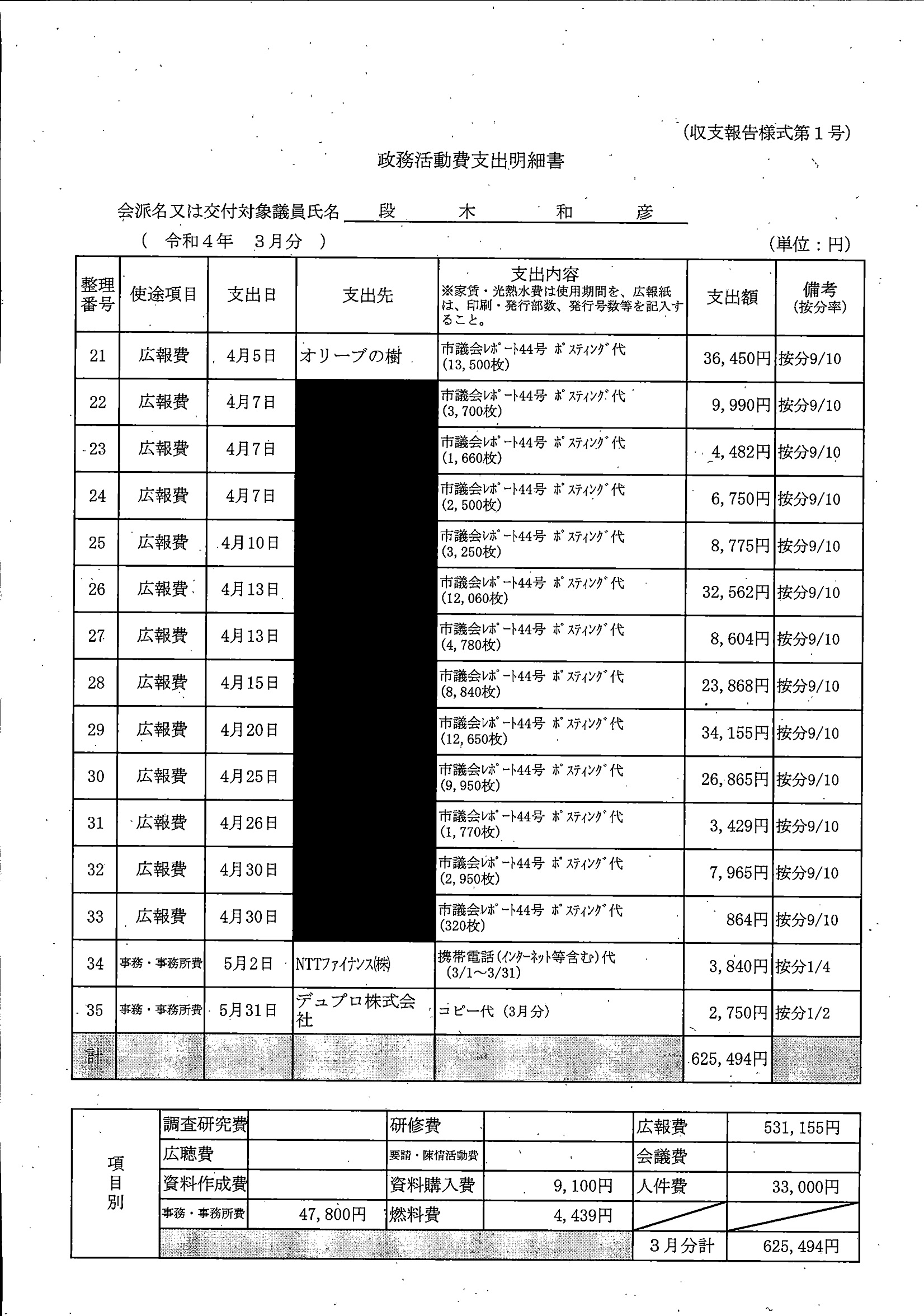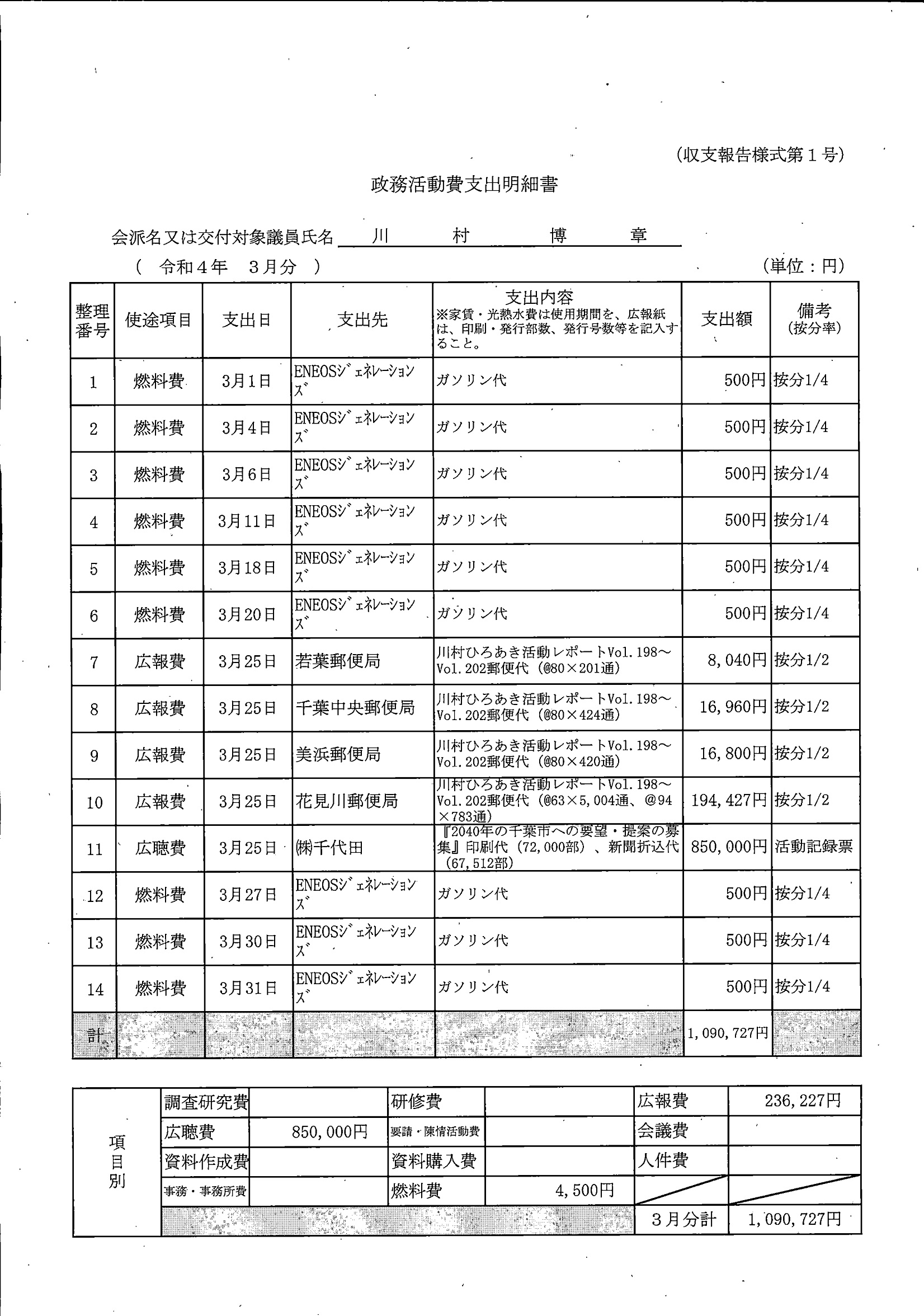 千葉市議会トップページ > 広報・情報公開 > 政務活動費 > 令和3年度交付分(政務活動費収支報告書)