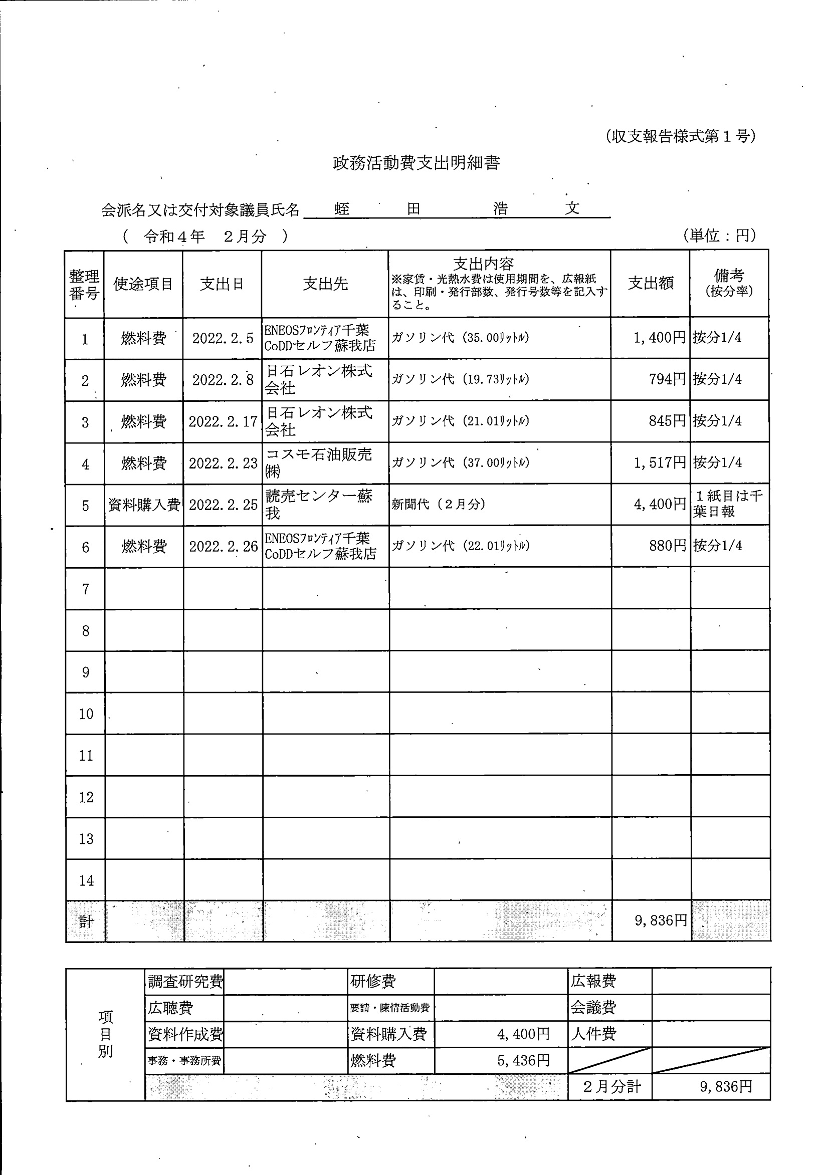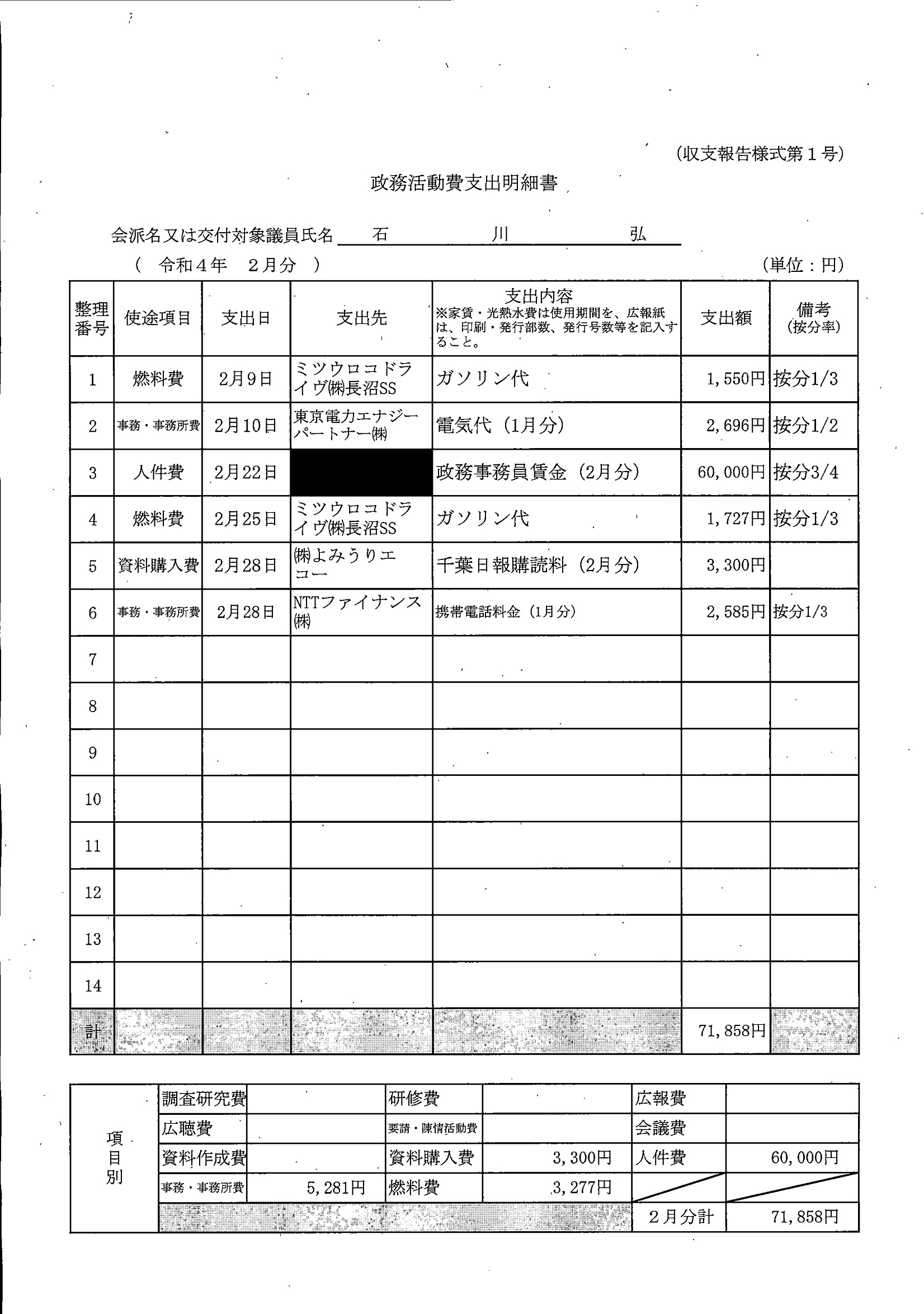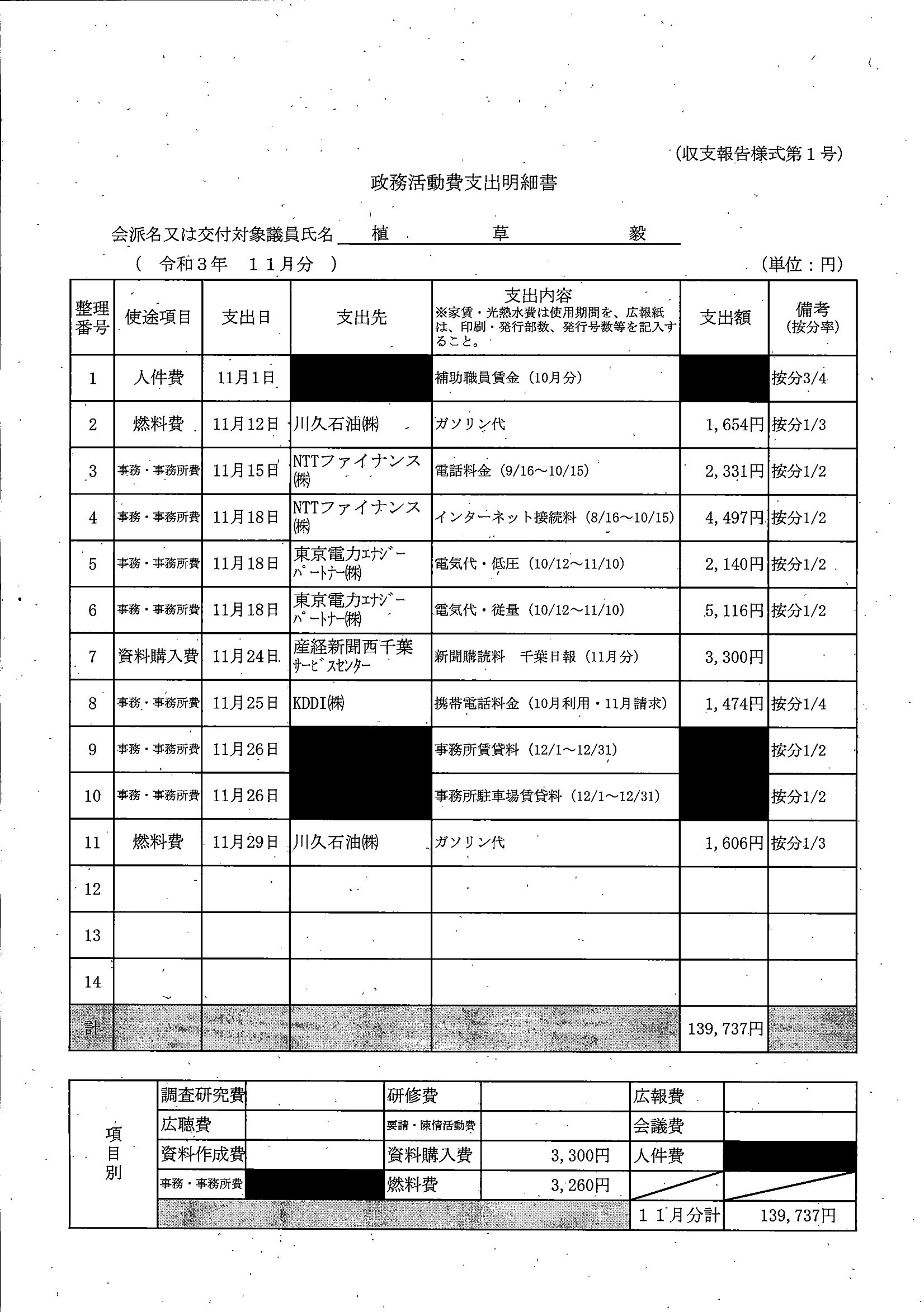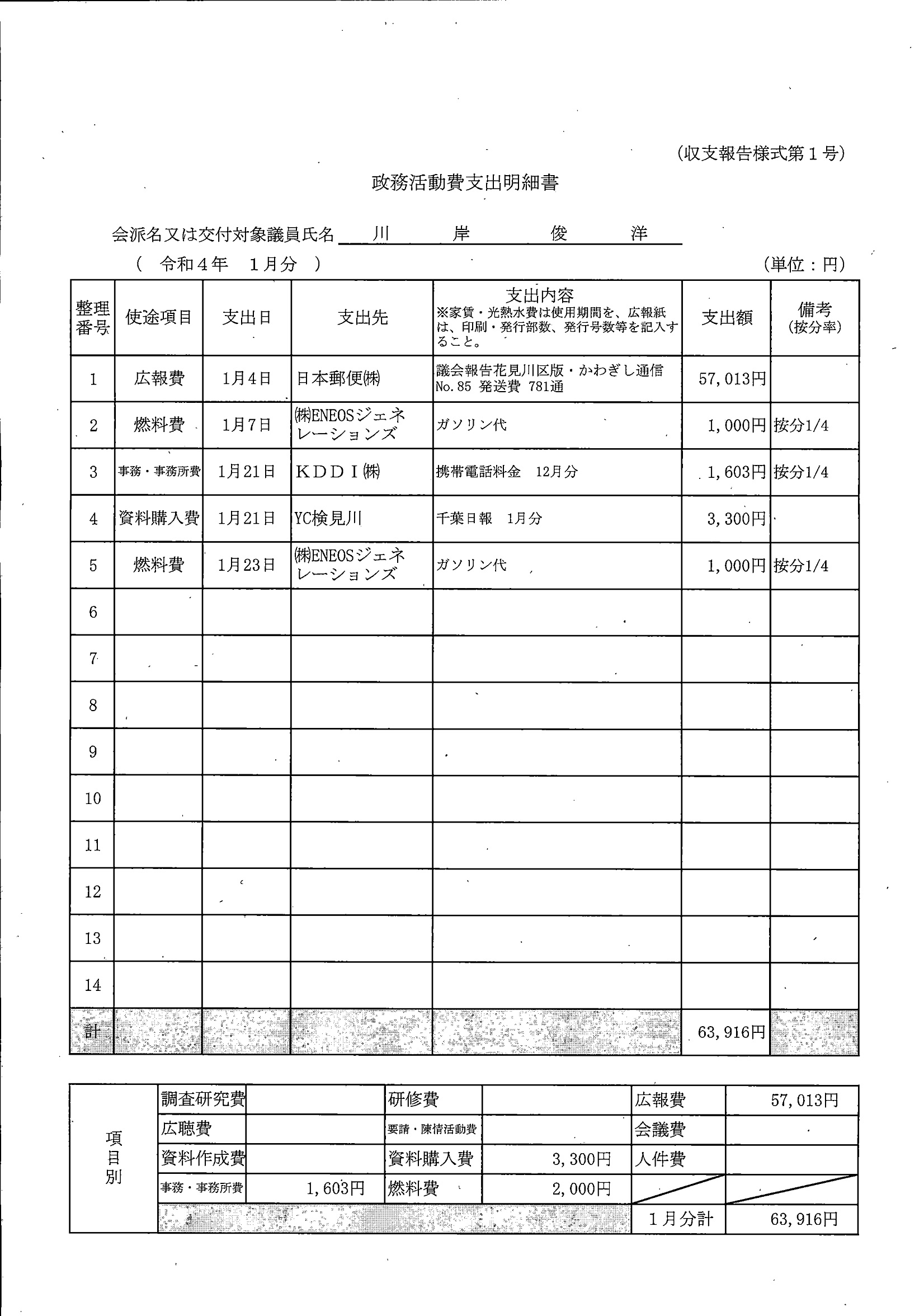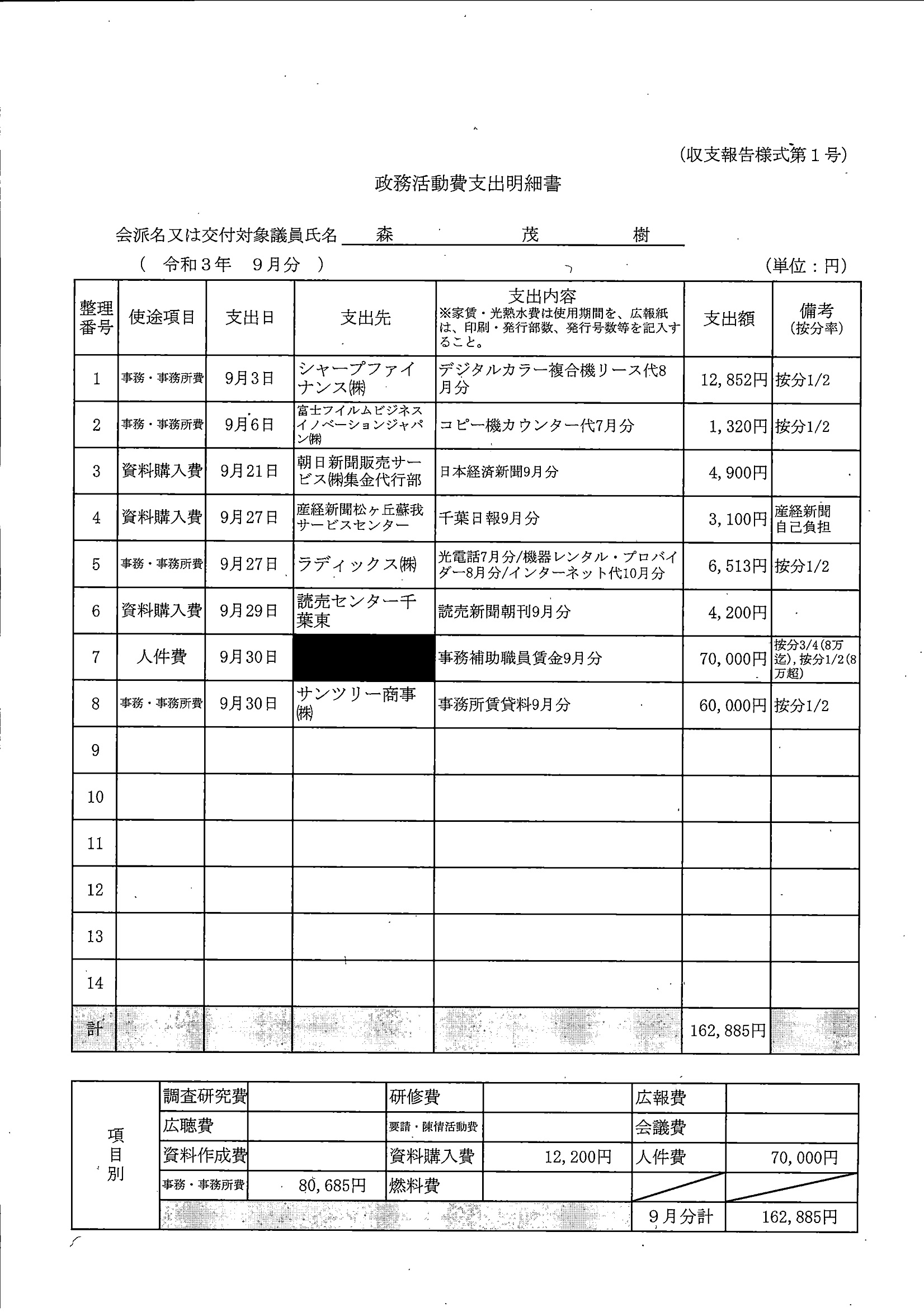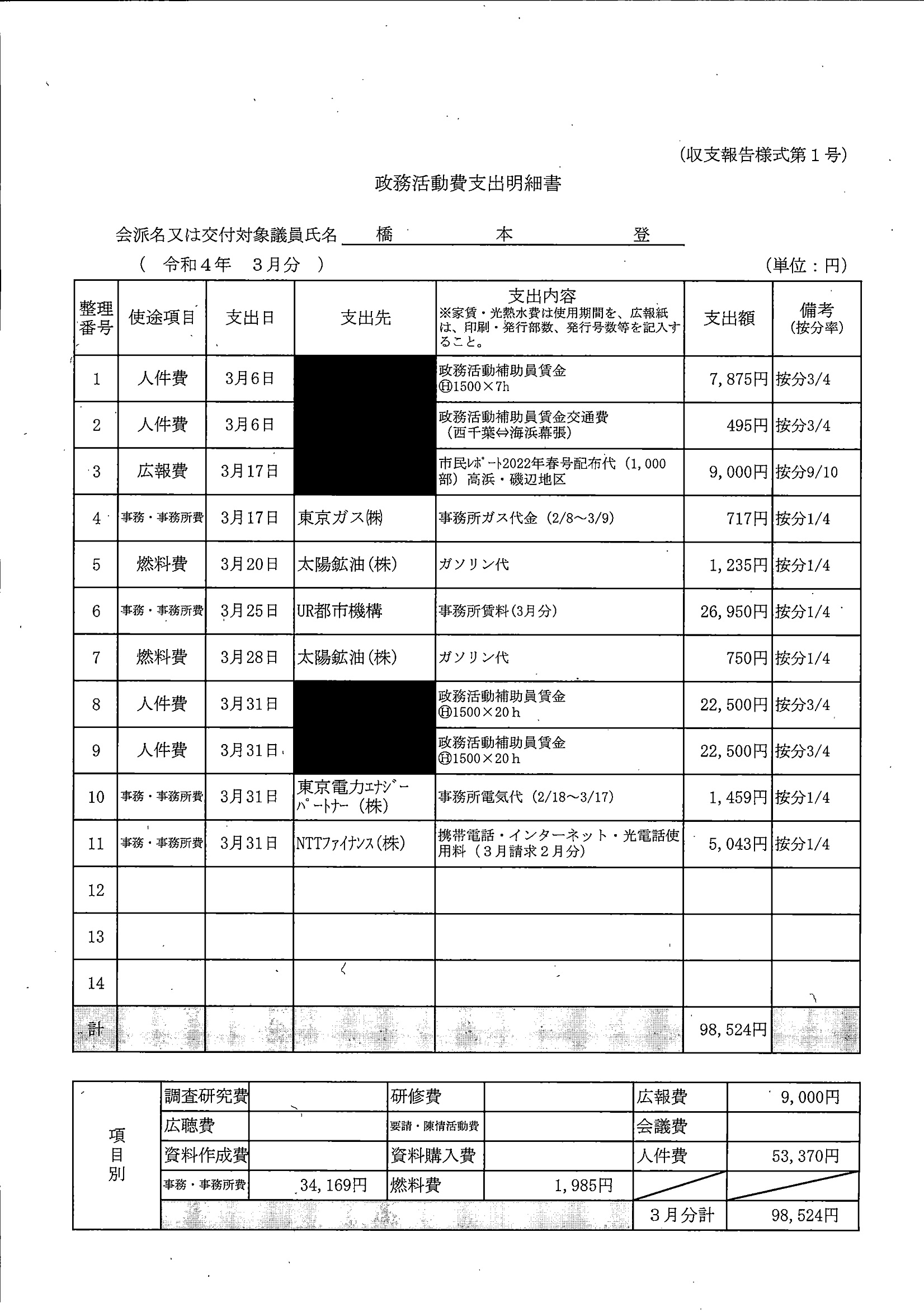 千葉市議会トップページ > 広報・情報公開 > 政務活動費 > 令和3年度交付分(政務活動費収支報告書)