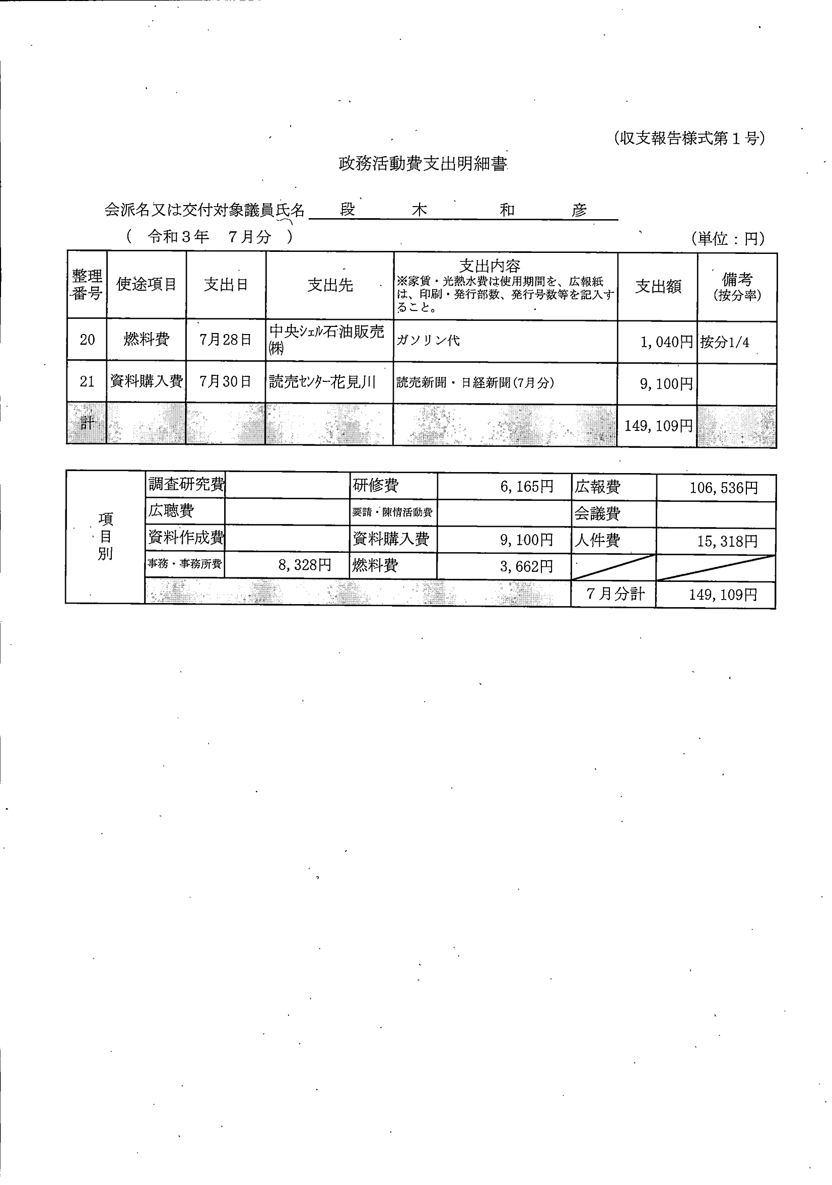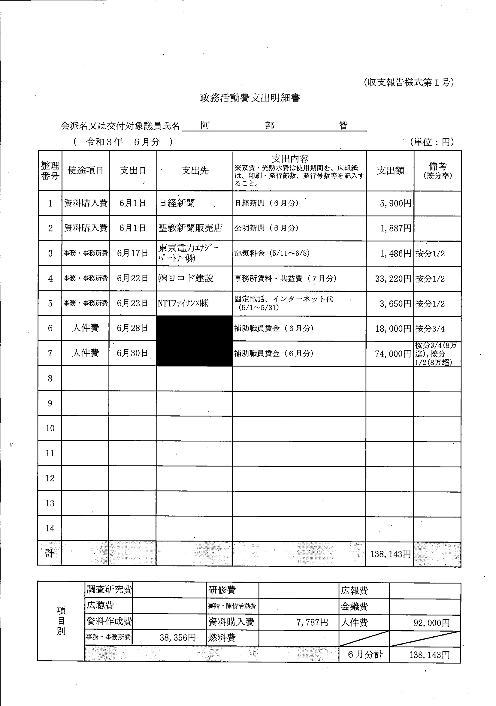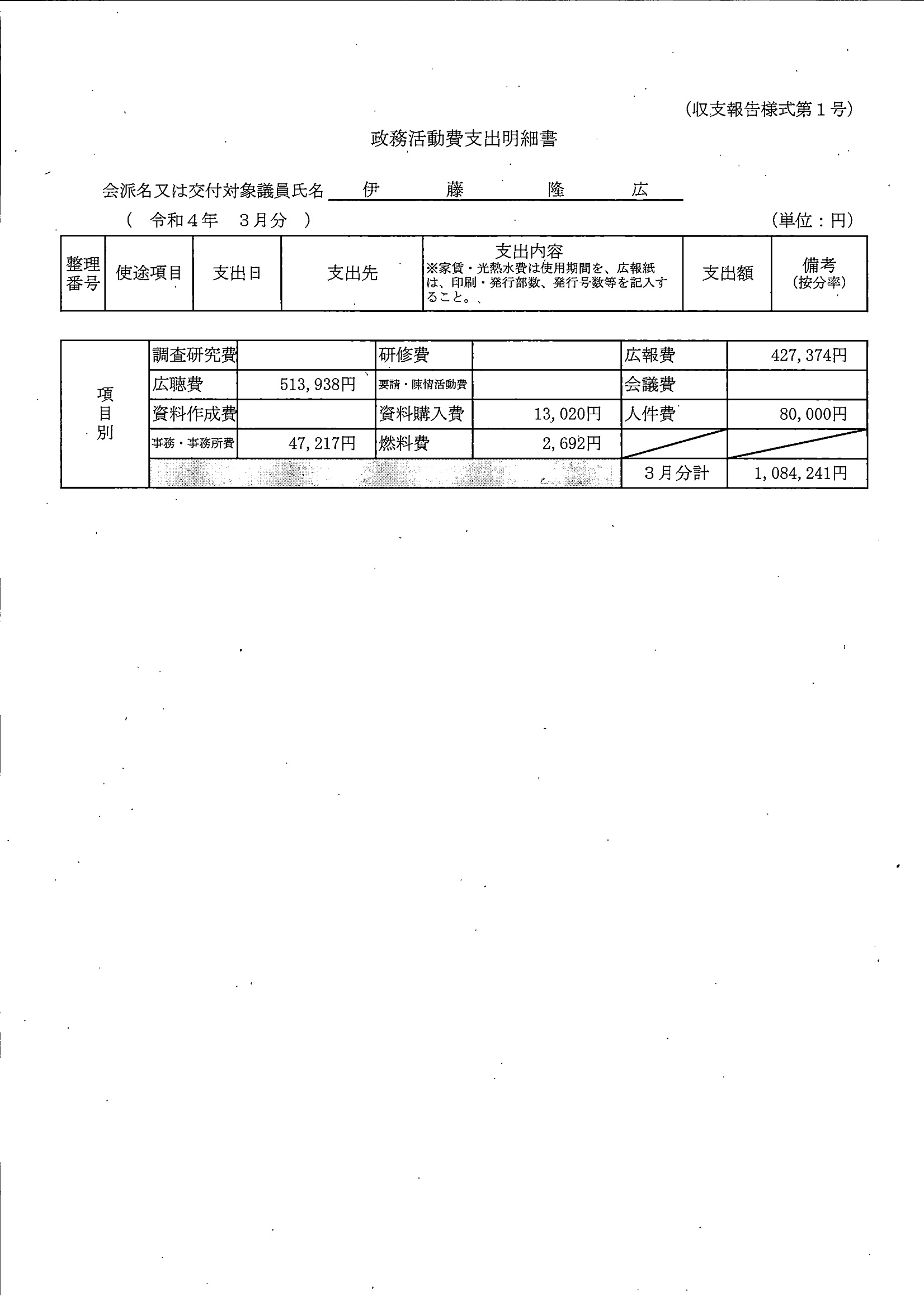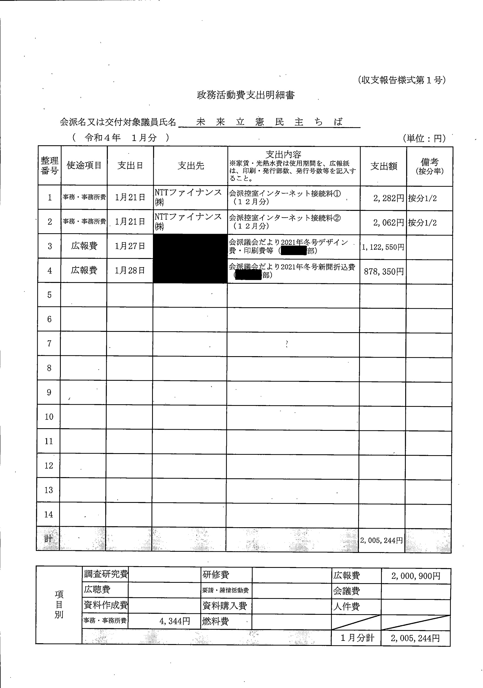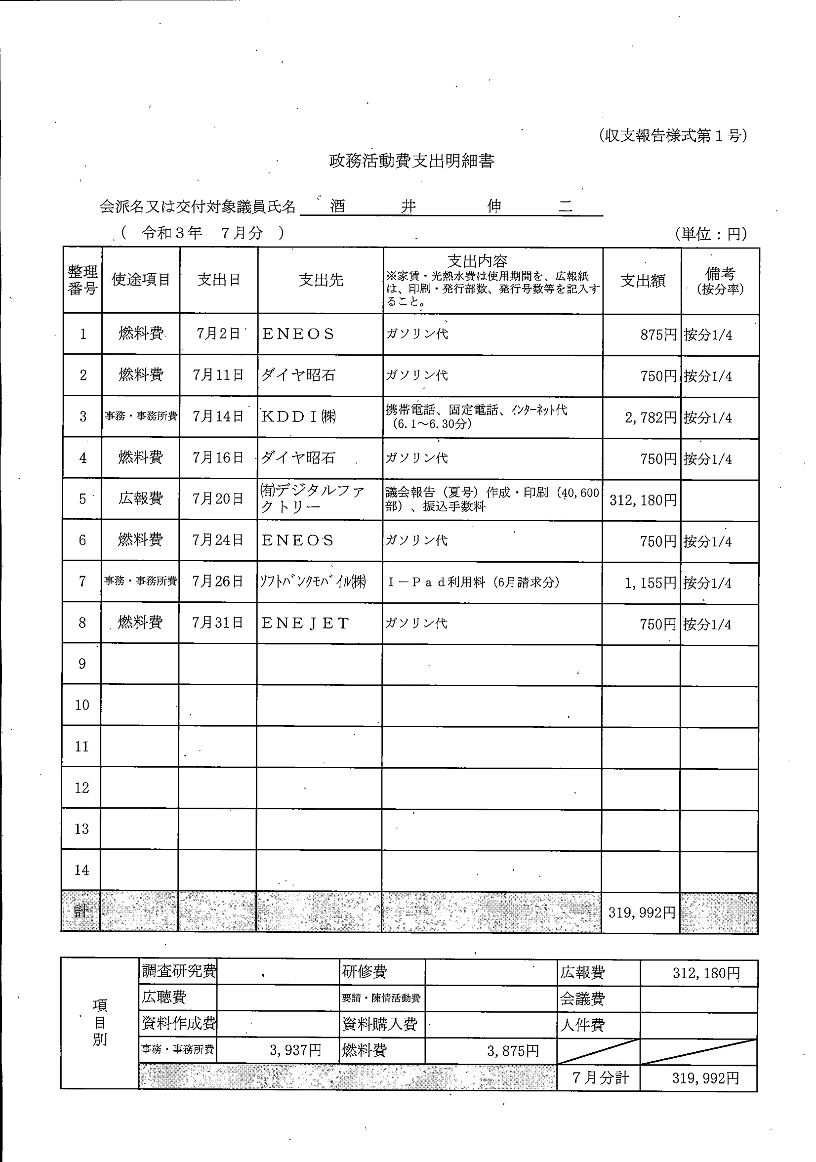 千葉市議会トップページ > 広報・情報公開 > 政務活動費 > 令和3年度交付分(政務活動費収支報告書)