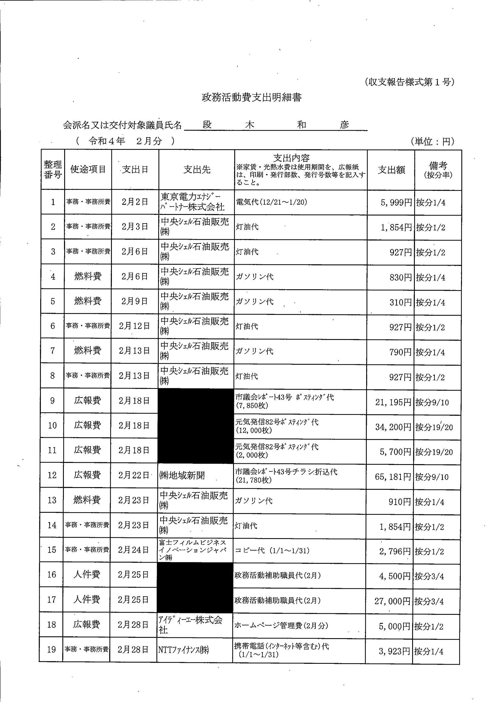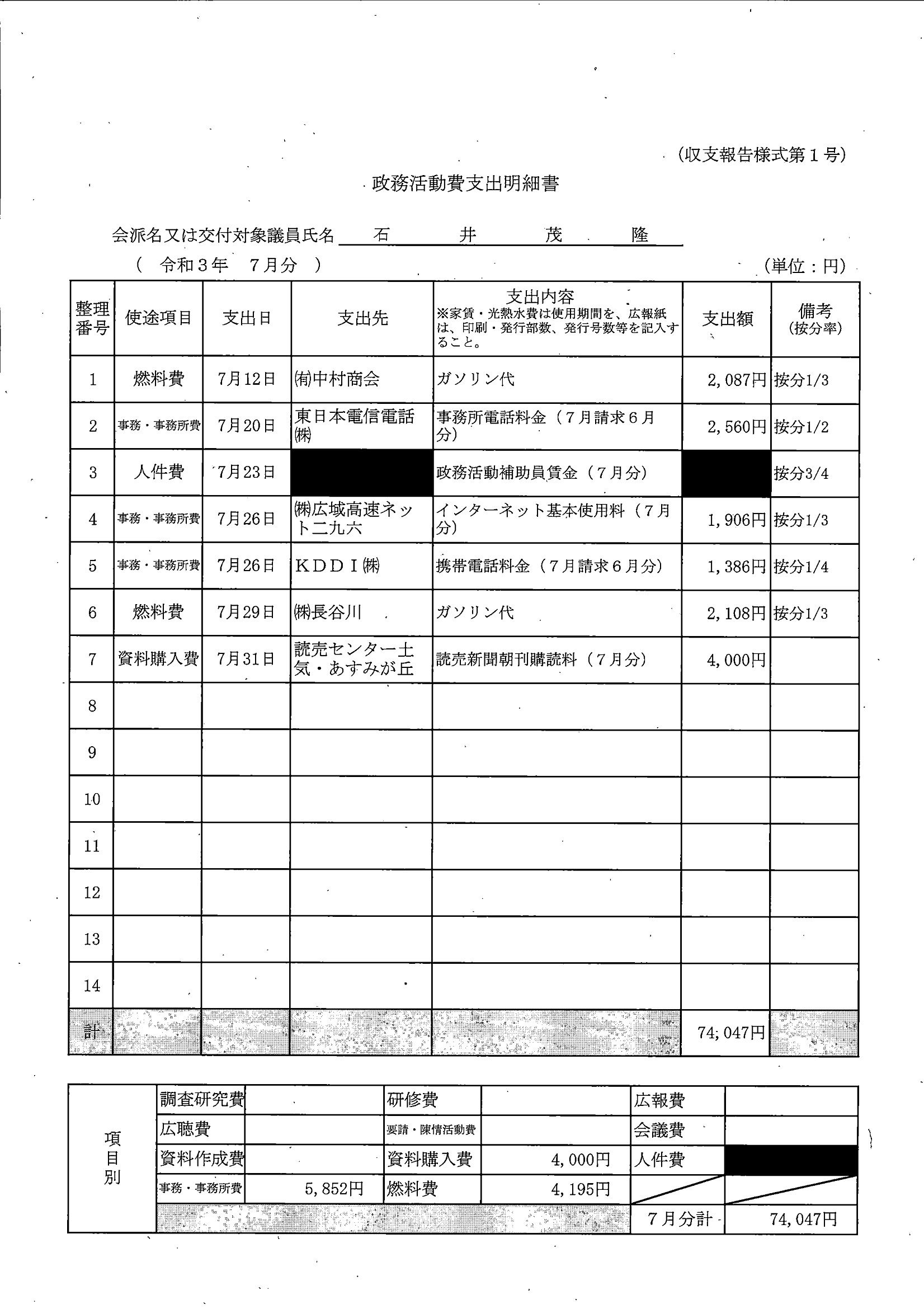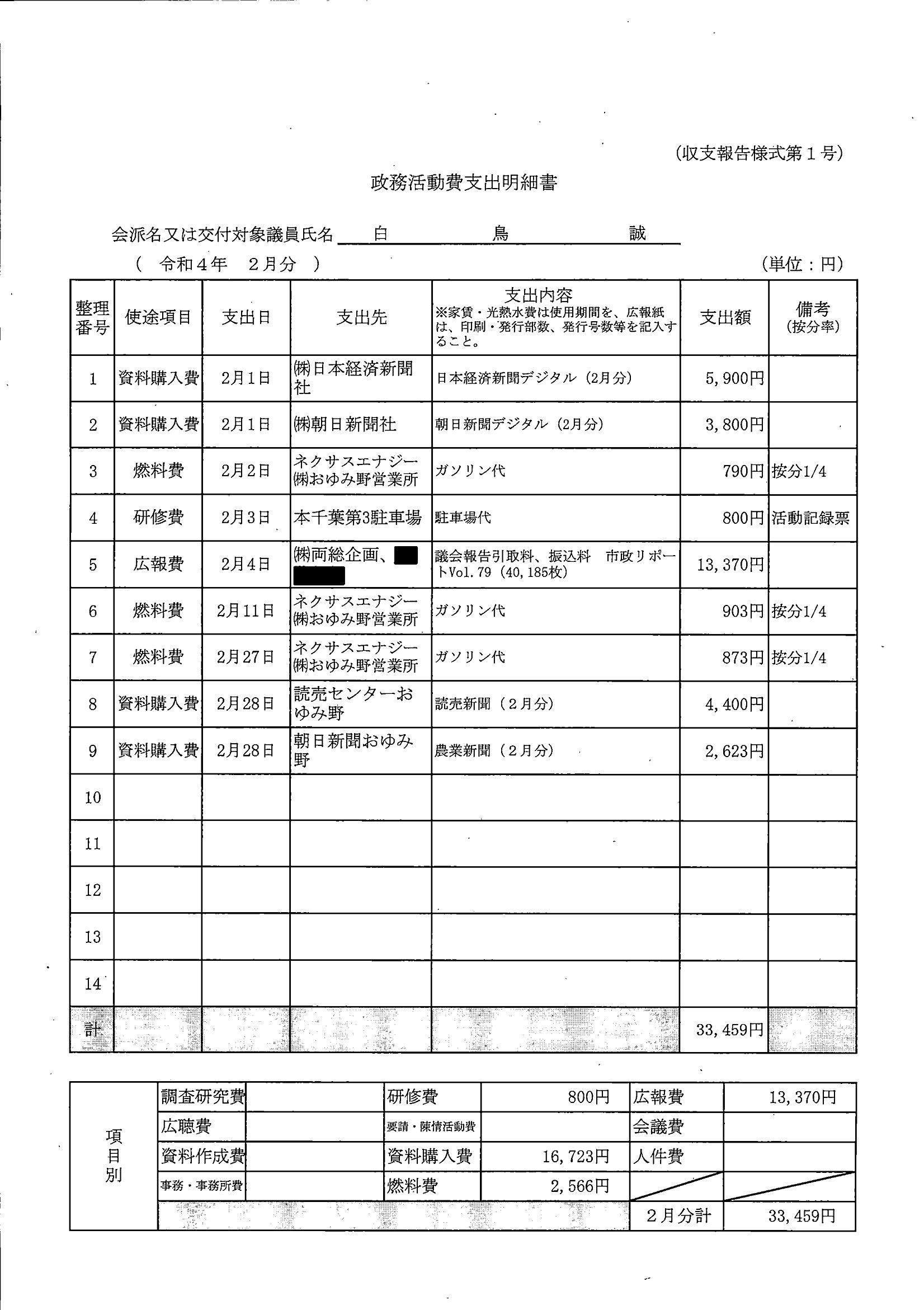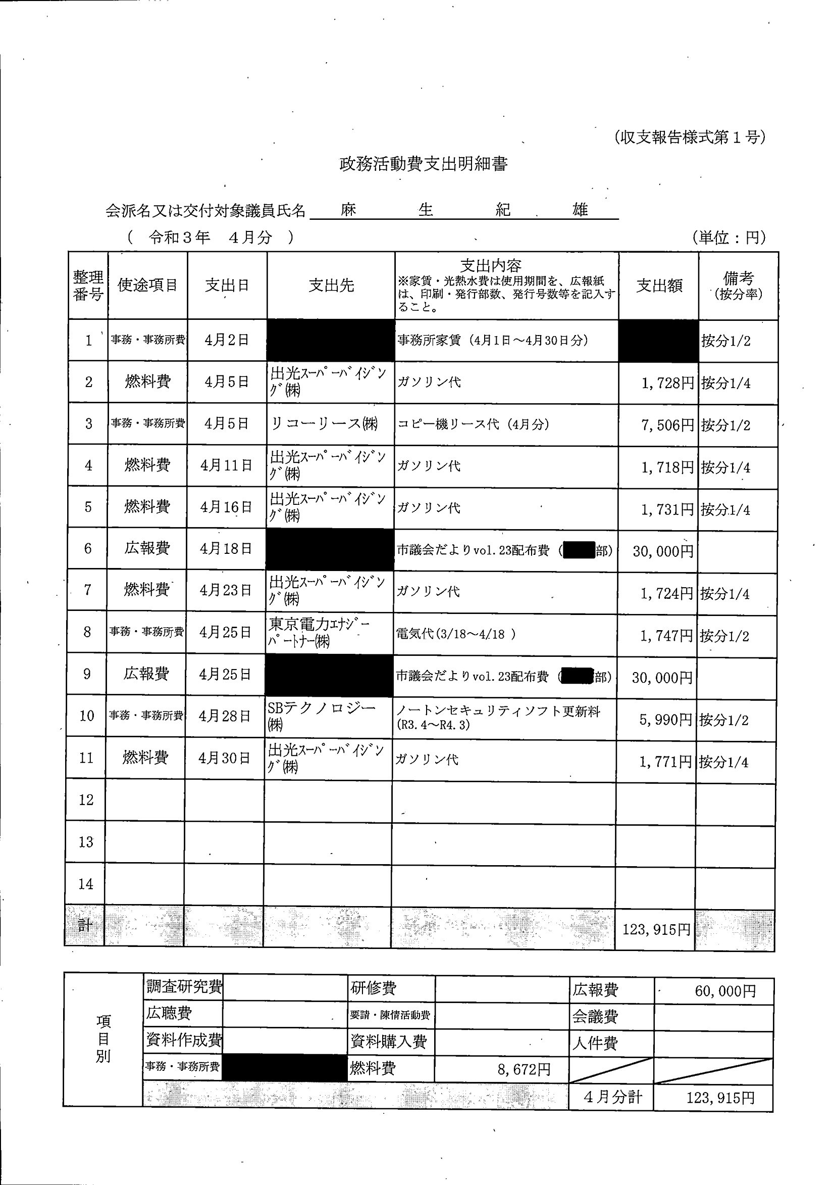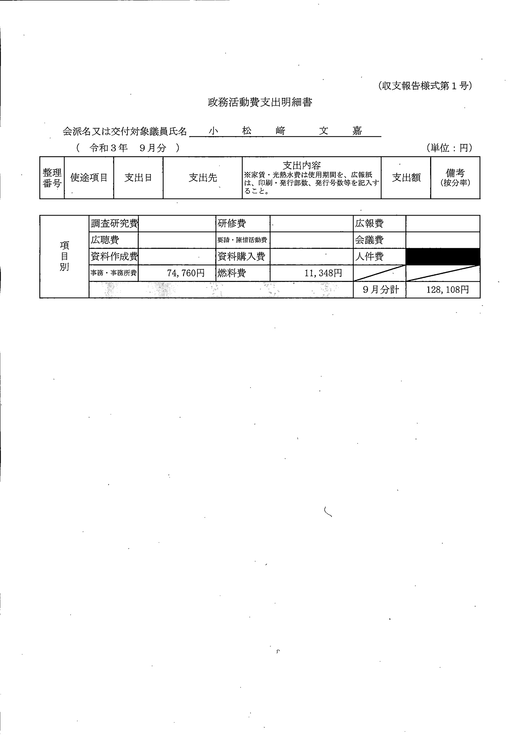 千葉市議会トップページ > 広報・情報公開 > 政務活動費 > 令和3年度交付分(政務活動費収支報告書)