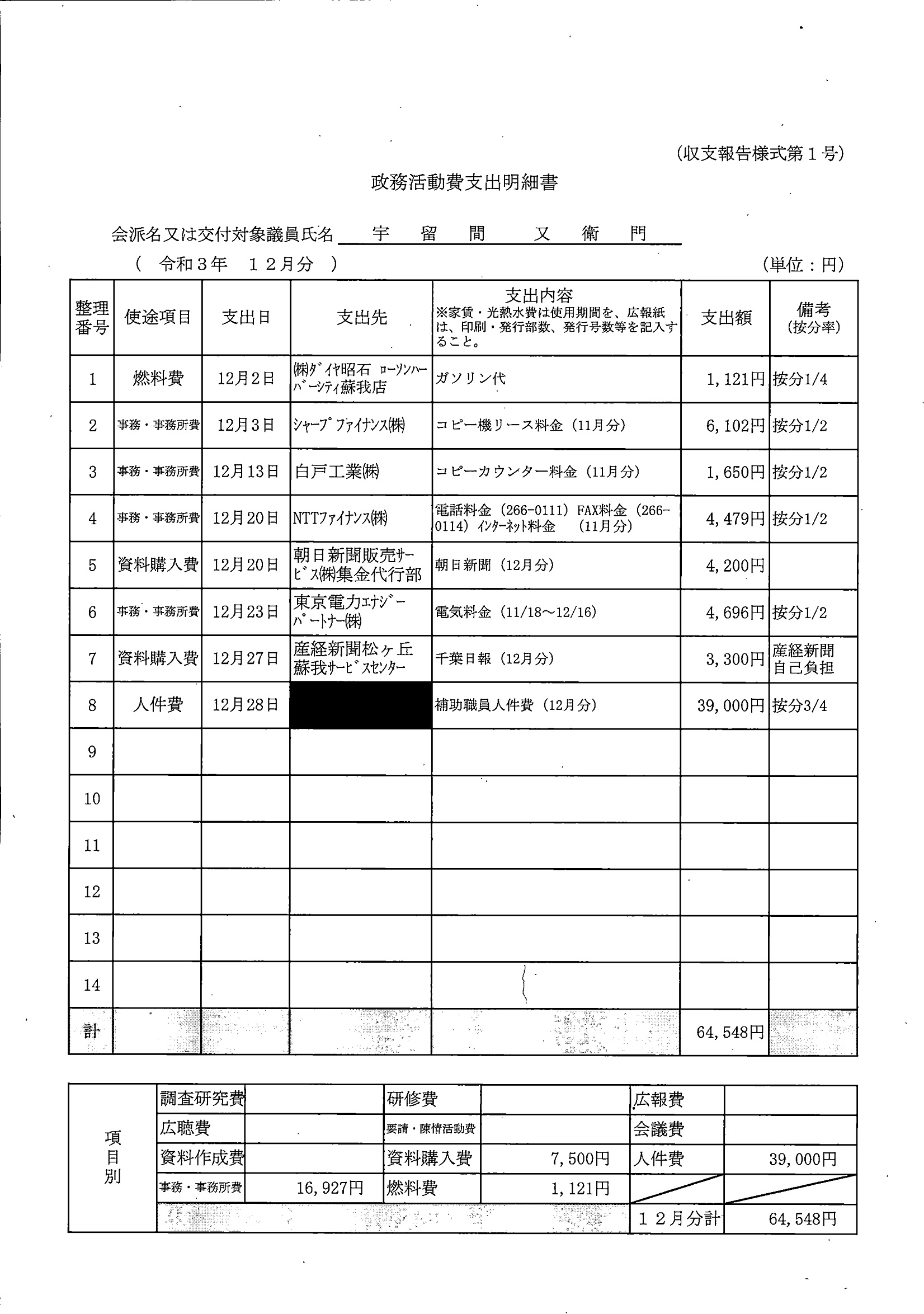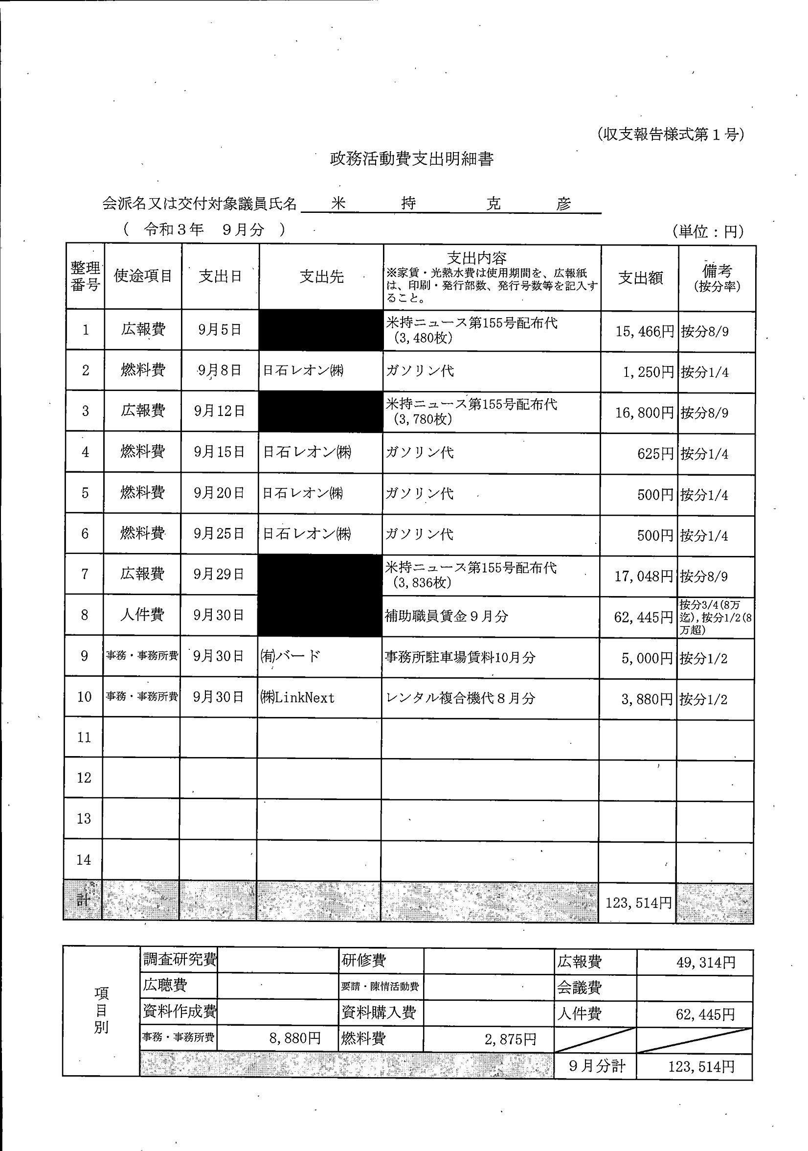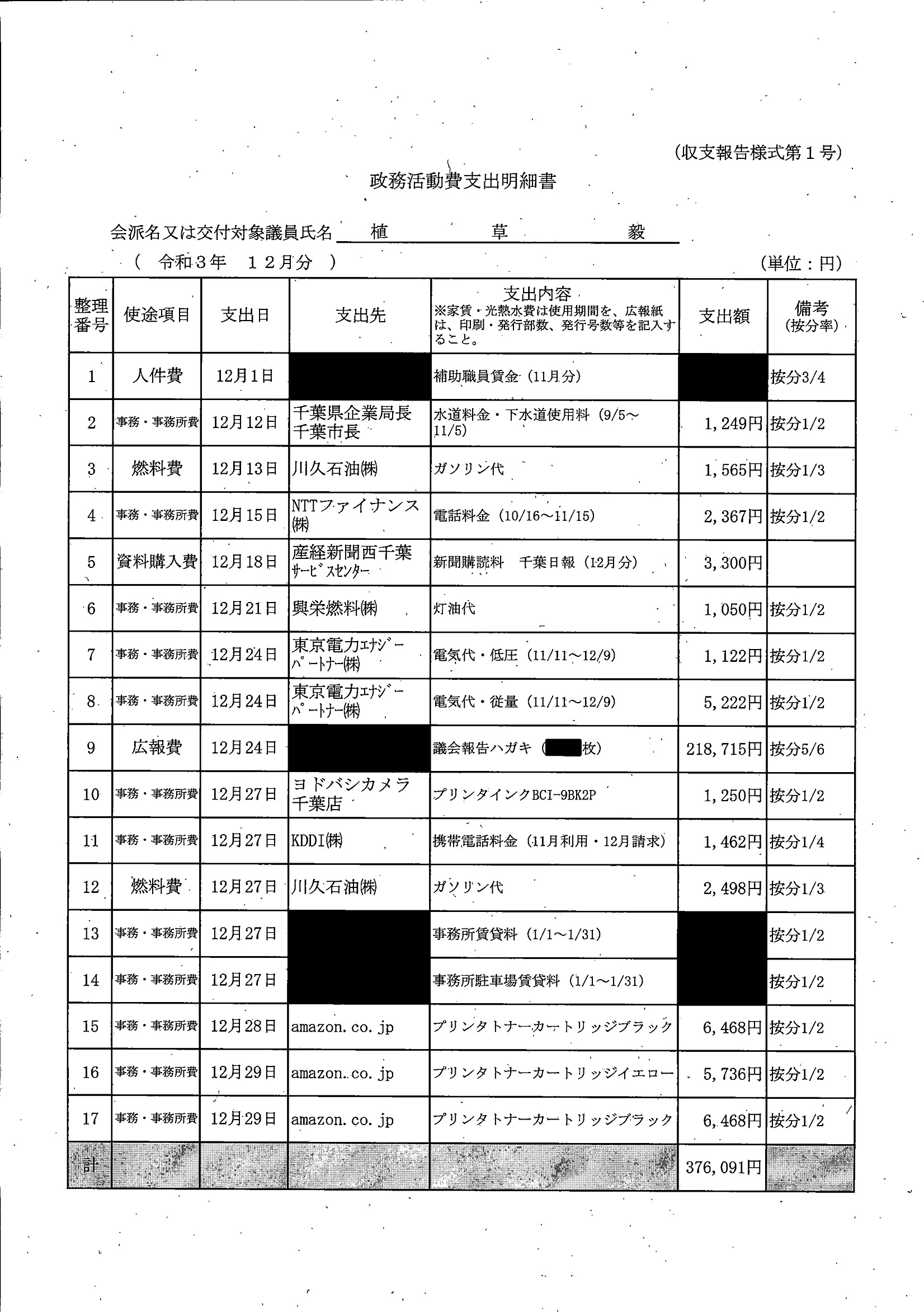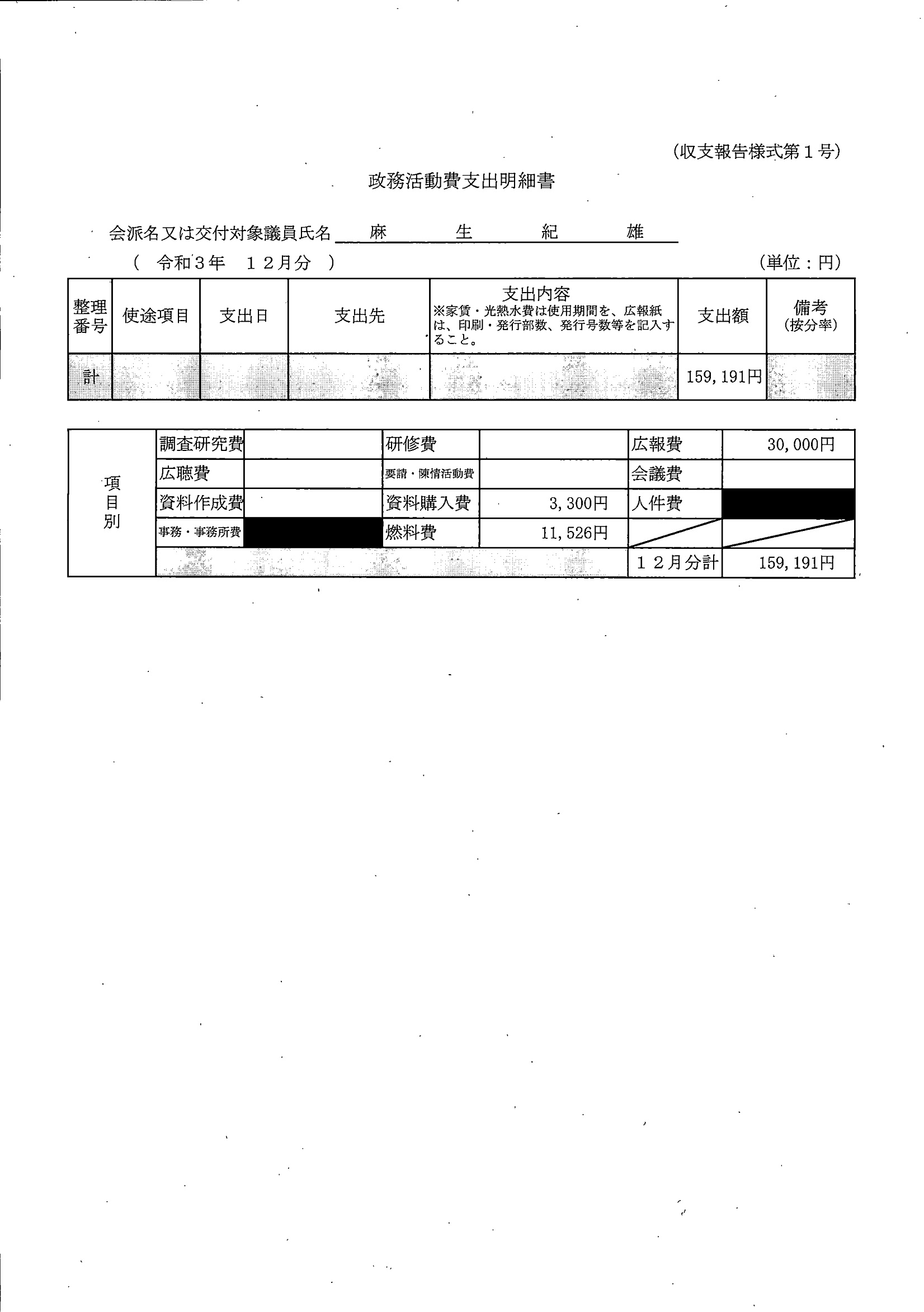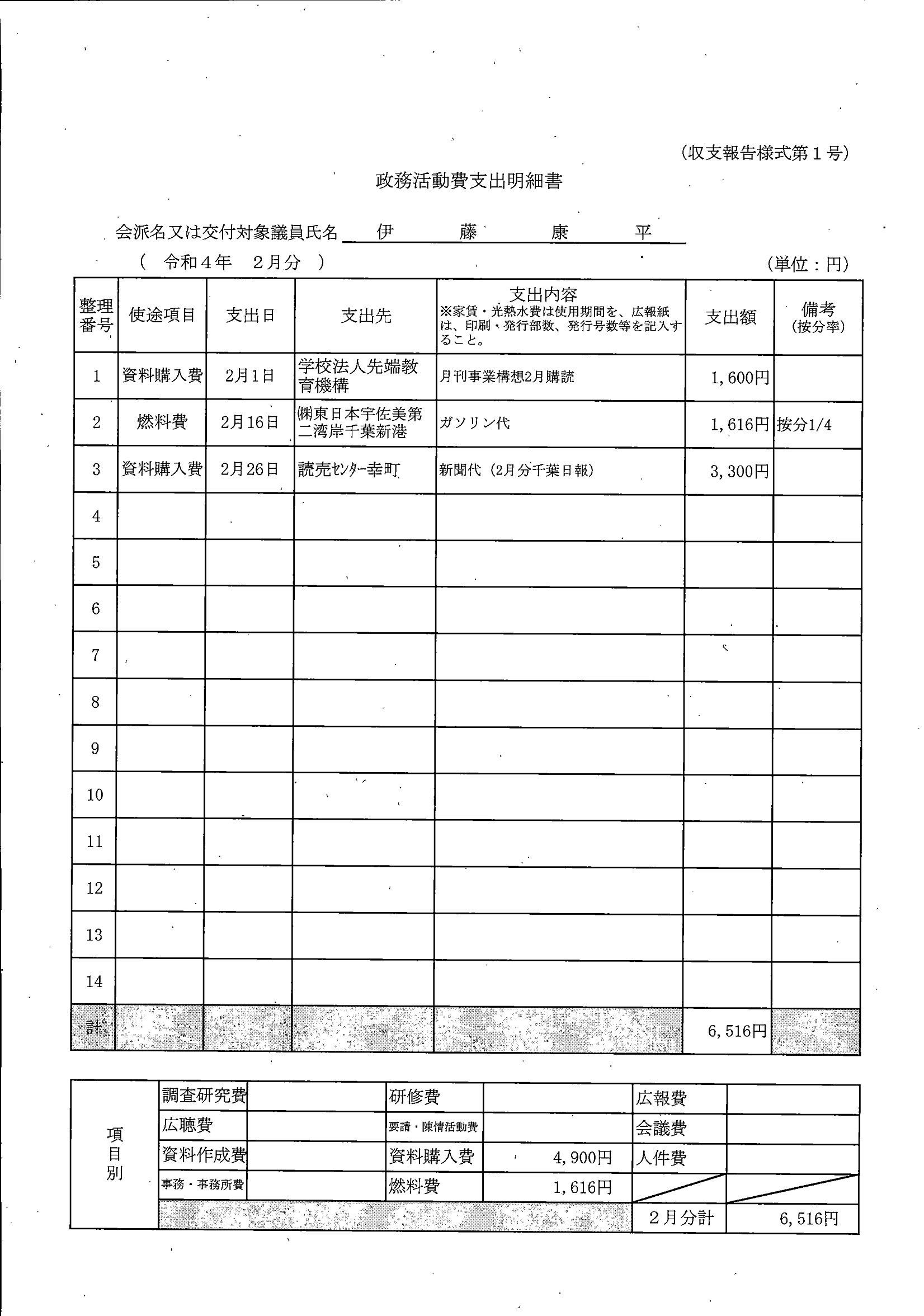 千葉市議会トップページ > 広報・情報公開 > 政務活動費 > 令和3年度交付分(政務活動費収支報告書)