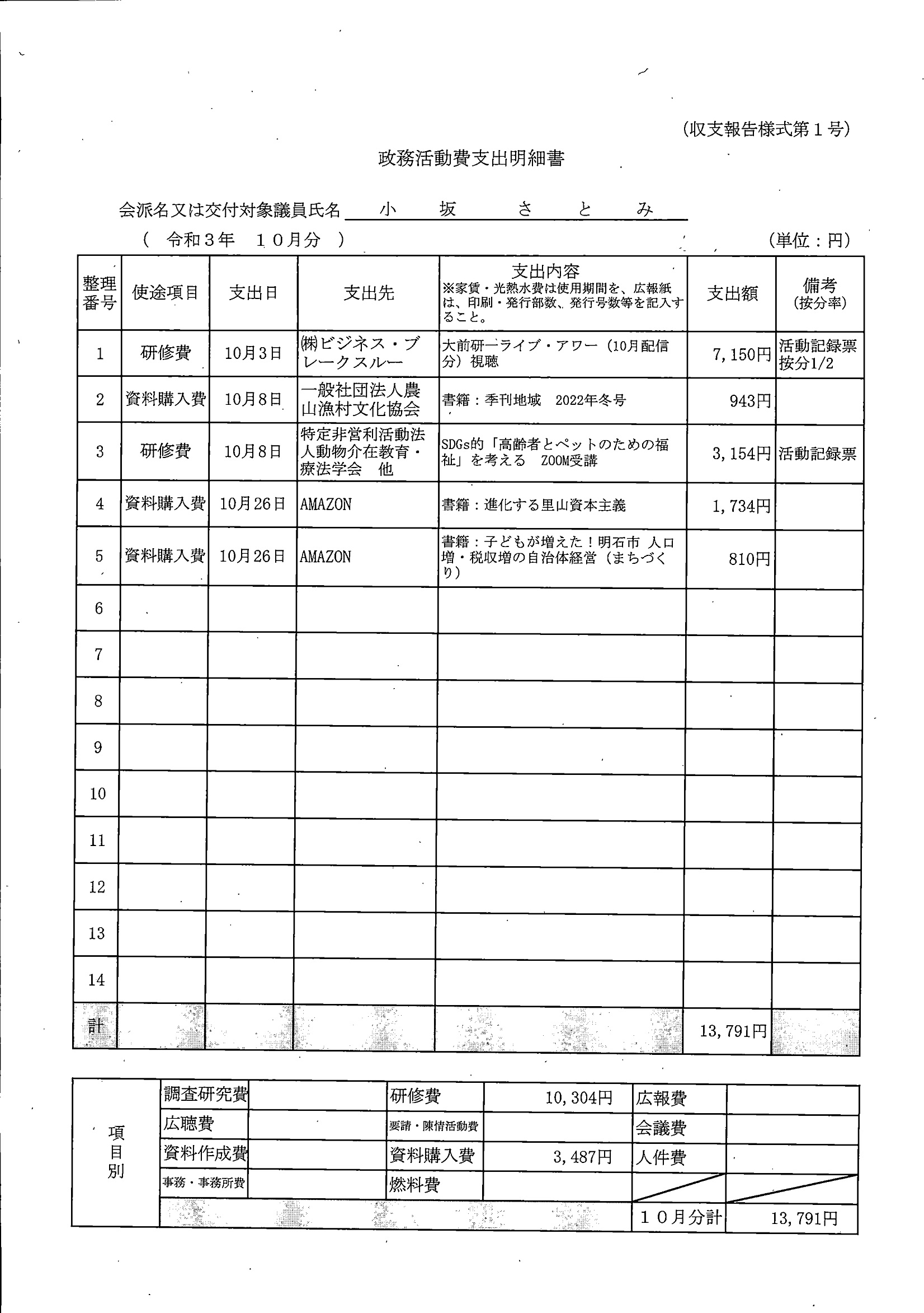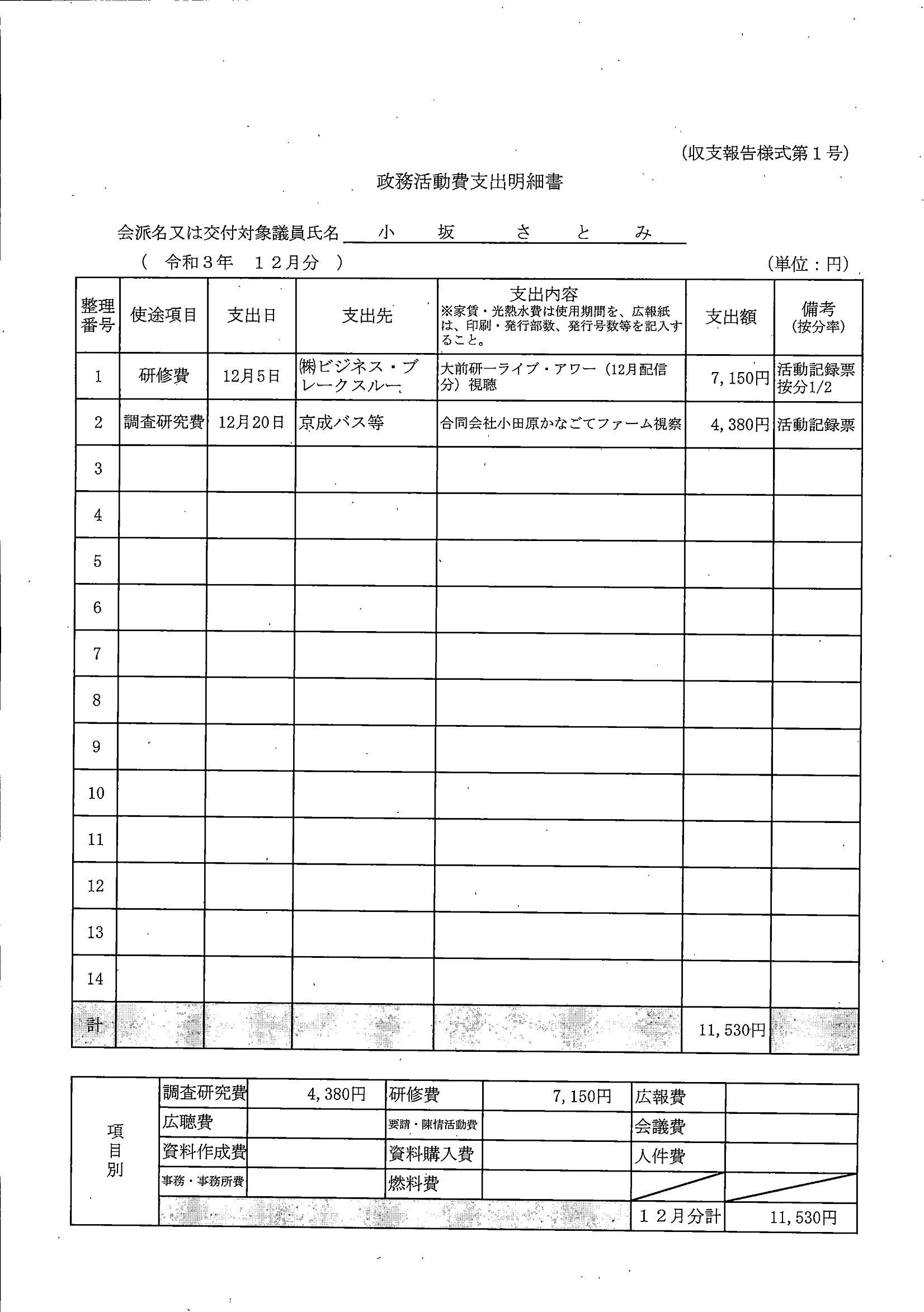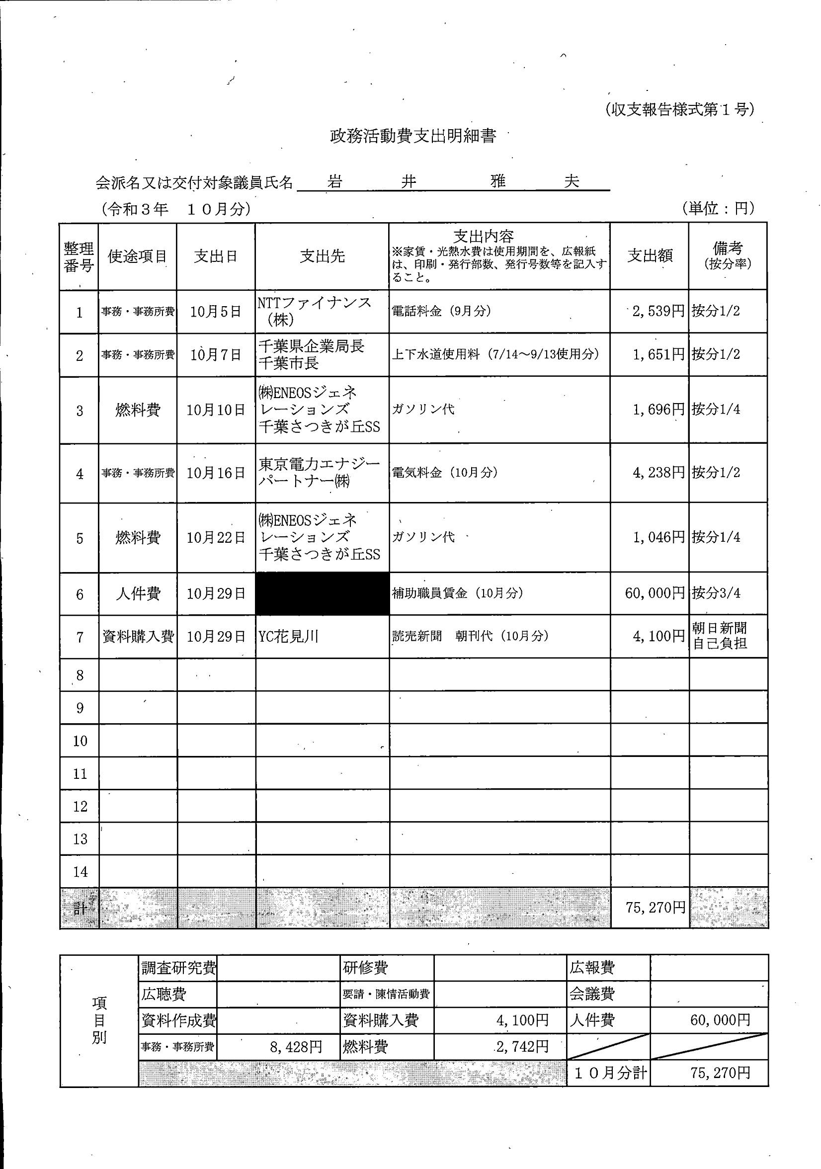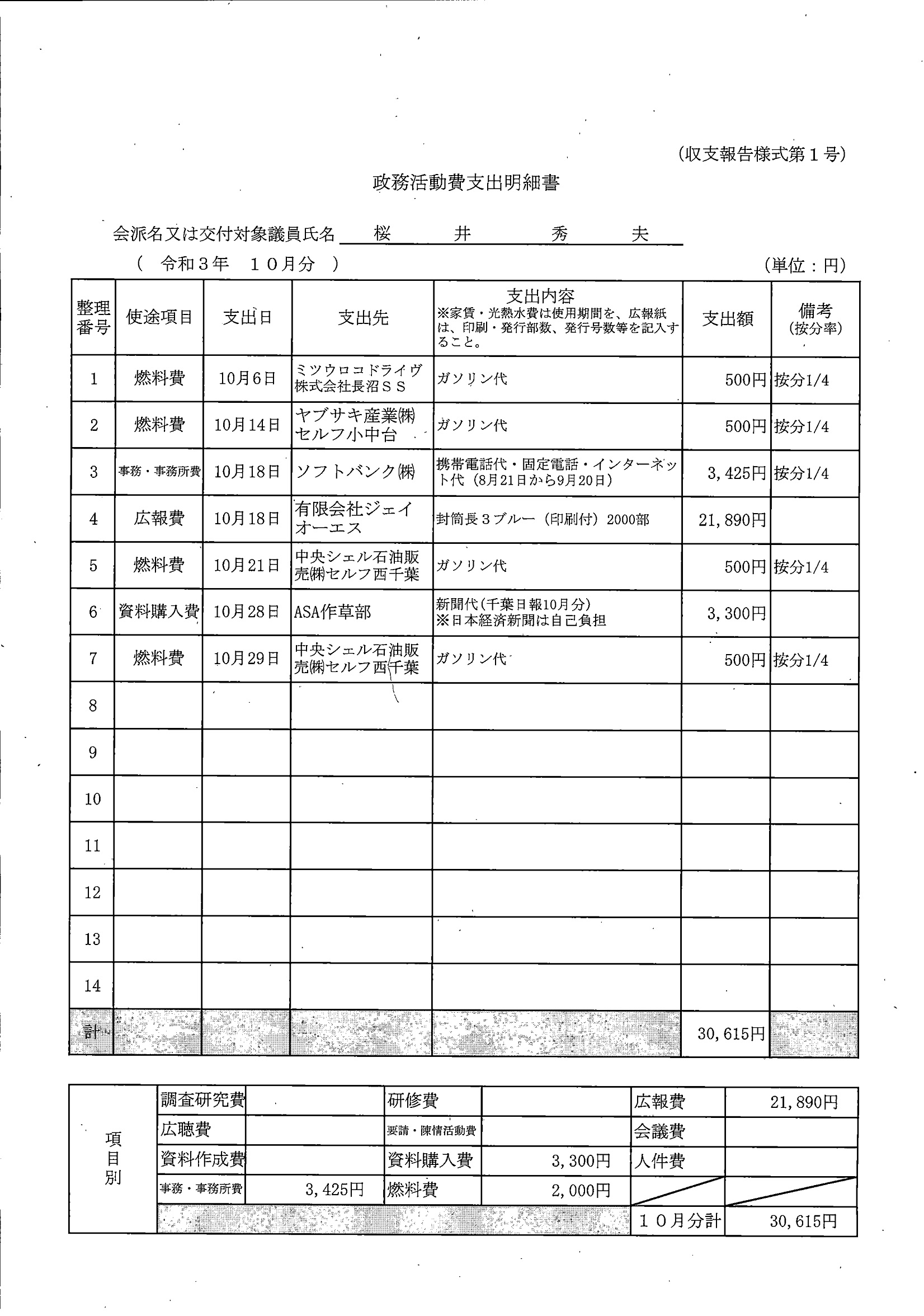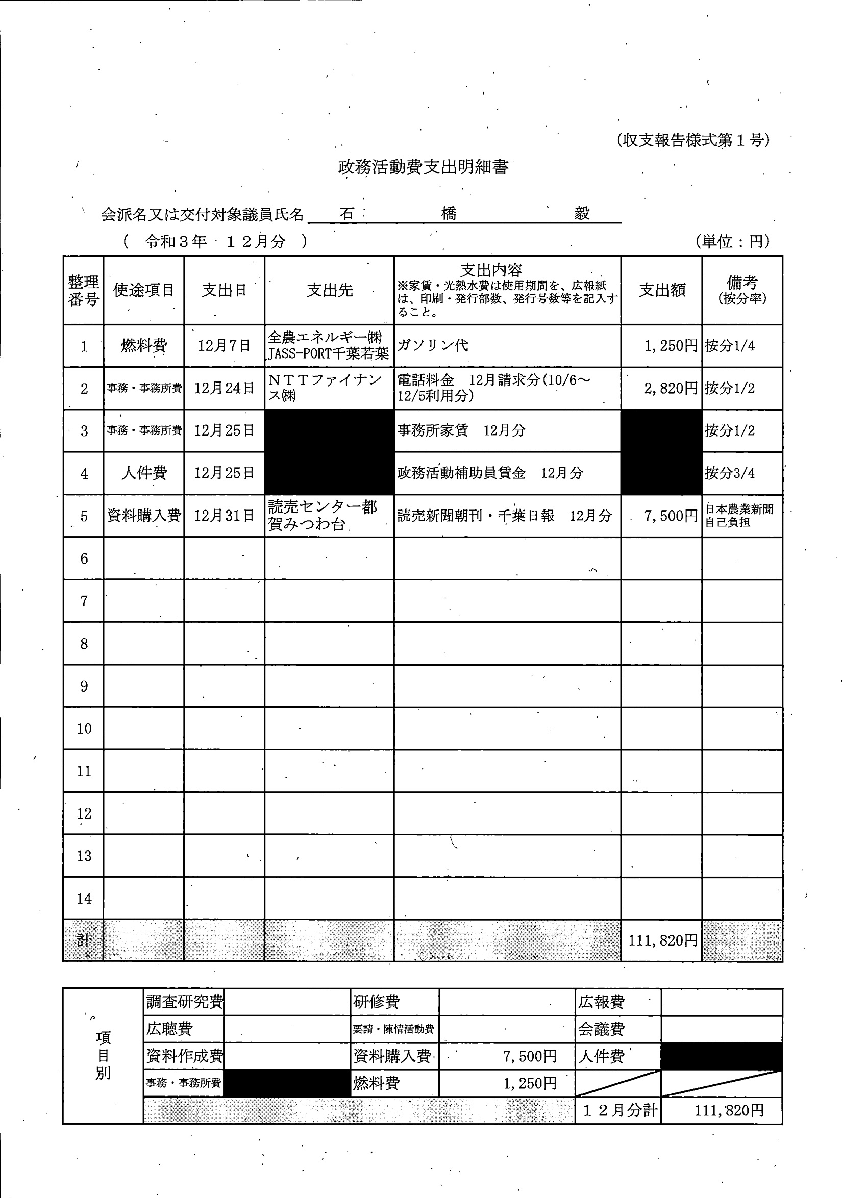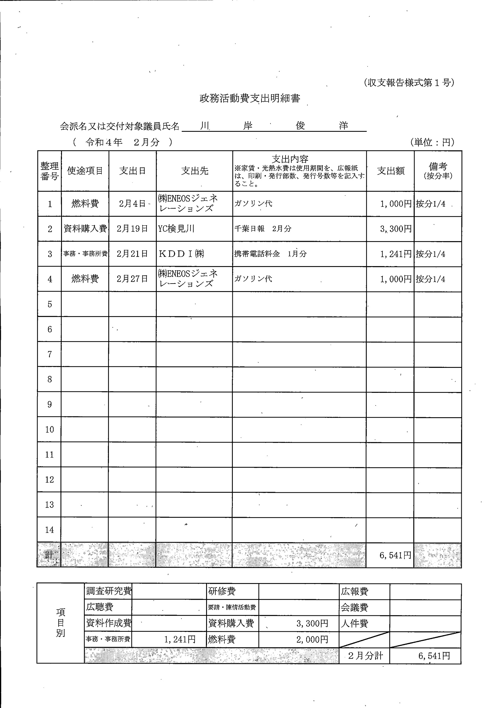 千葉市議会トップページ > 広報・情報公開 > 政務活動費 > 令和3年度交付分(政務活動費収支報告書)