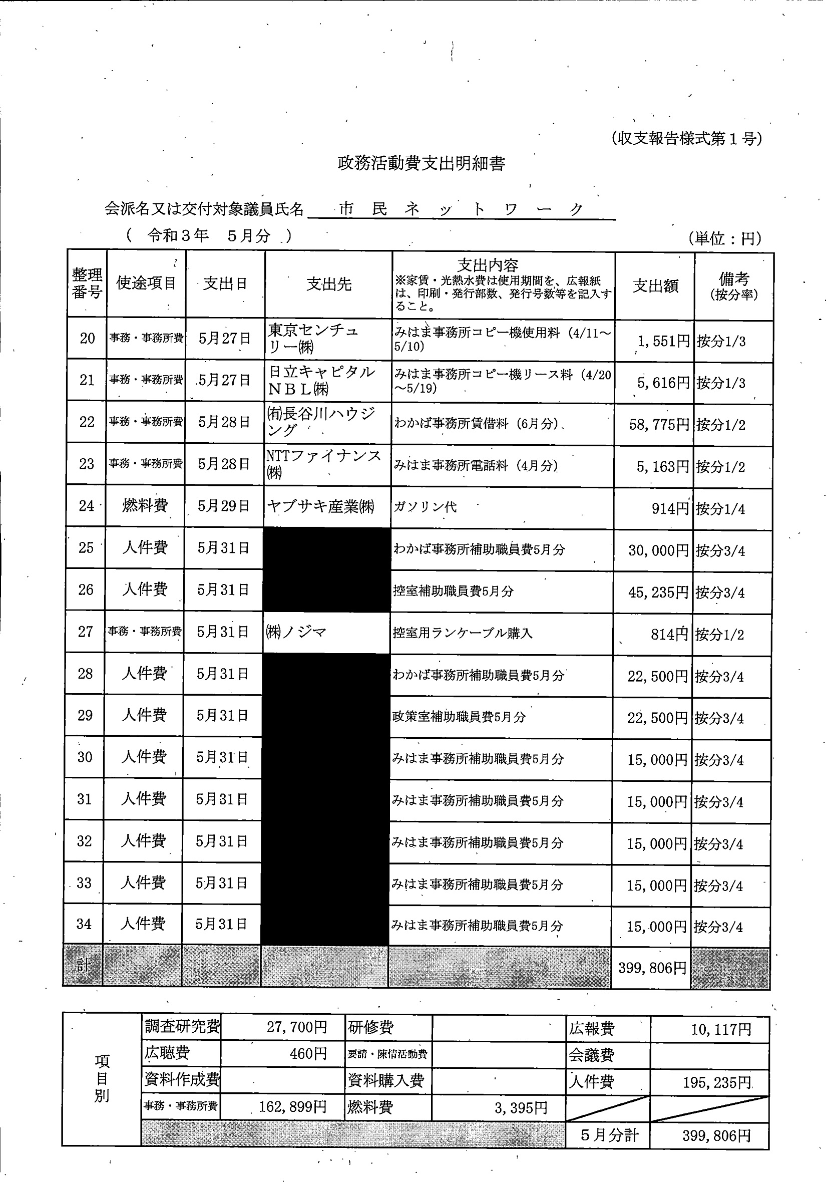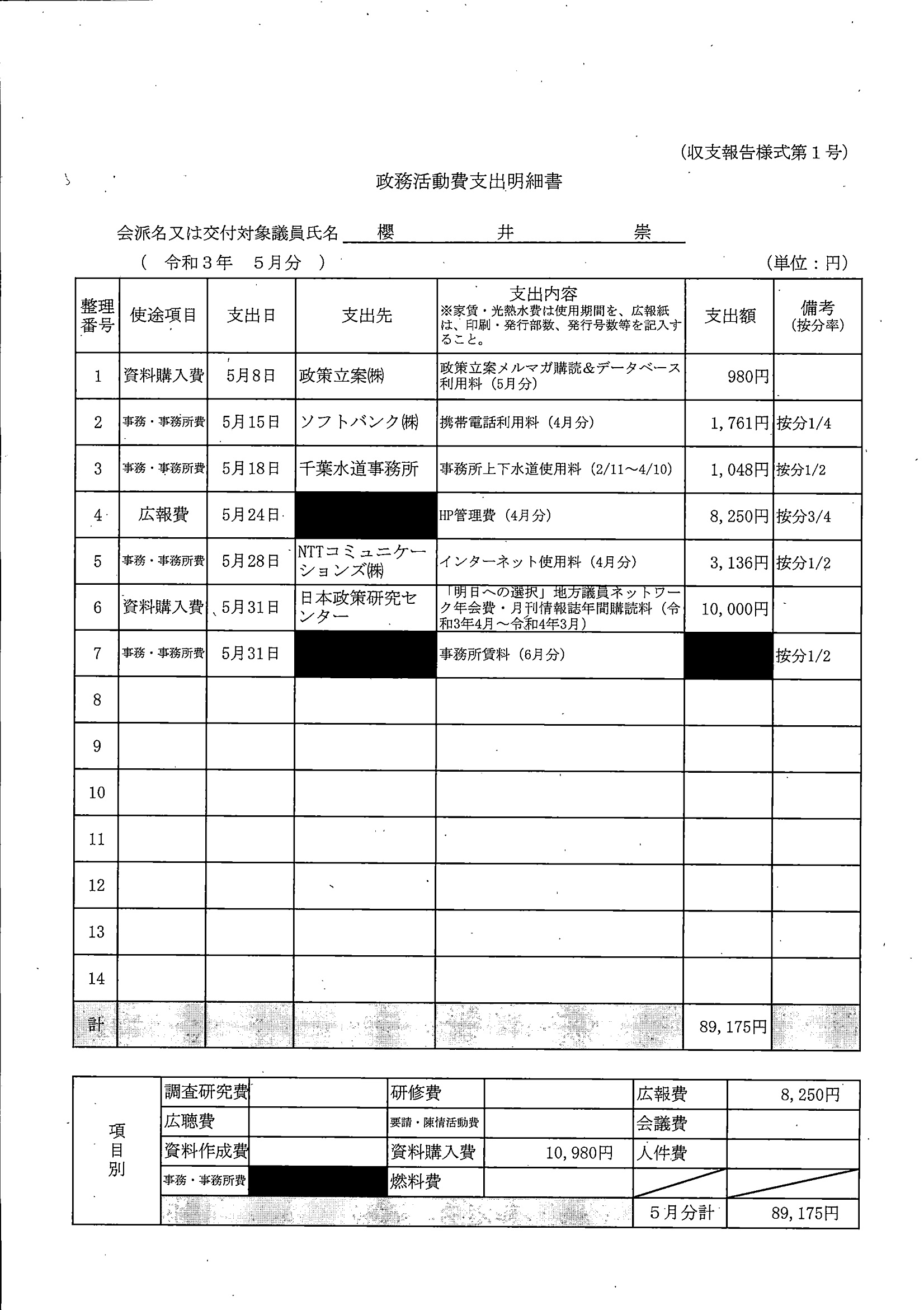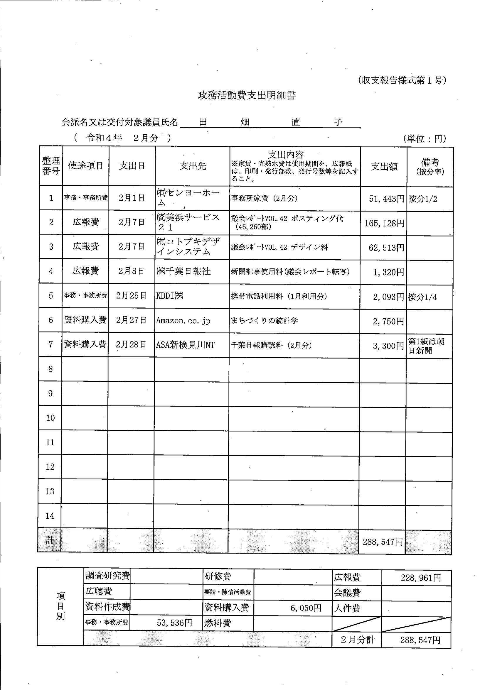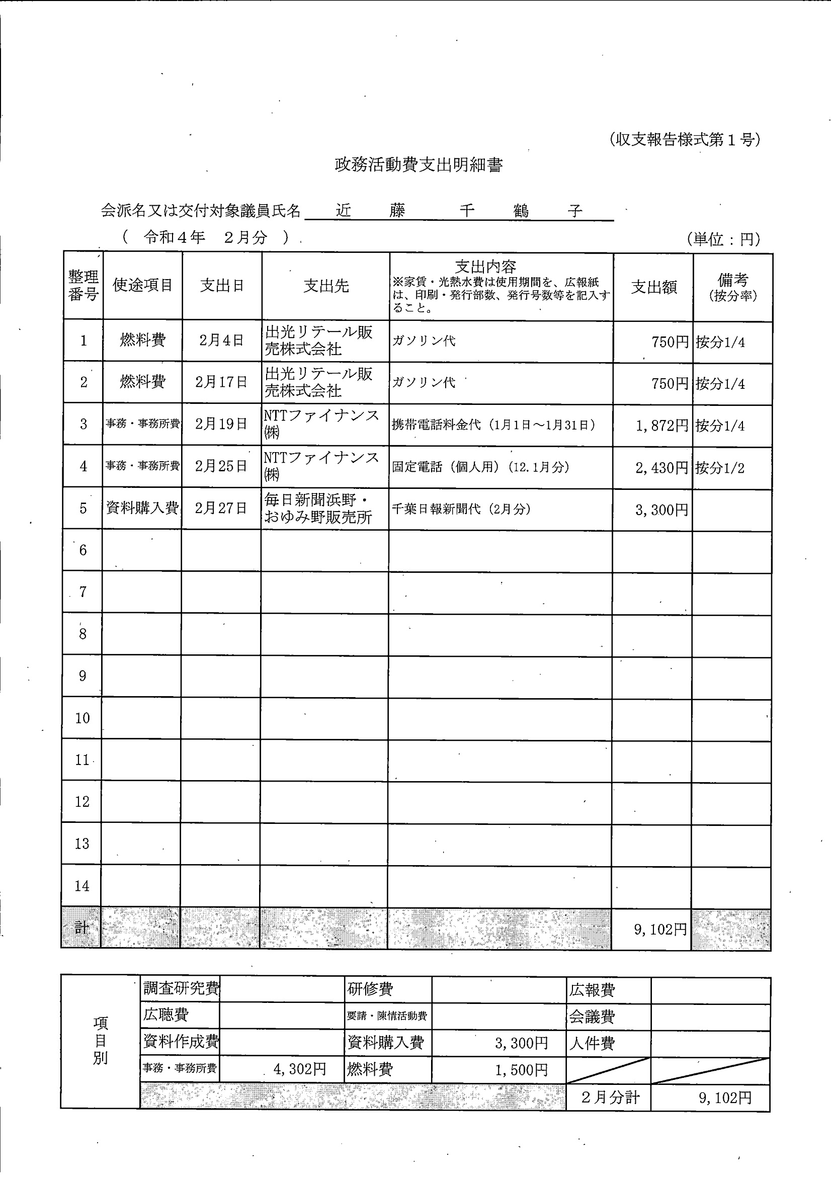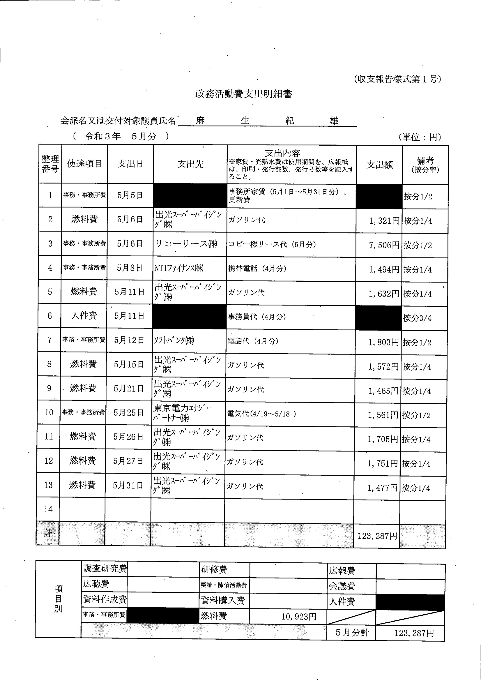 千葉市議会トップページ > 広報・情報公開 > 政務活動費 > 令和3年度交付分(政務活動費収支報告書)