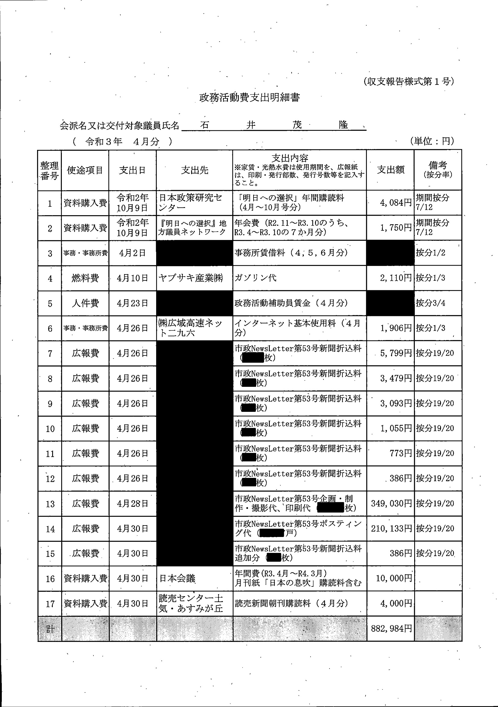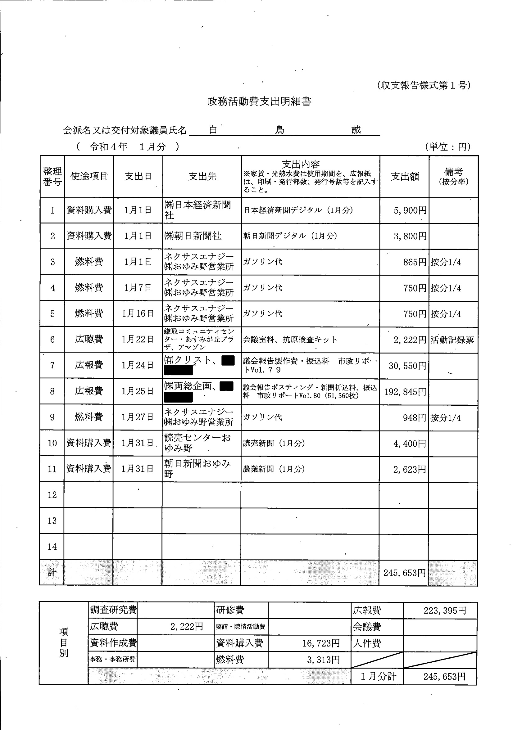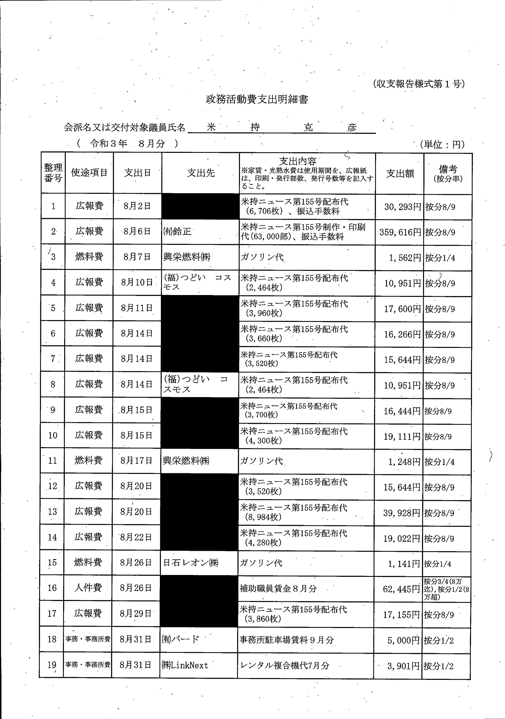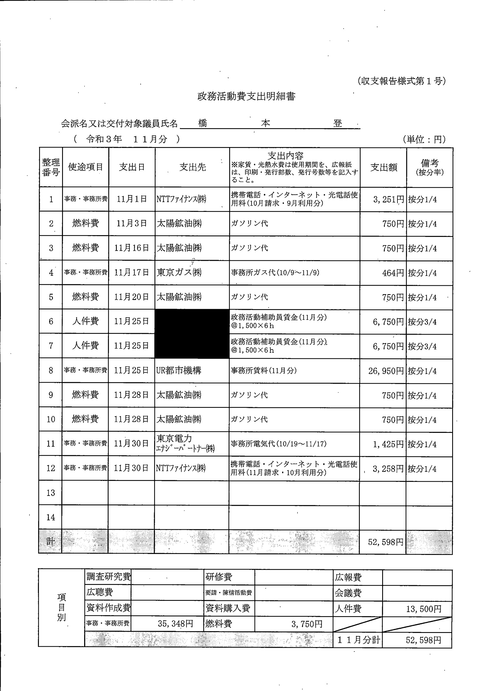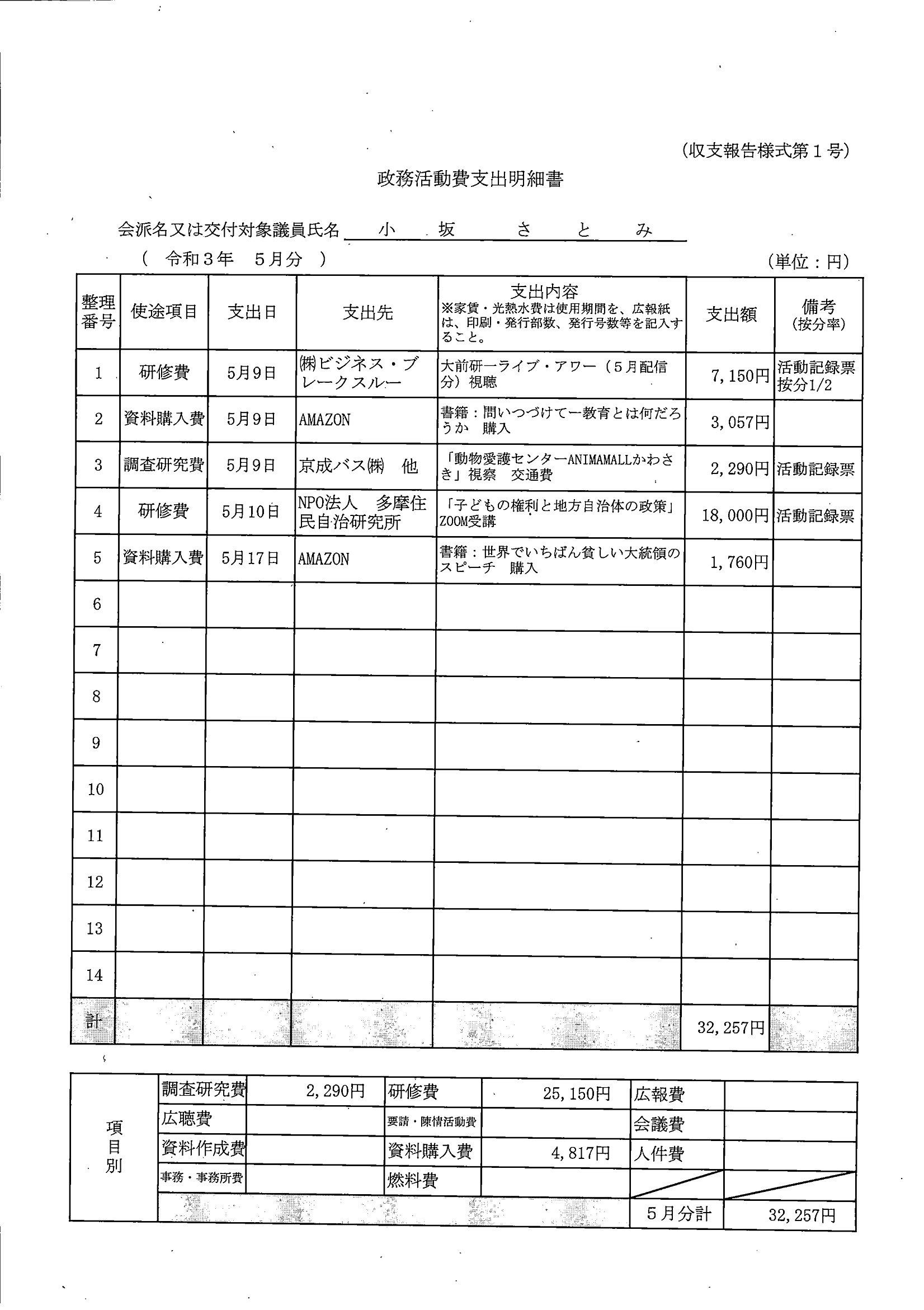 千葉市議会トップページ > 広報・情報公開 > 政務活動費 > 令和3年度交付分(政務活動費収支報告書)