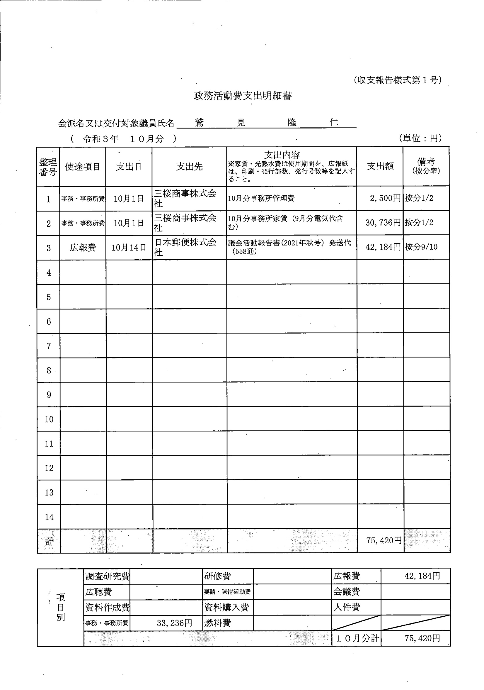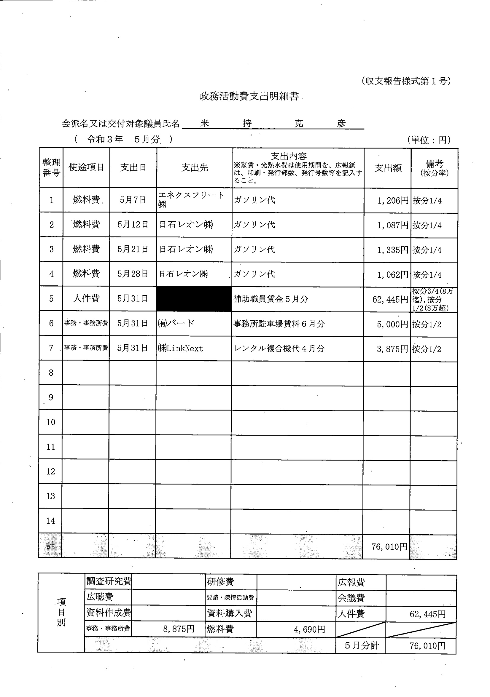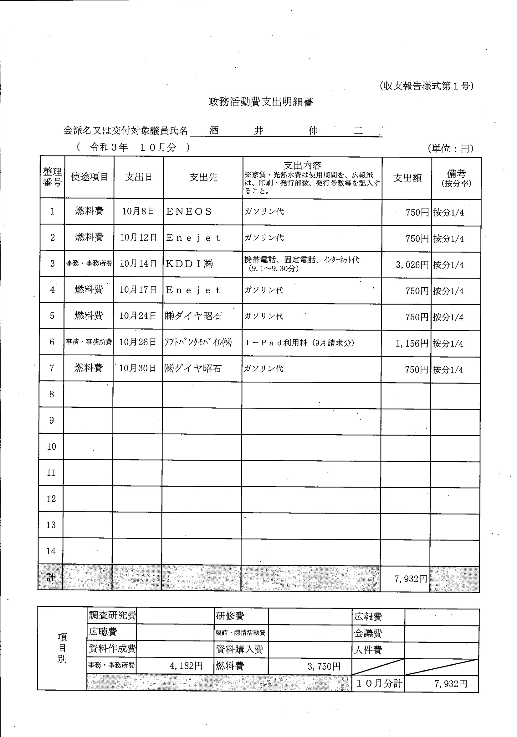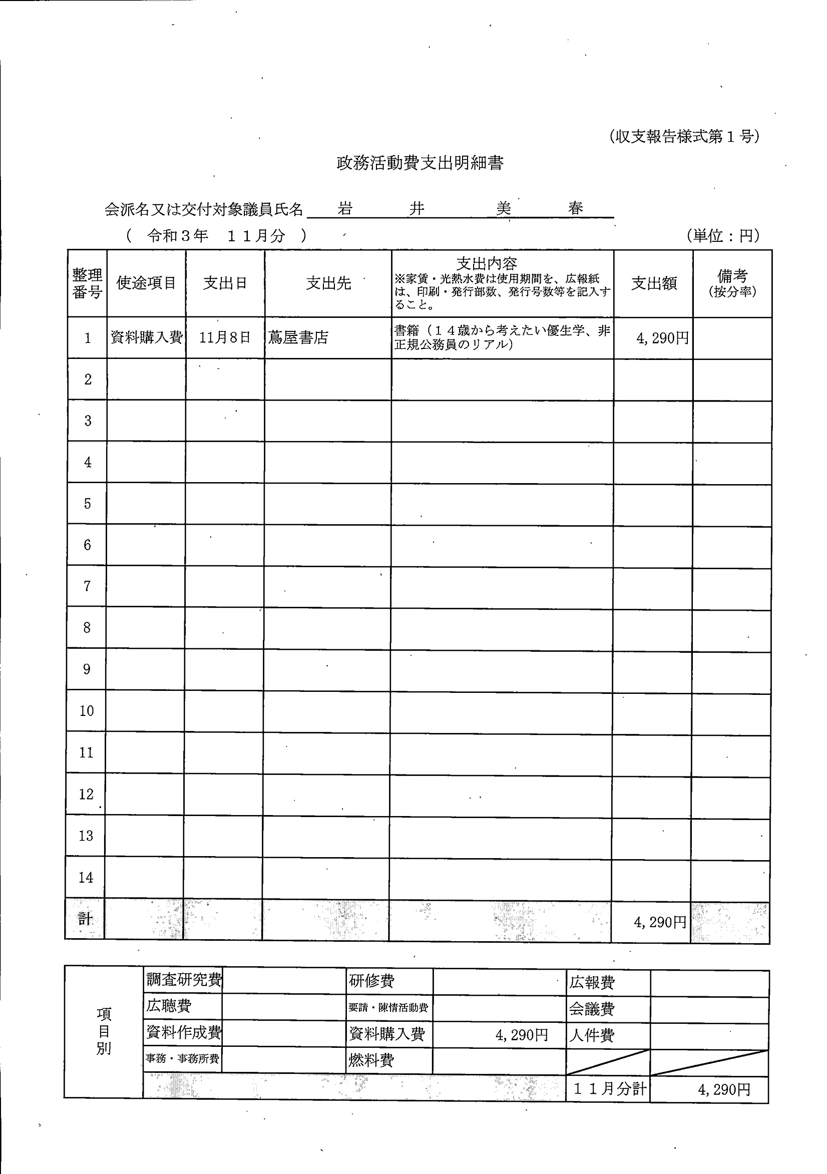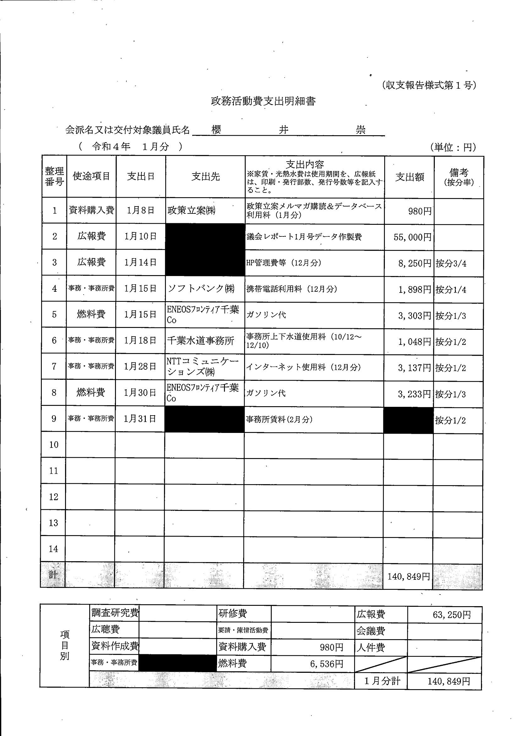 千葉市議会トップページ > 広報・情報公開 > 政務活動費 > 令和3年度交付分(政務活動費収支報告書)
