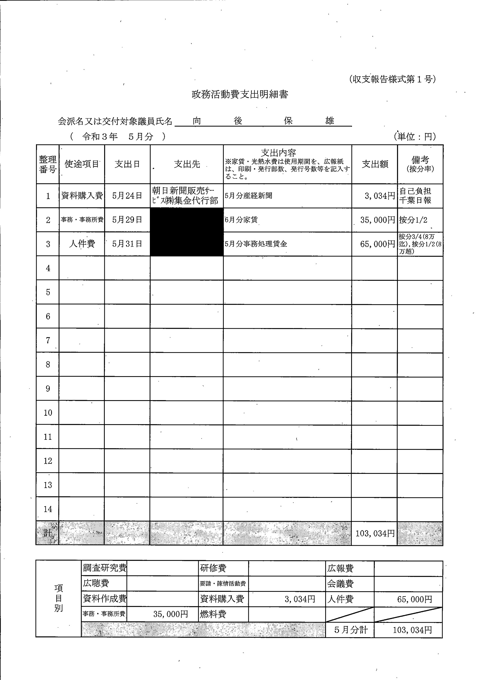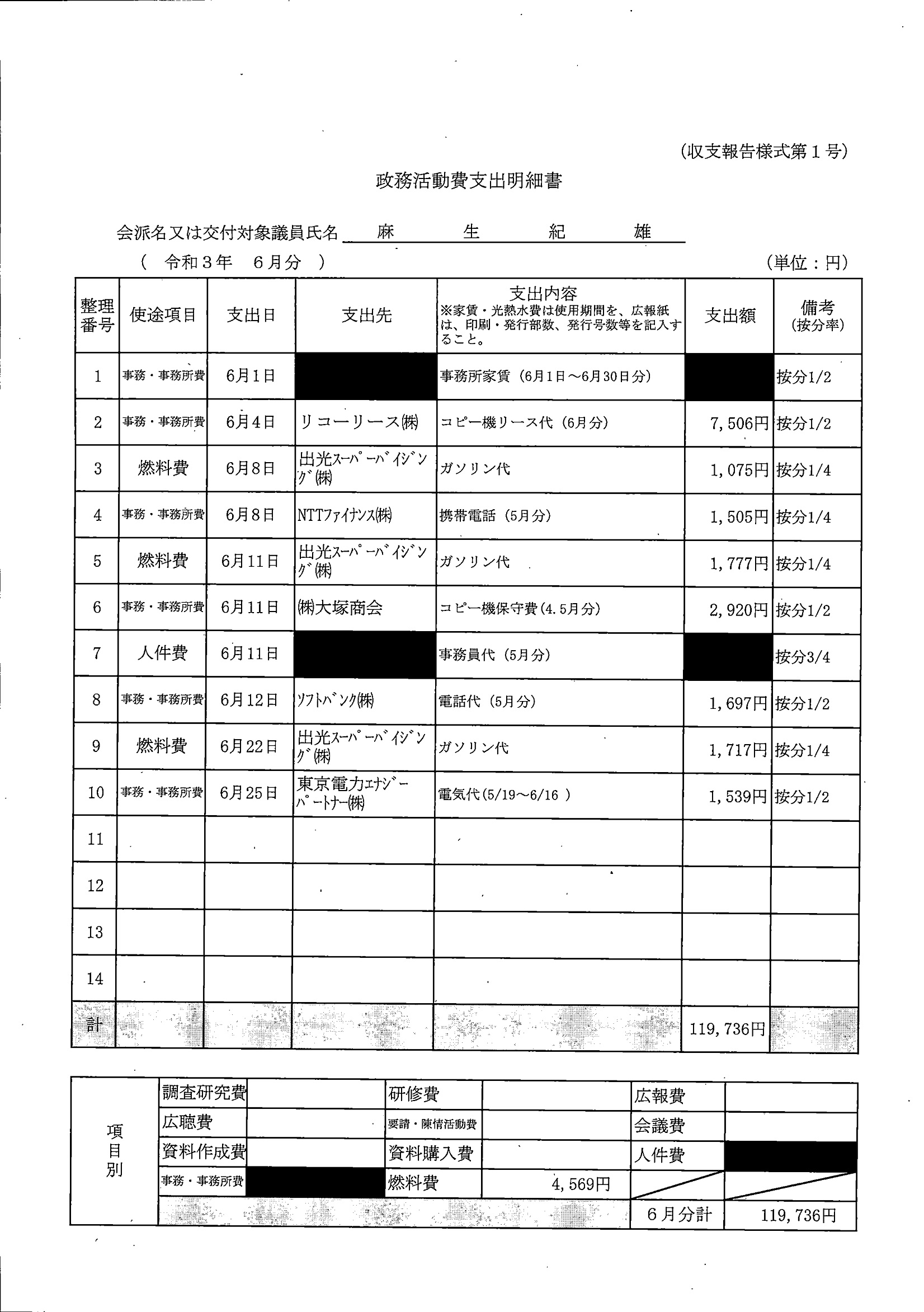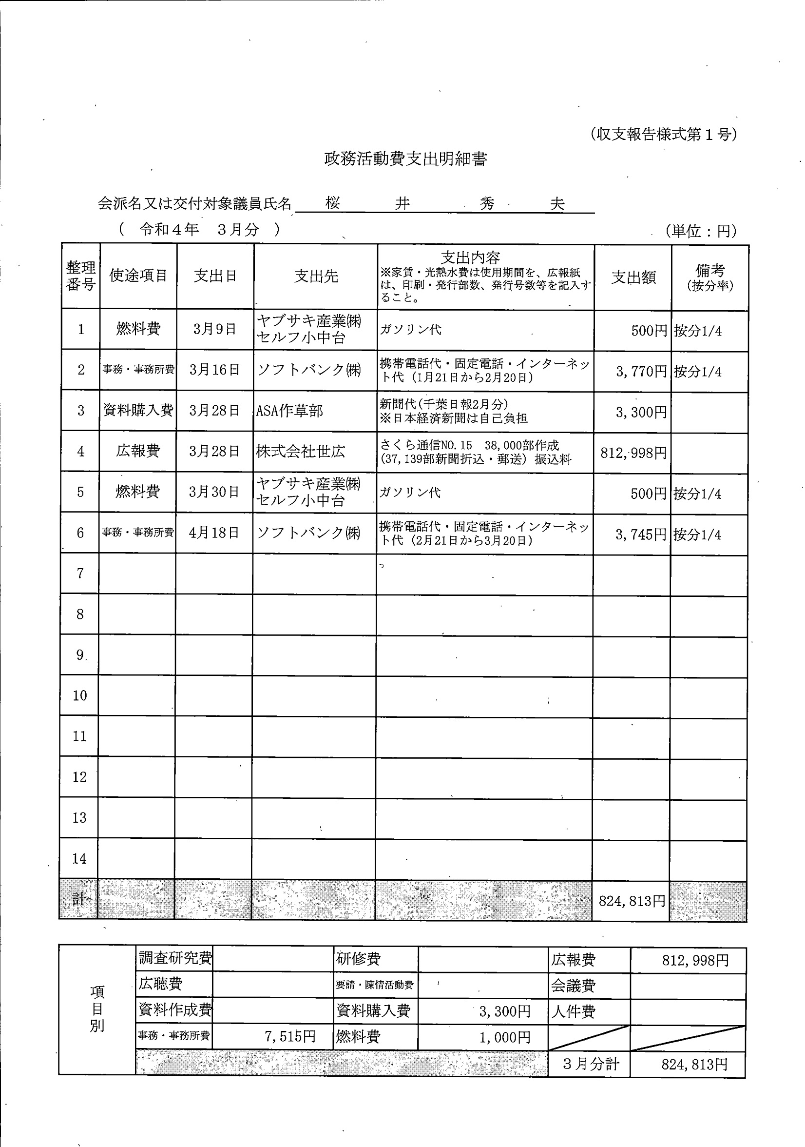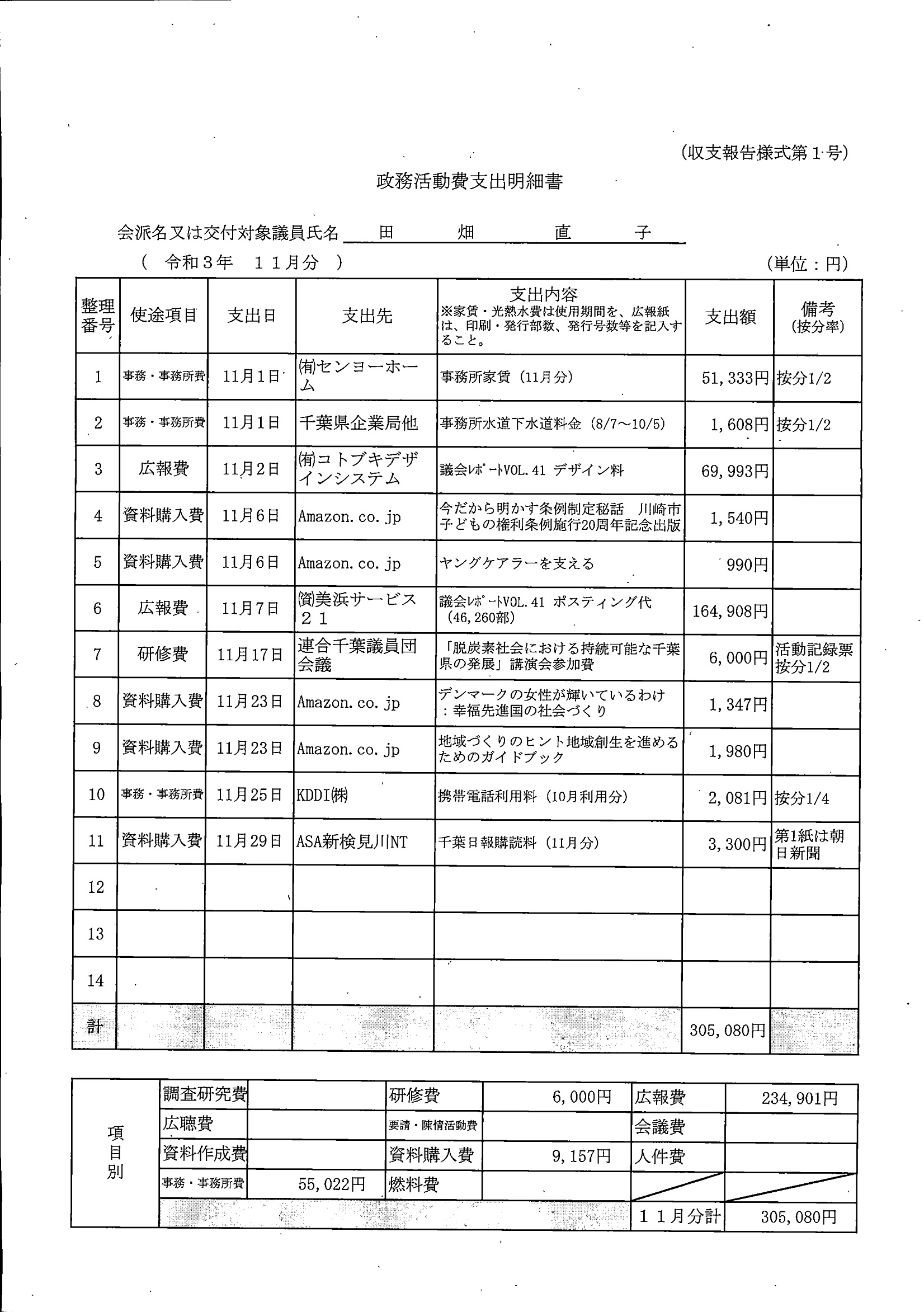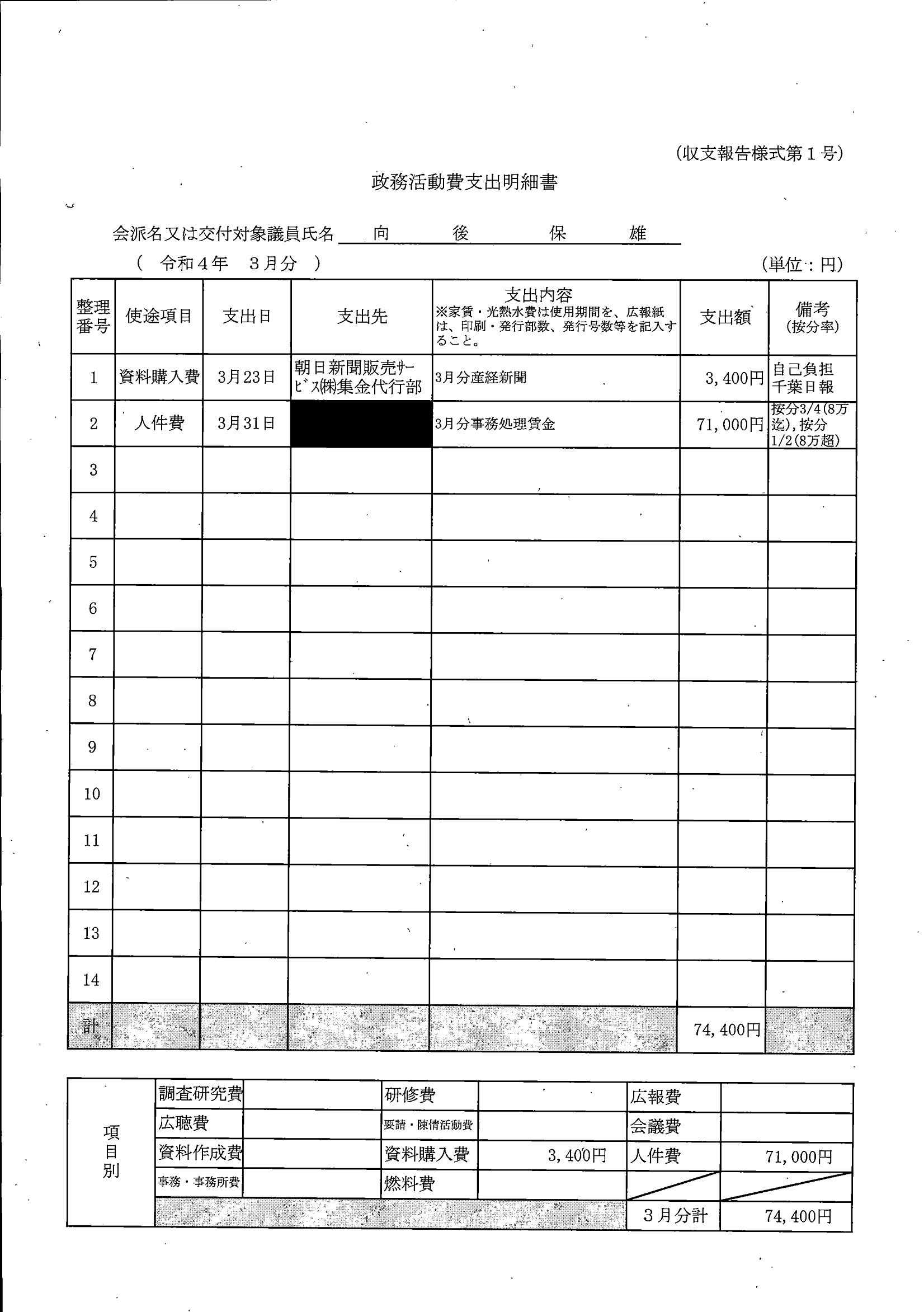 千葉市議会トップページ > 広報・情報公開 > 政務活動費 > 令和3年度交付分(政務活動費収支報告書)