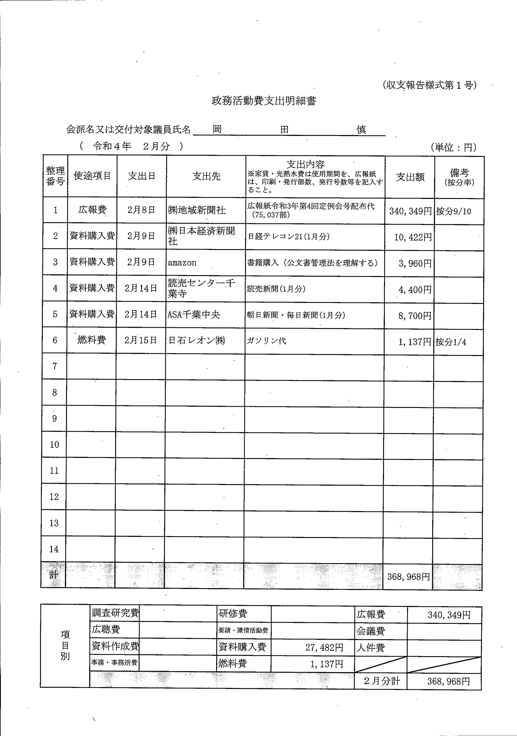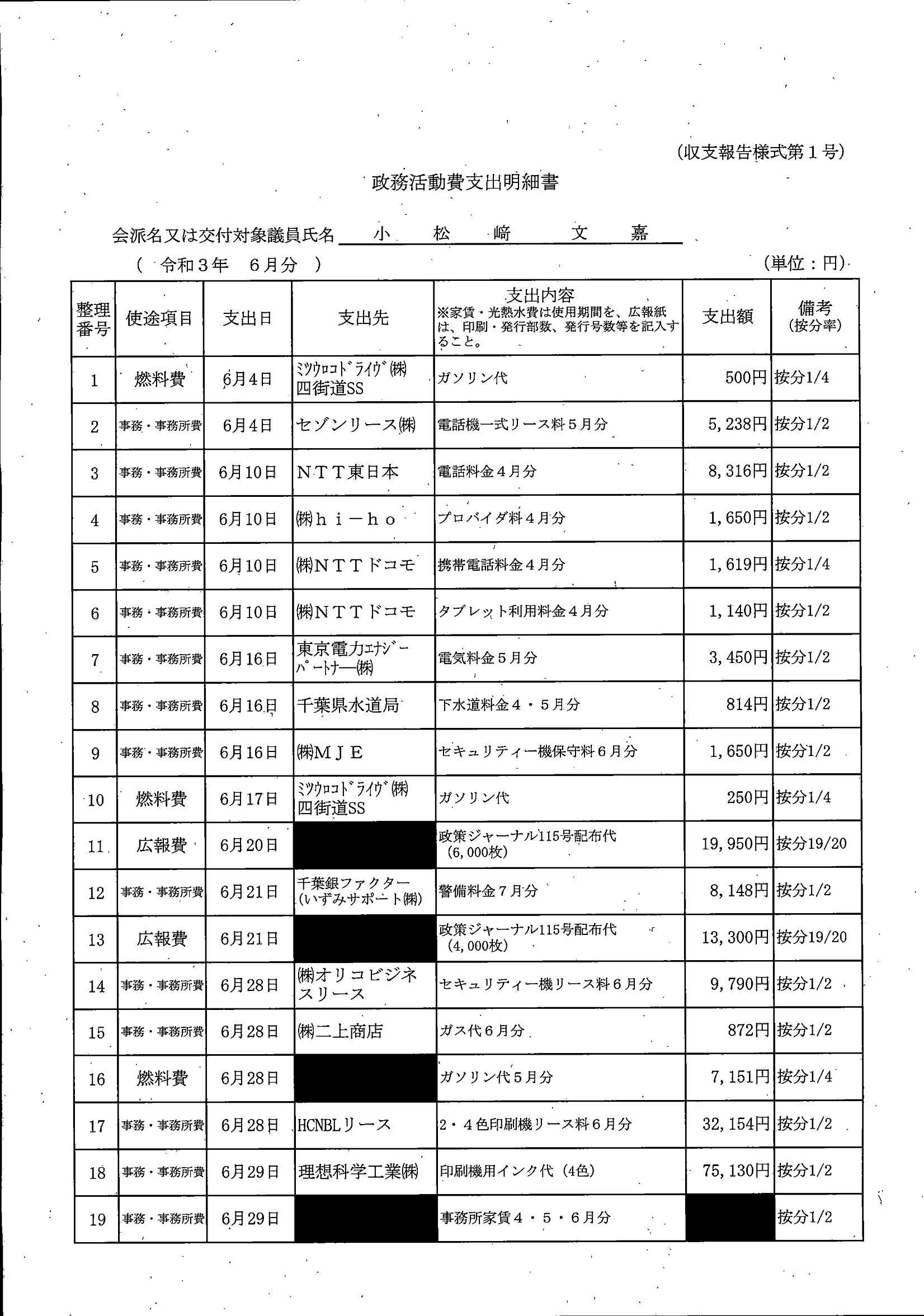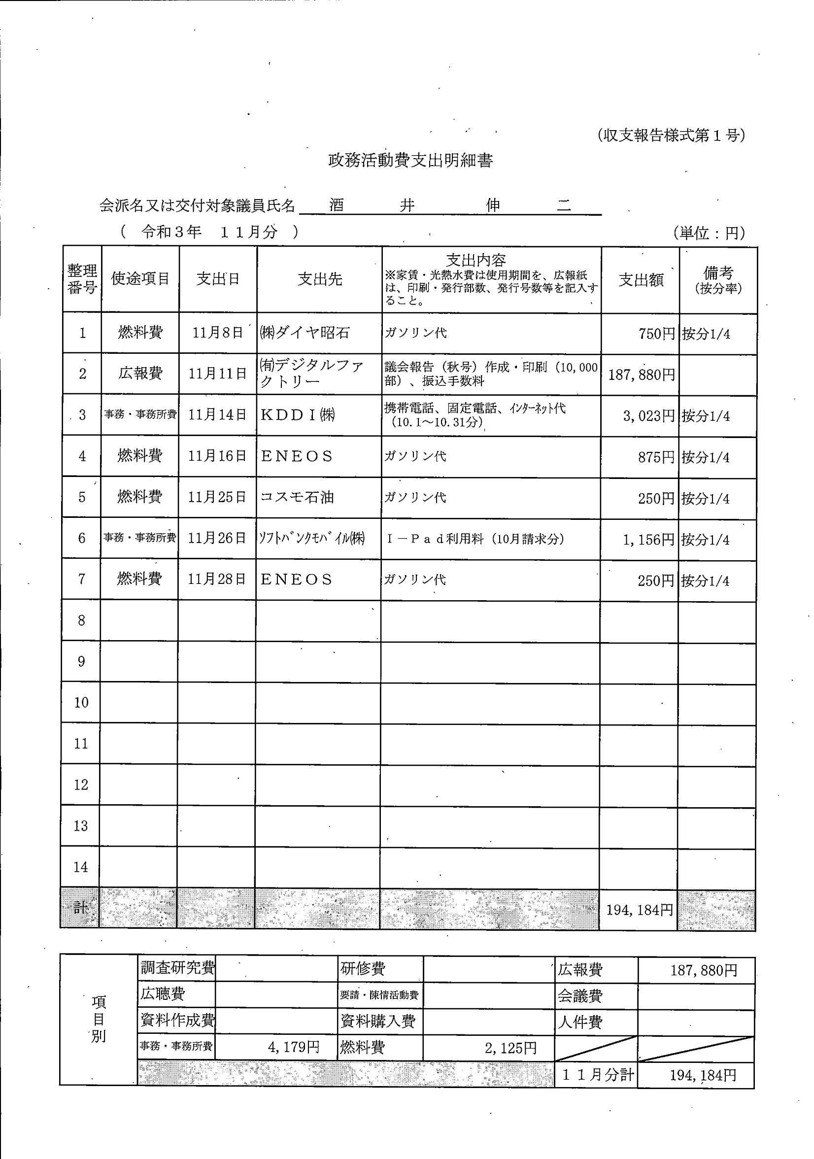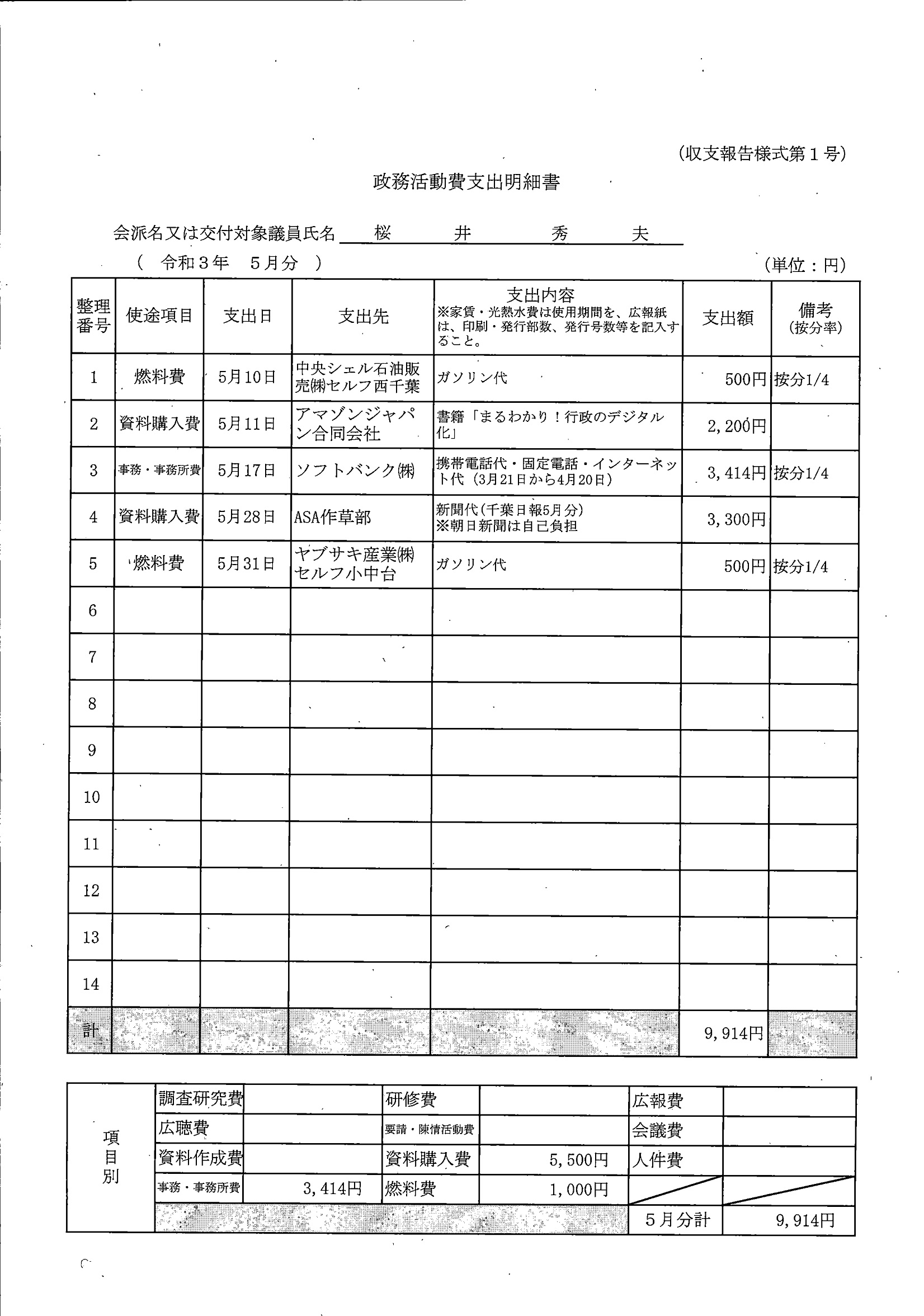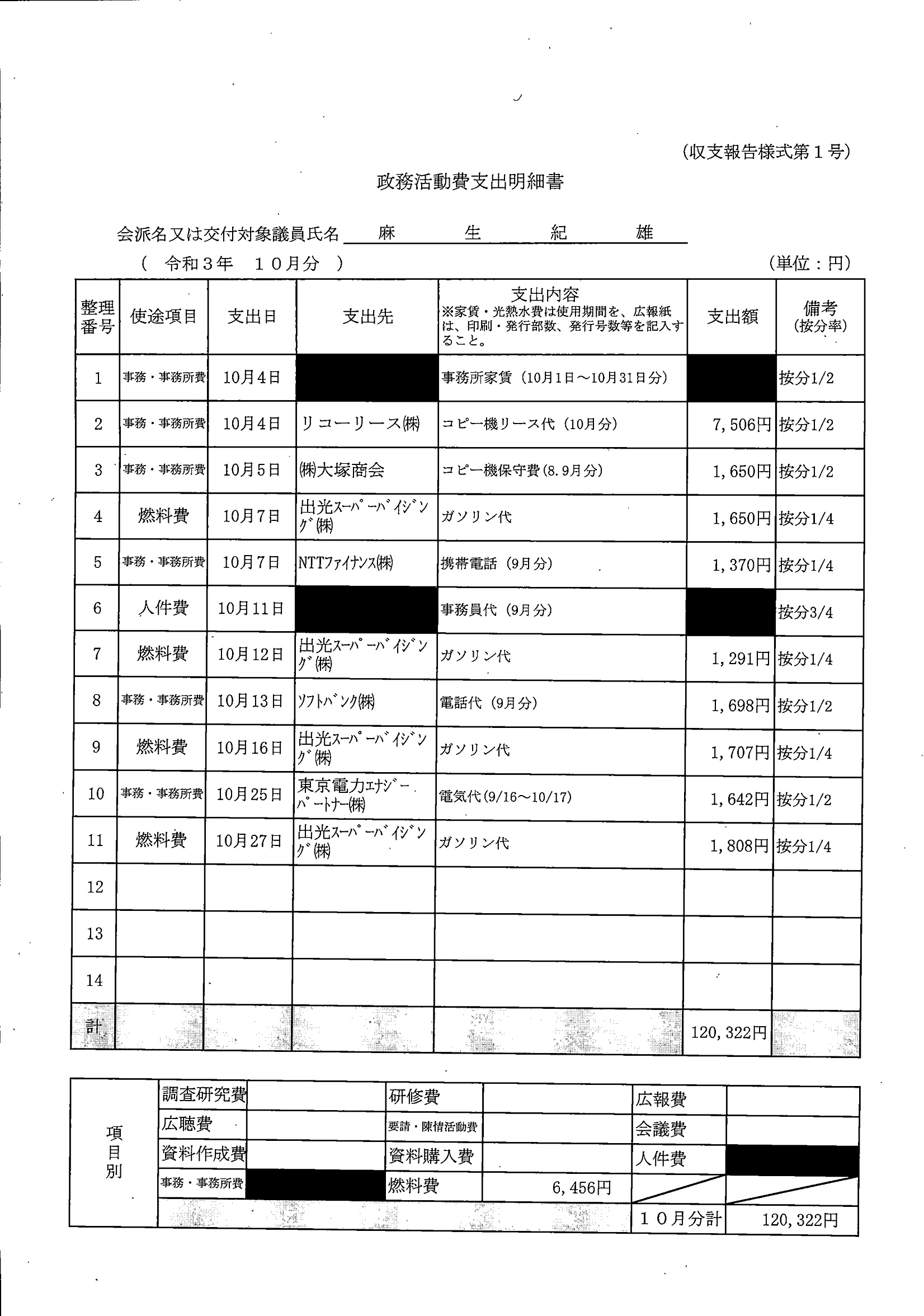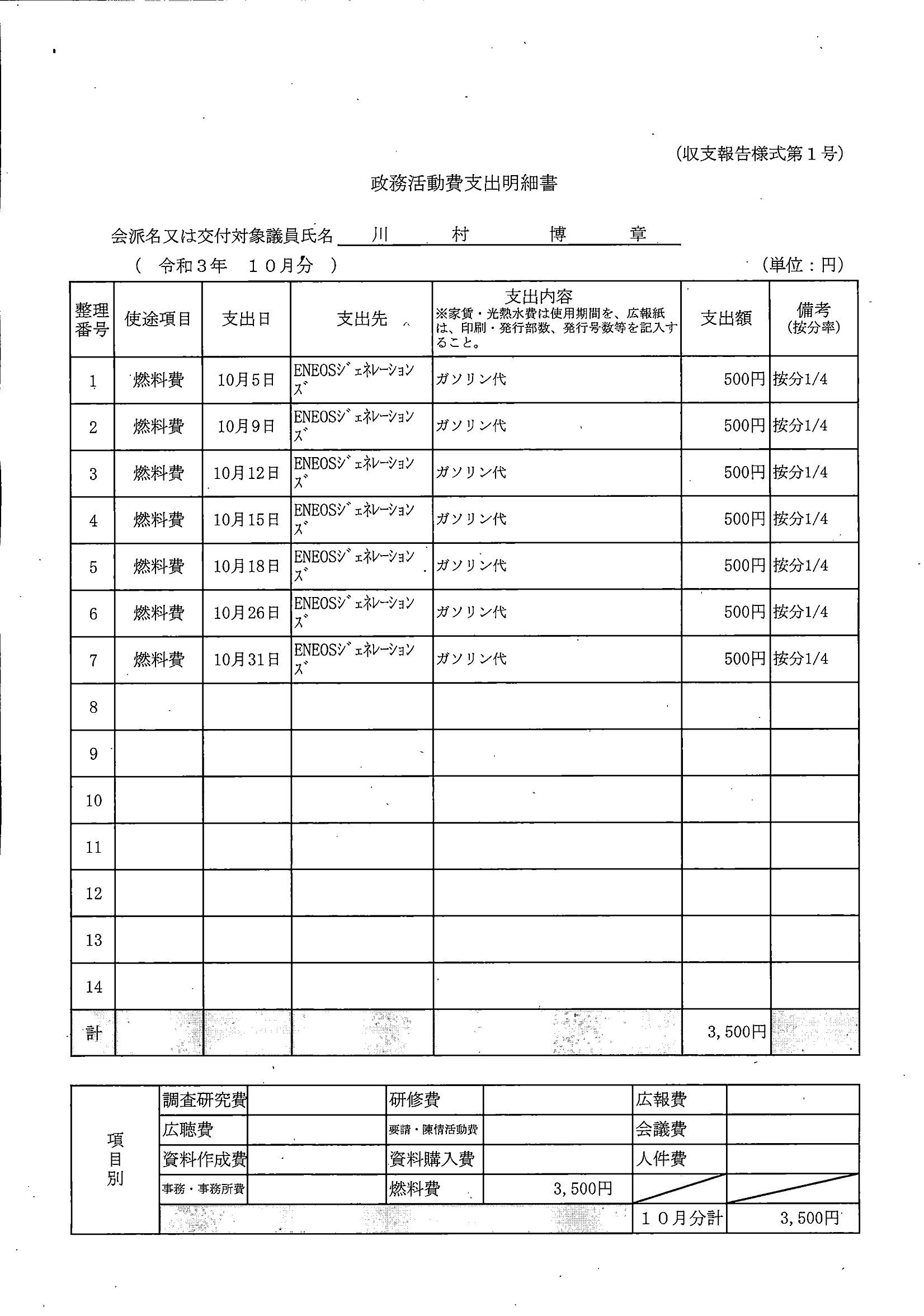 千葉市議会トップページ > 広報・情報公開 > 政務活動費 > 令和3年度交付分(政務活動費収支報告書)