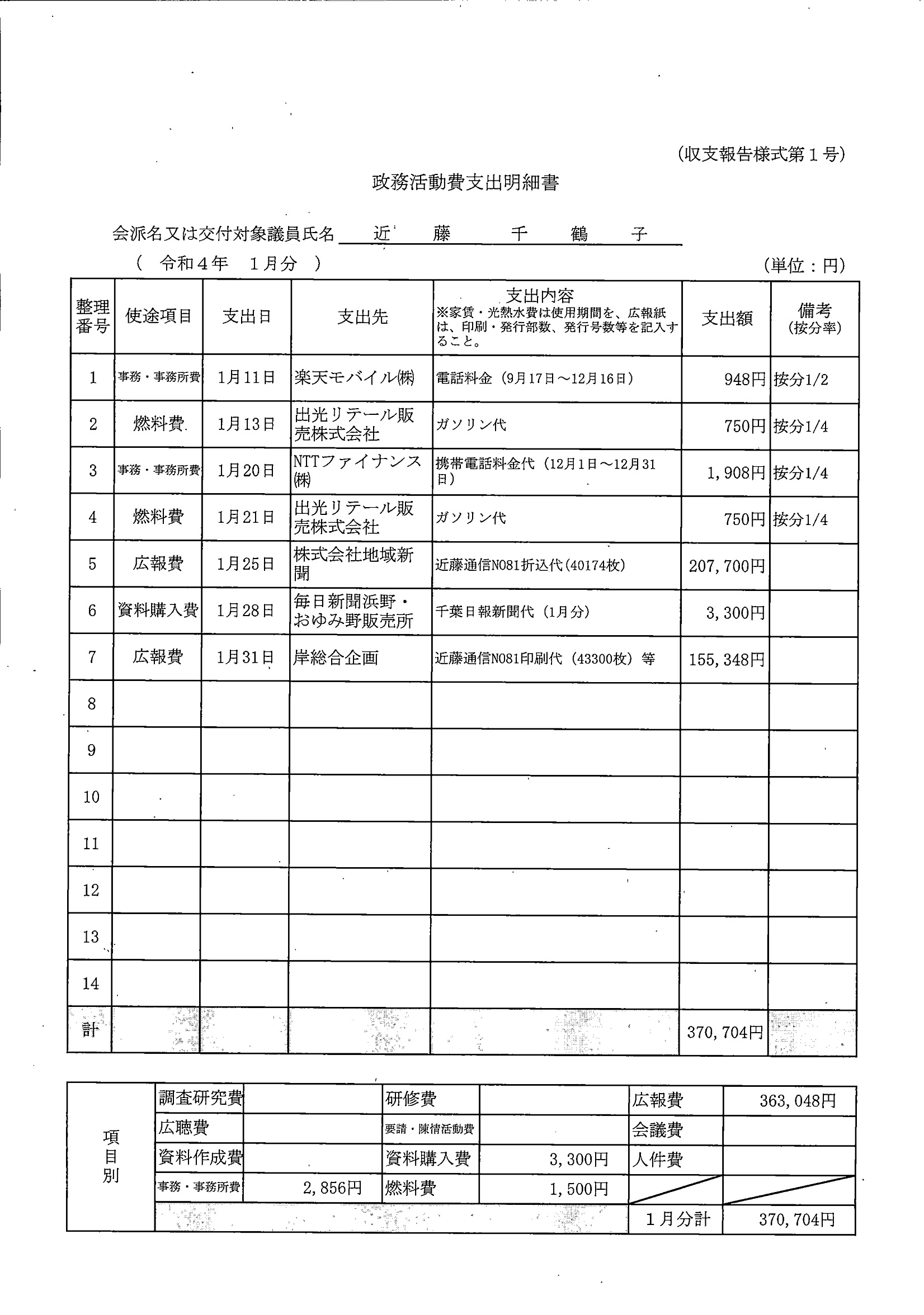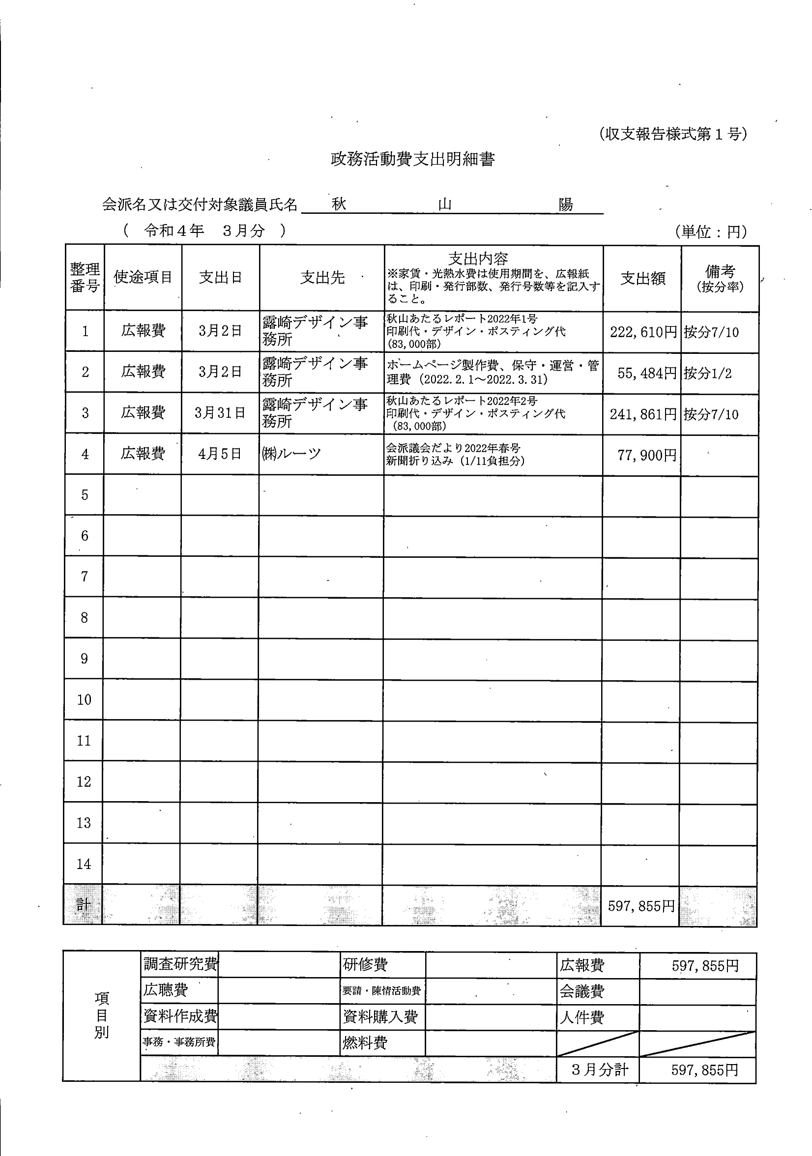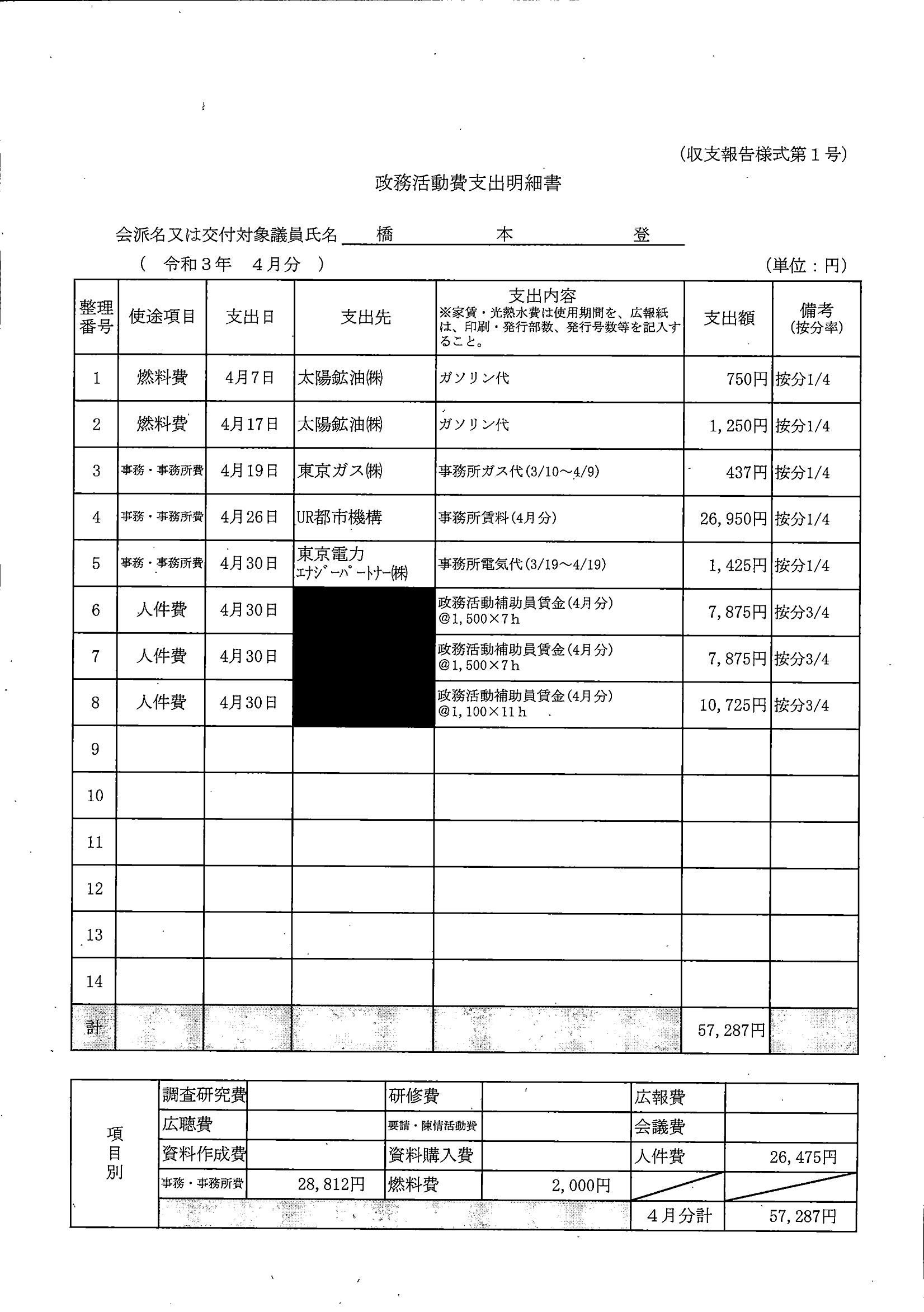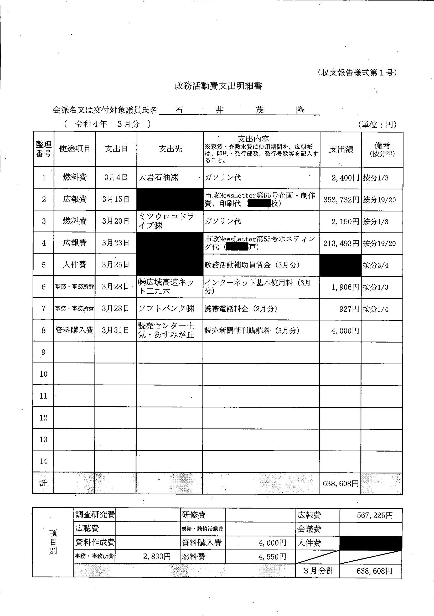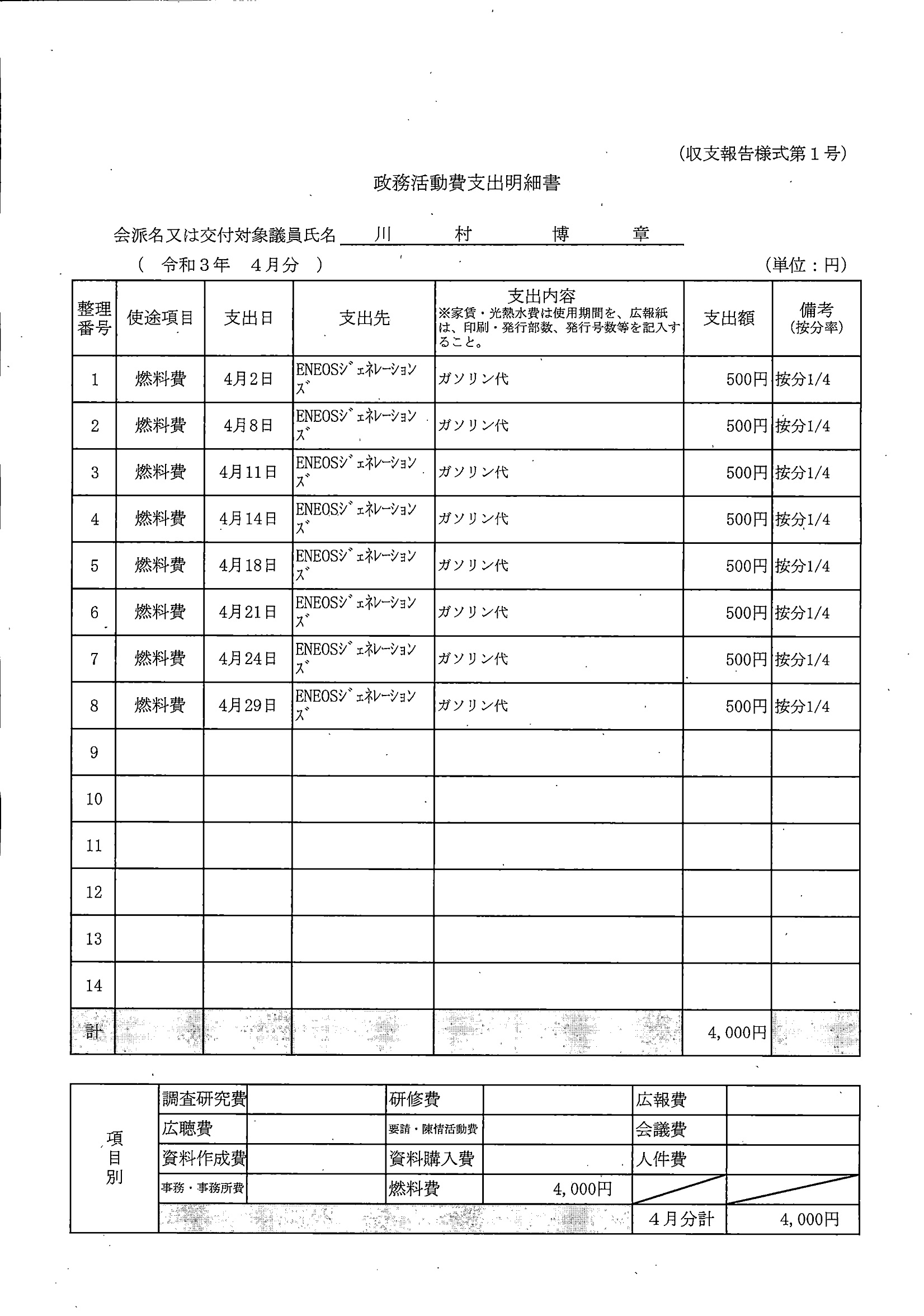 千葉市議会トップページ > 広報・情報公開 > 政務活動費 > 令和3年度交付分(政務活動費収支報告書)