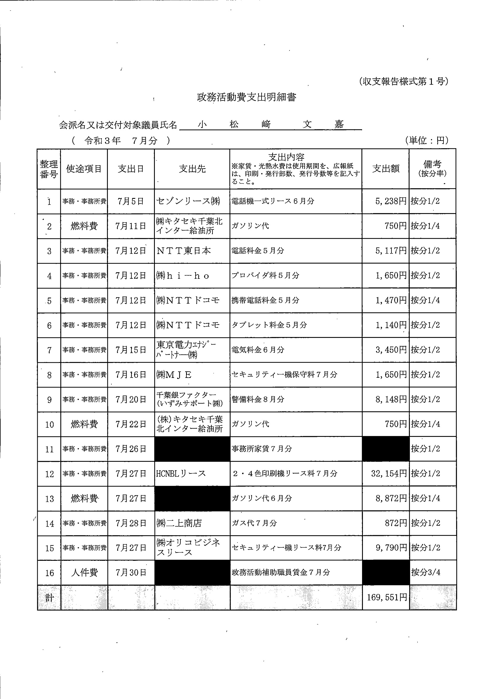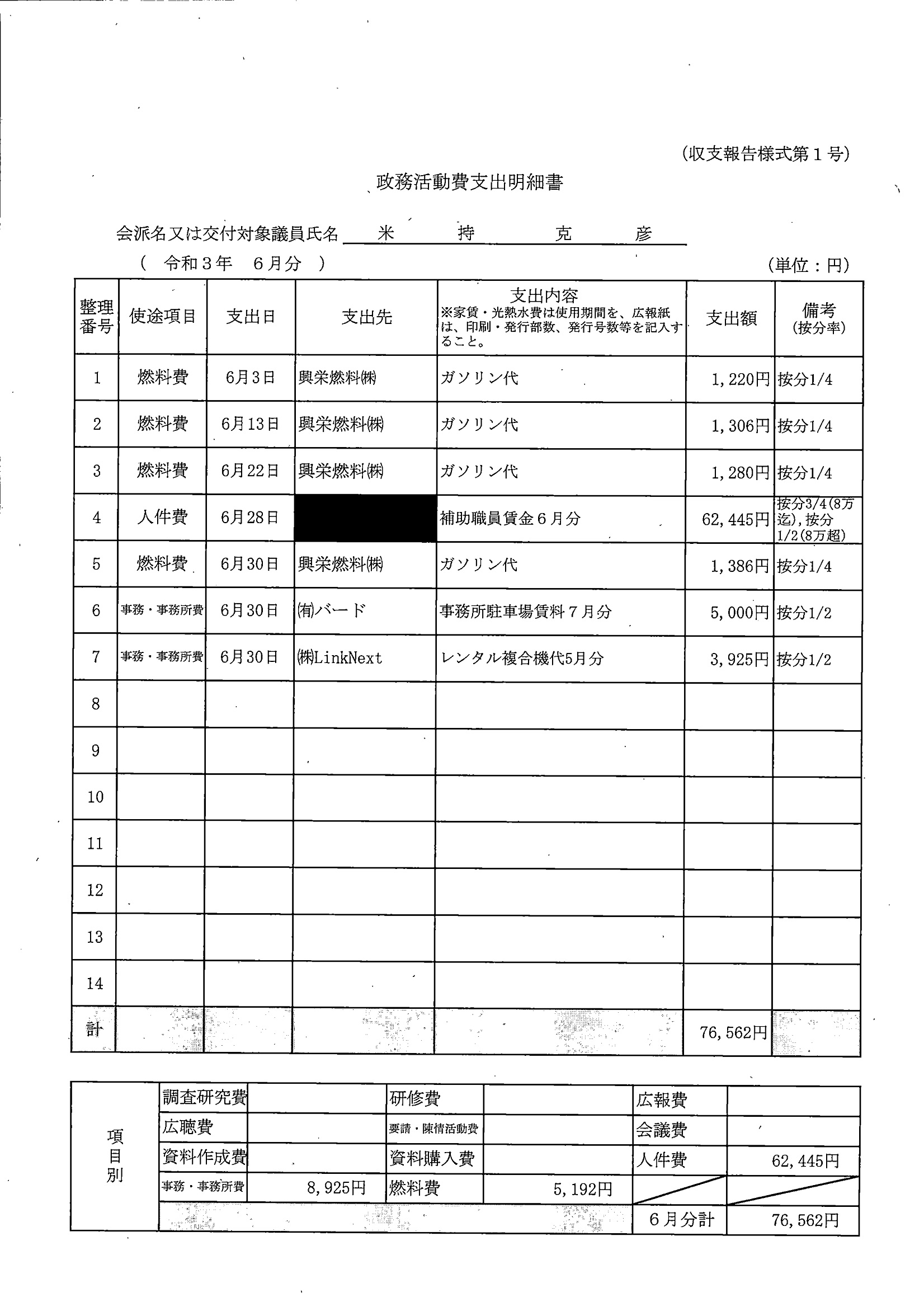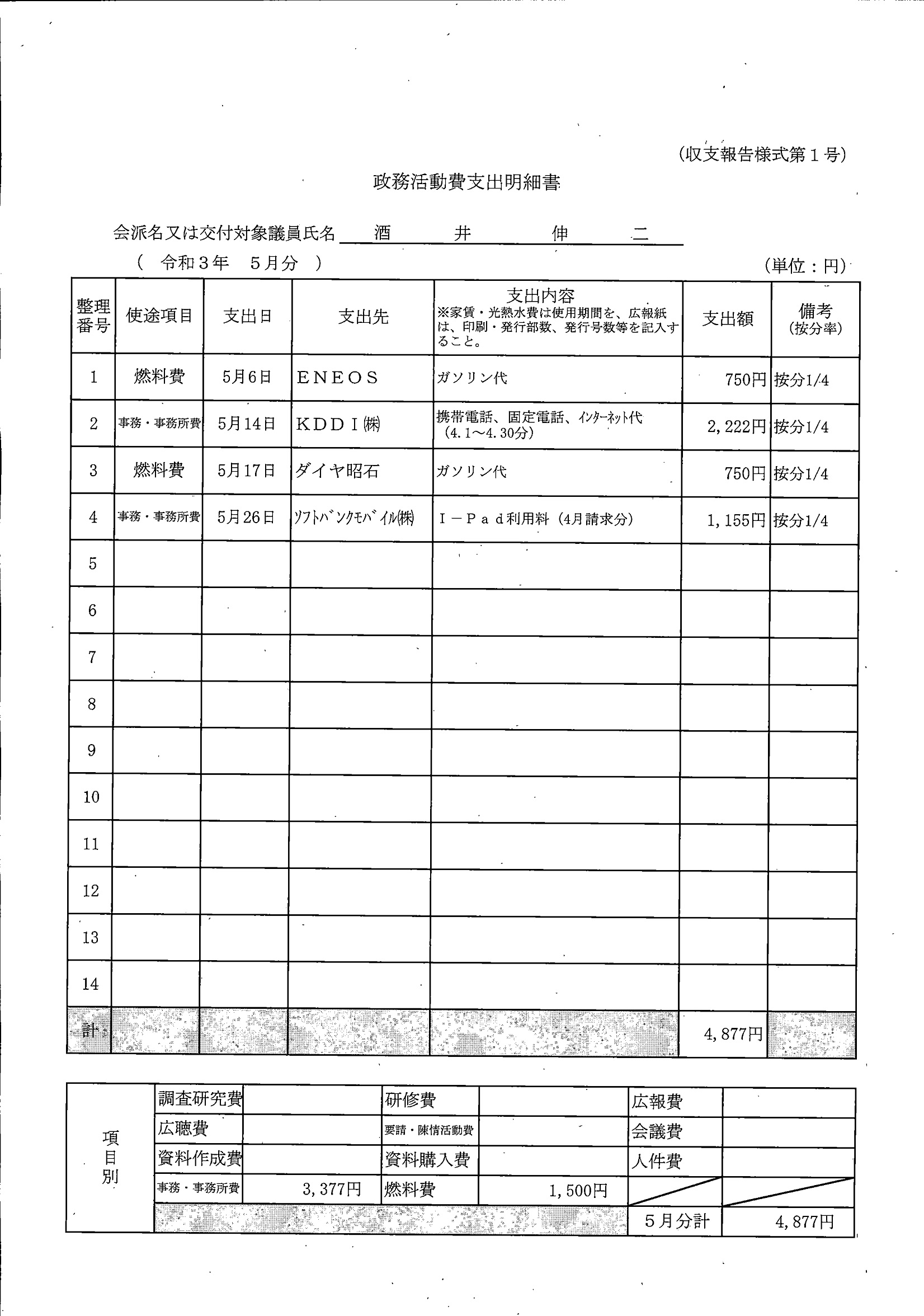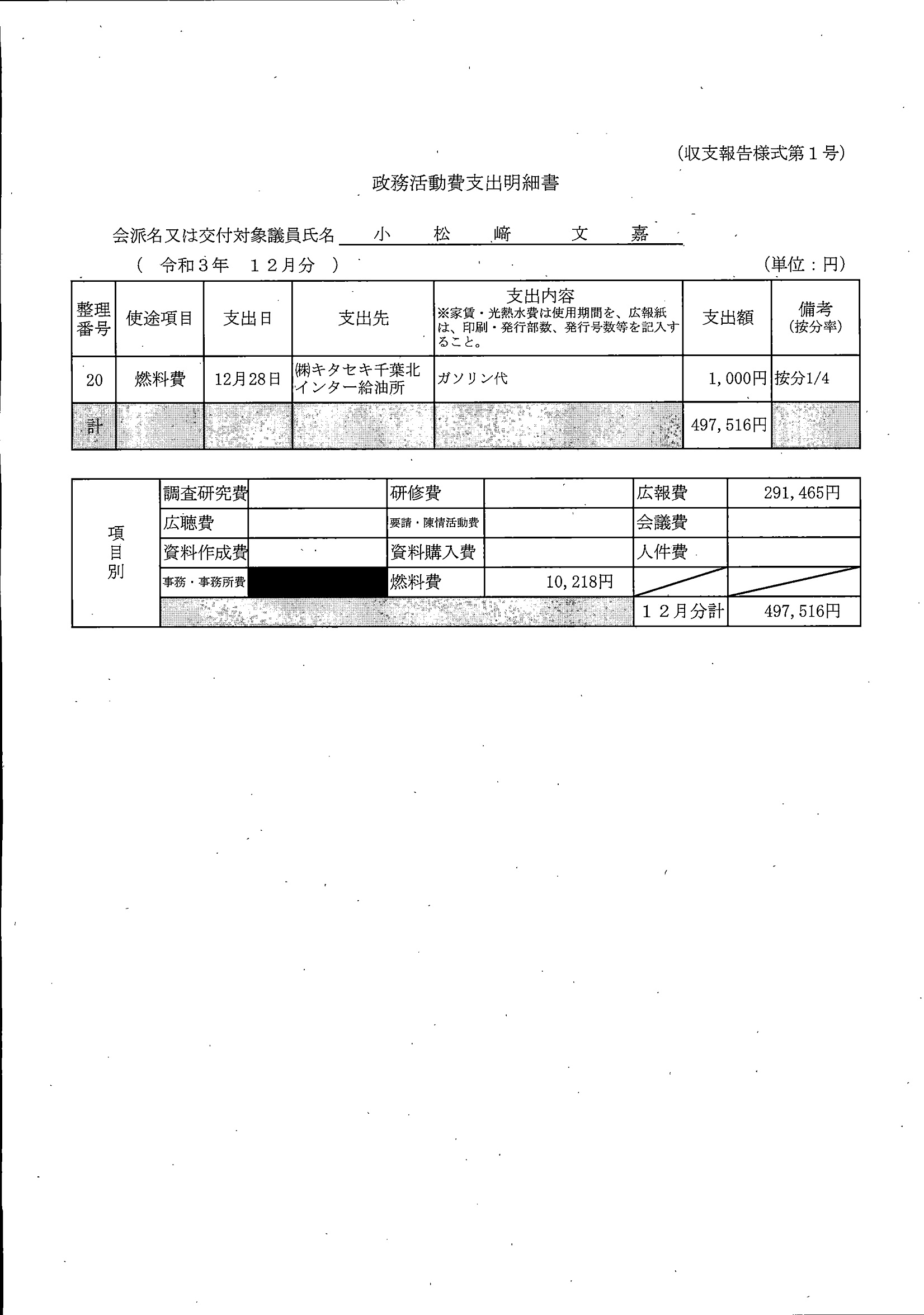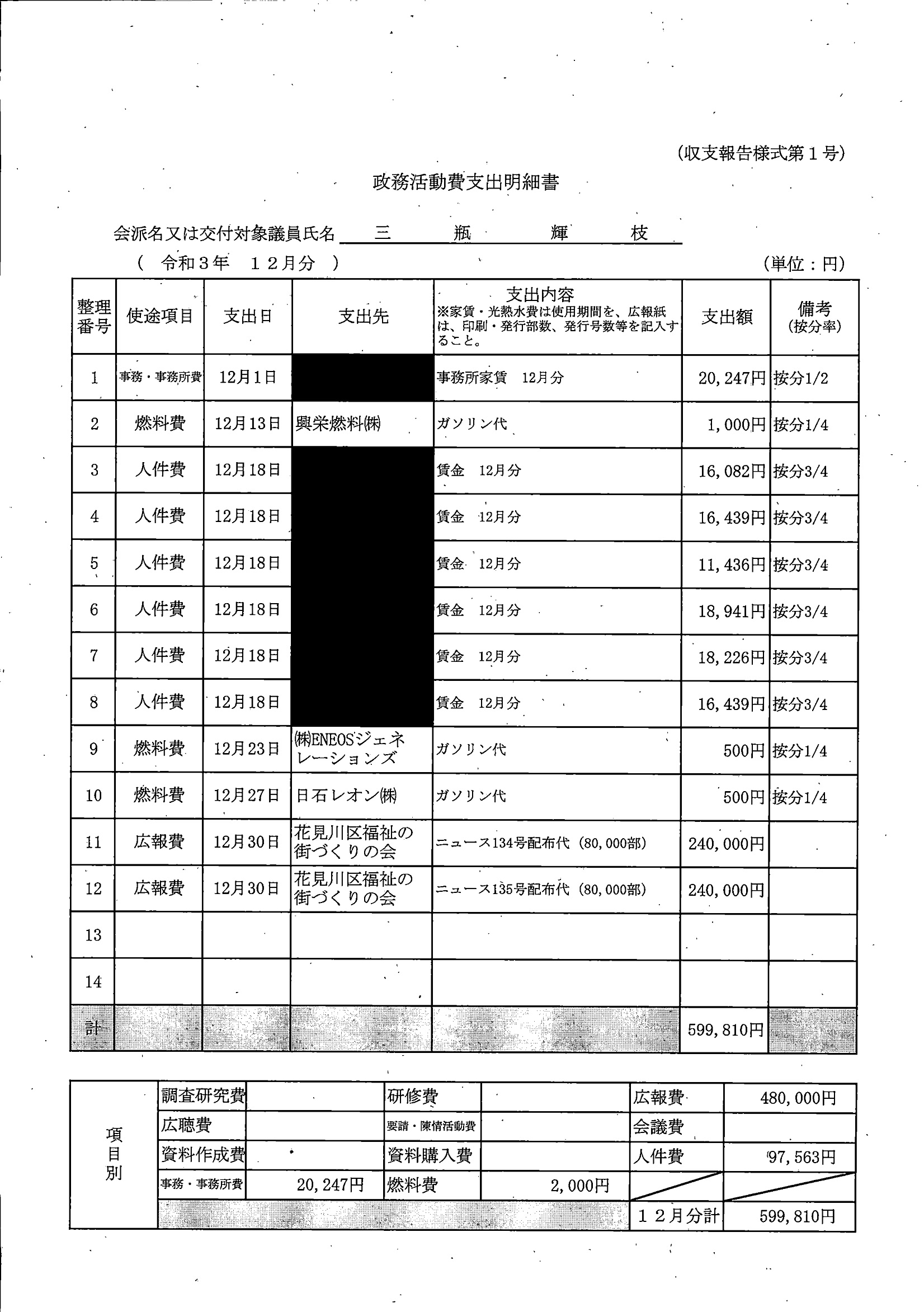 千葉市議会トップページ > 広報・情報公開 > 政務活動費 > 令和3年度交付分(政務活動費収支報告書)