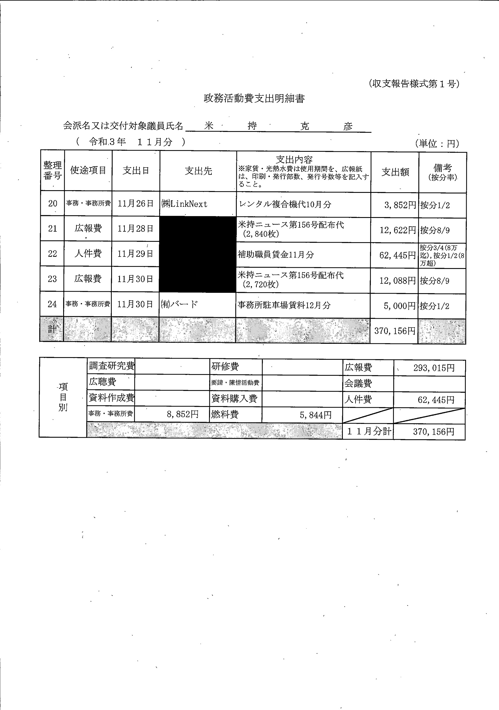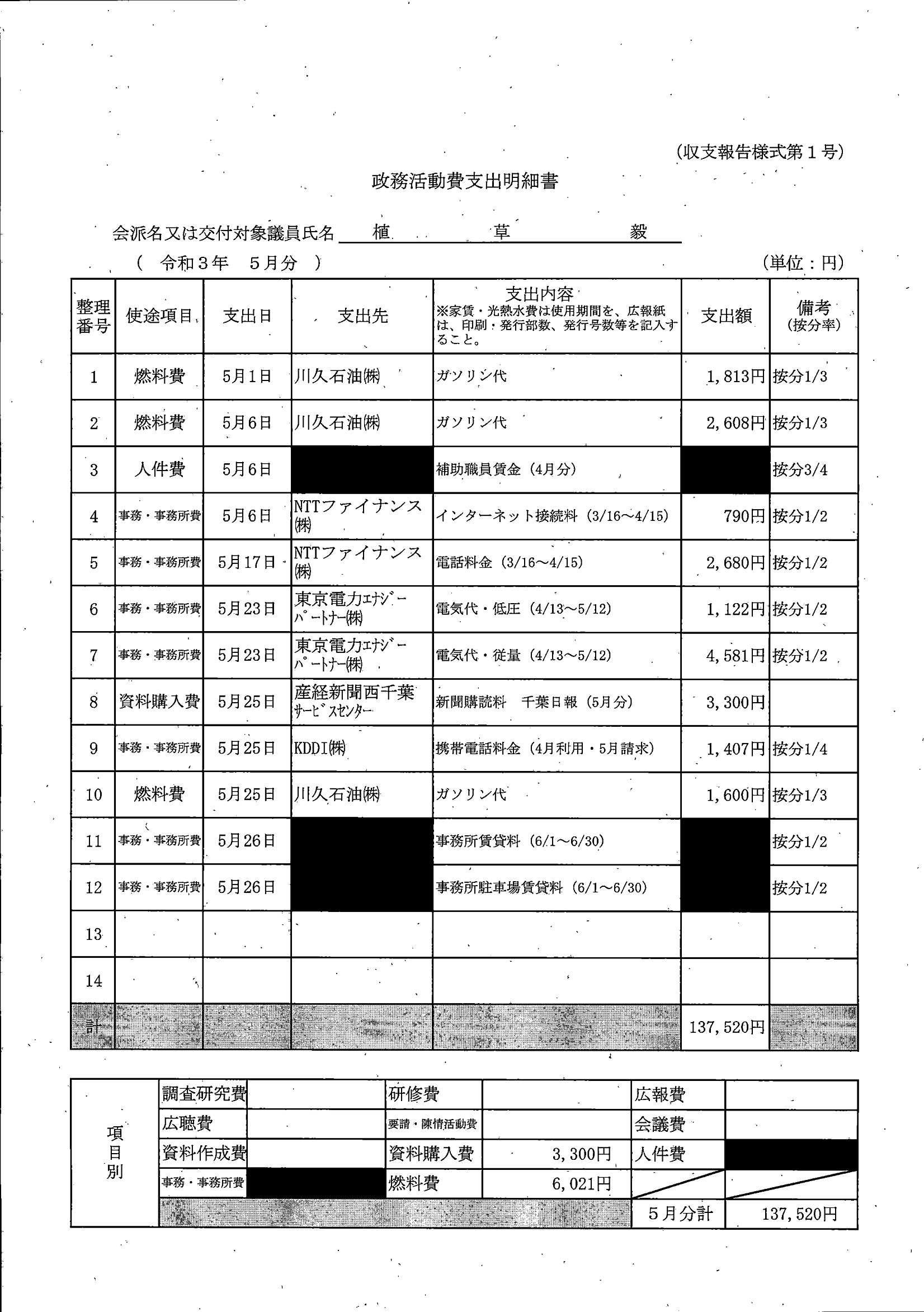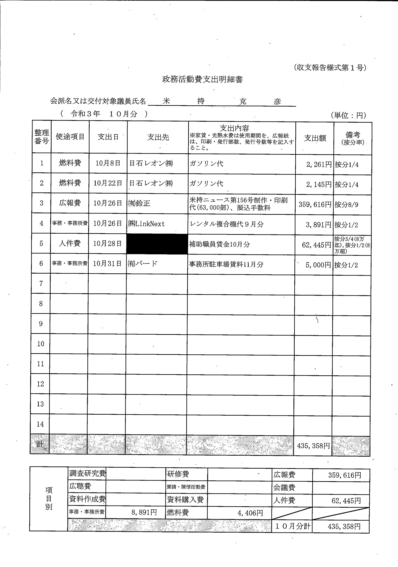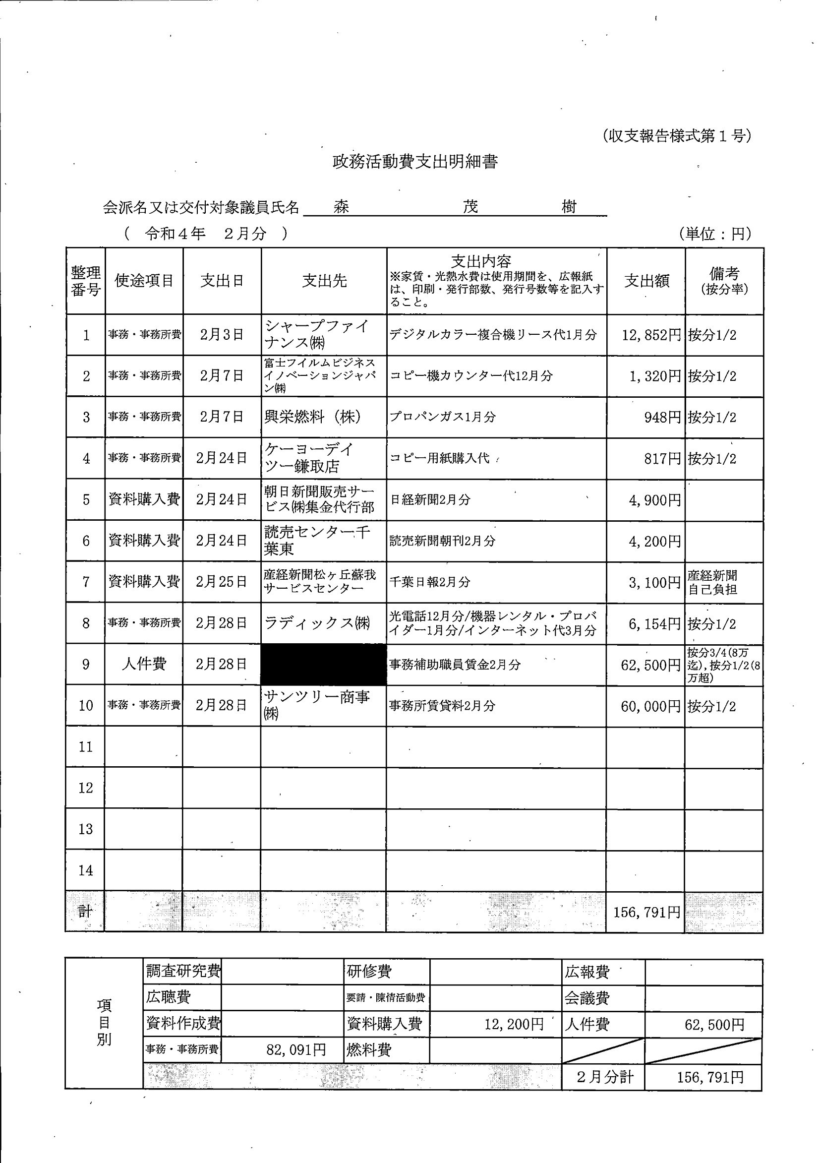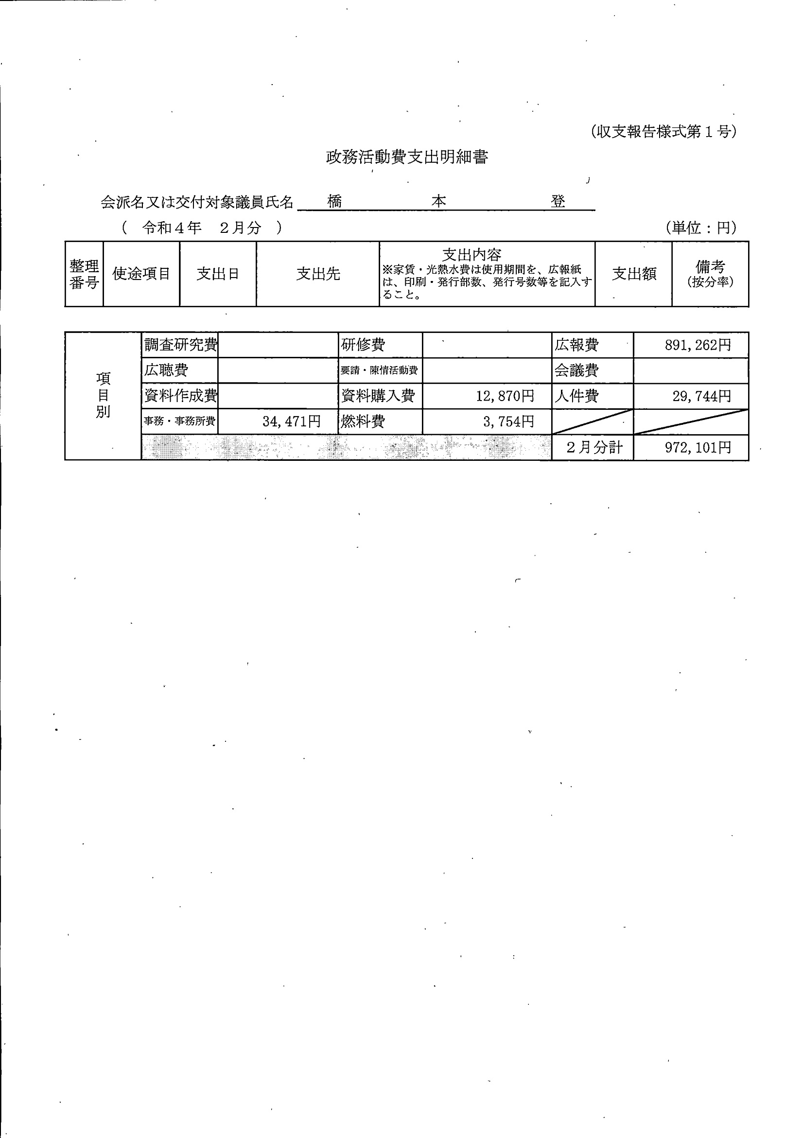 千葉市議会トップページ > 広報・情報公開 > 政務活動費 > 令和3年度交付分(政務活動費収支報告書)