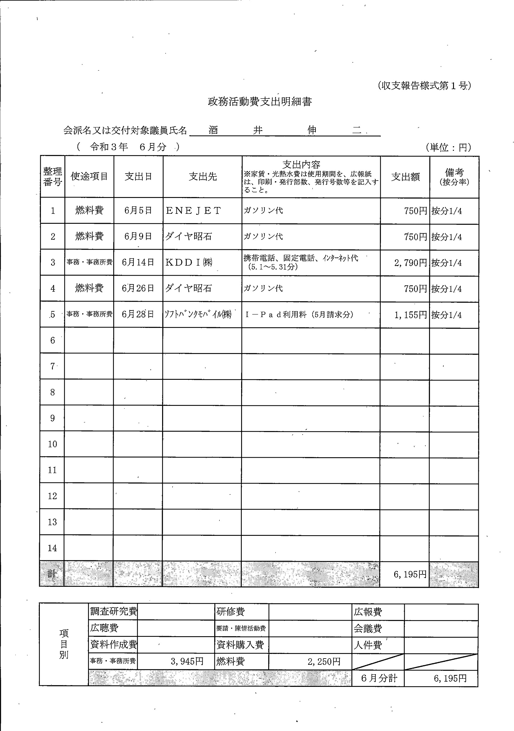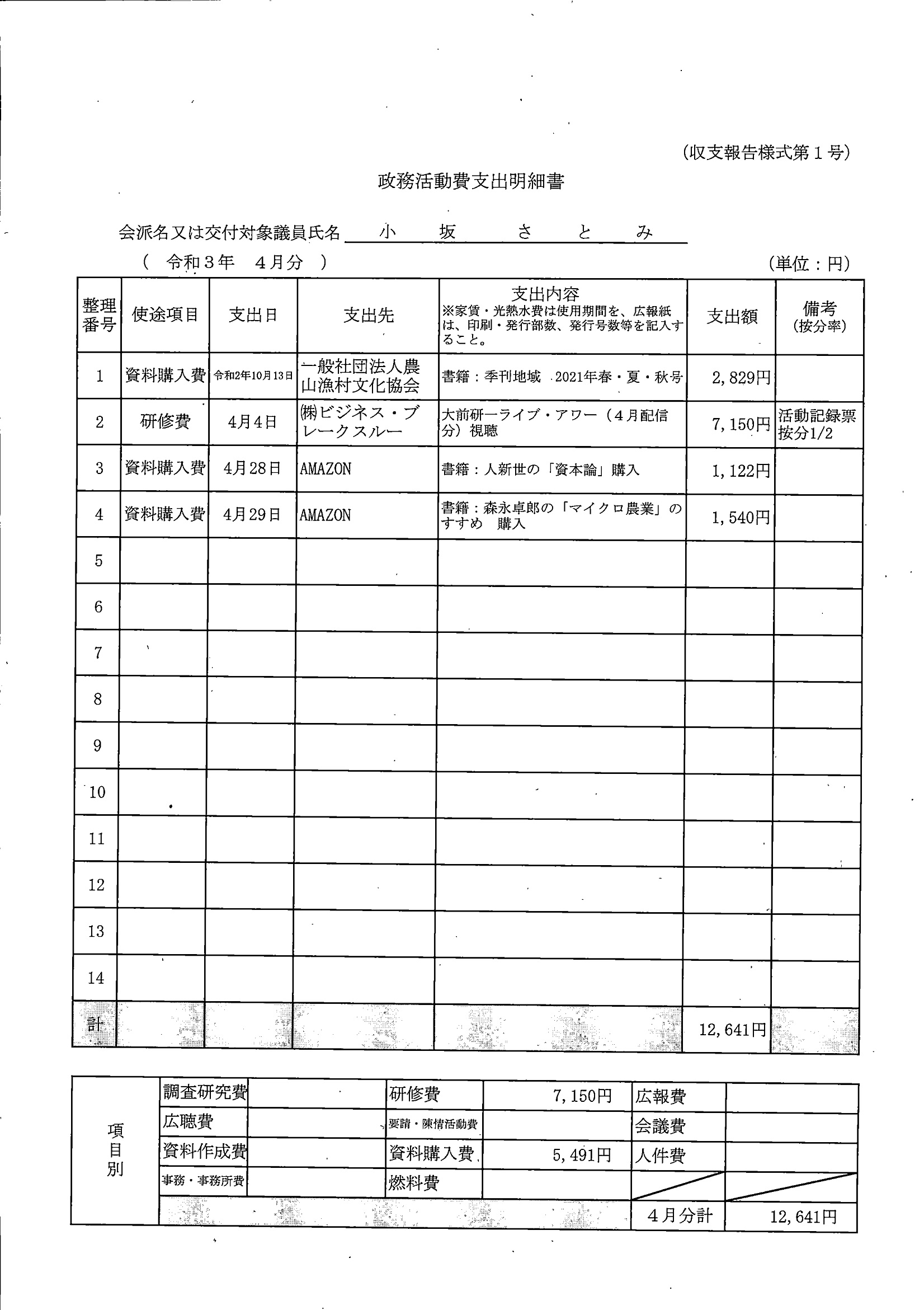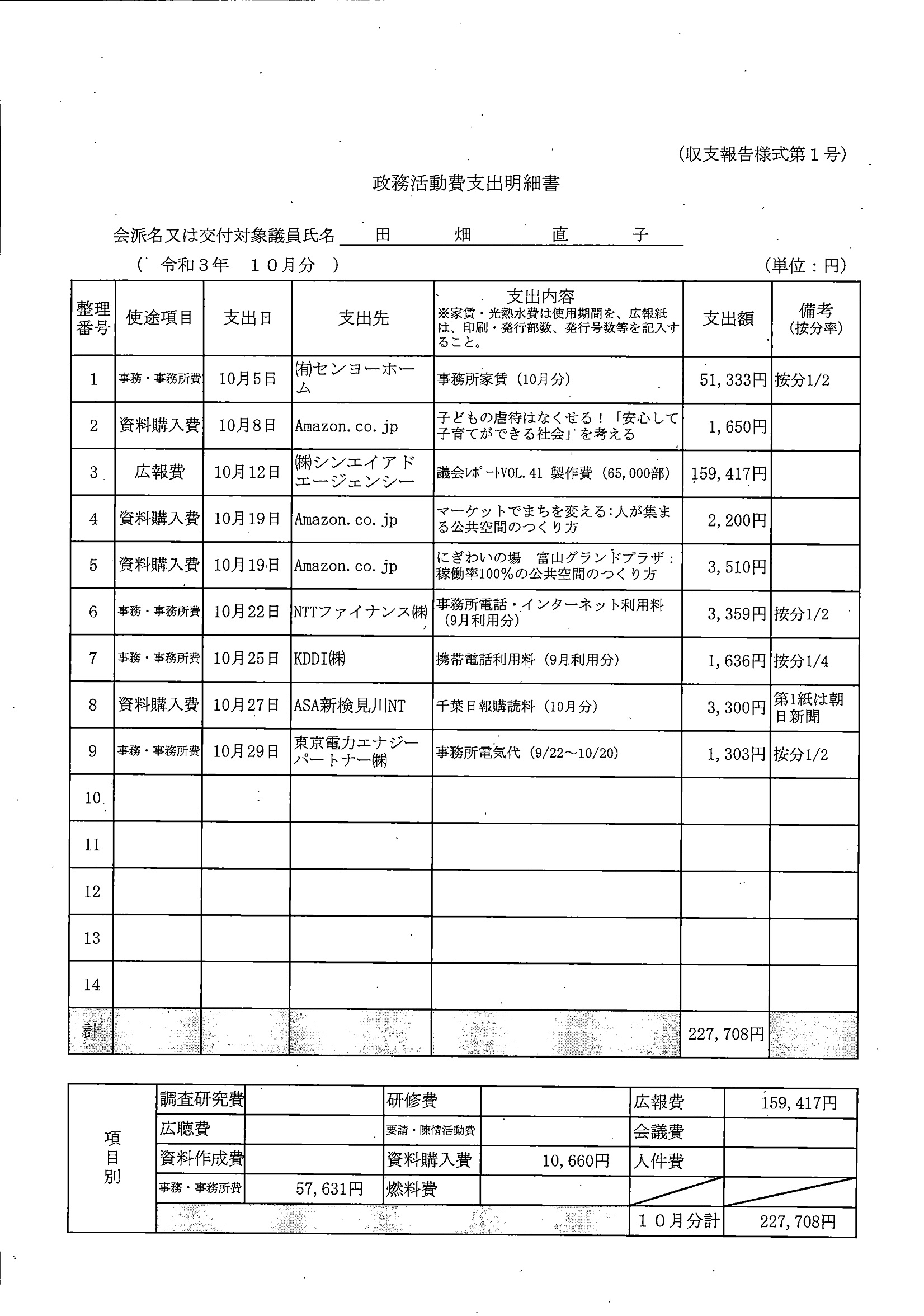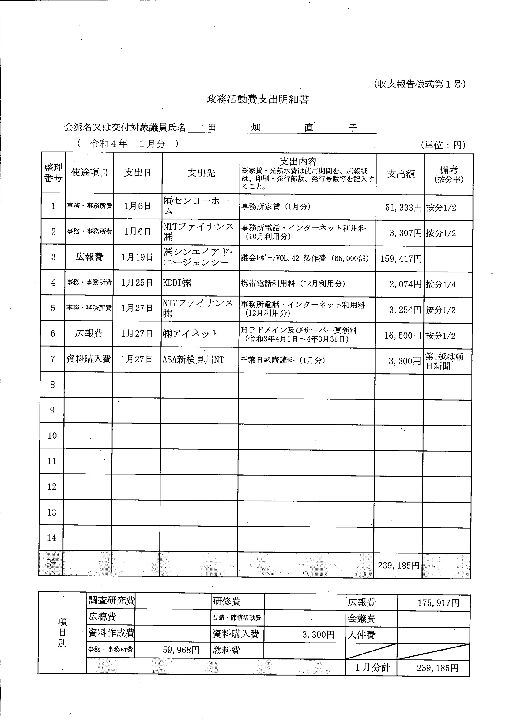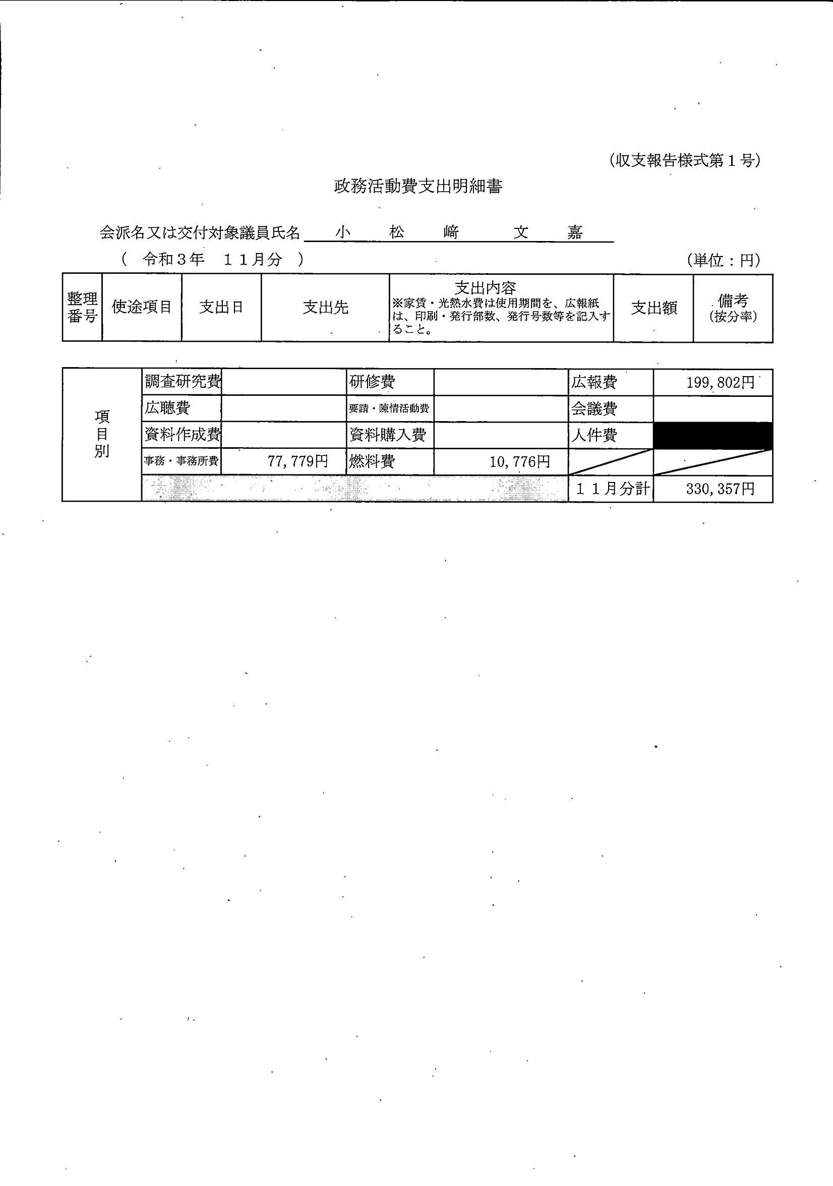 千葉市議会トップページ > 広報・情報公開 > 政務活動費 > 令和3年度交付分(政務活動費収支報告書)