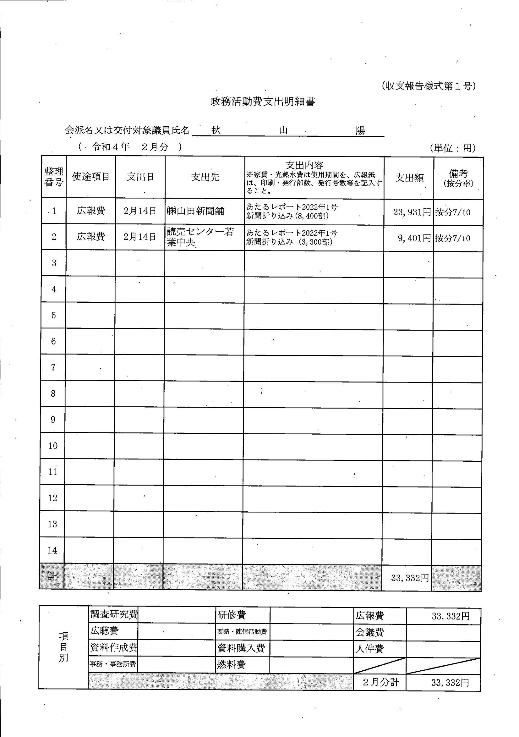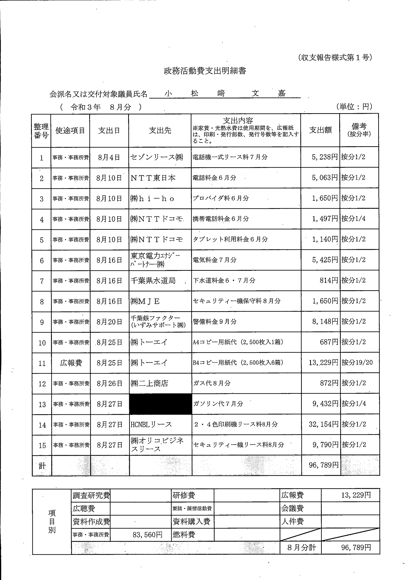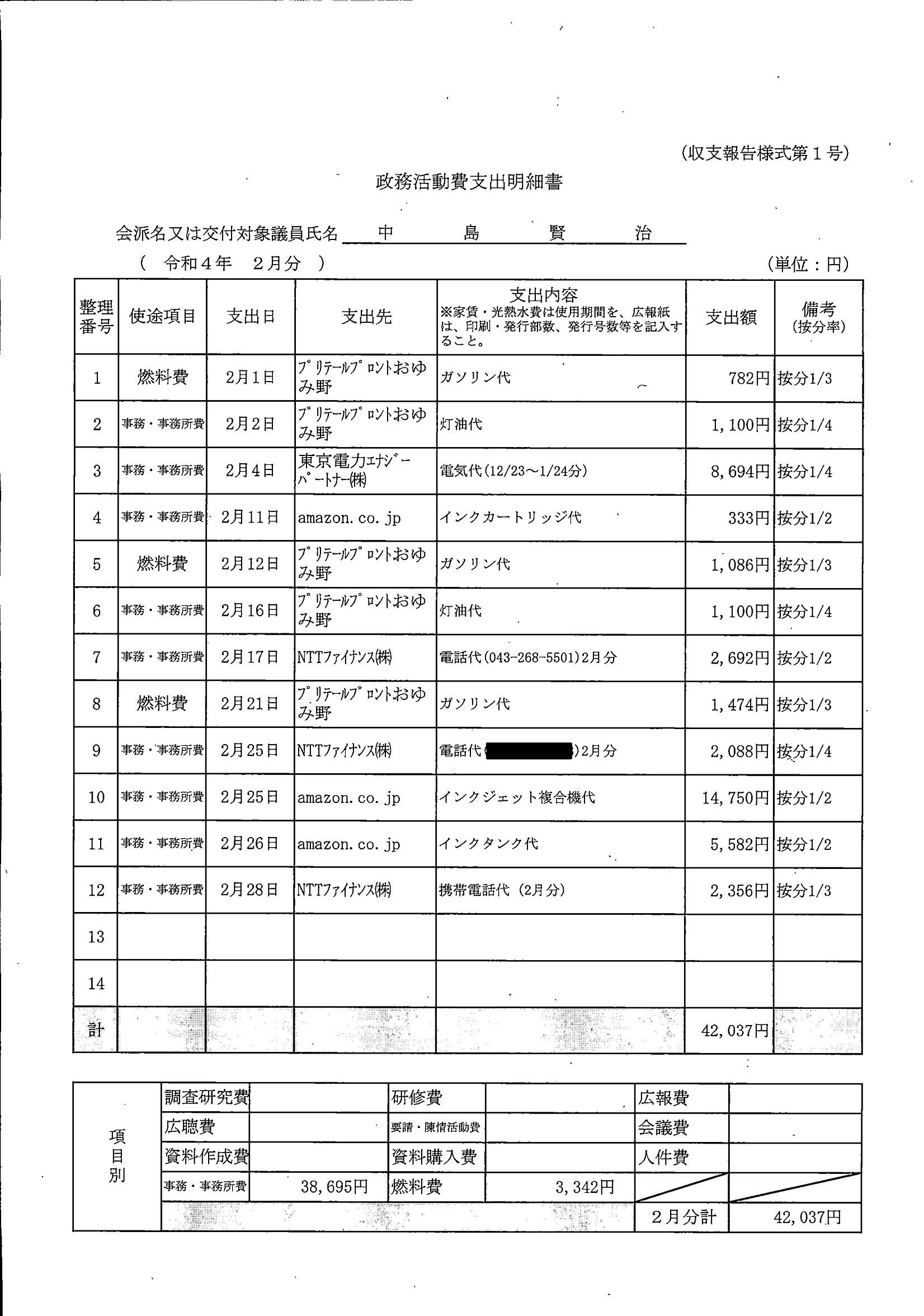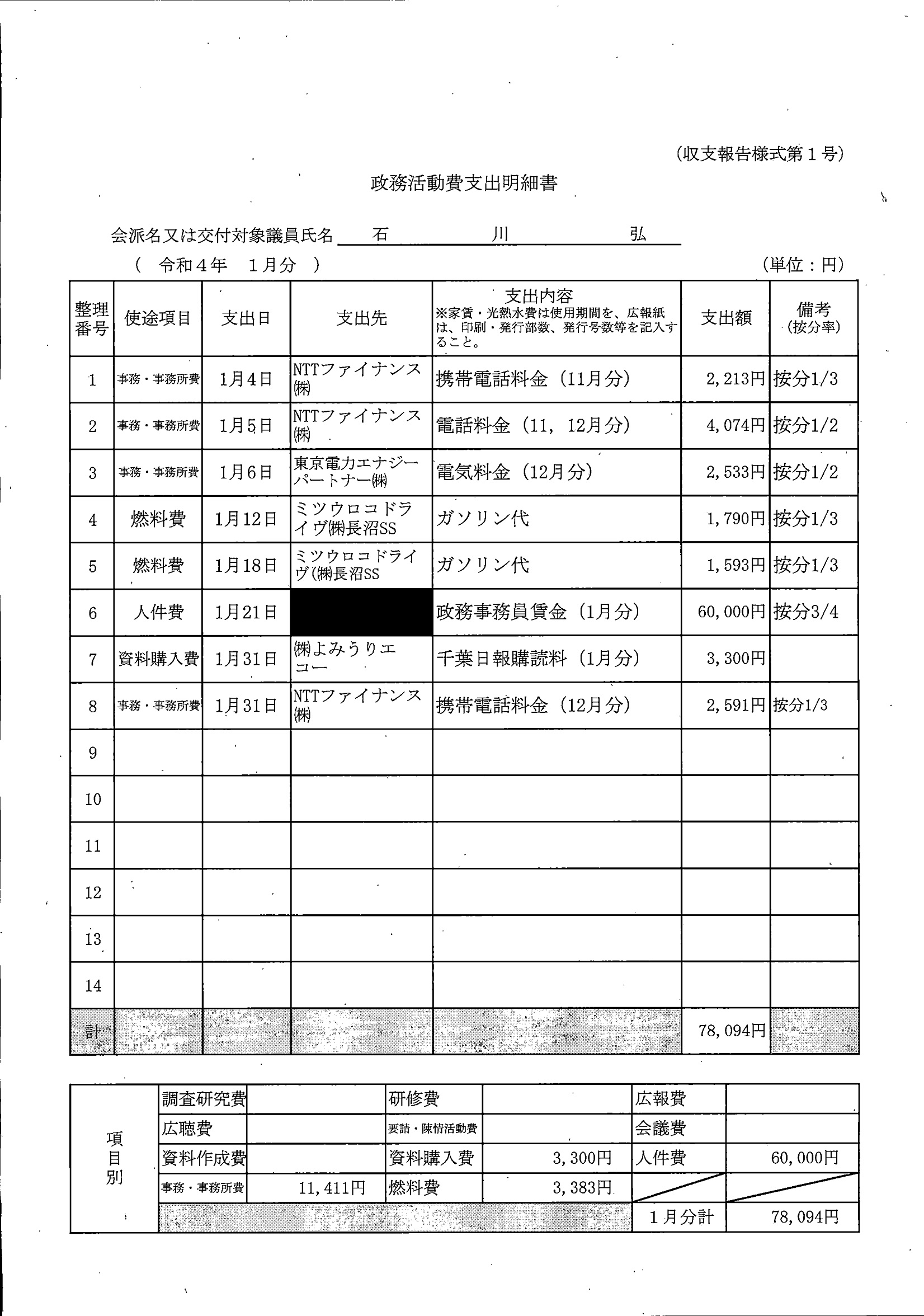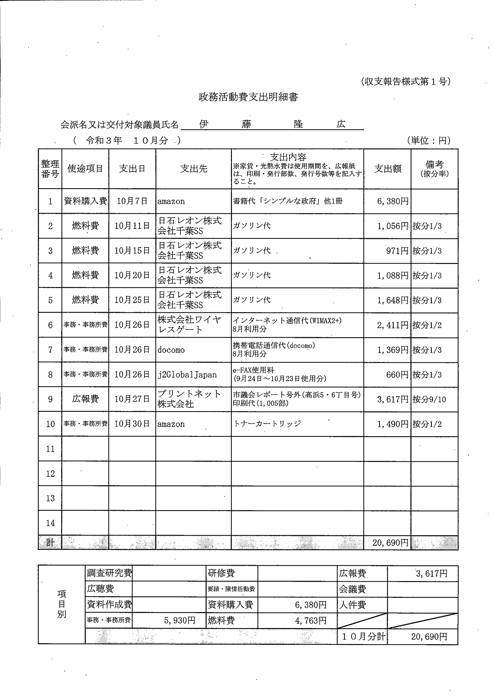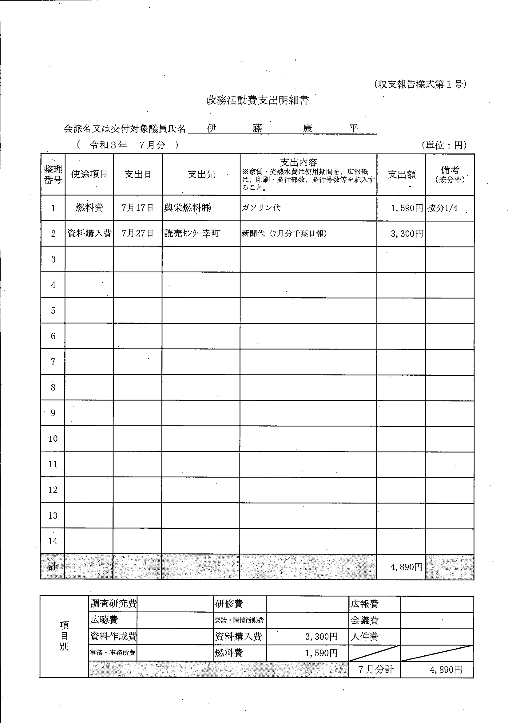 千葉市議会トップページ > 広報・情報公開 > 政務活動費 > 令和3年度交付分(政務活動費収支報告書)