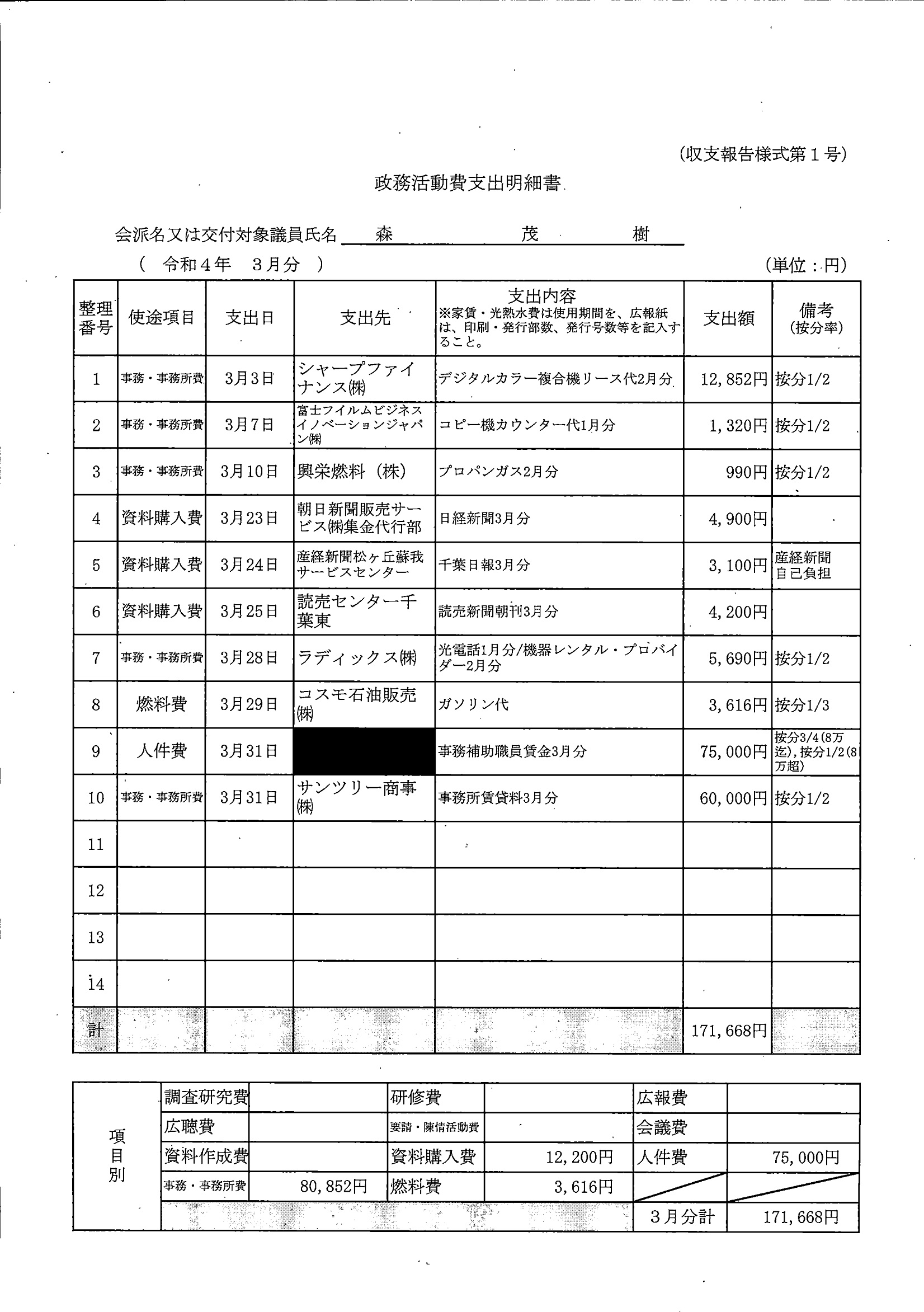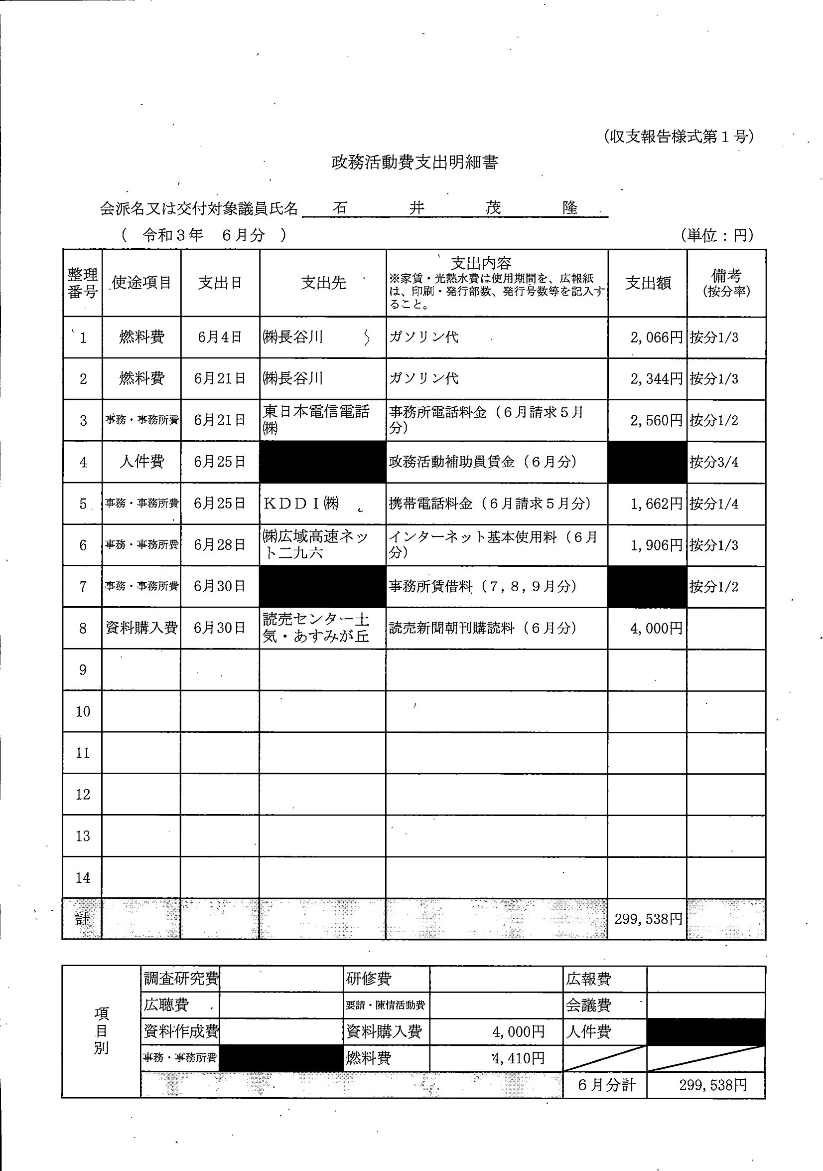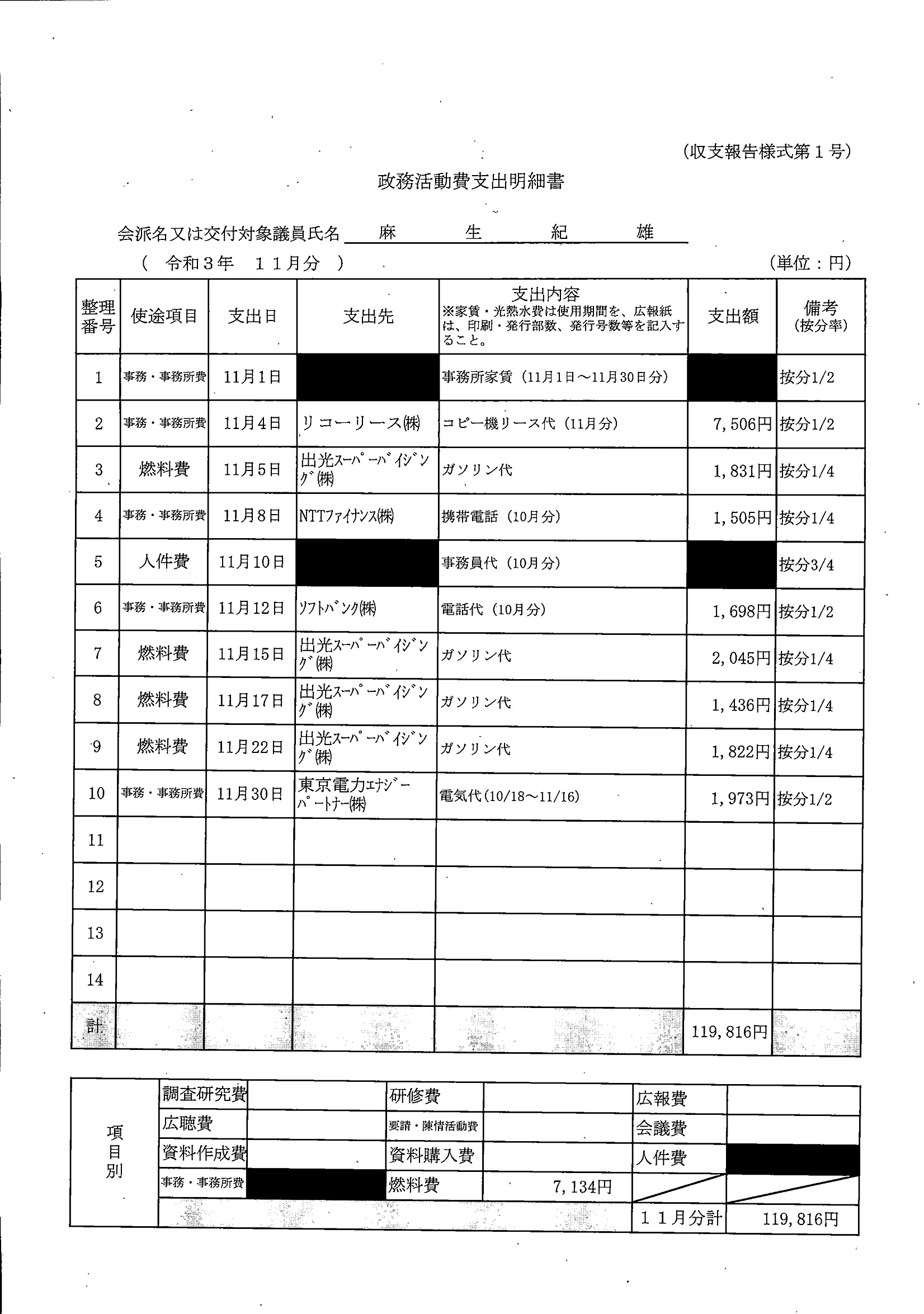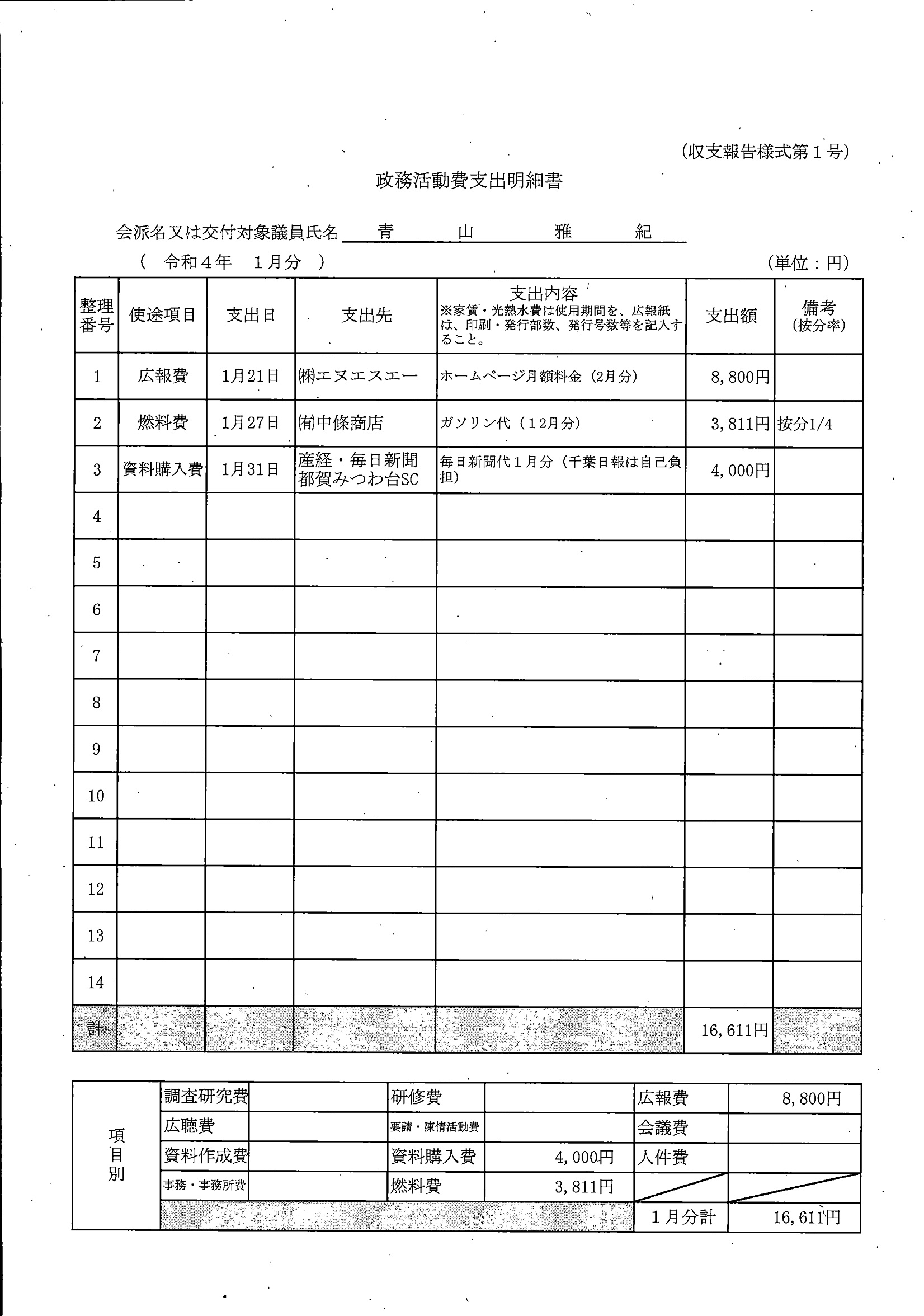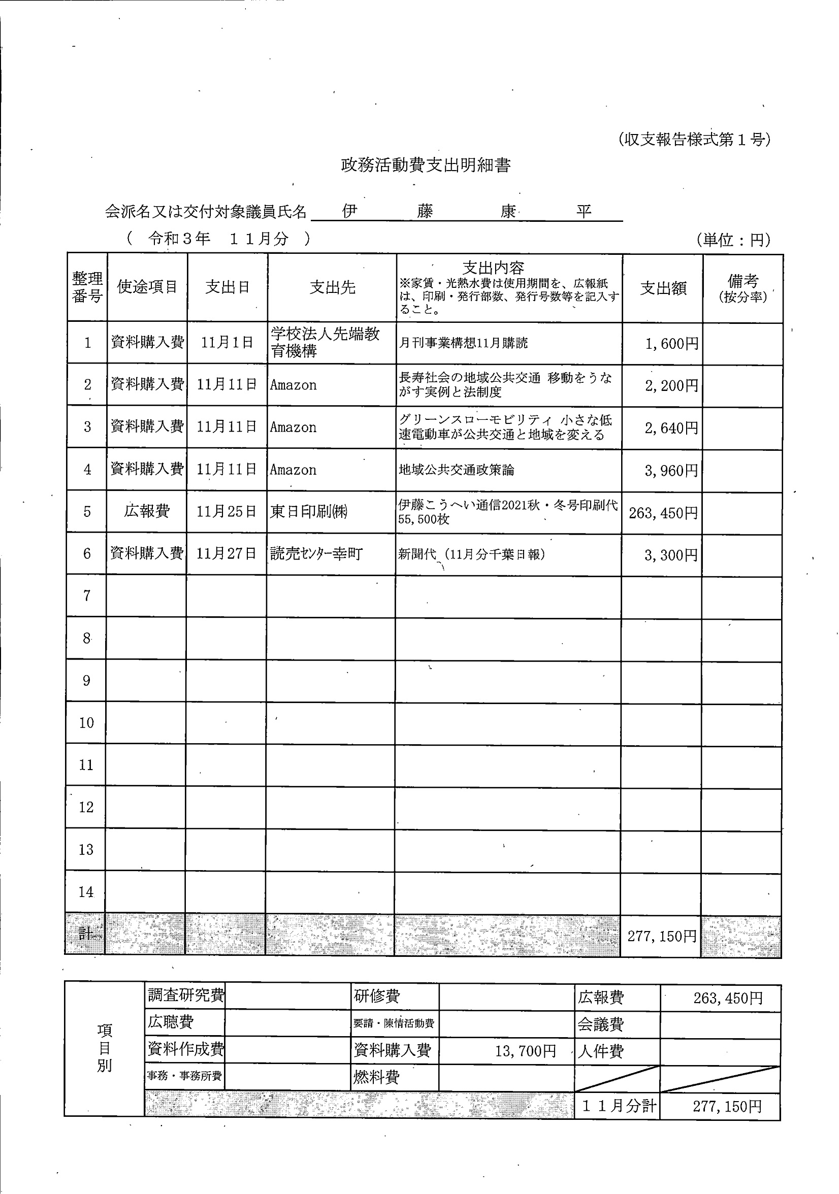 千葉市議会トップページ > 広報・情報公開 > 政務活動費 > 令和3年度交付分(政務活動費収支報告書)