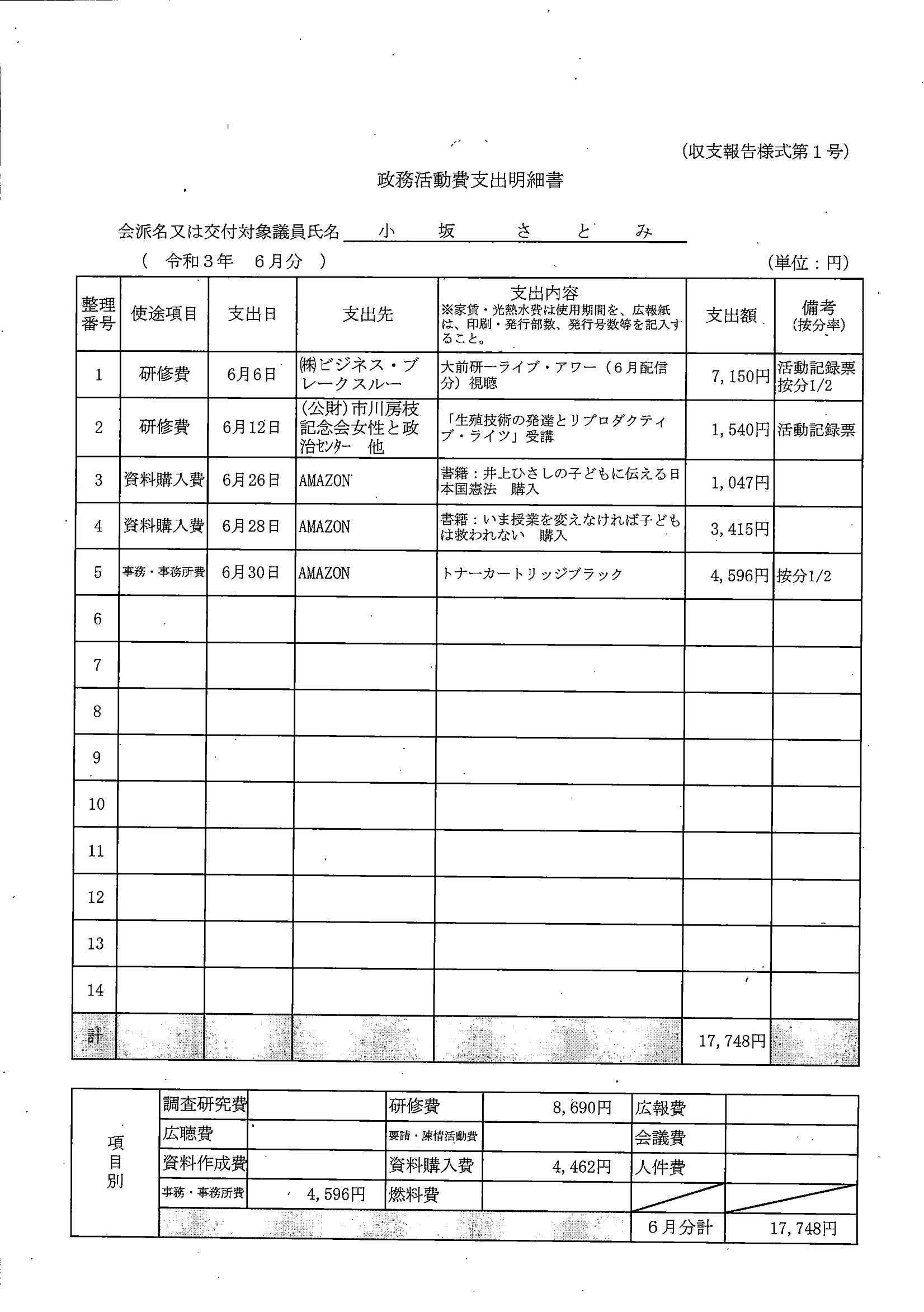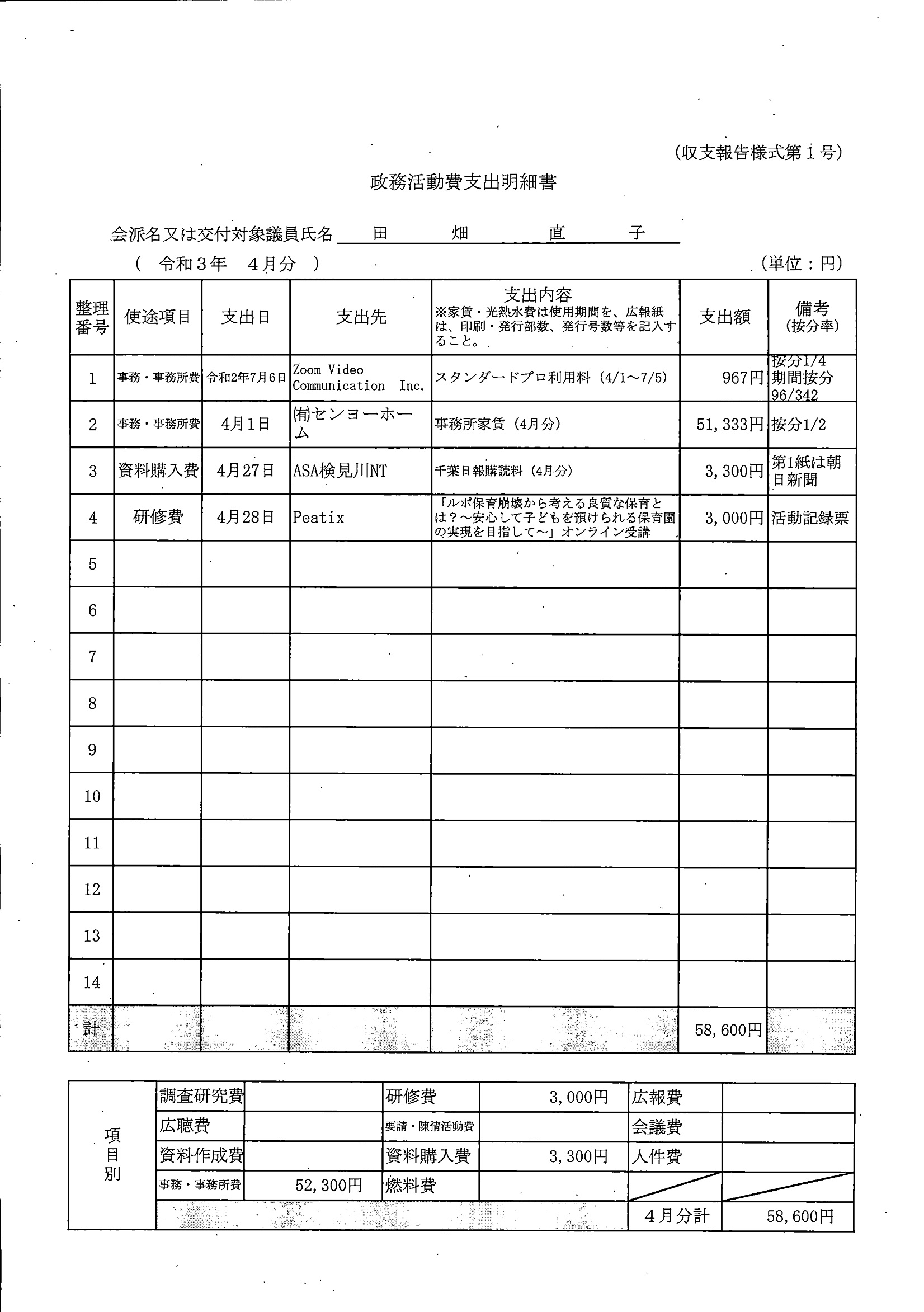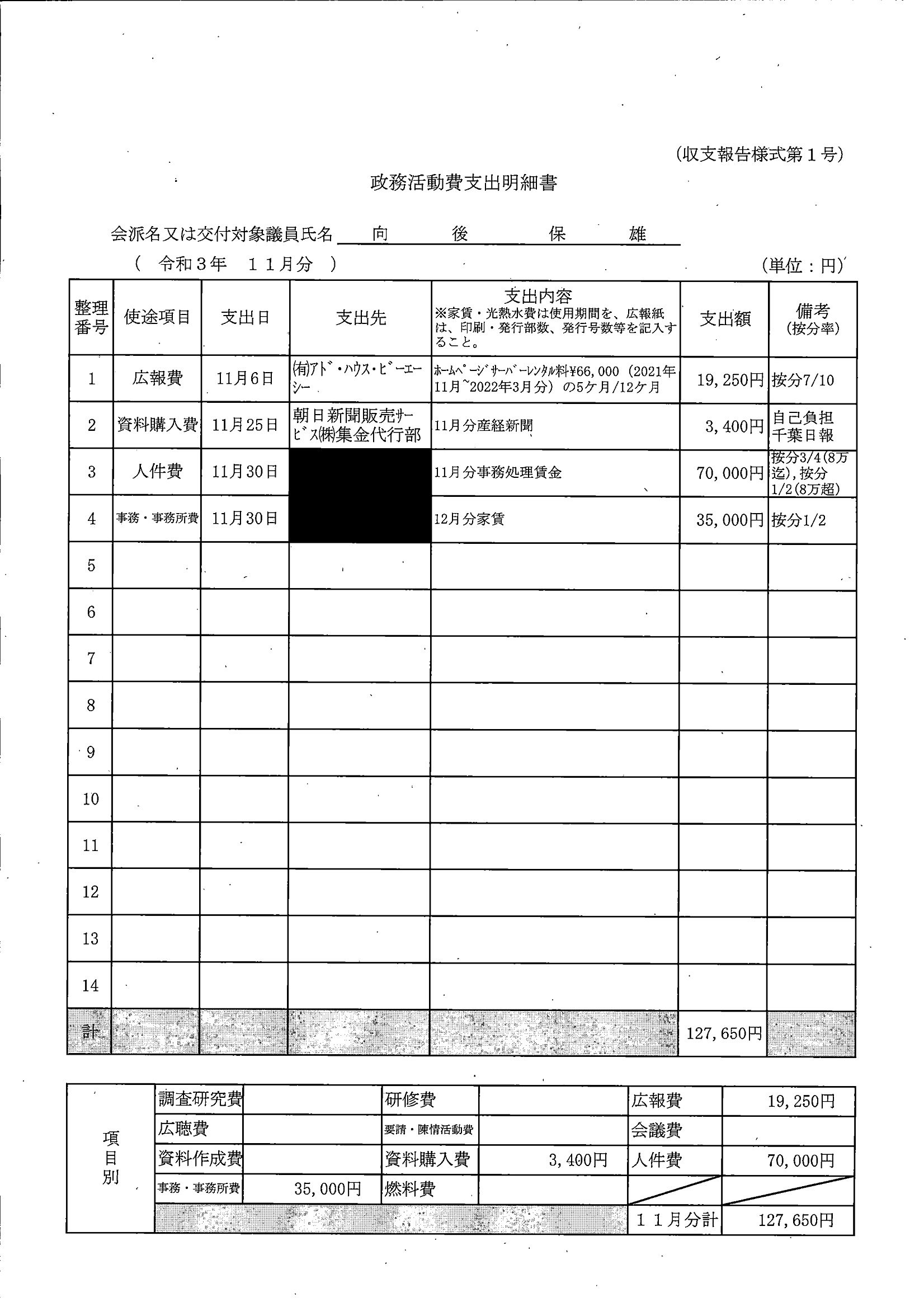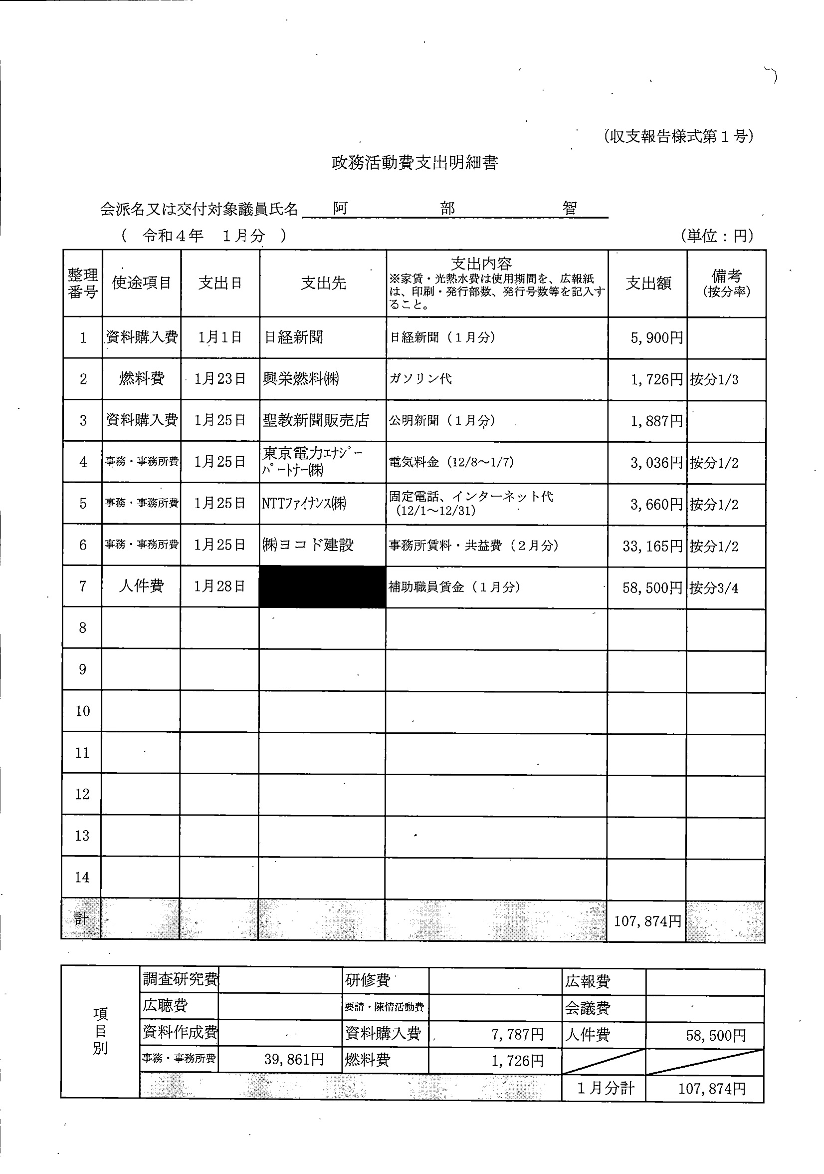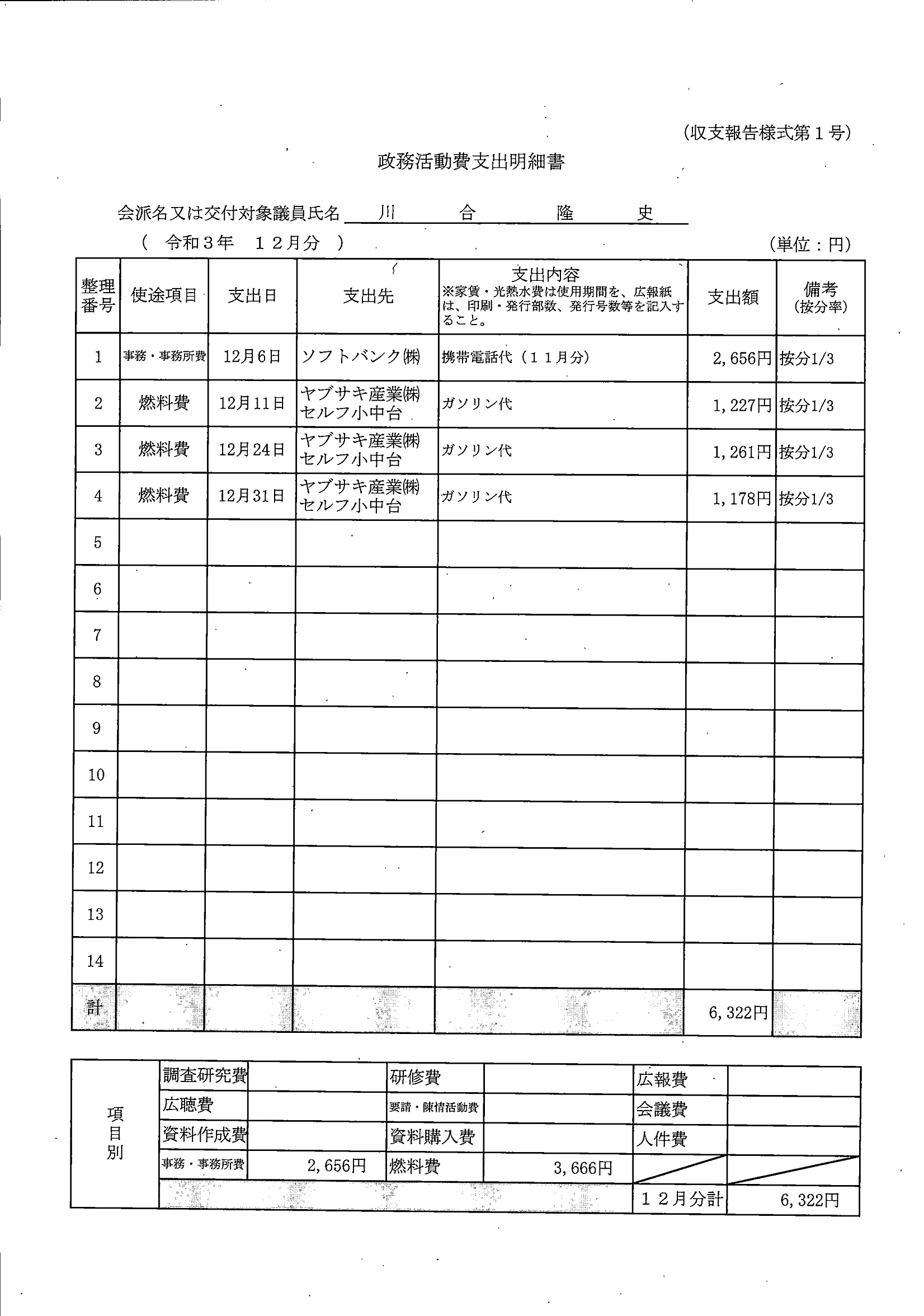 千葉市議会トップページ > 広報・情報公開 > 政務活動費 > 令和3年度交付分(政務活動費収支報告書)