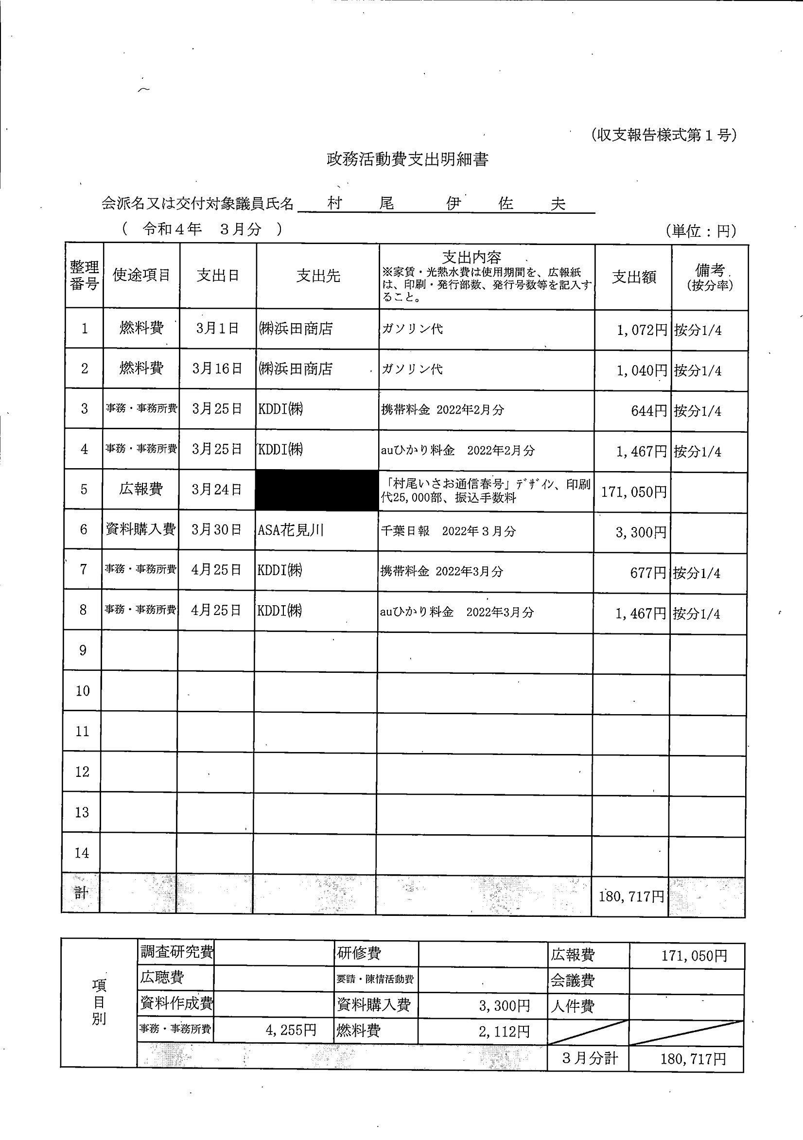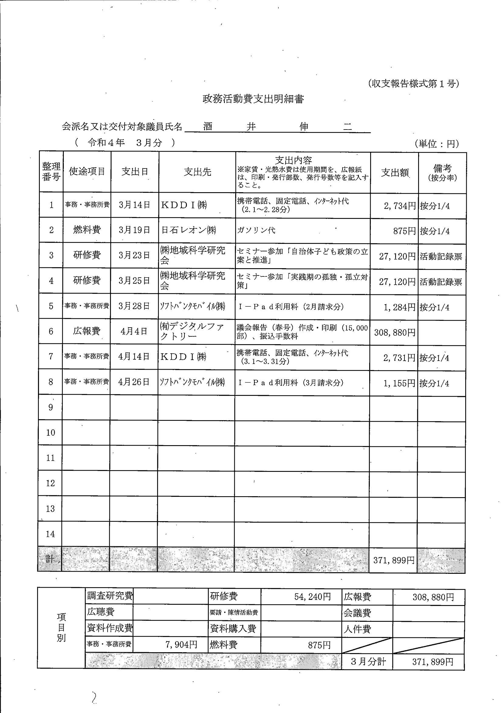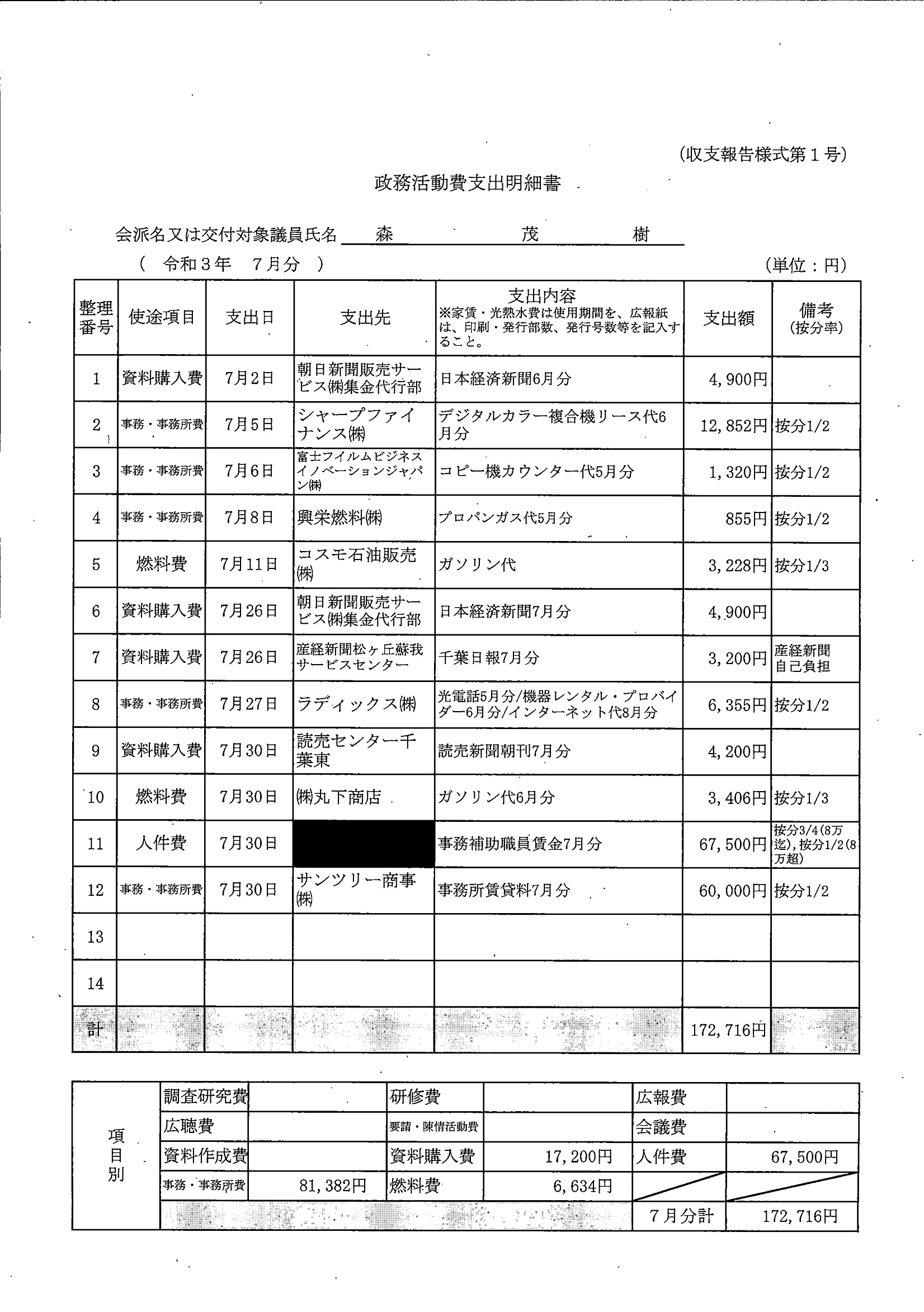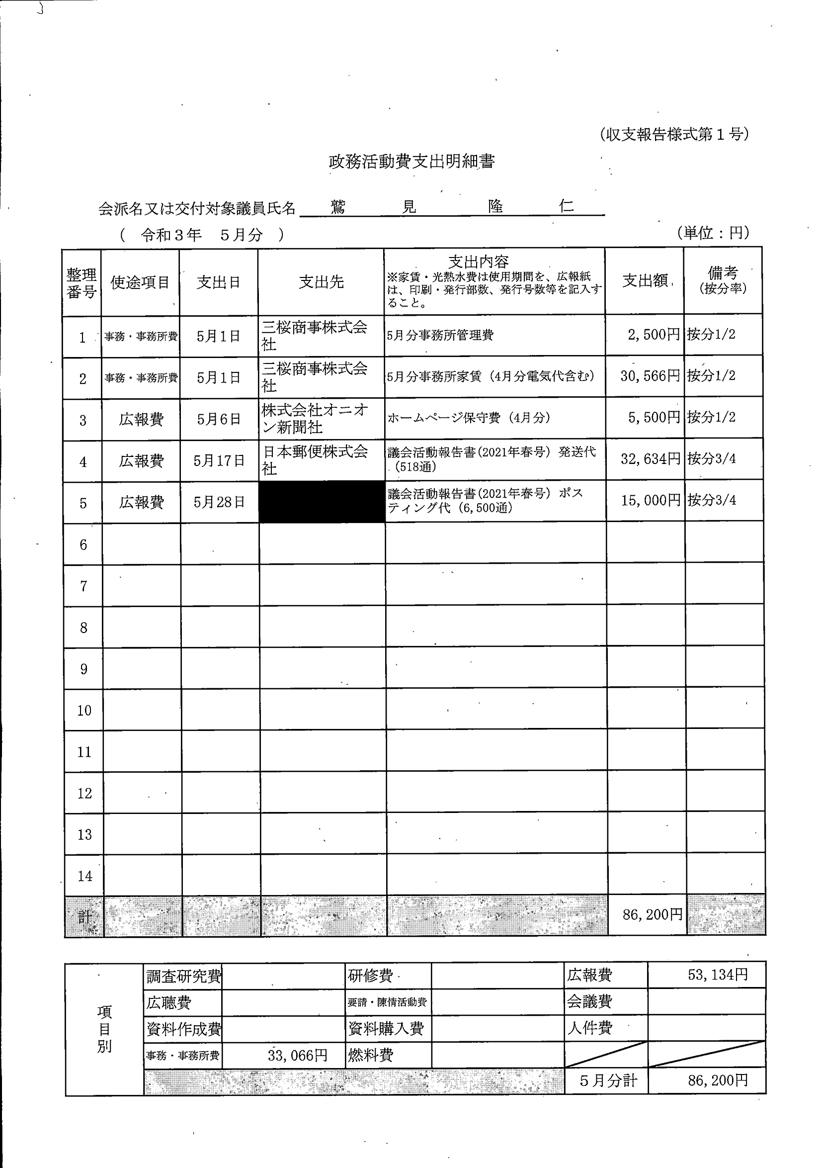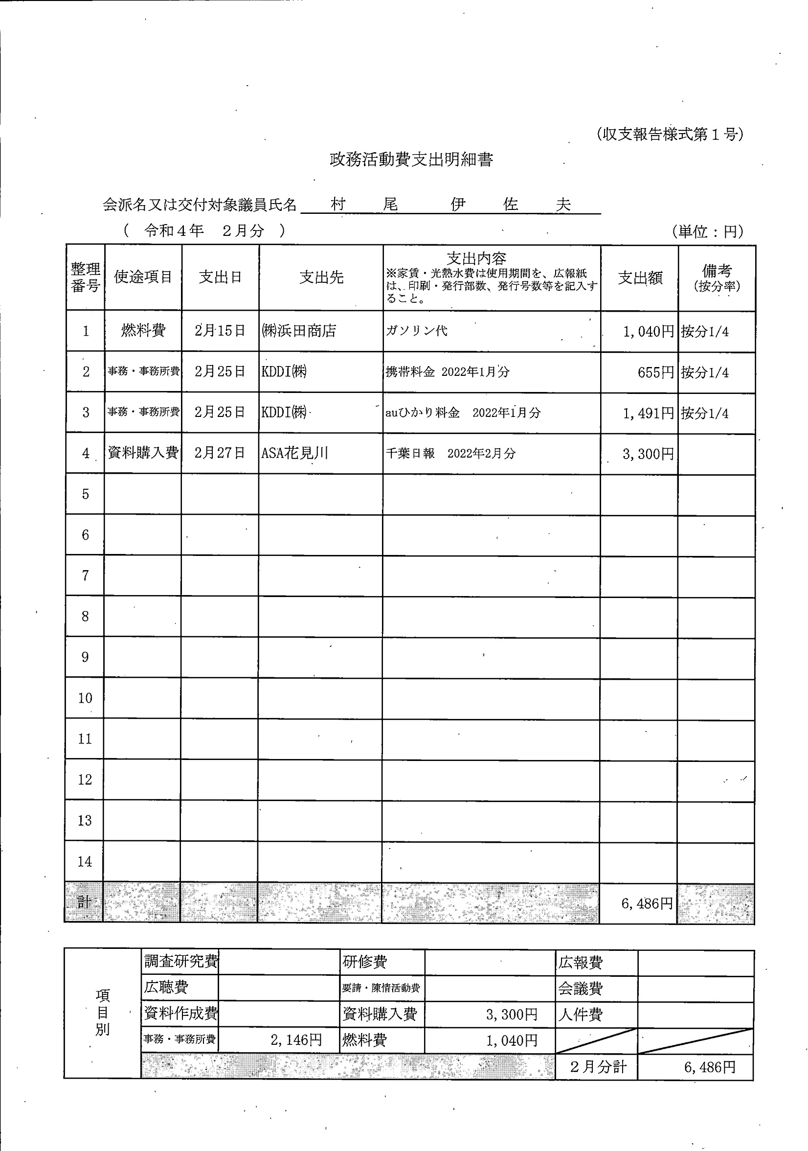千葉市議会トップページ > 広報・情報公開 > 政務活動費 > 令和3年度交付分(政務活動費収支報告書)