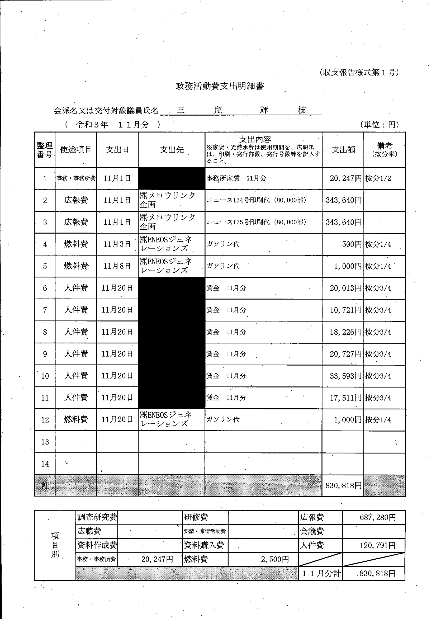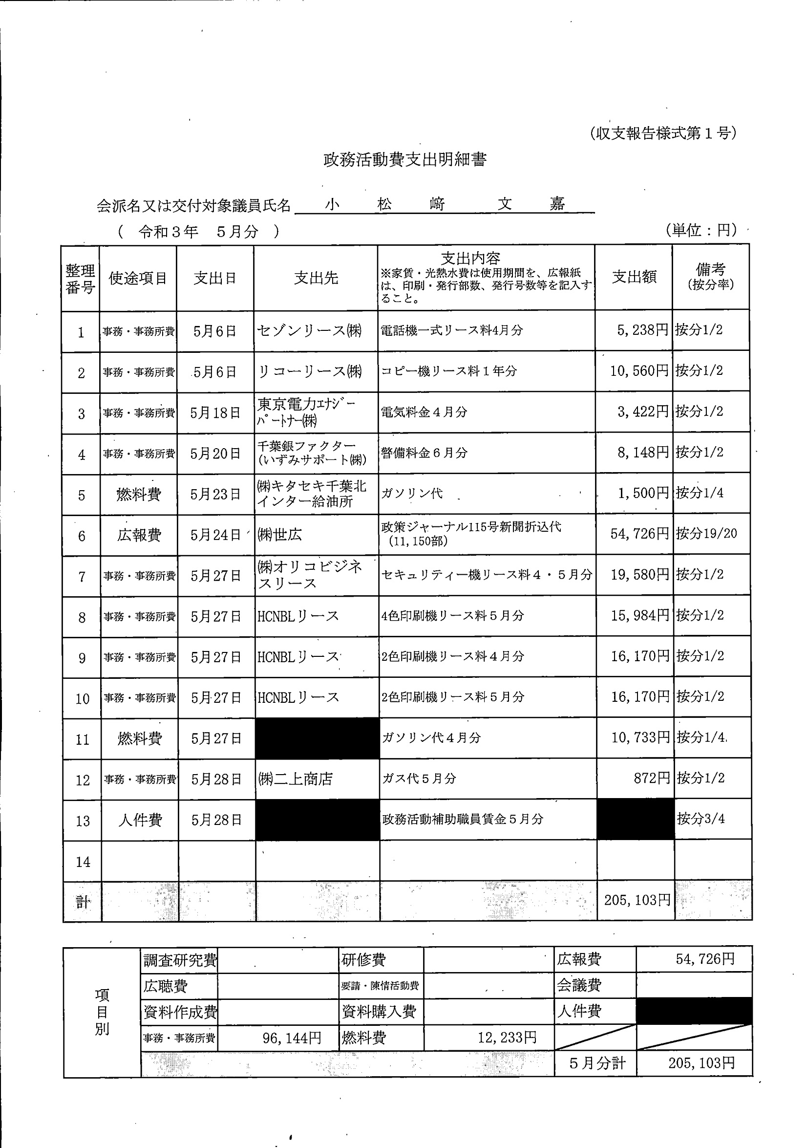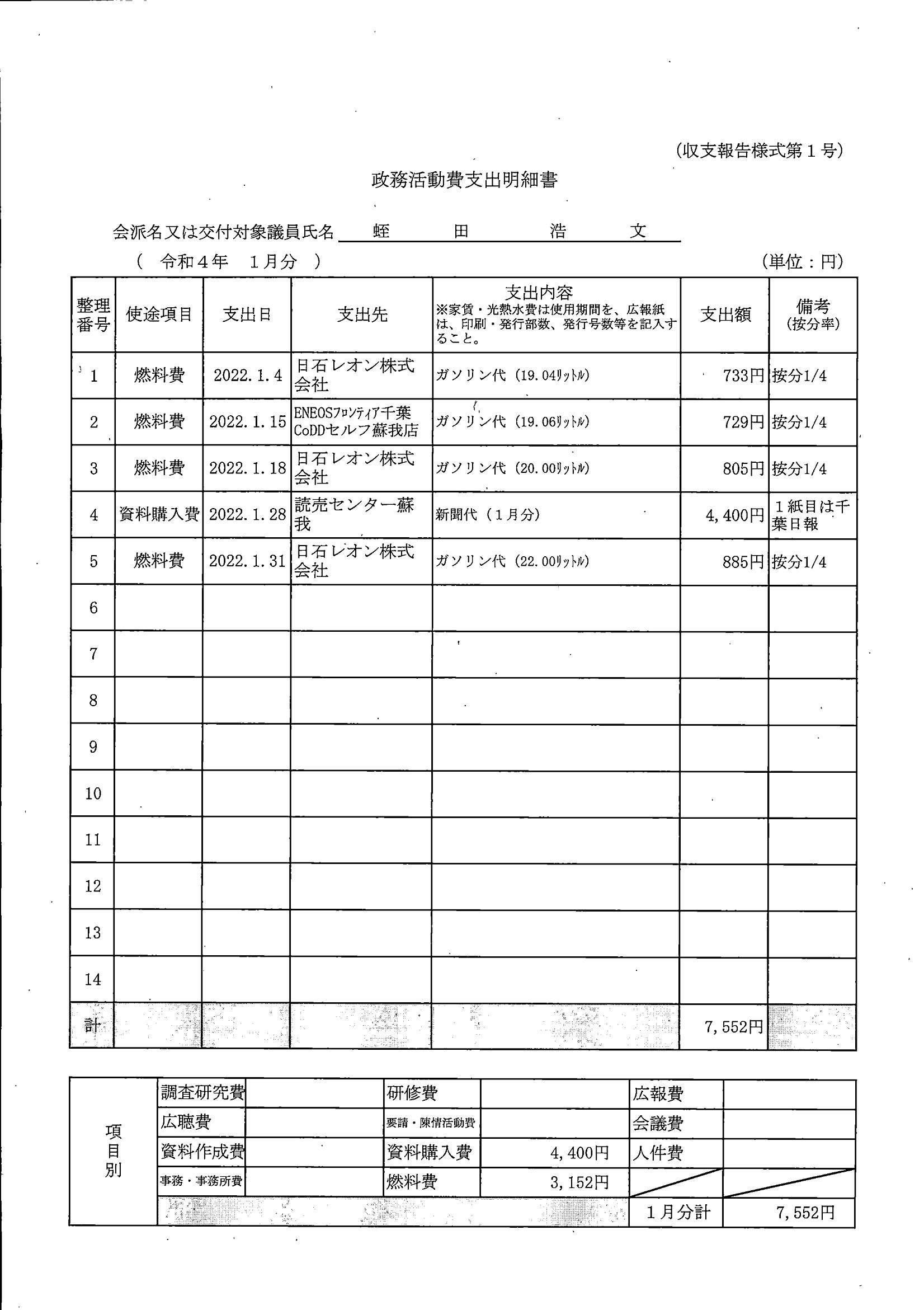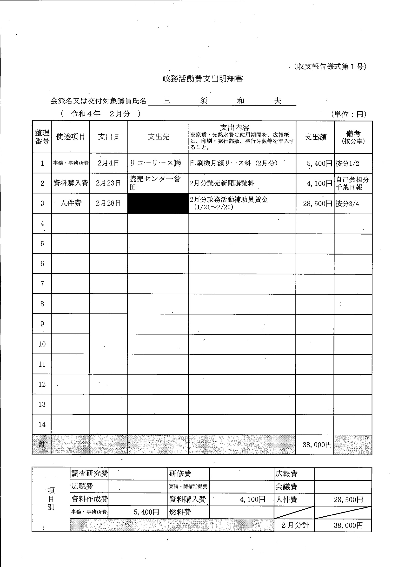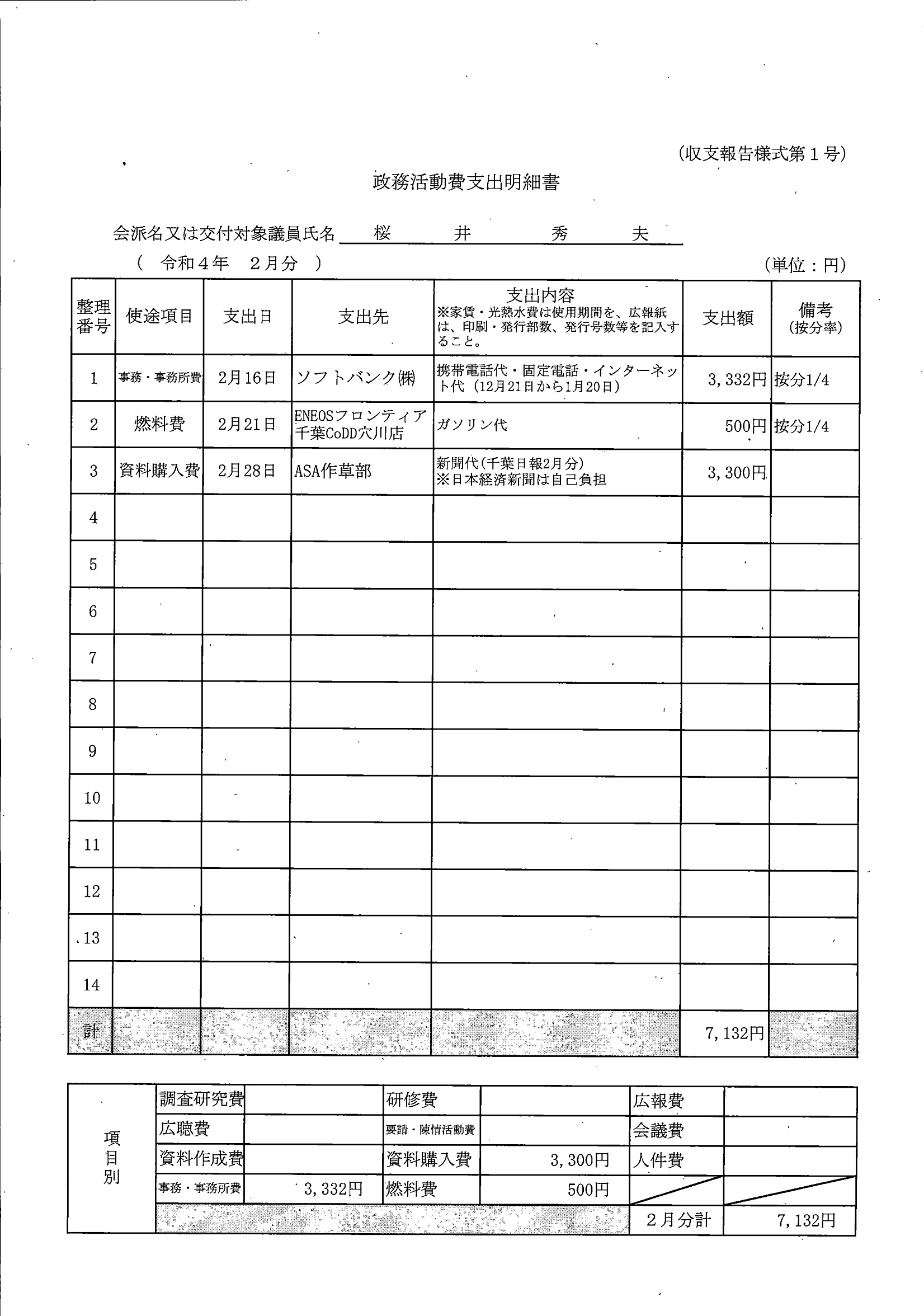 千葉市議会トップページ > 広報・情報公開 > 政務活動費 > 令和3年度交付分(政務活動費収支報告書)