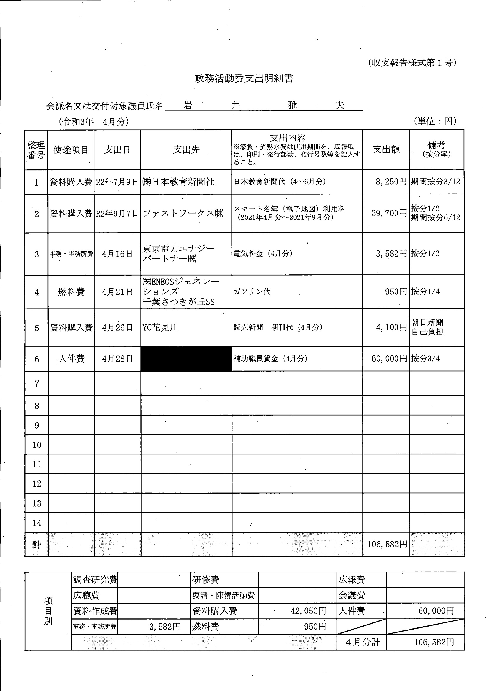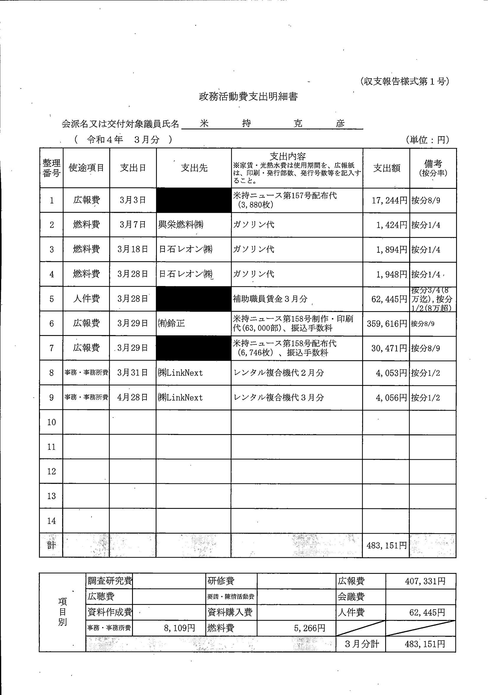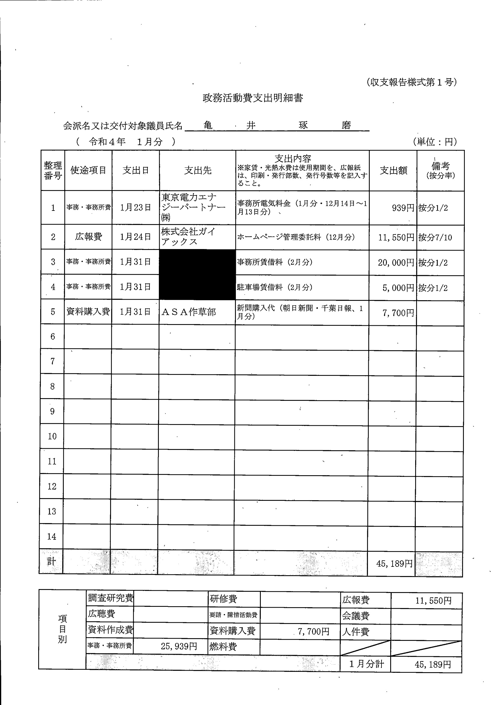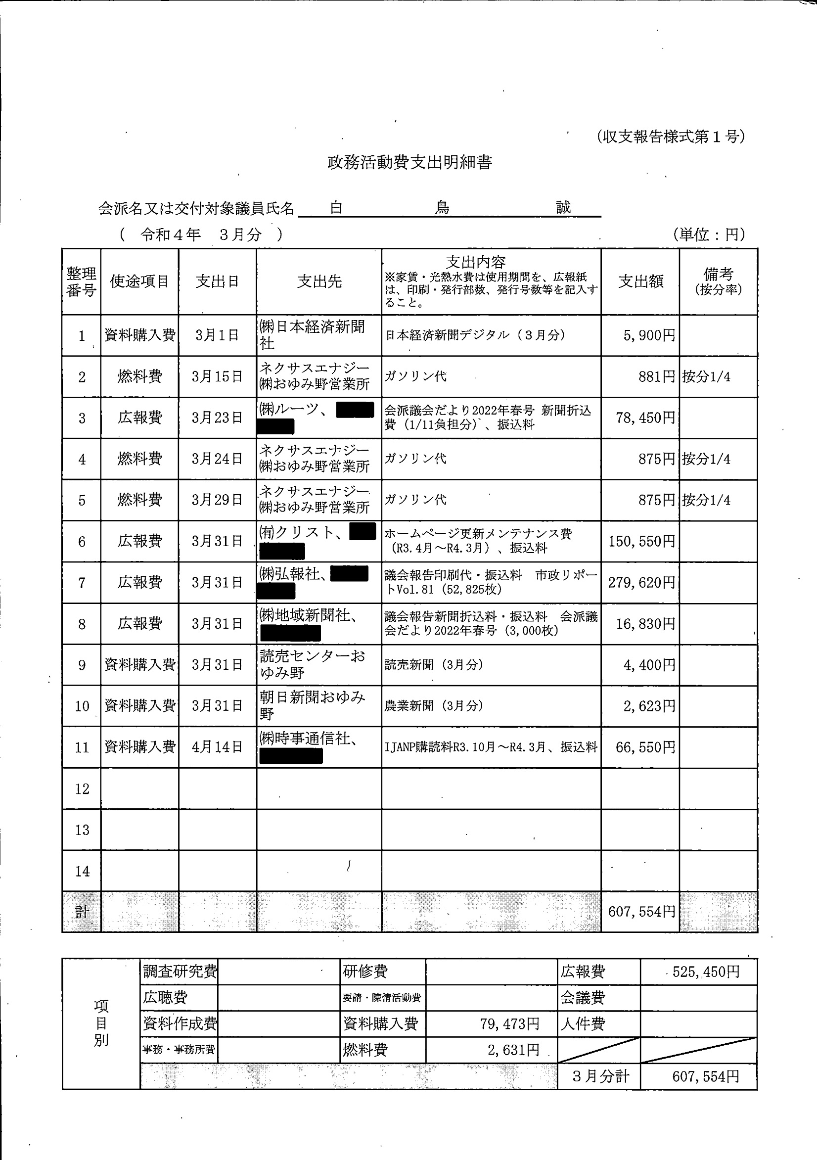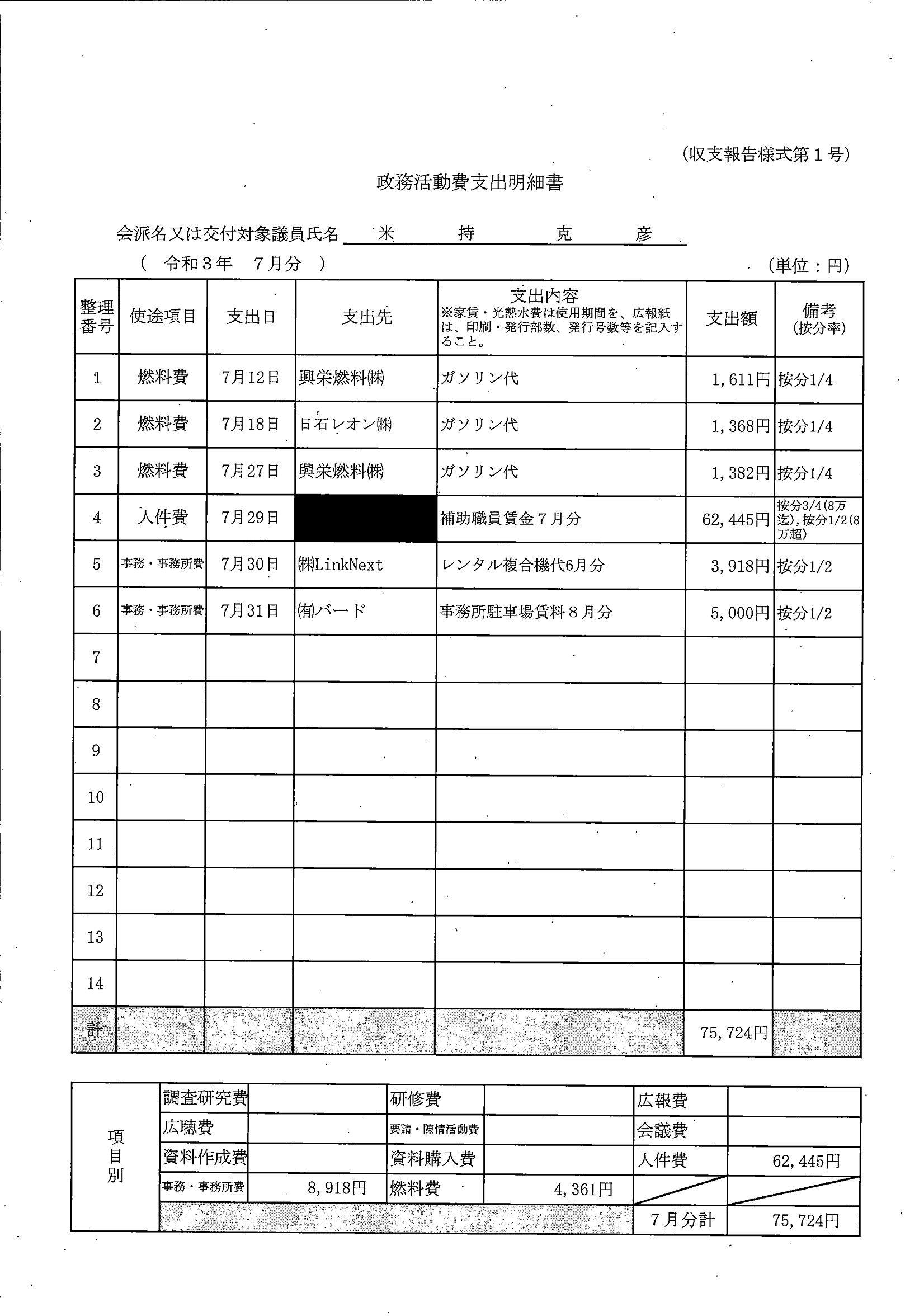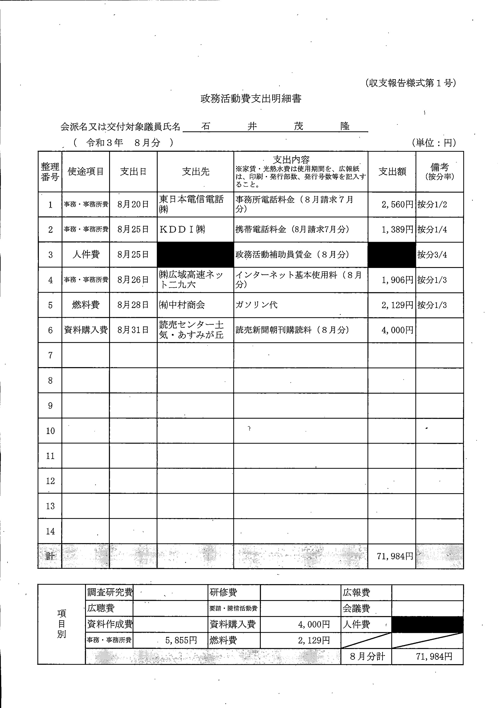 千葉市議会トップページ > 広報・情報公開 > 政務活動費 > 令和3年度交付分(政務活動費収支報告書)