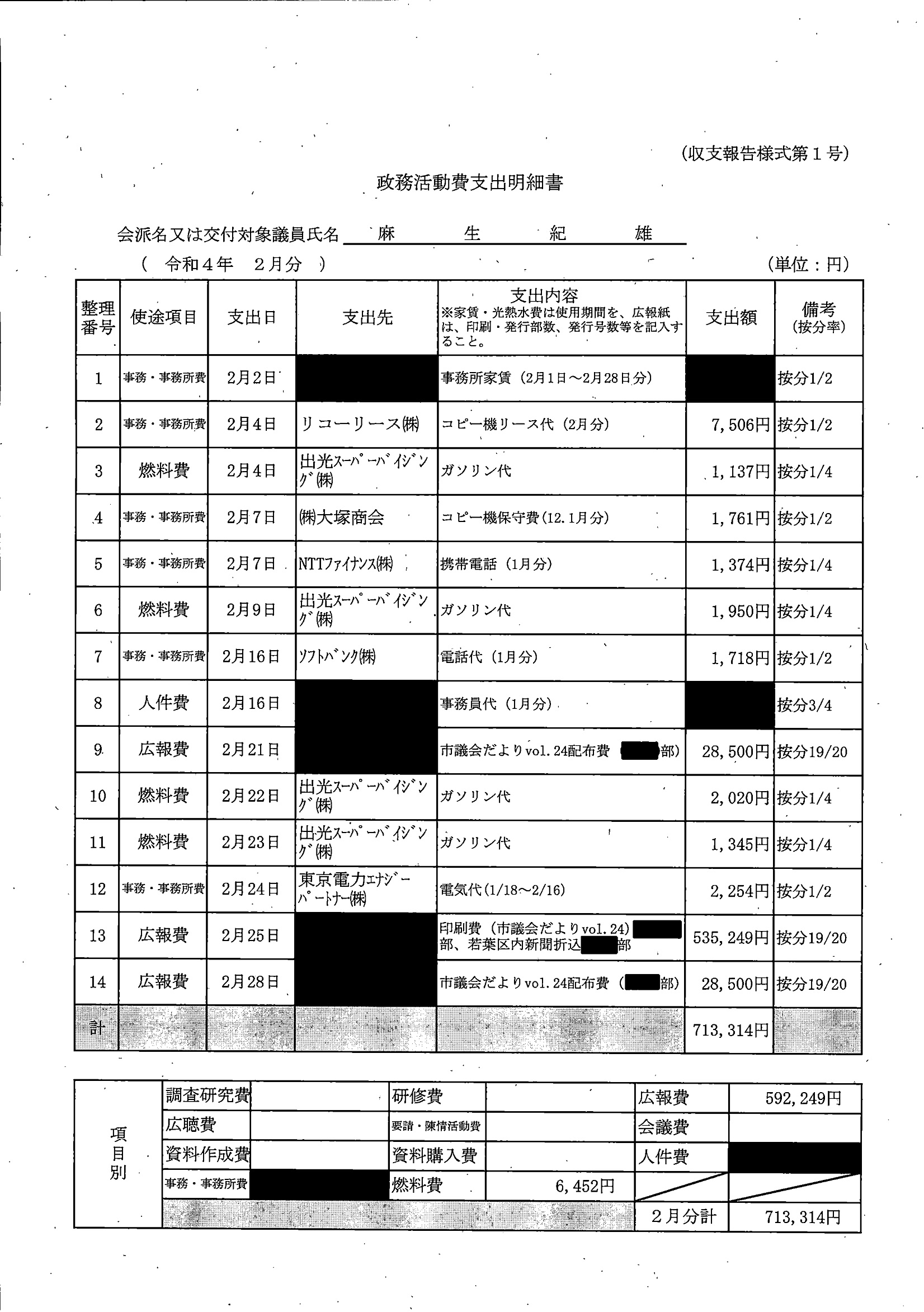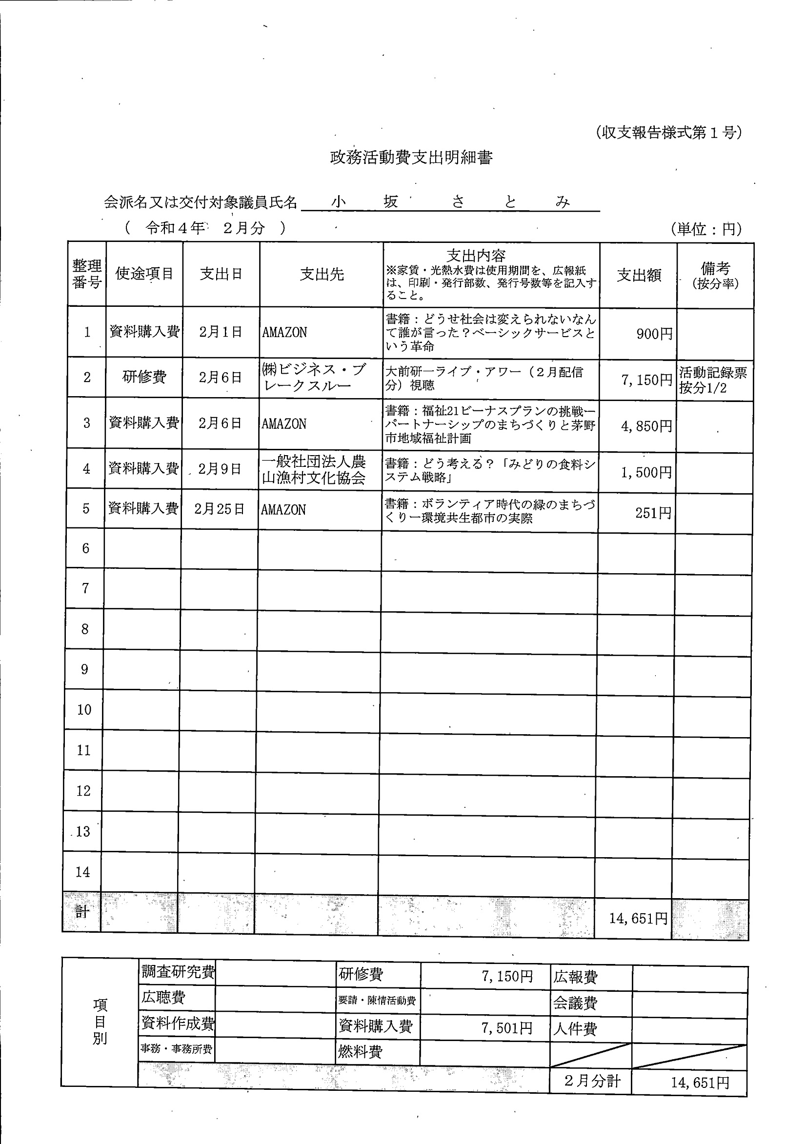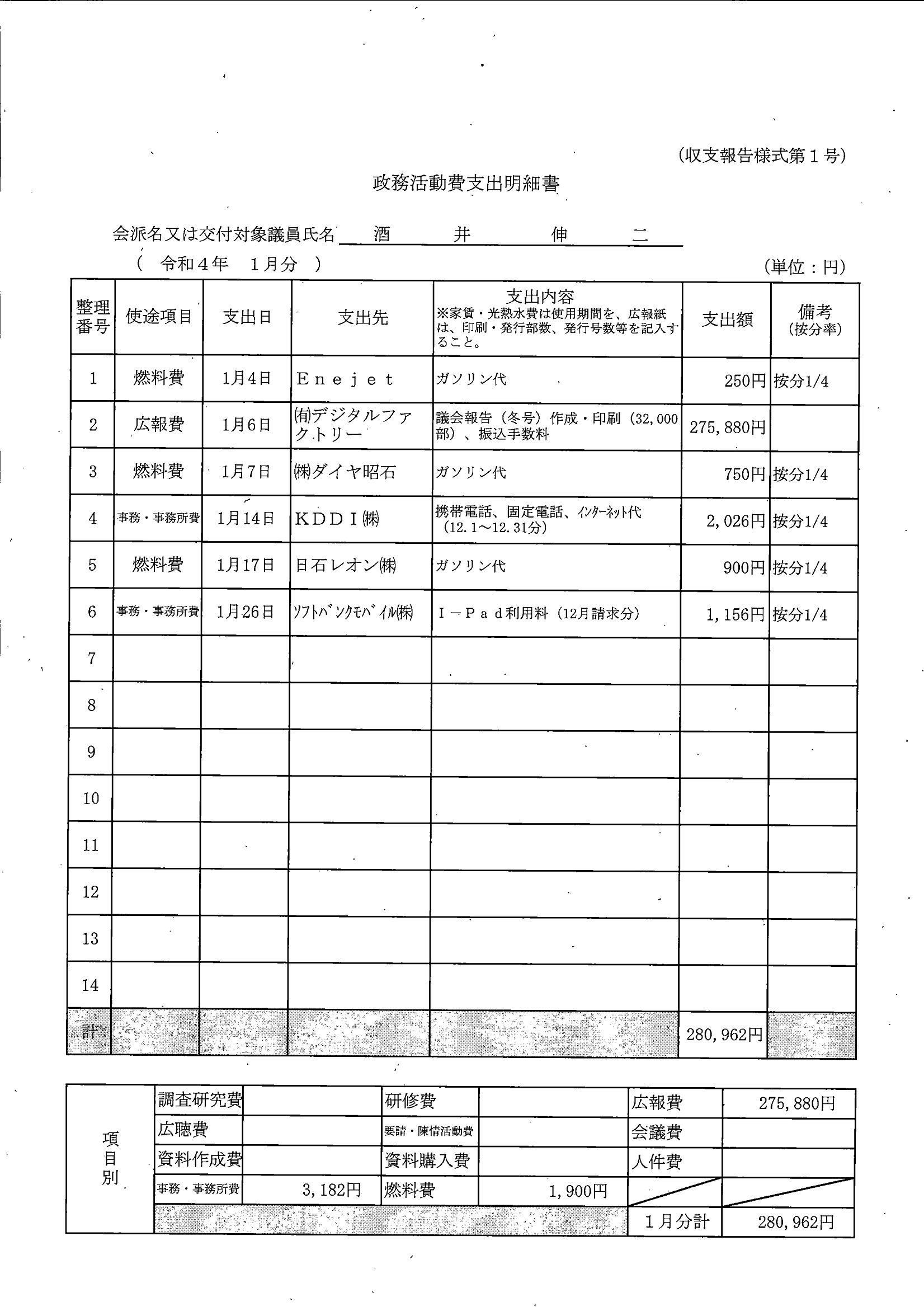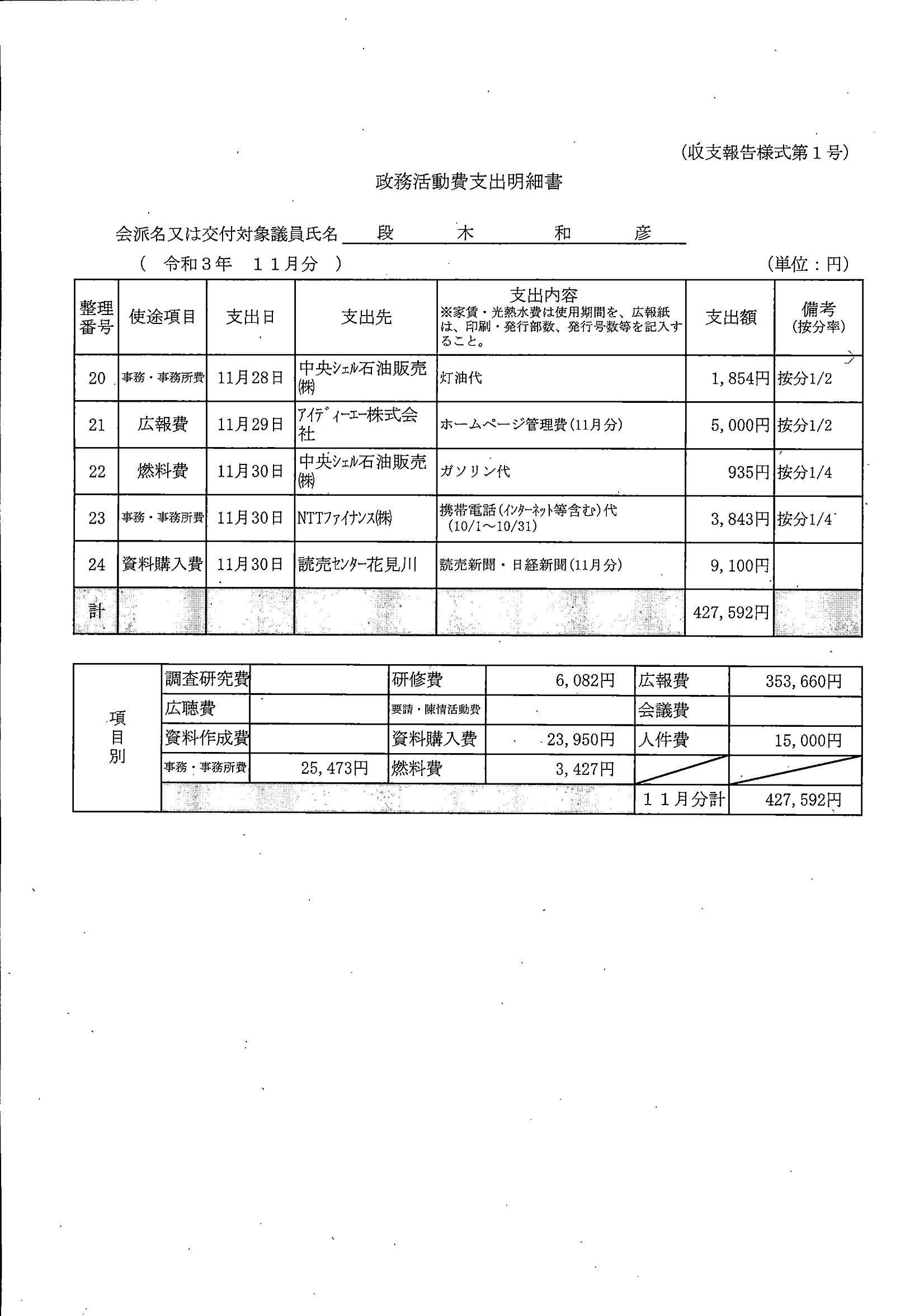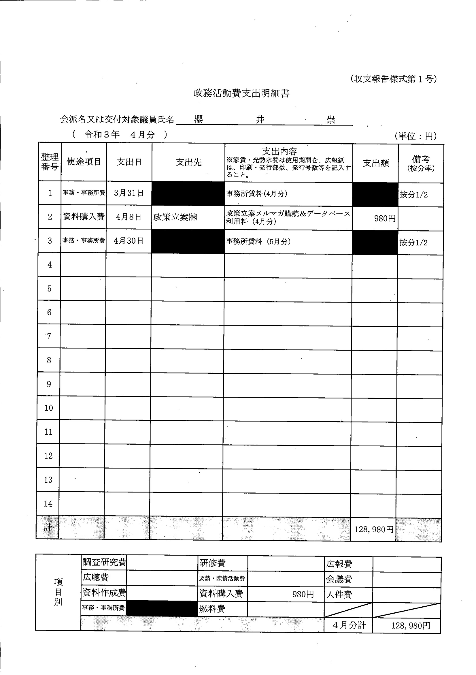 千葉市議会トップページ > 広報・情報公開 > 政務活動費 > 令和3年度交付分(政務活動費収支報告書)