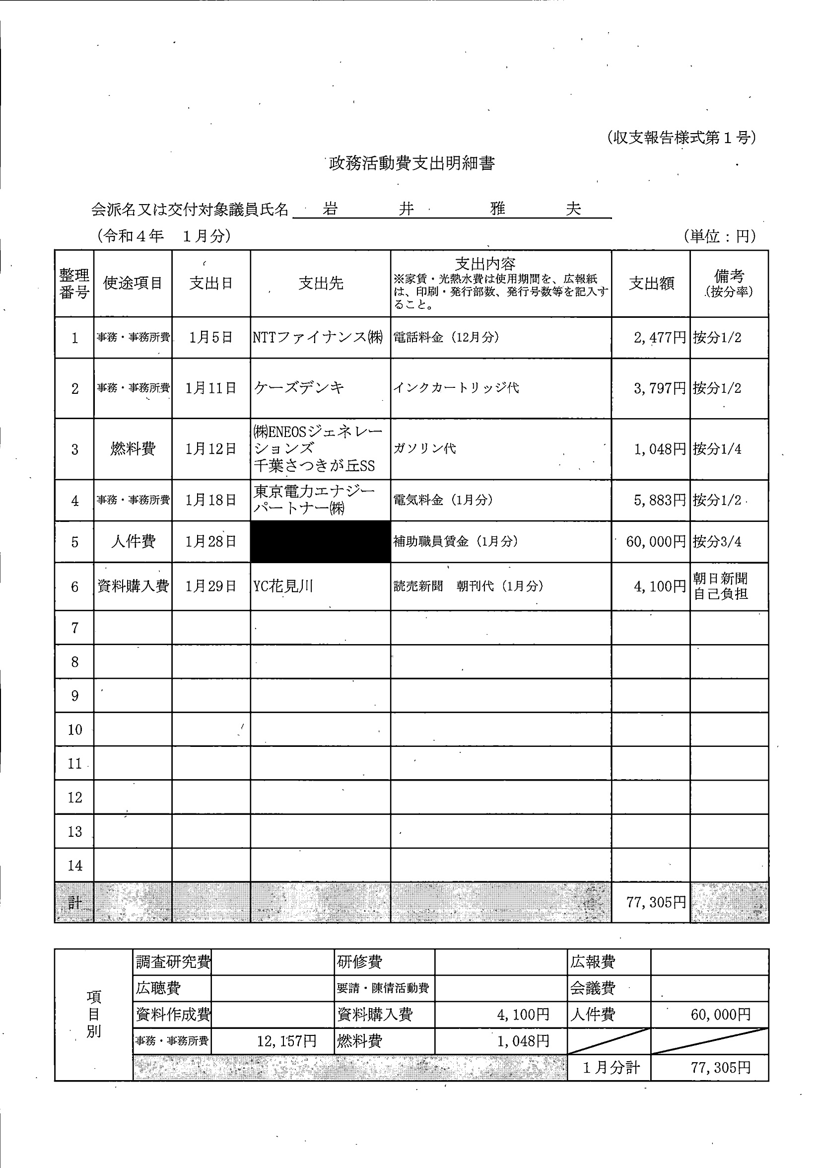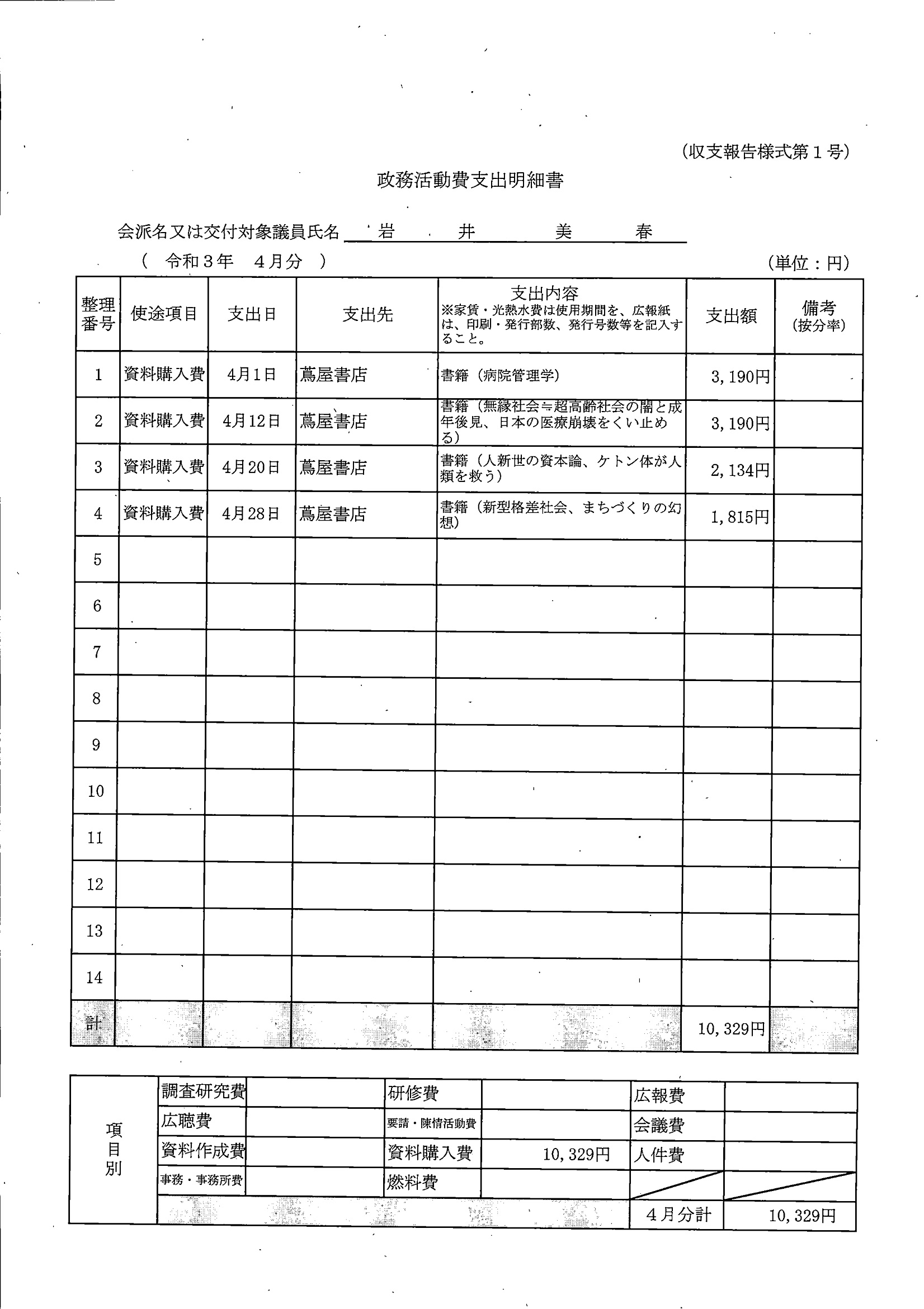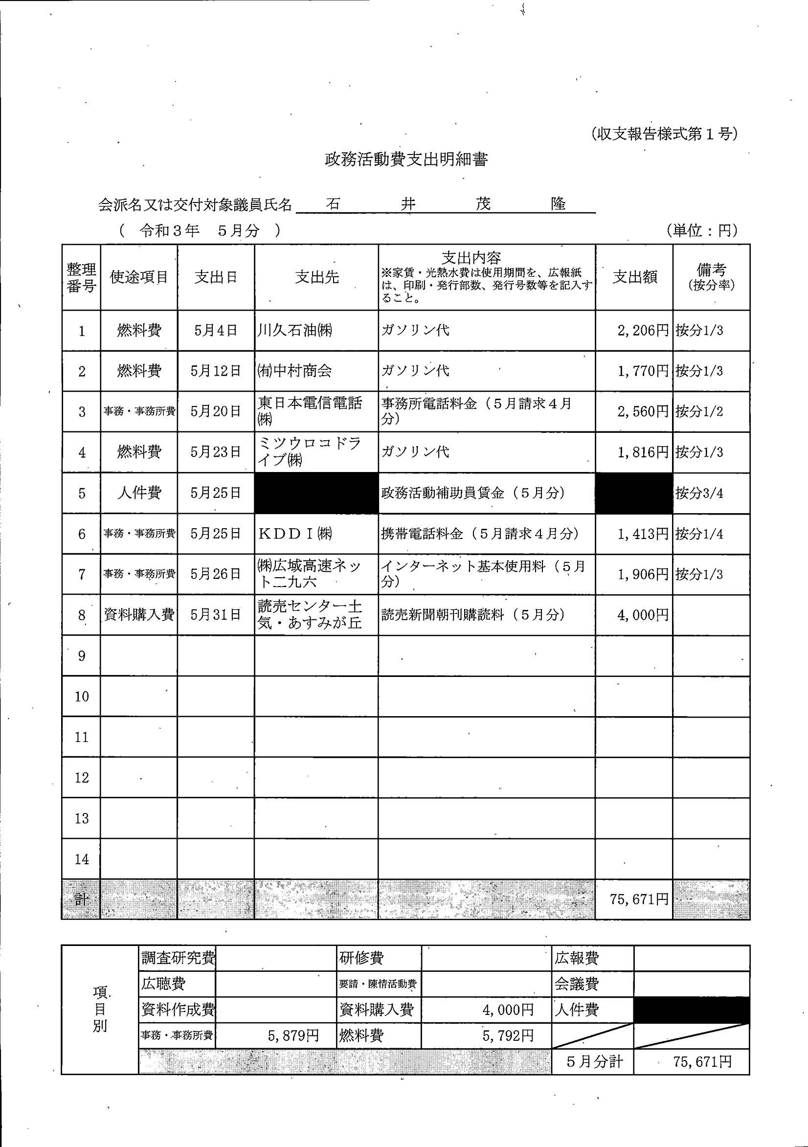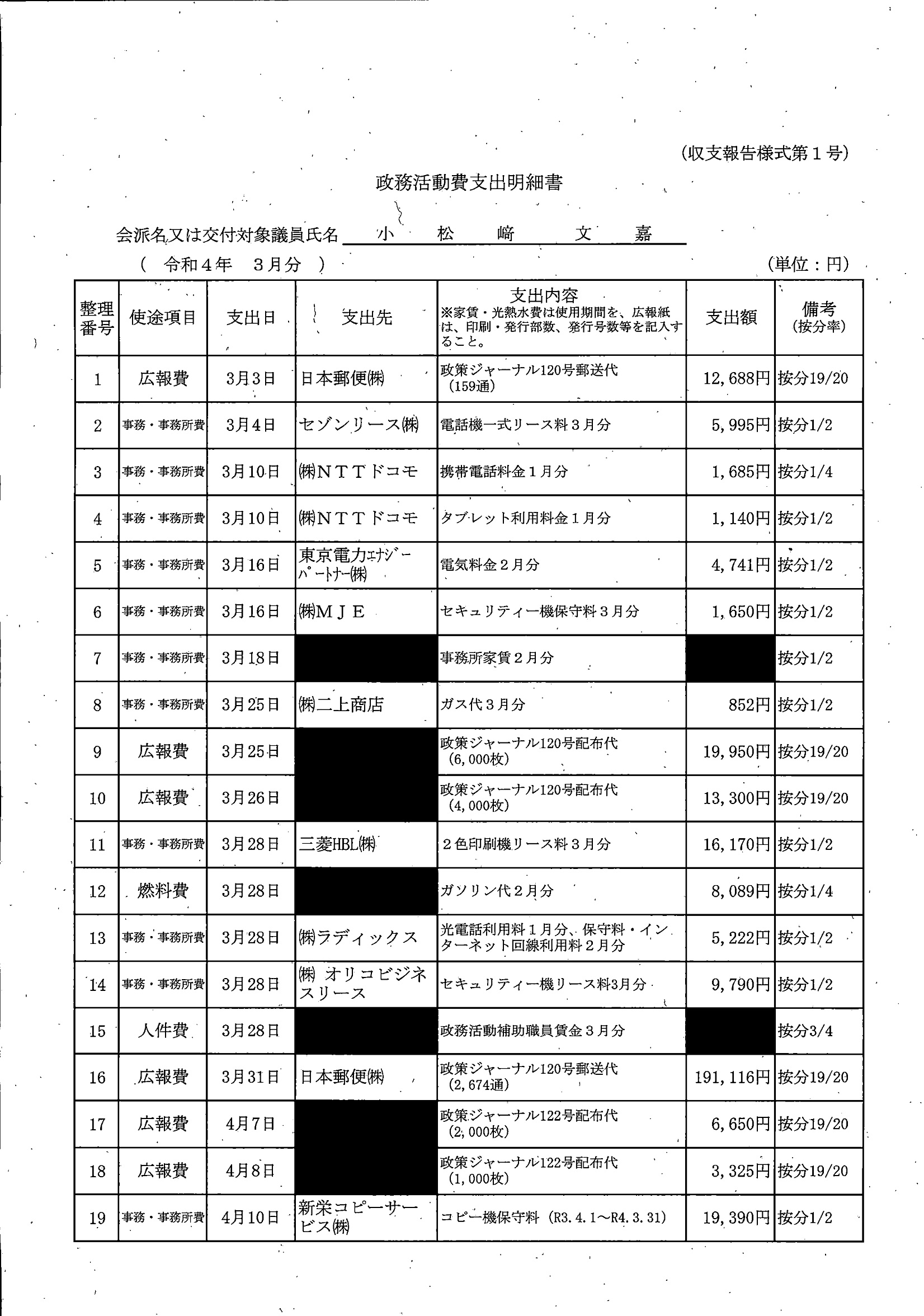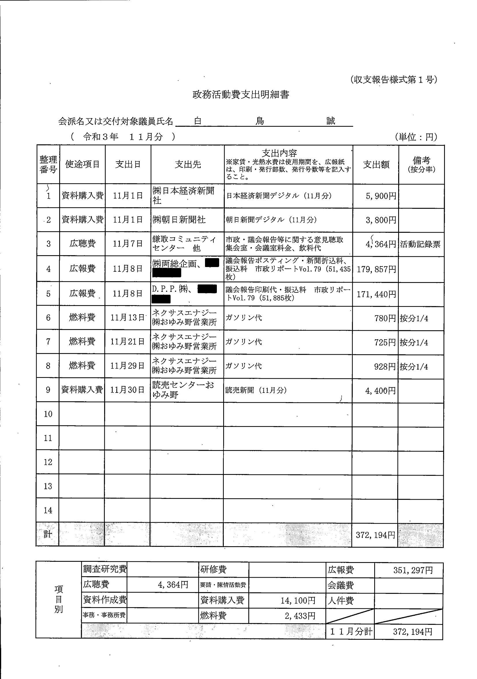 千葉市議会トップページ > 広報・情報公開 > 政務活動費 > 令和3年度交付分(政務活動費収支報告書)