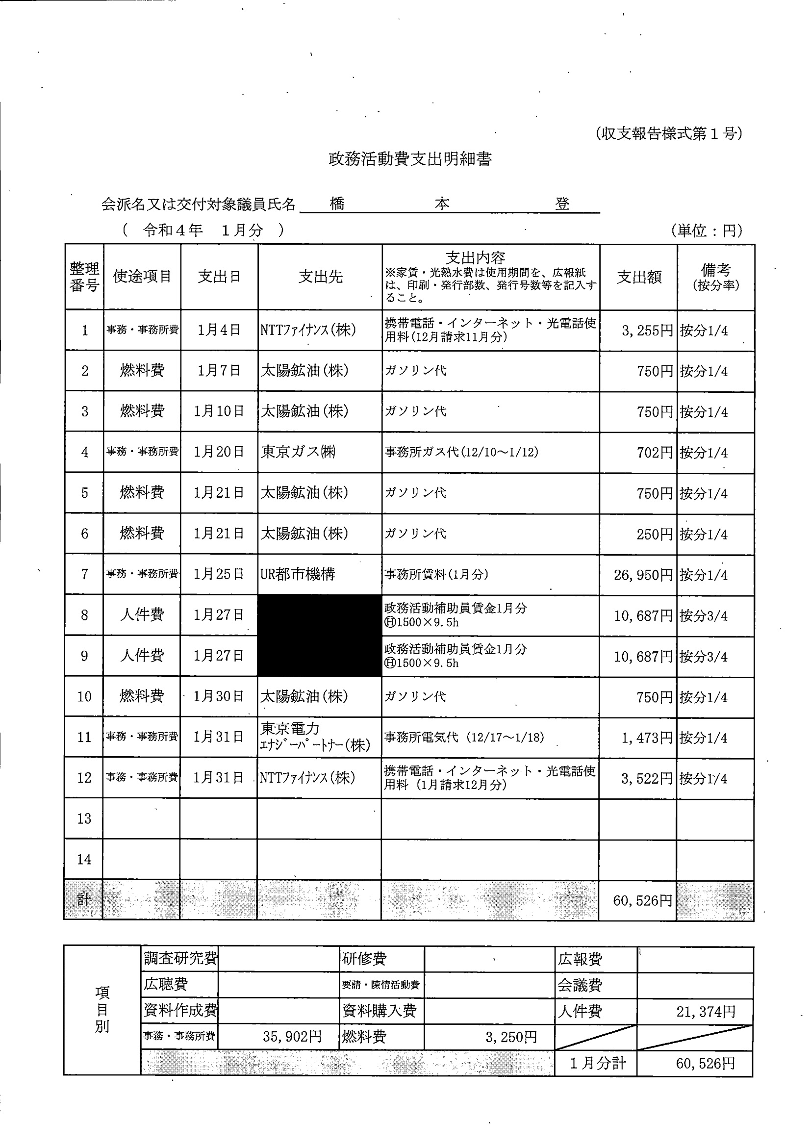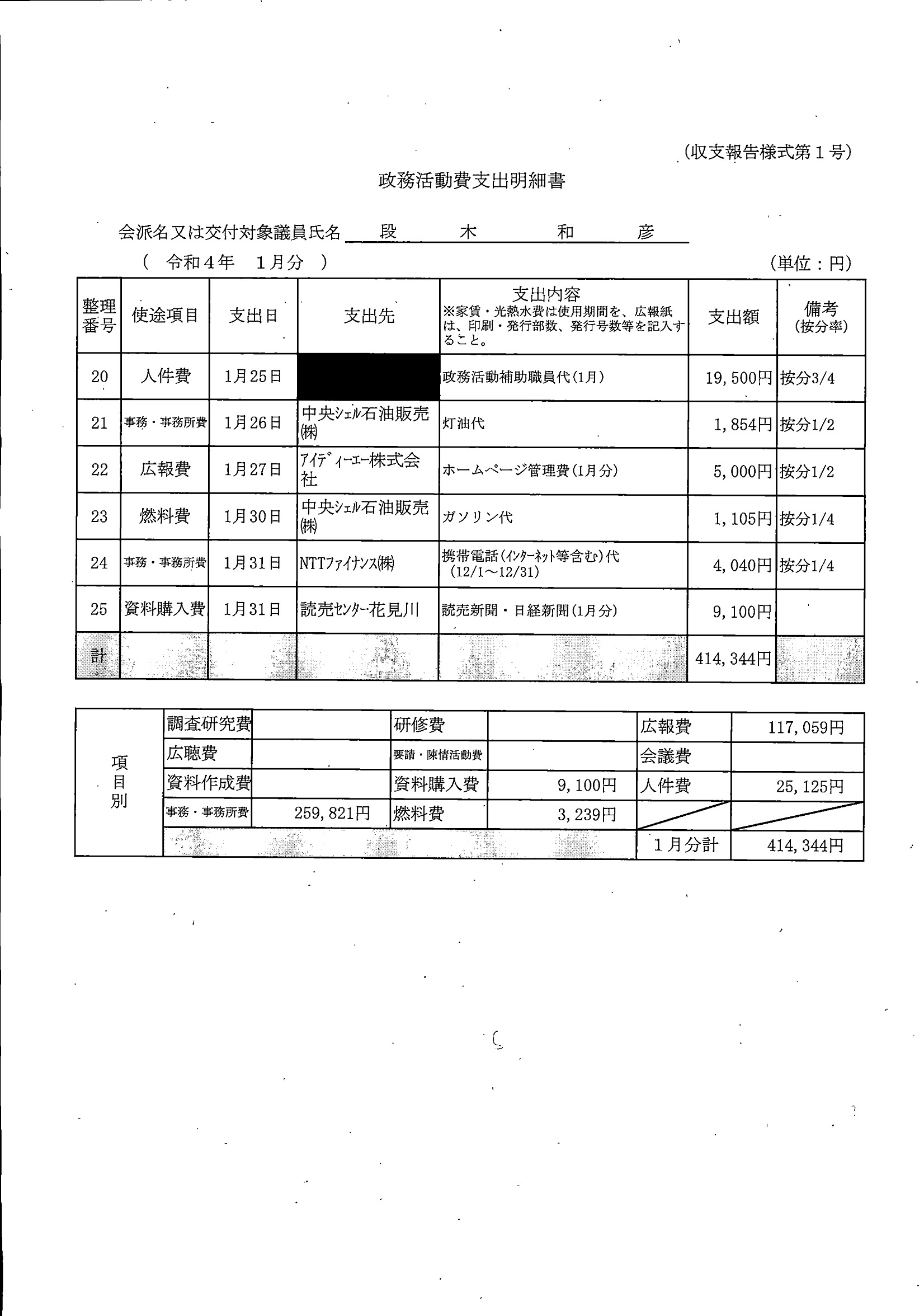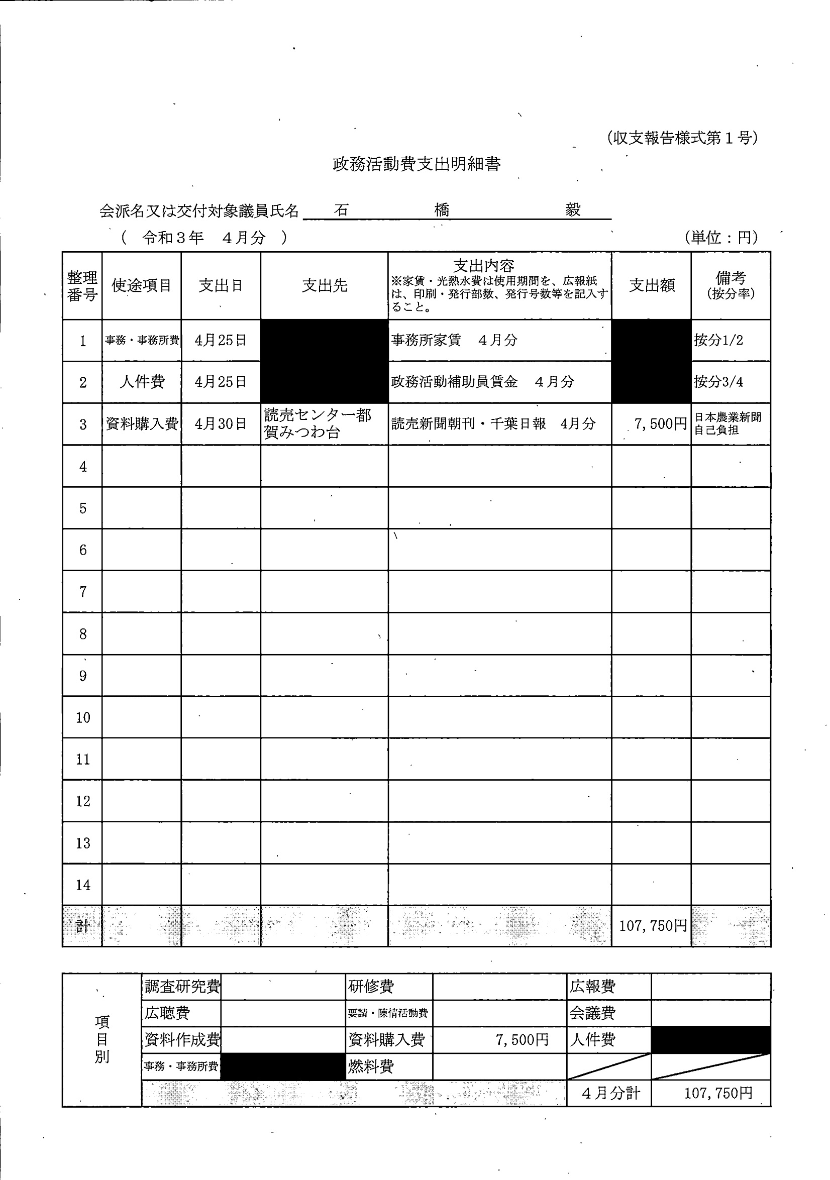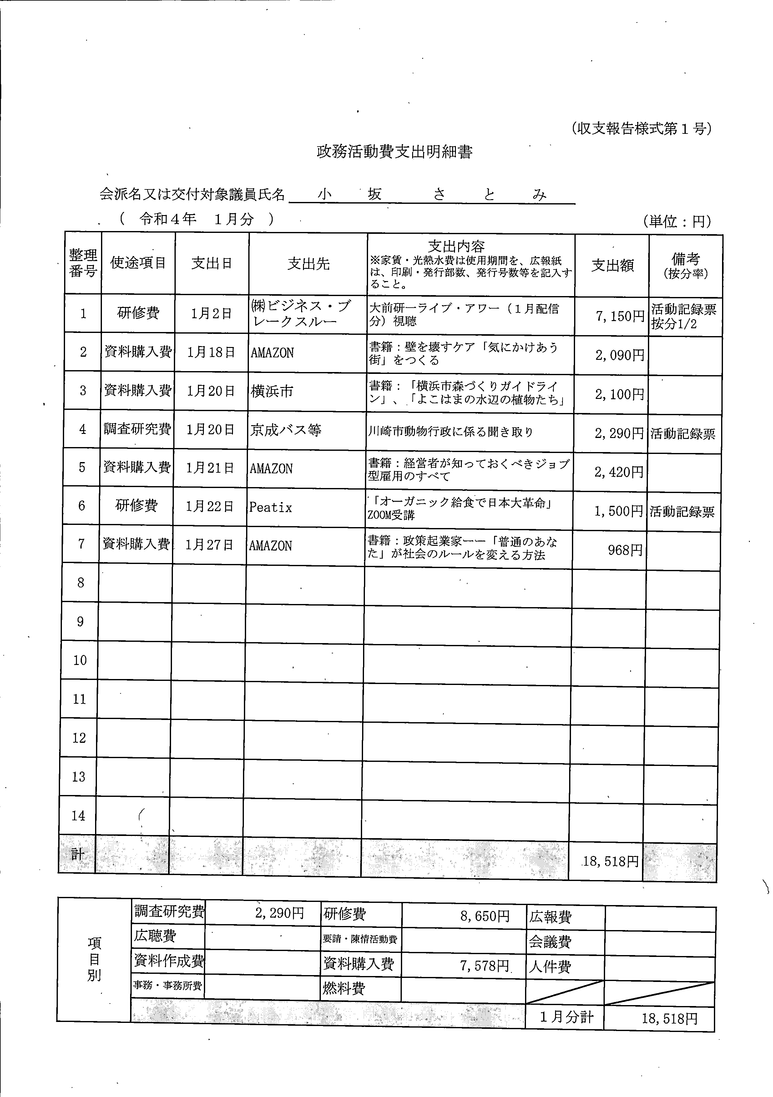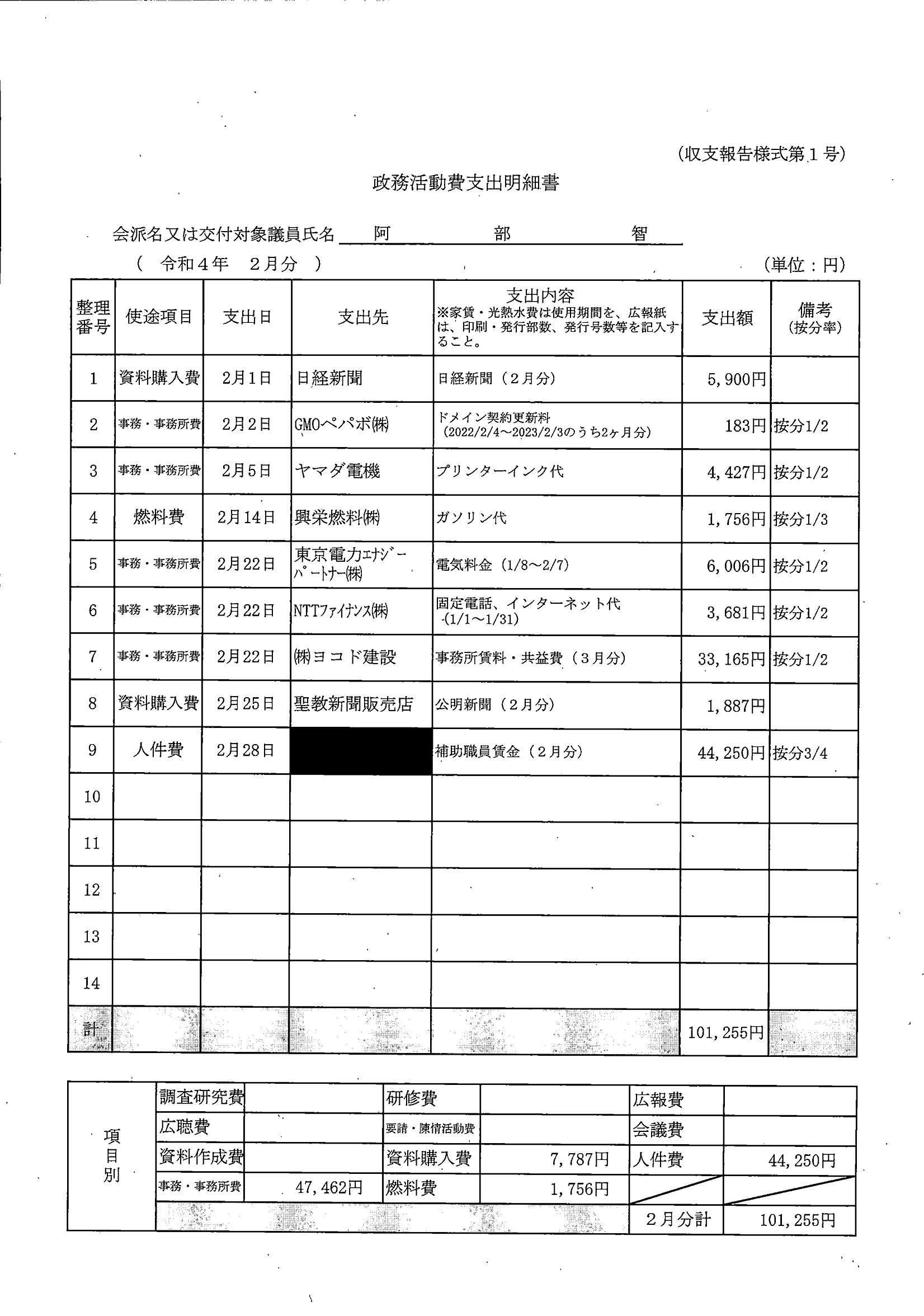 千葉市議会トップページ > 広報・情報公開 > 政務活動費 > 令和3年度交付分(政務活動費収支報告書)