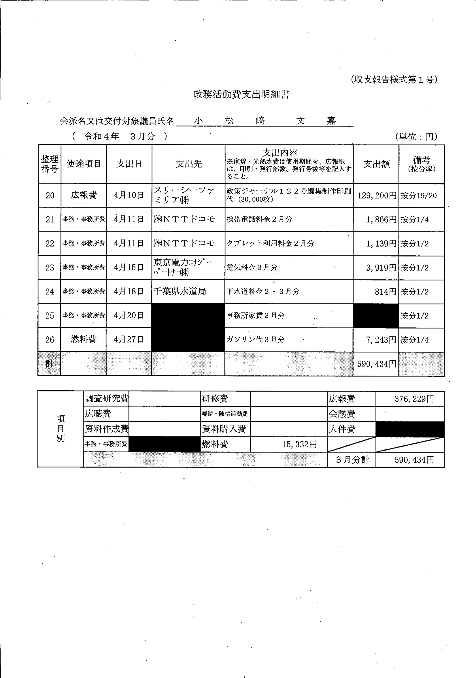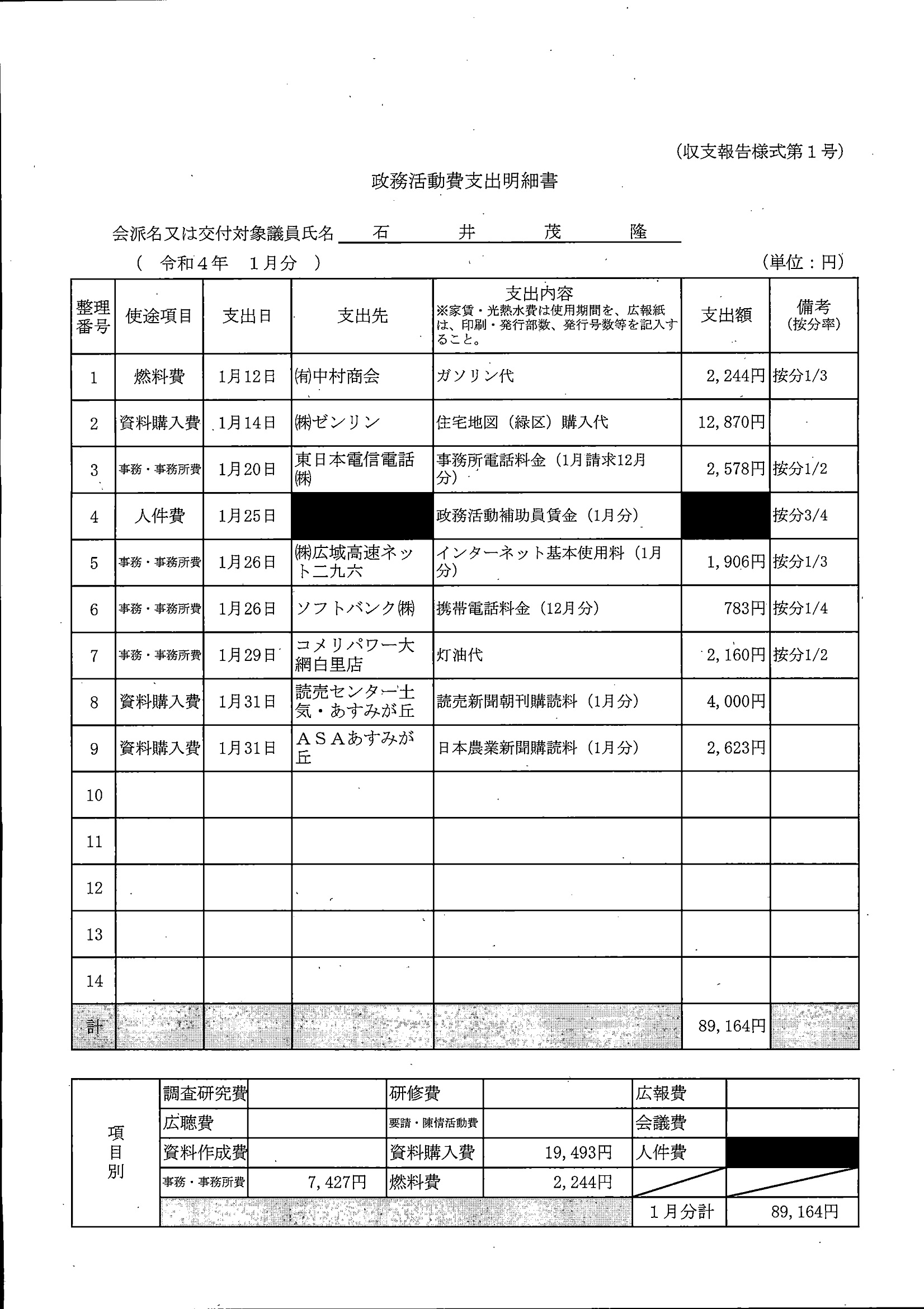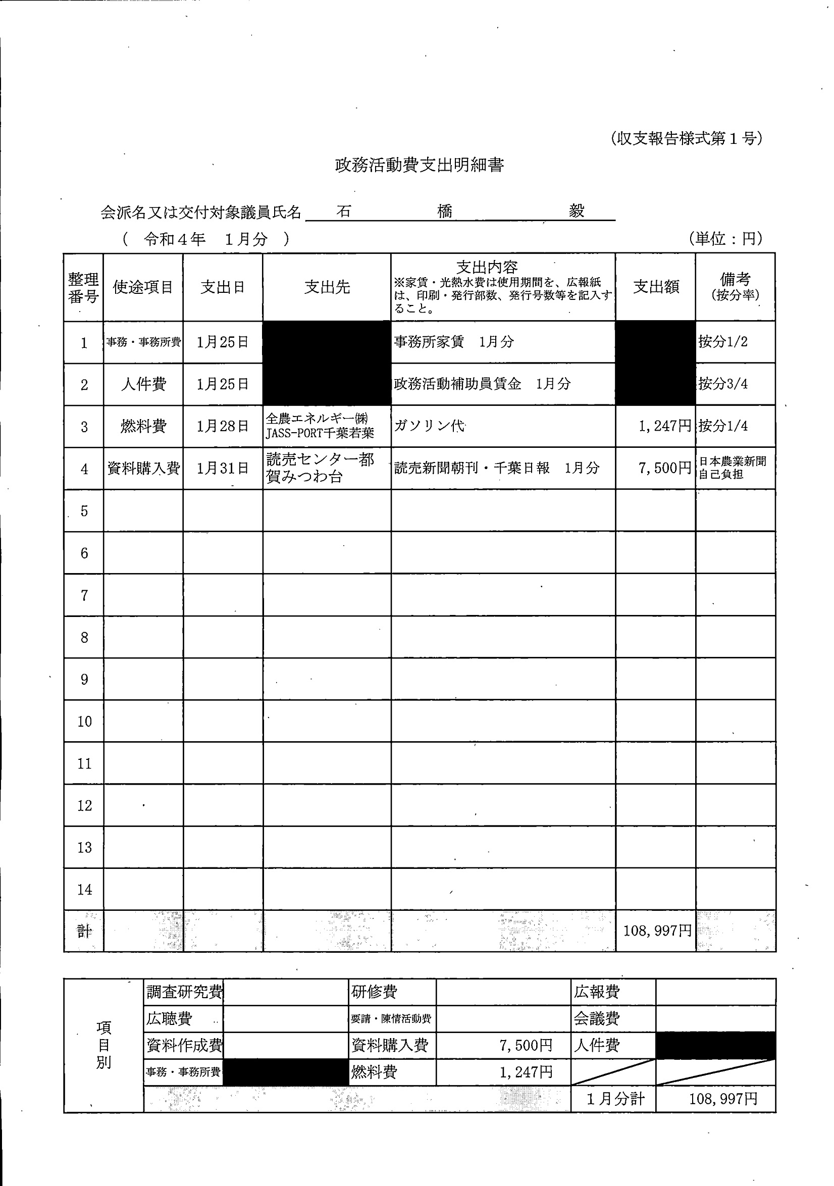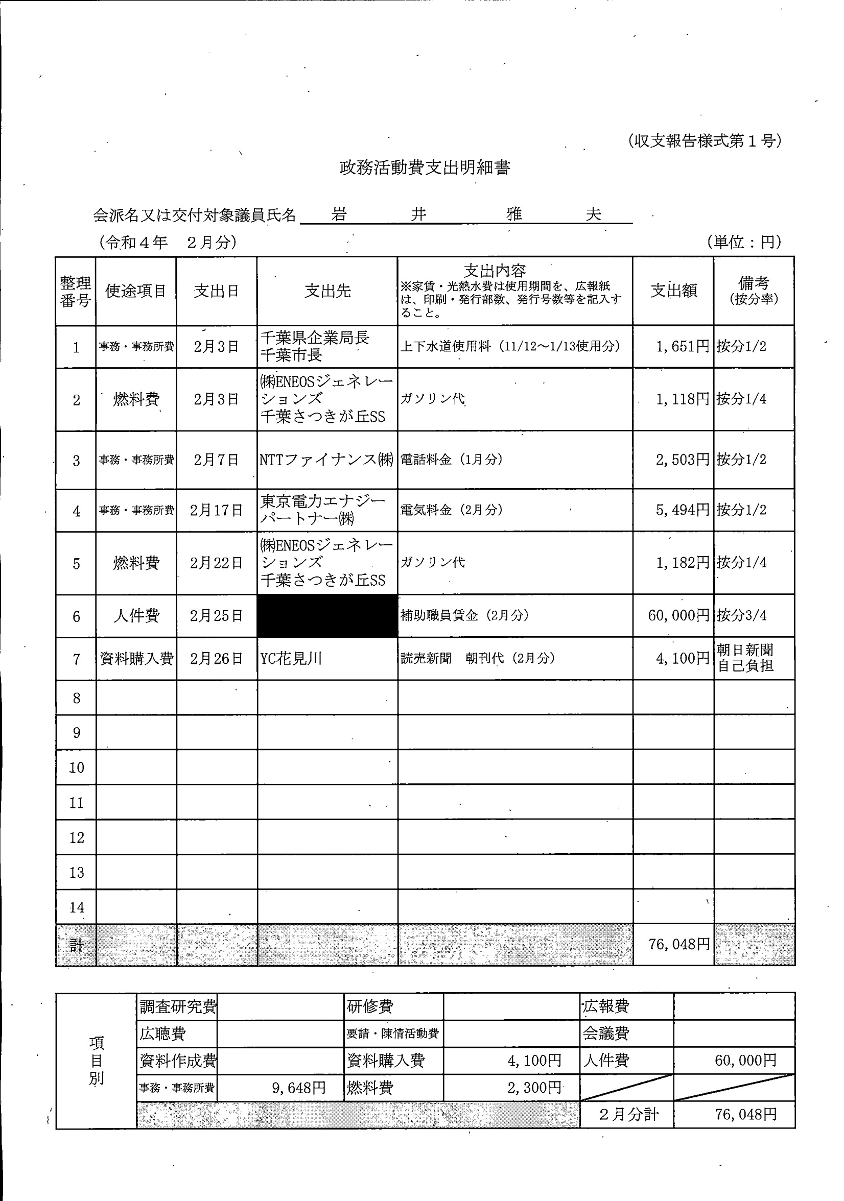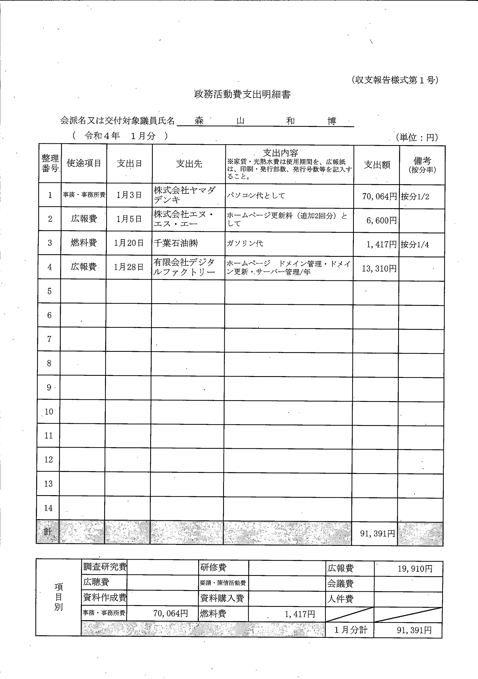 千葉市議会トップページ > 広報・情報公開 > 政務活動費 > 令和3年度交付分(政務活動費収支報告書)