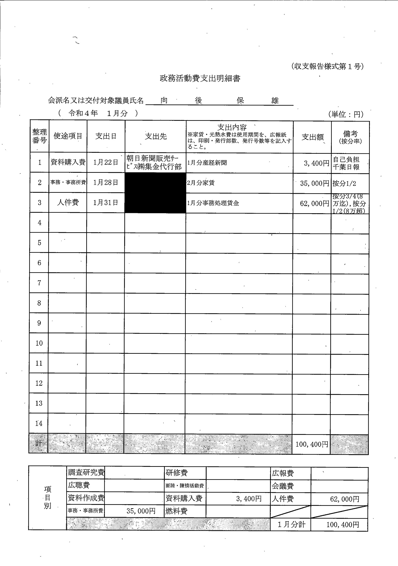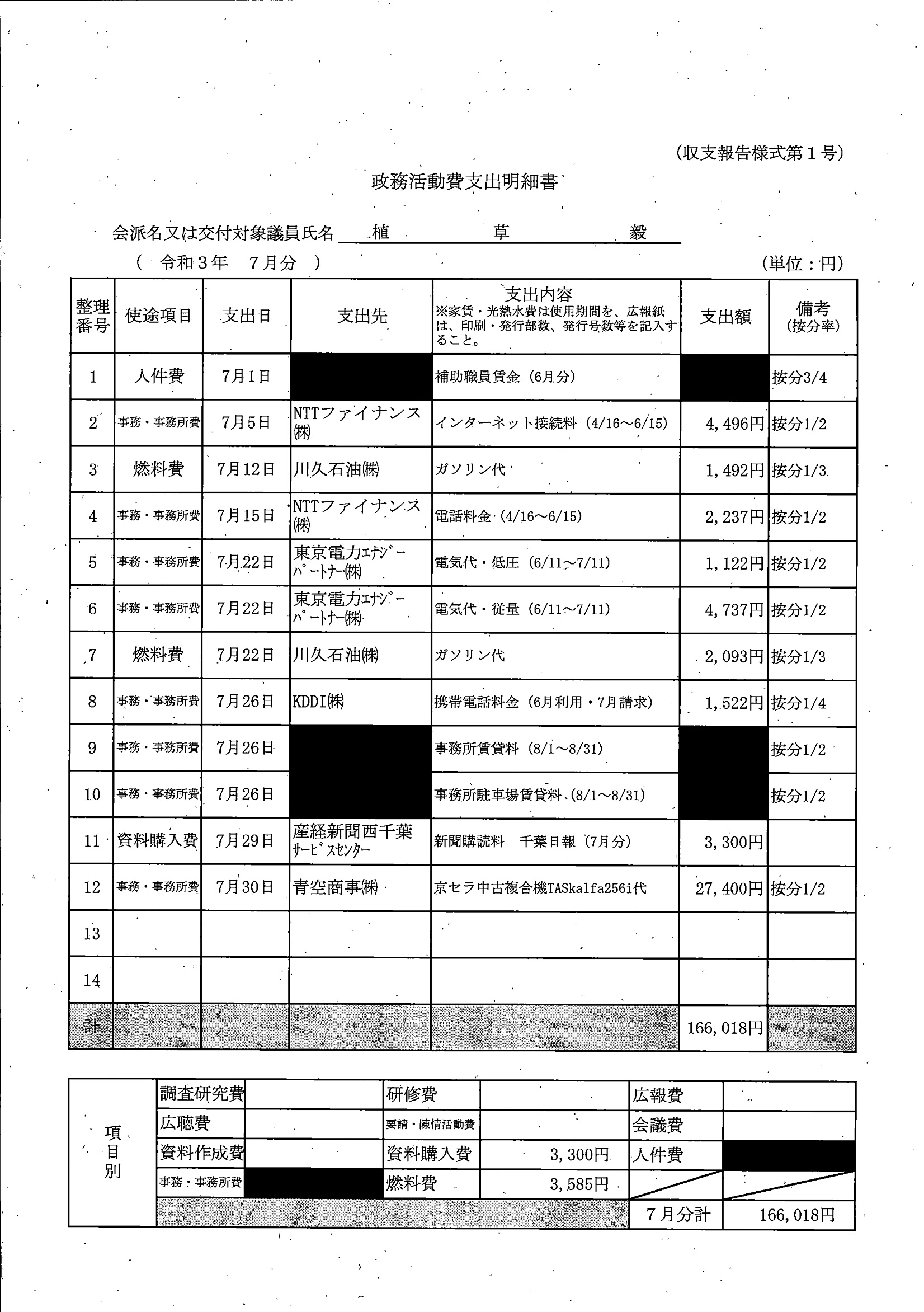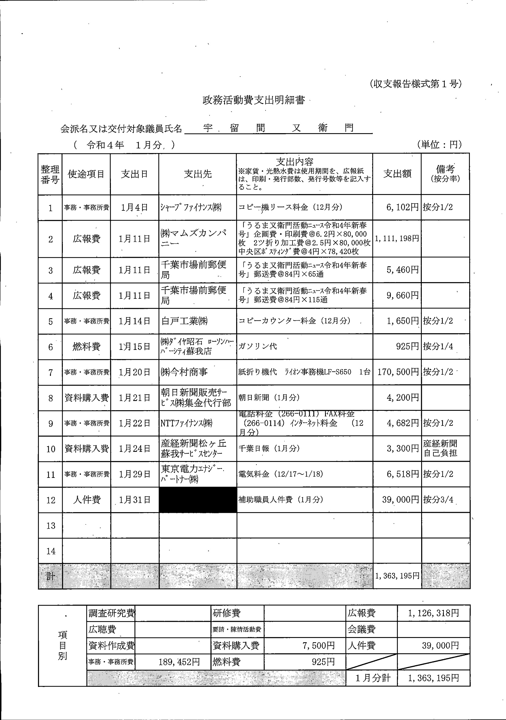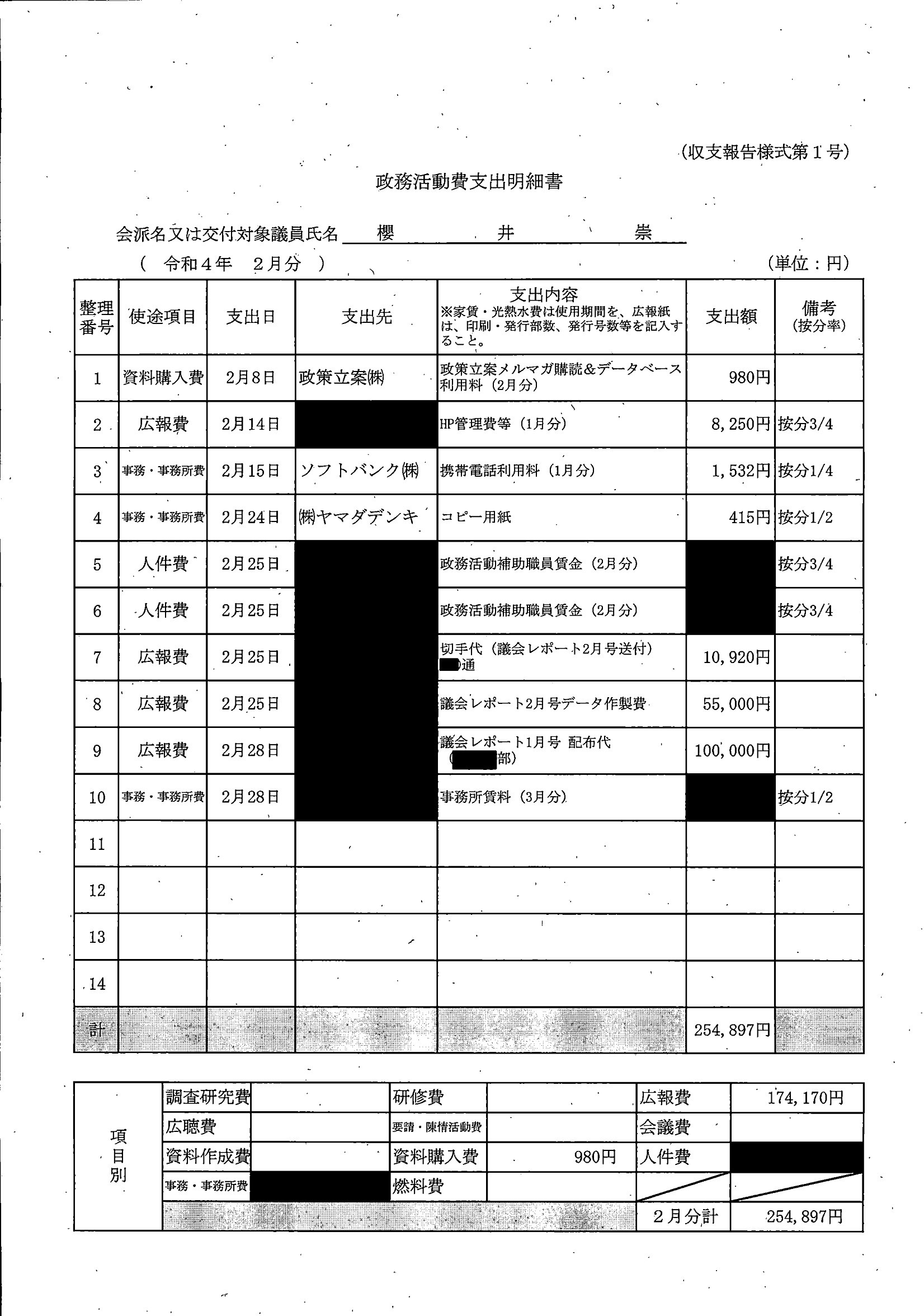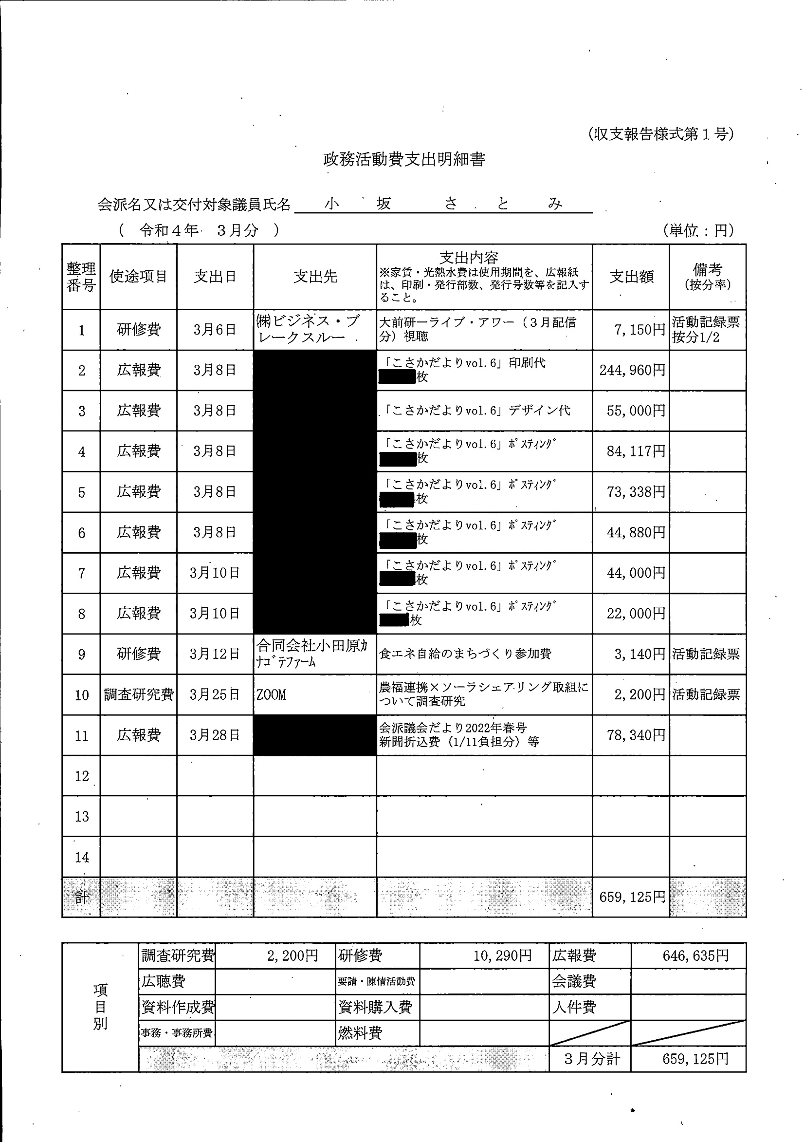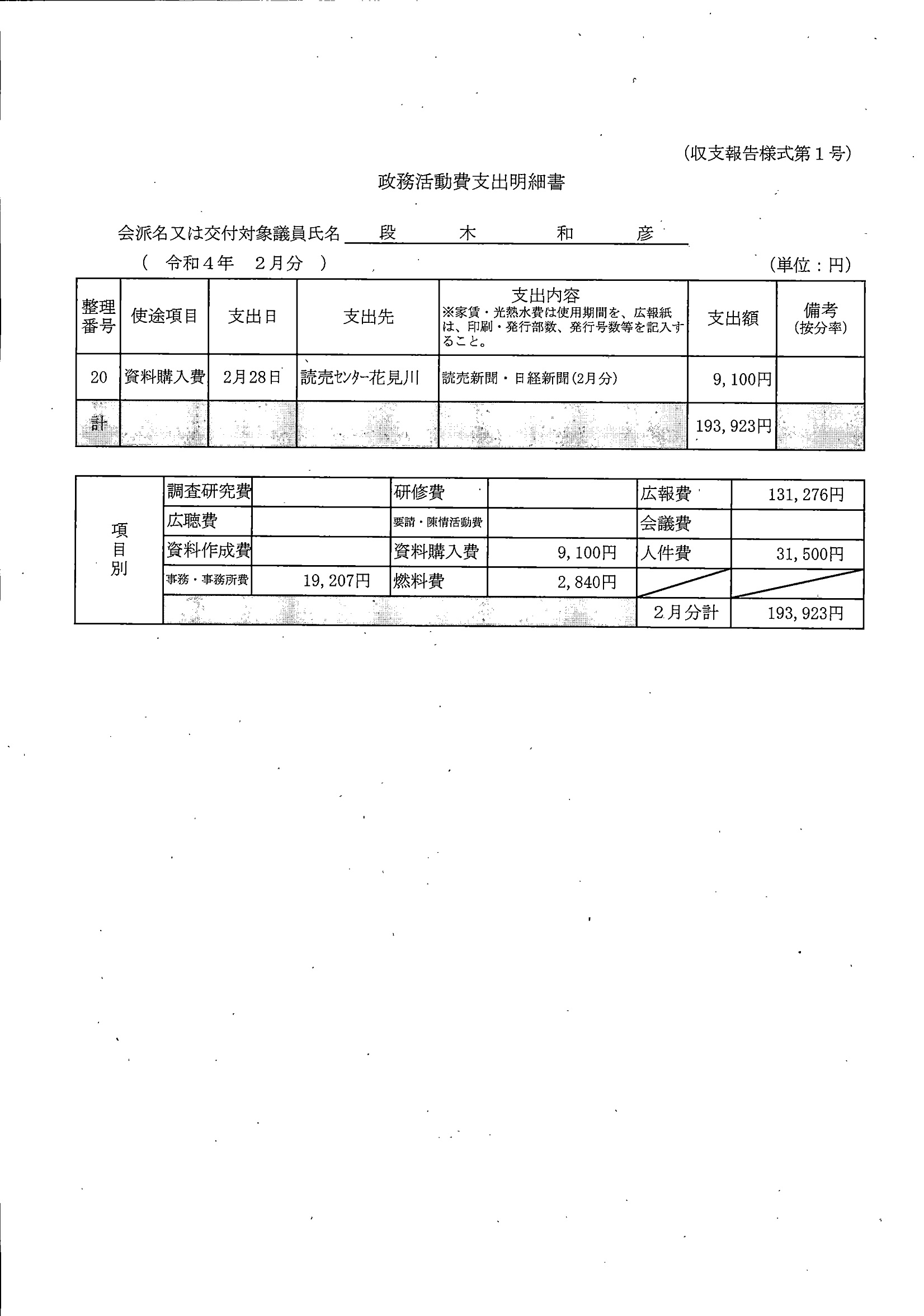 千葉市議会トップページ > 広報・情報公開 > 政務活動費 > 令和3年度交付分(政務活動費収支報告書)