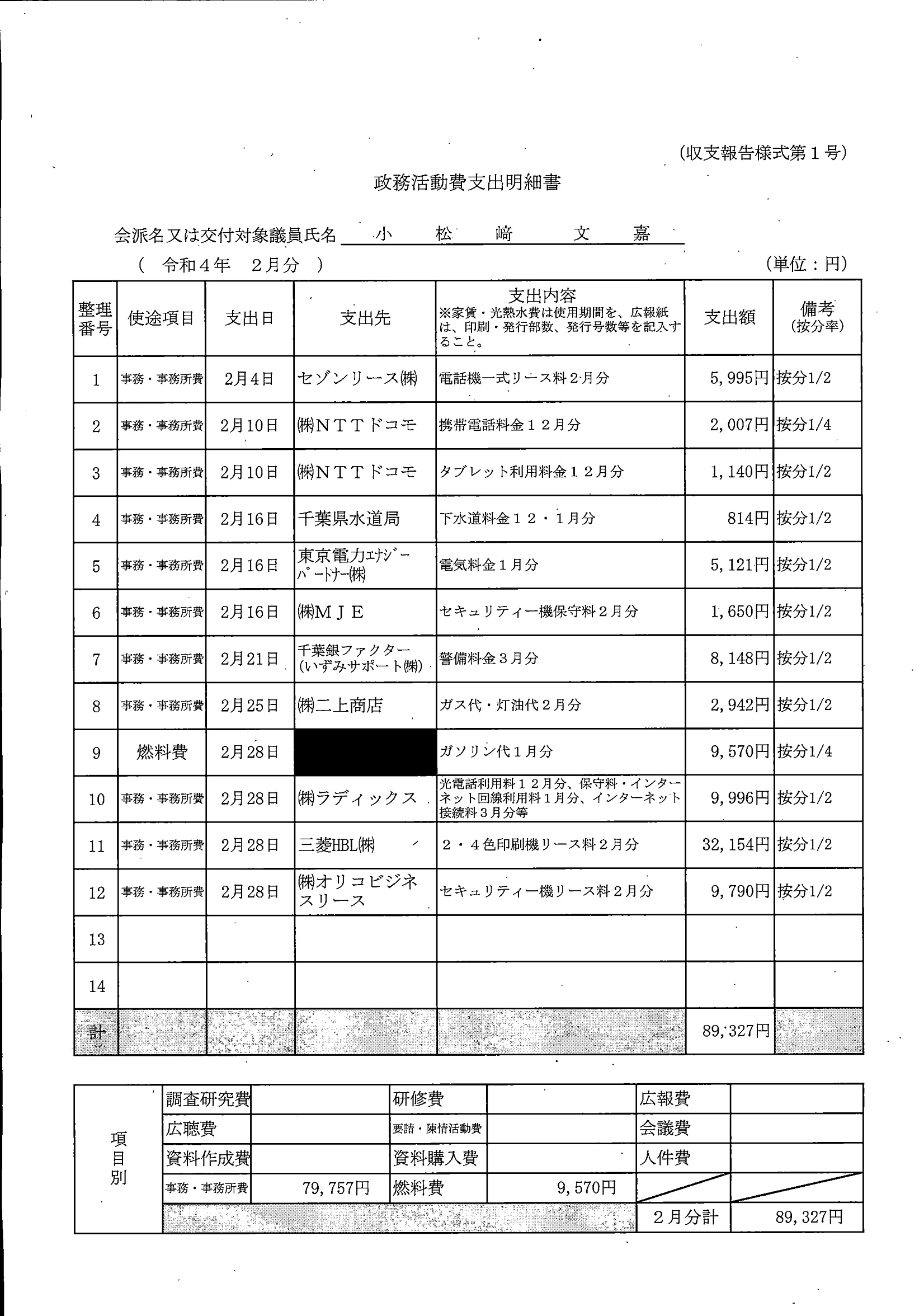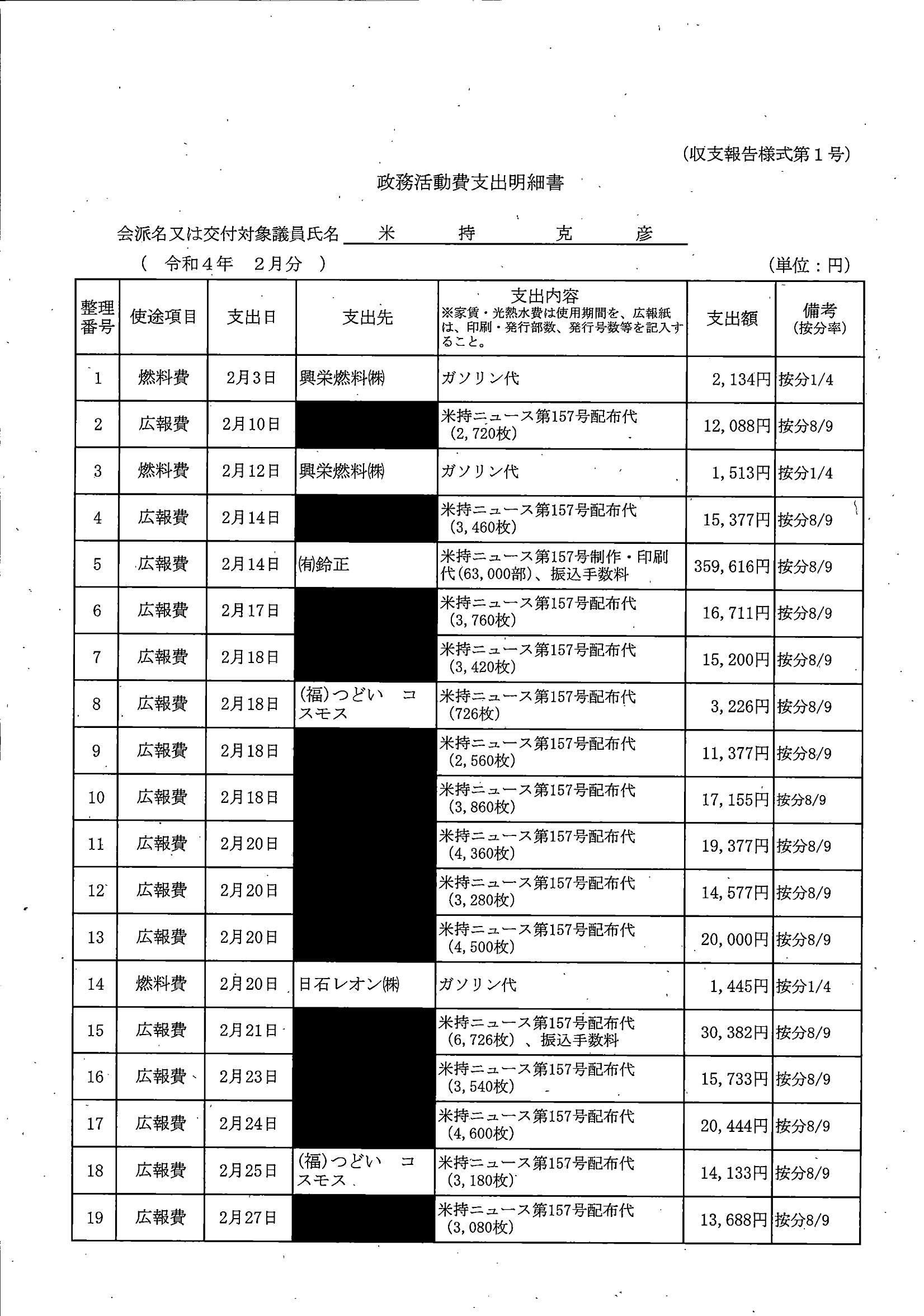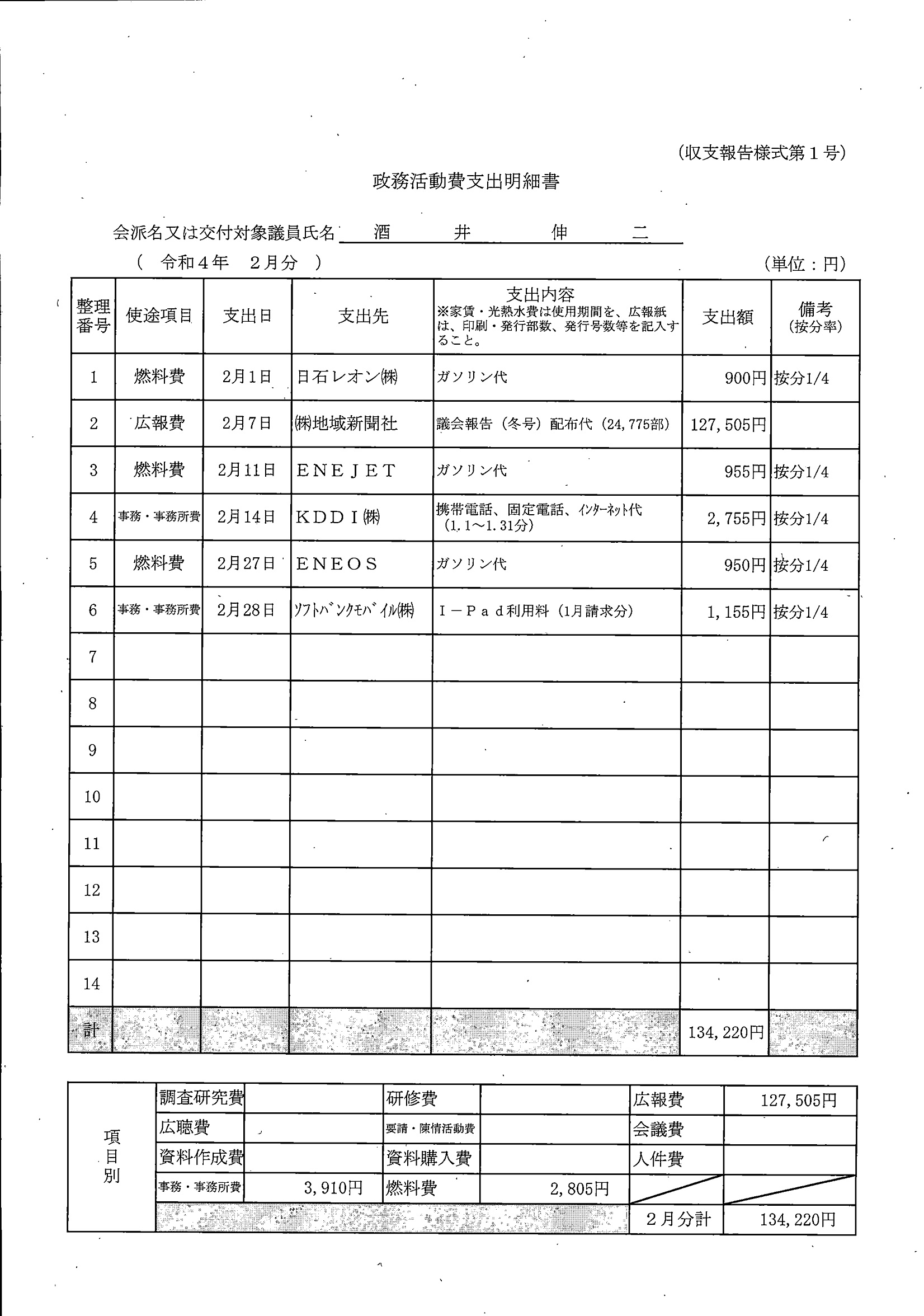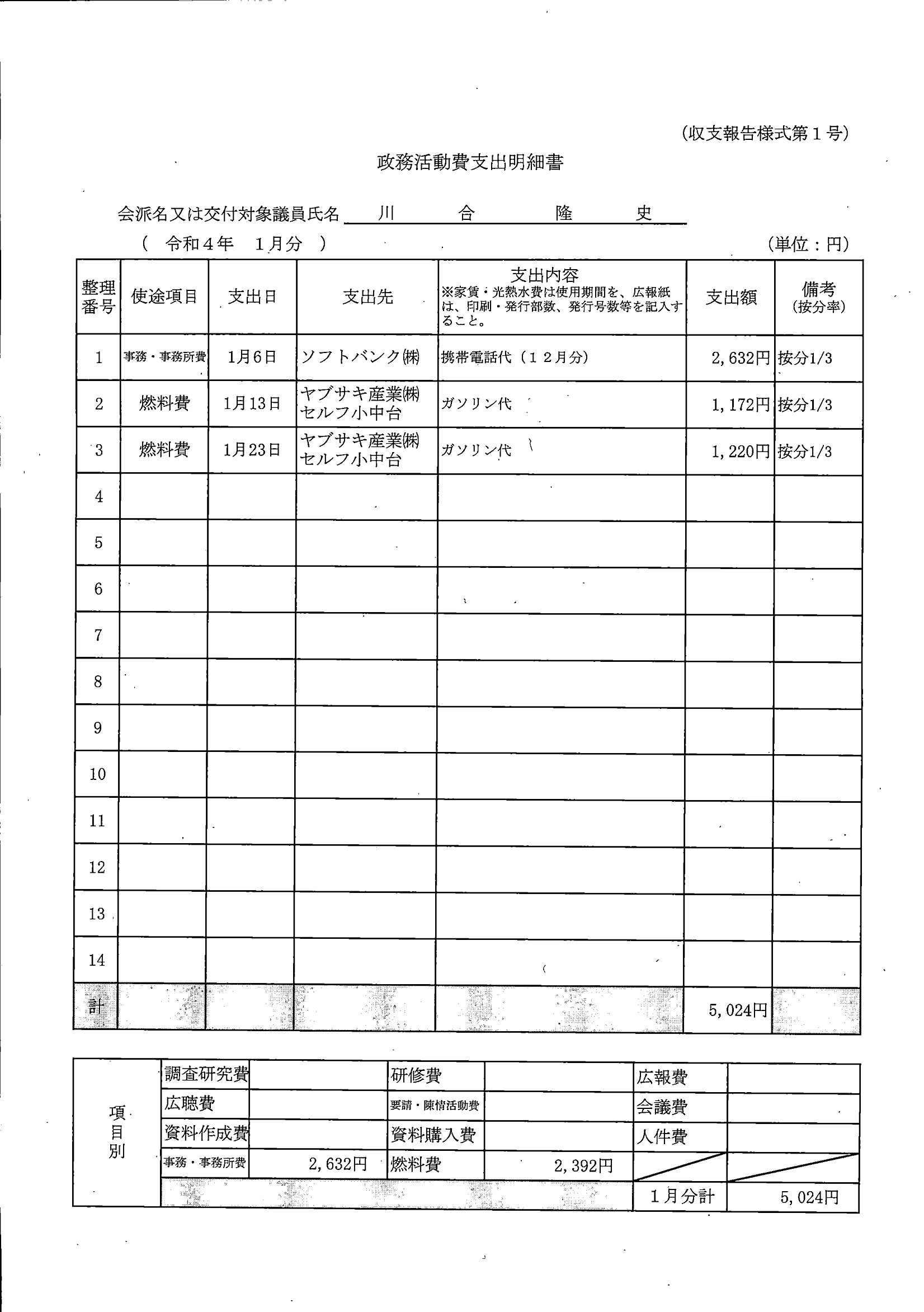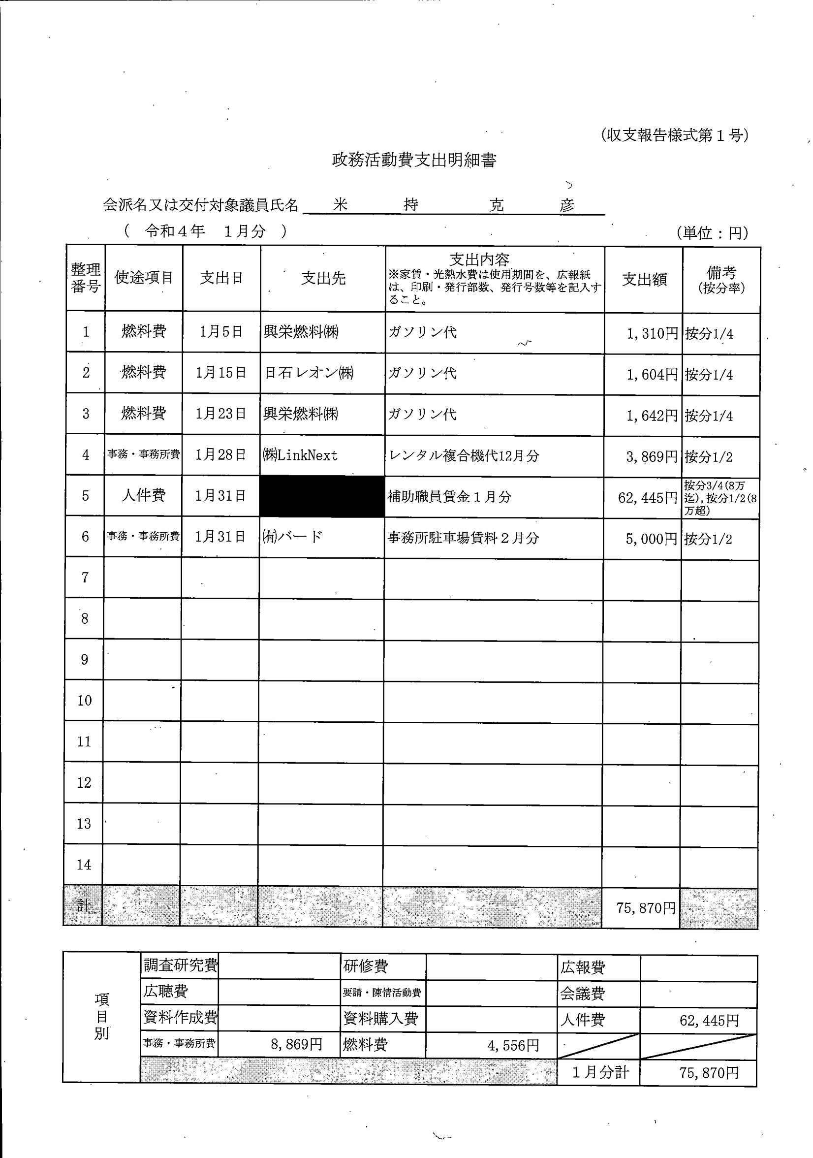 千葉市議会トップページ > 広報・情報公開 > 政務活動費 > 令和3年度交付分(政務活動費収支報告書)