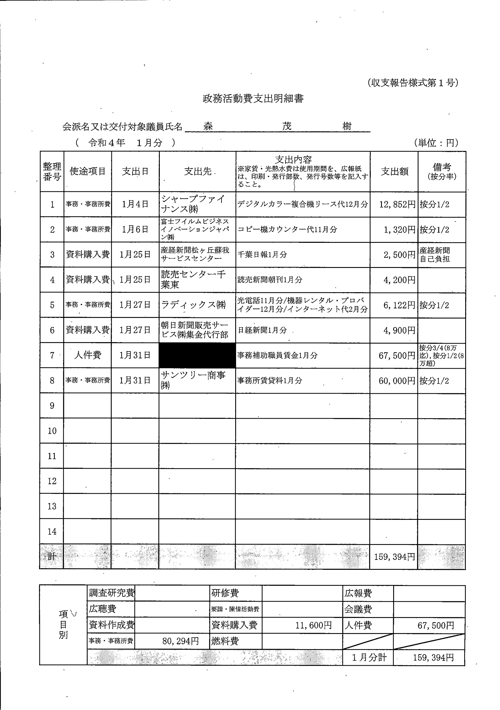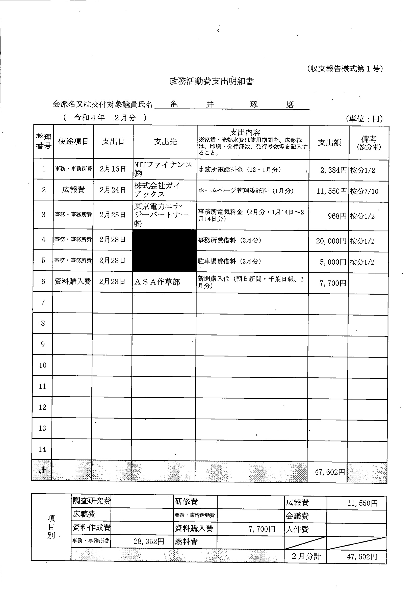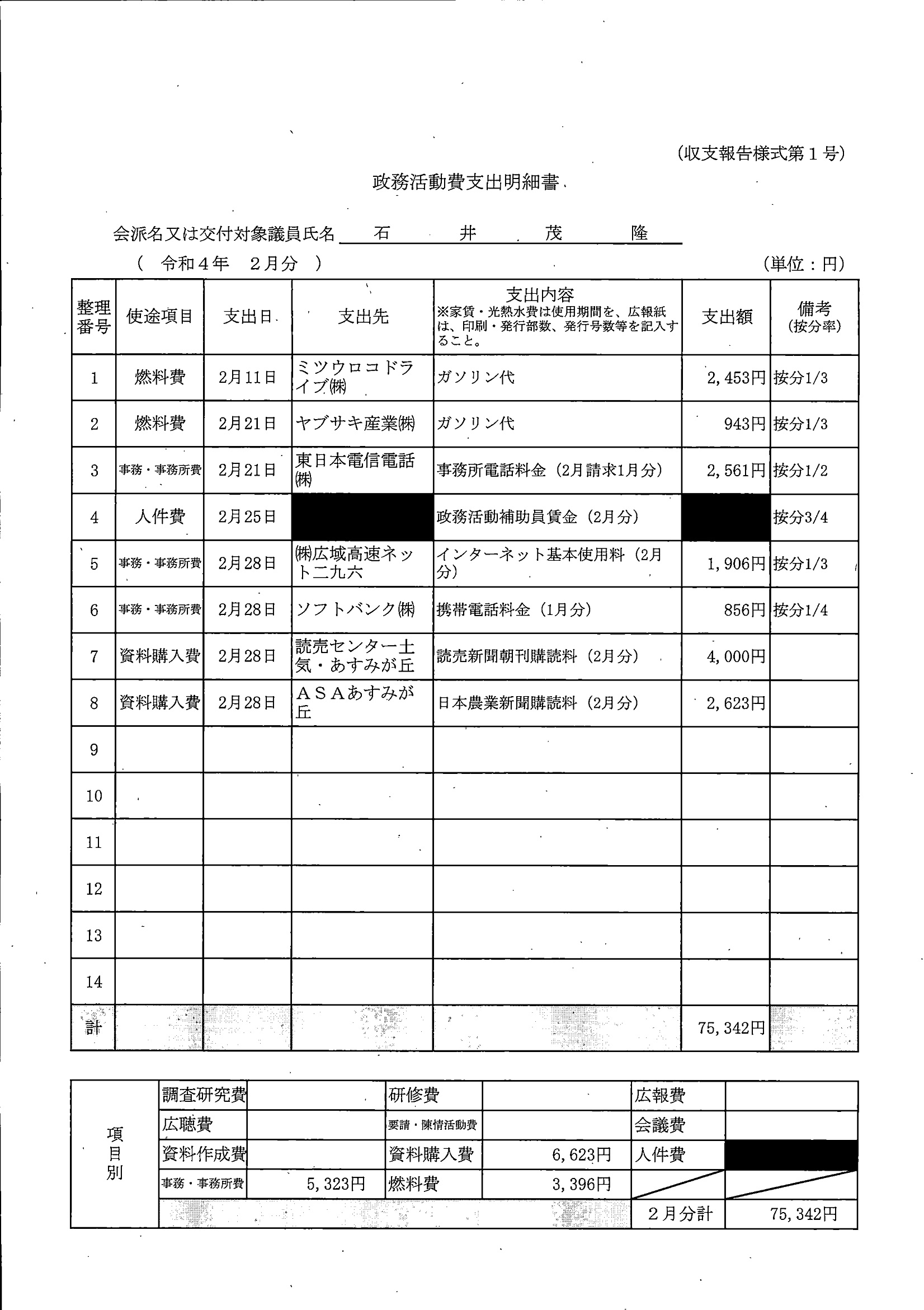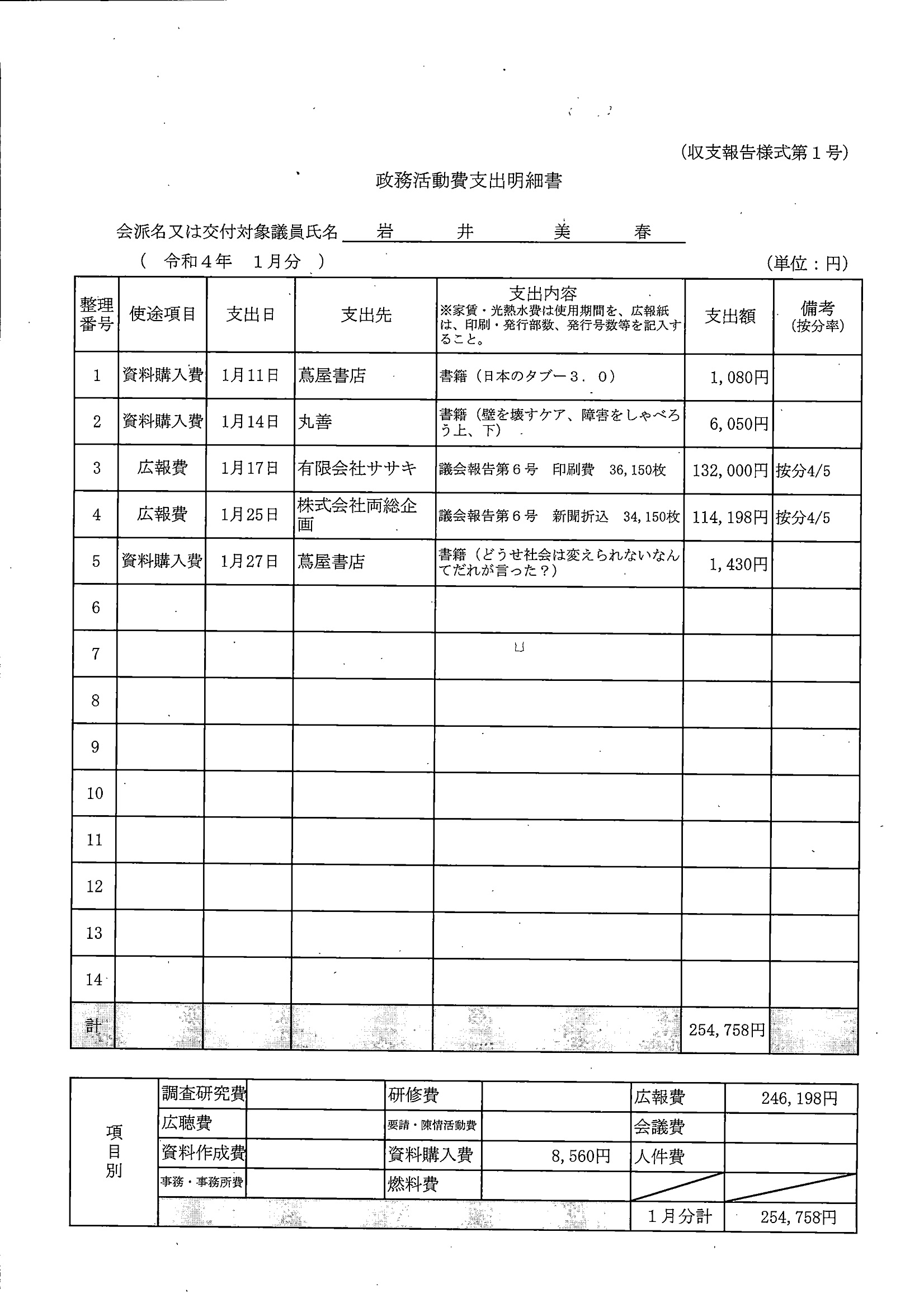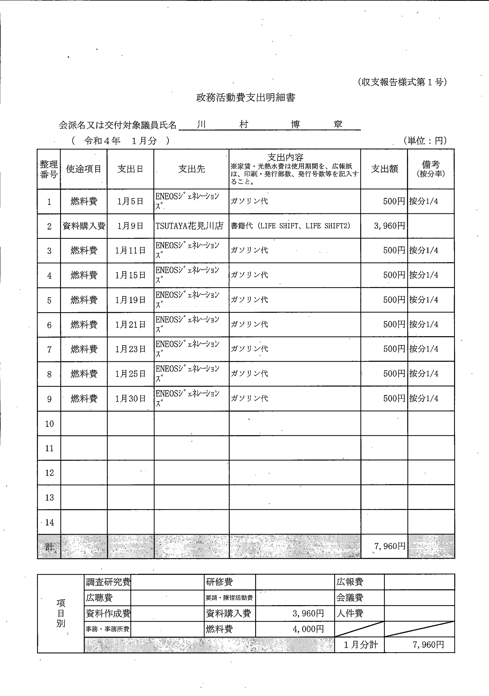 千葉市議会トップページ > 広報・情報公開 > 政務活動費 > 令和3年度交付分(政務活動費収支報告書)