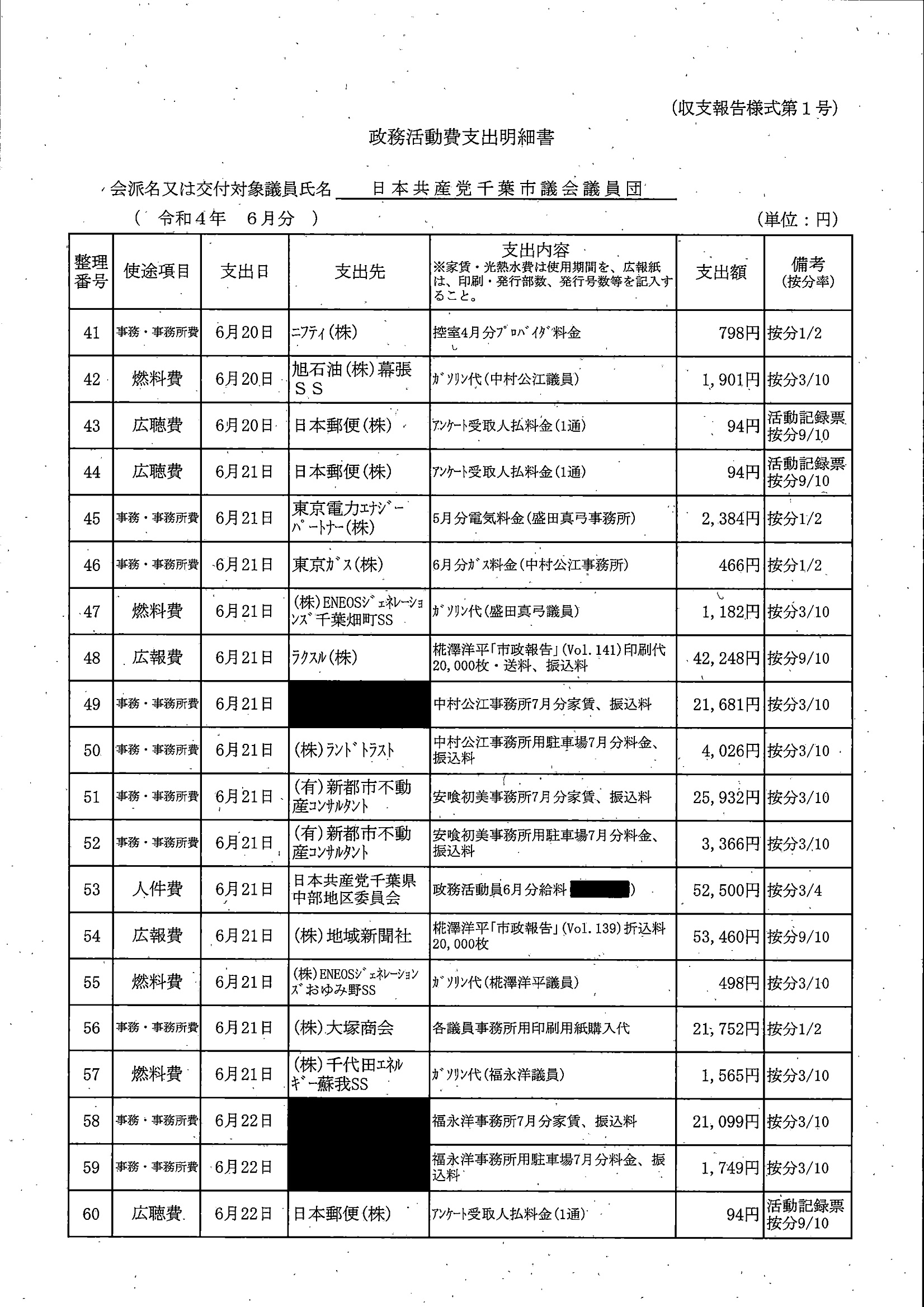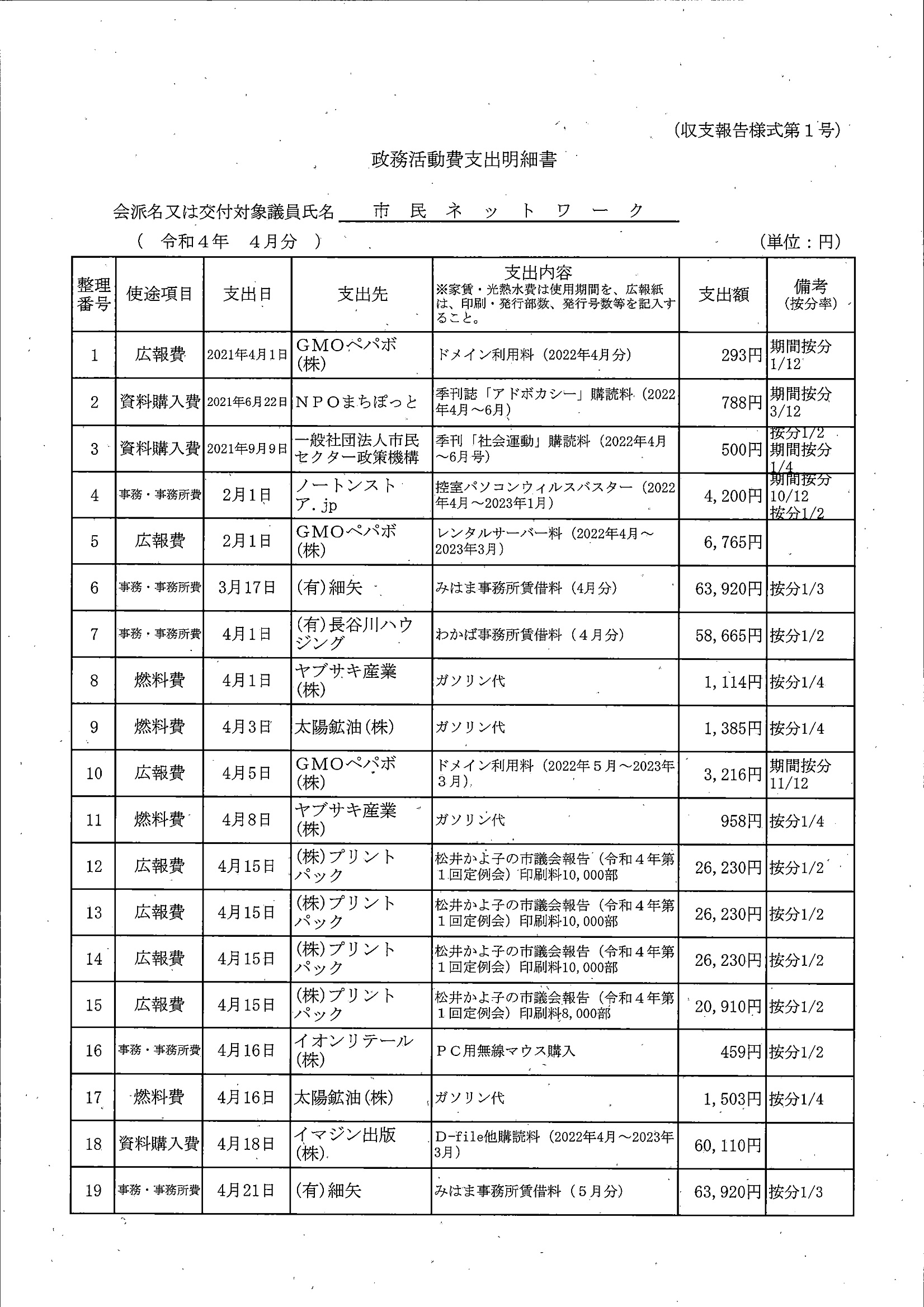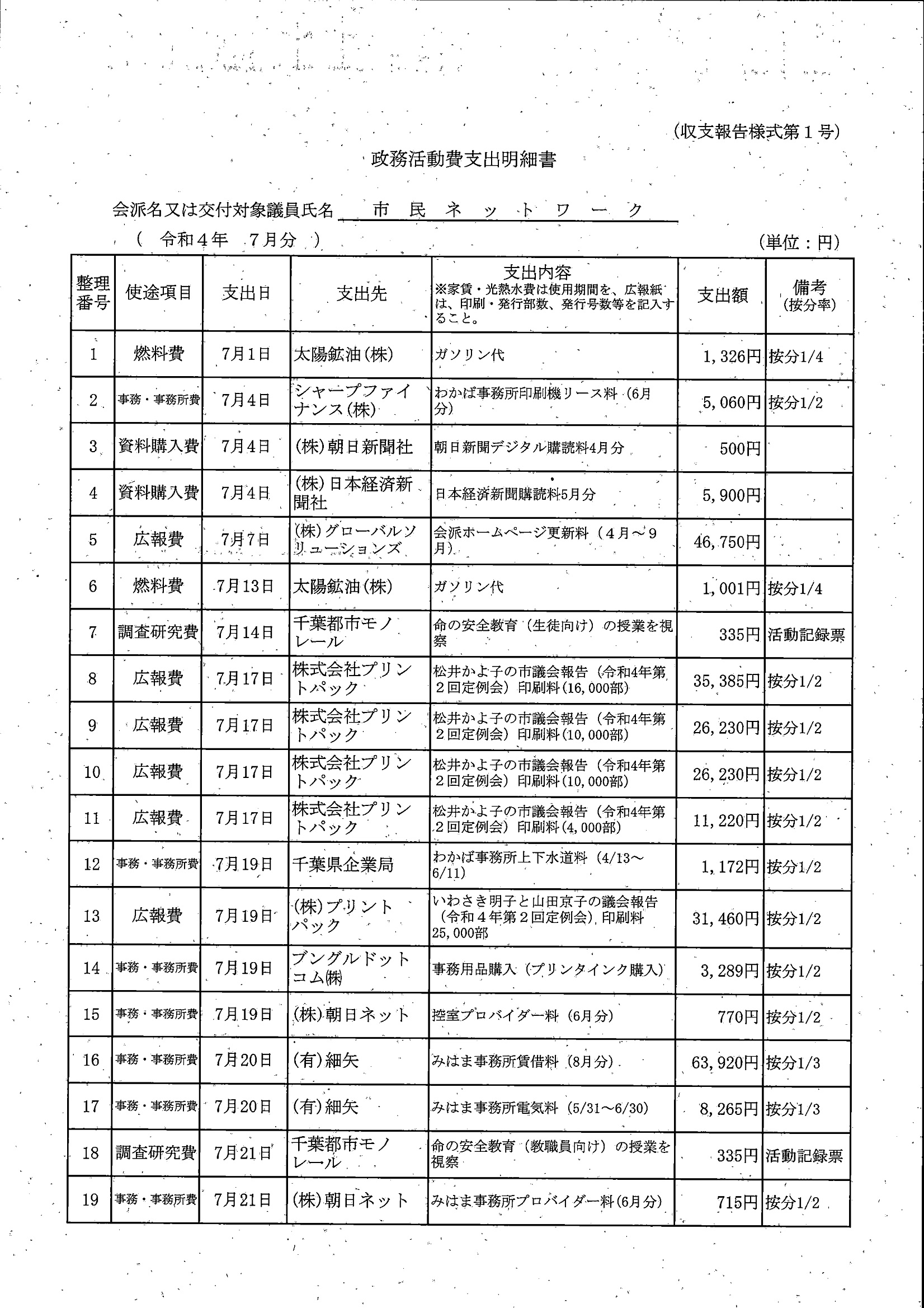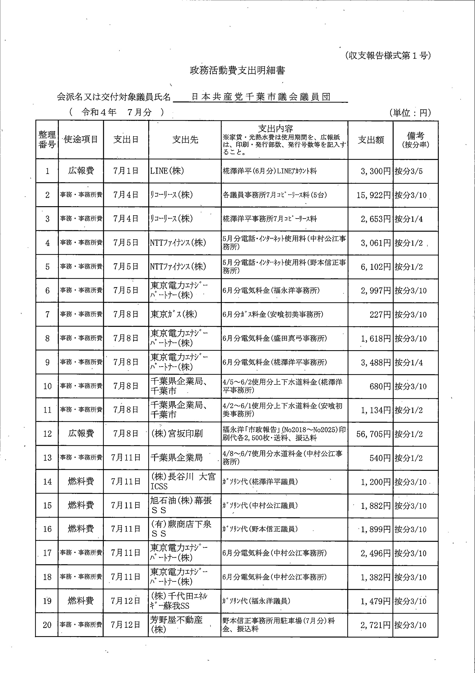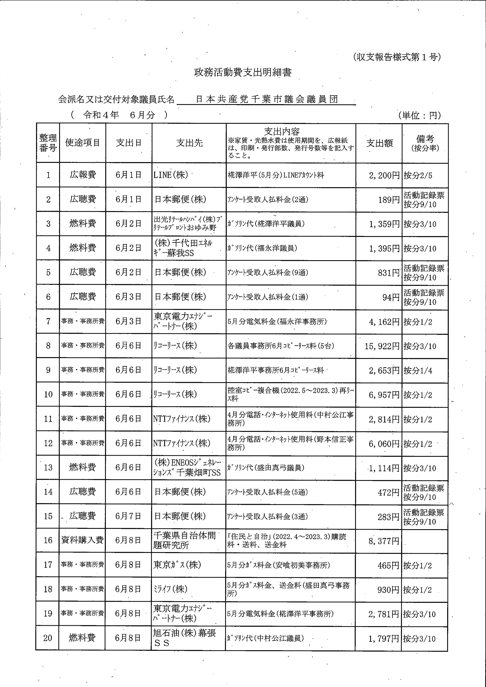 千葉市議会トップページ > 広報・情報公開 > 政務活動費 > 令和4年度交付分(政務活動費収支報告書)