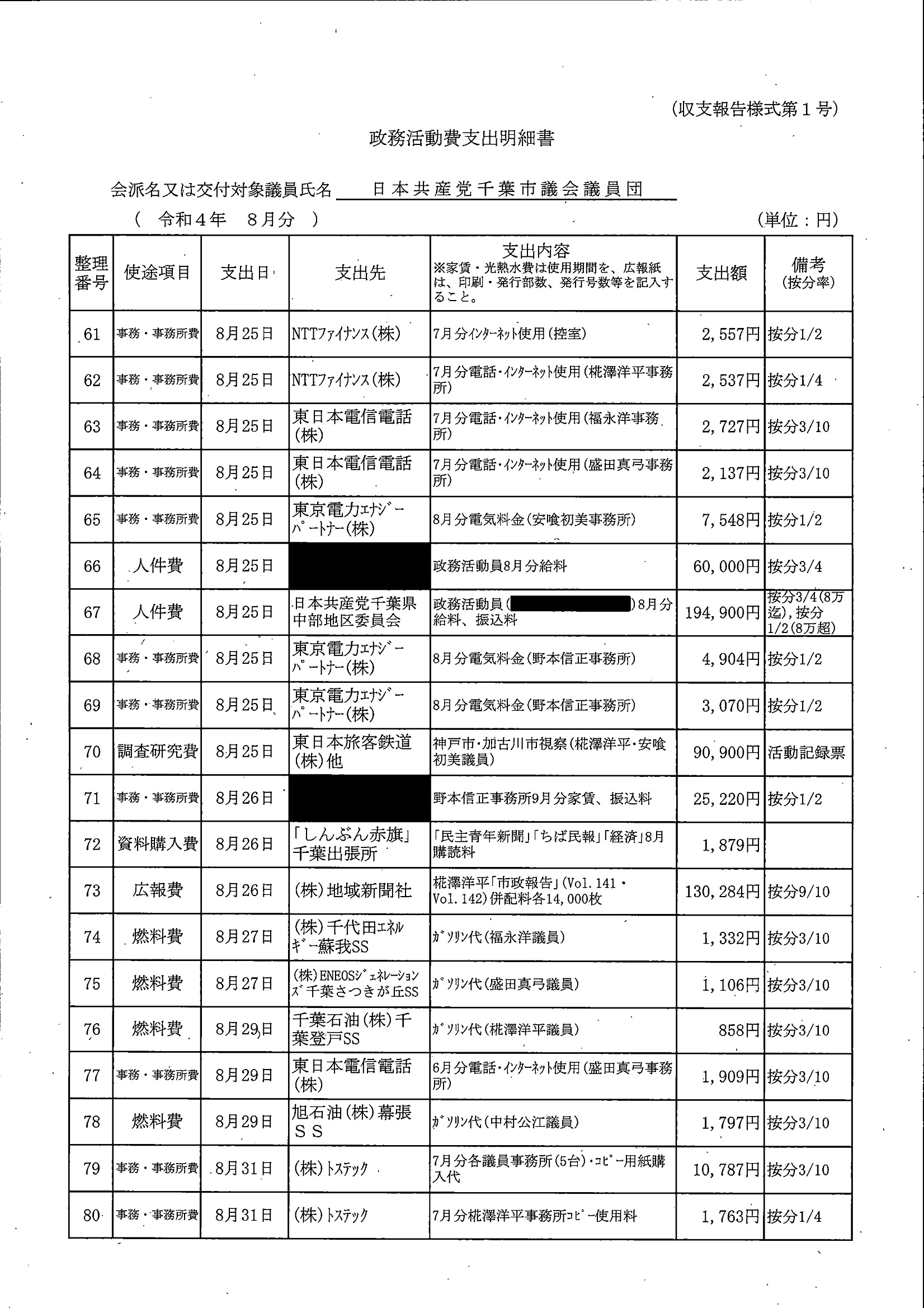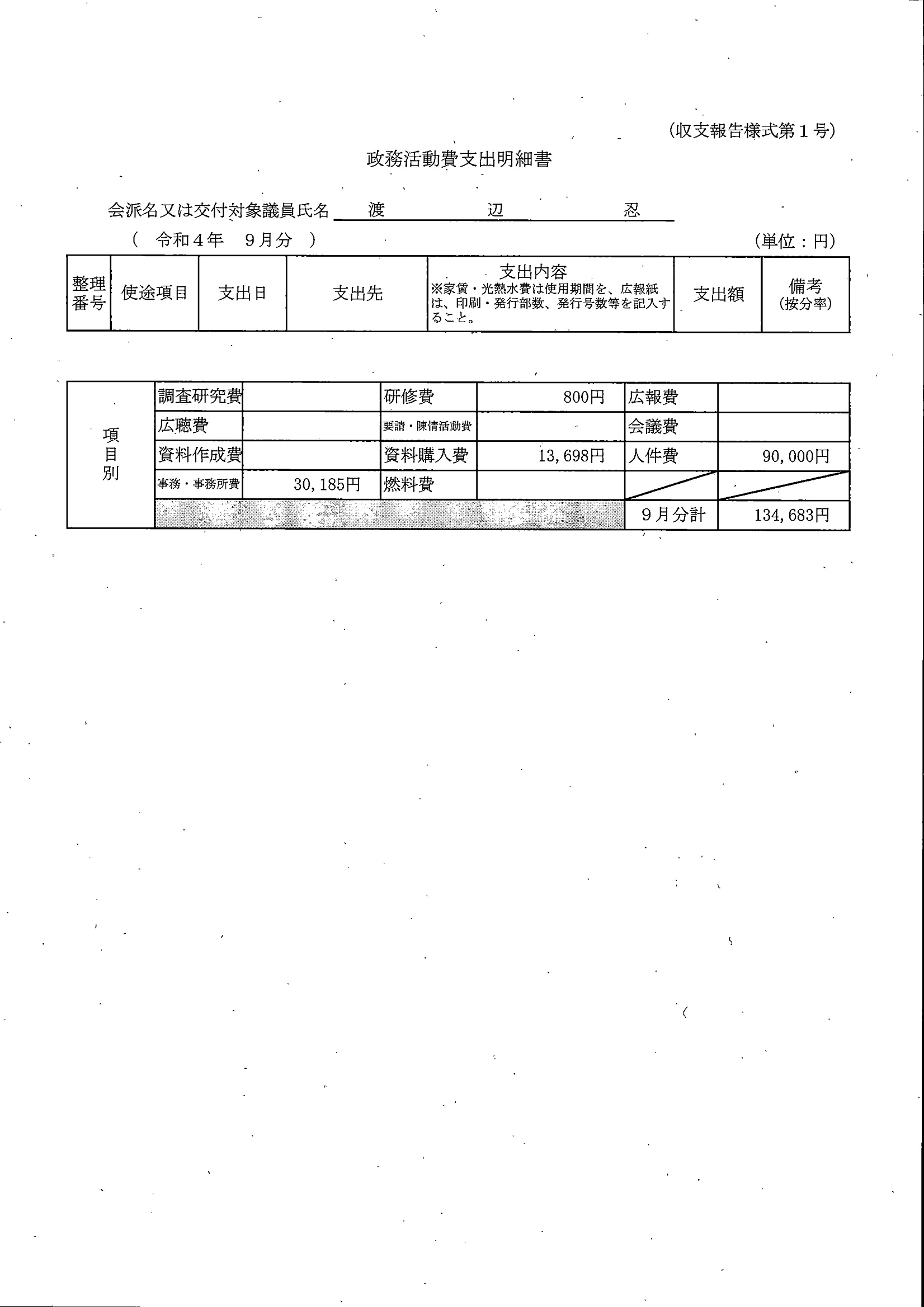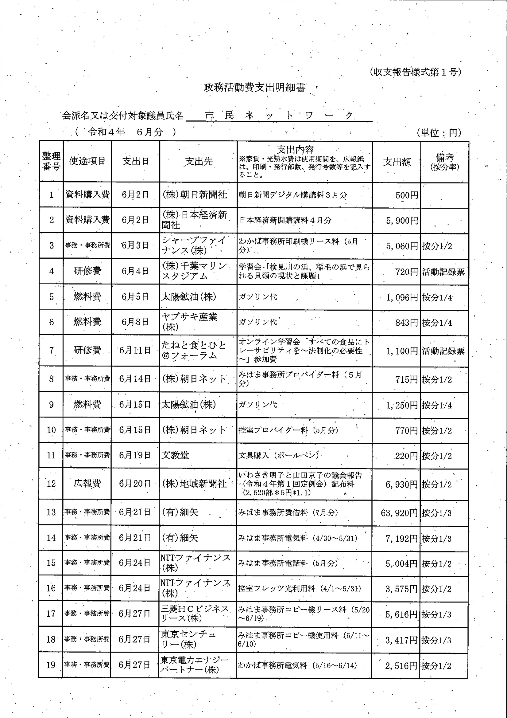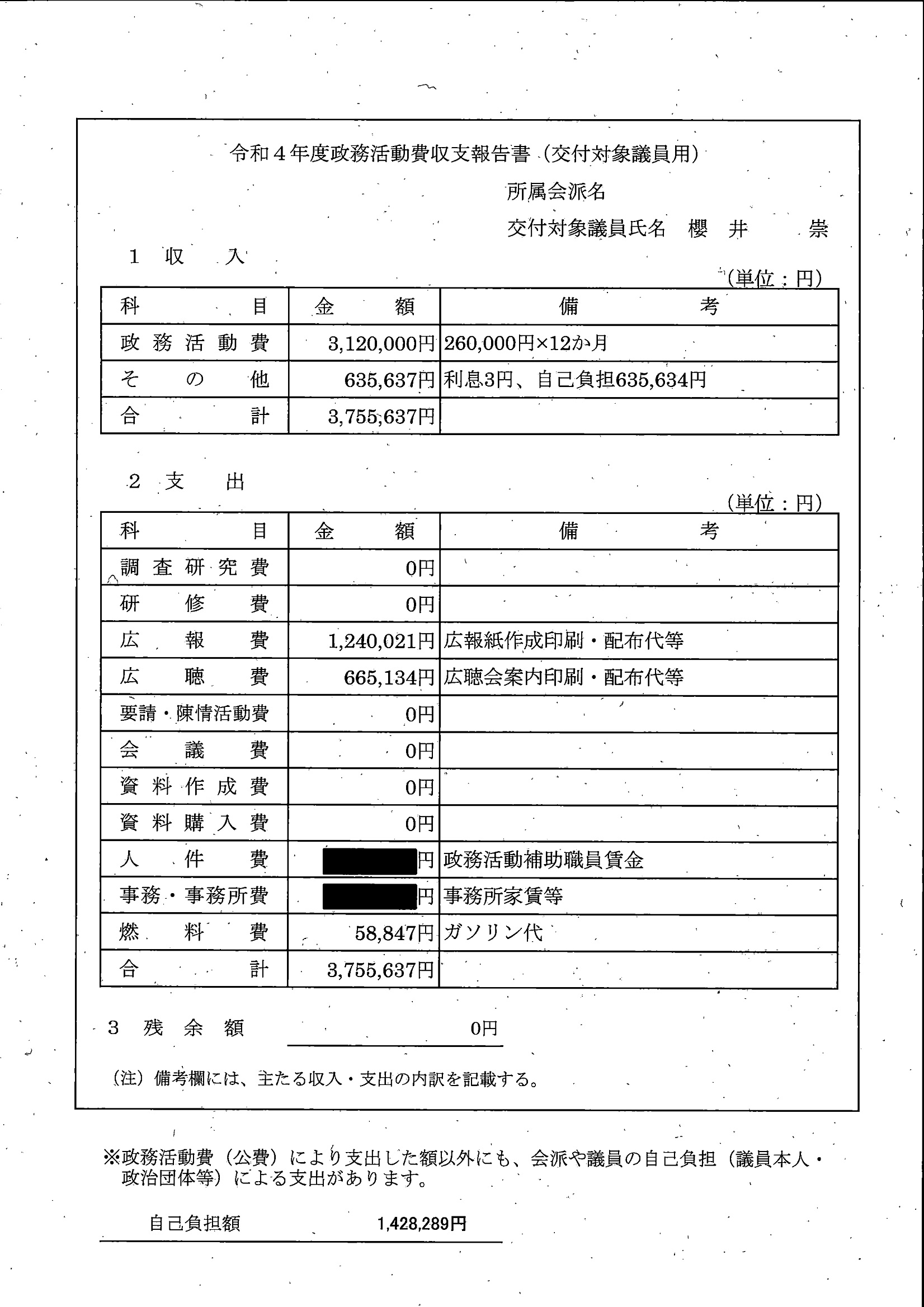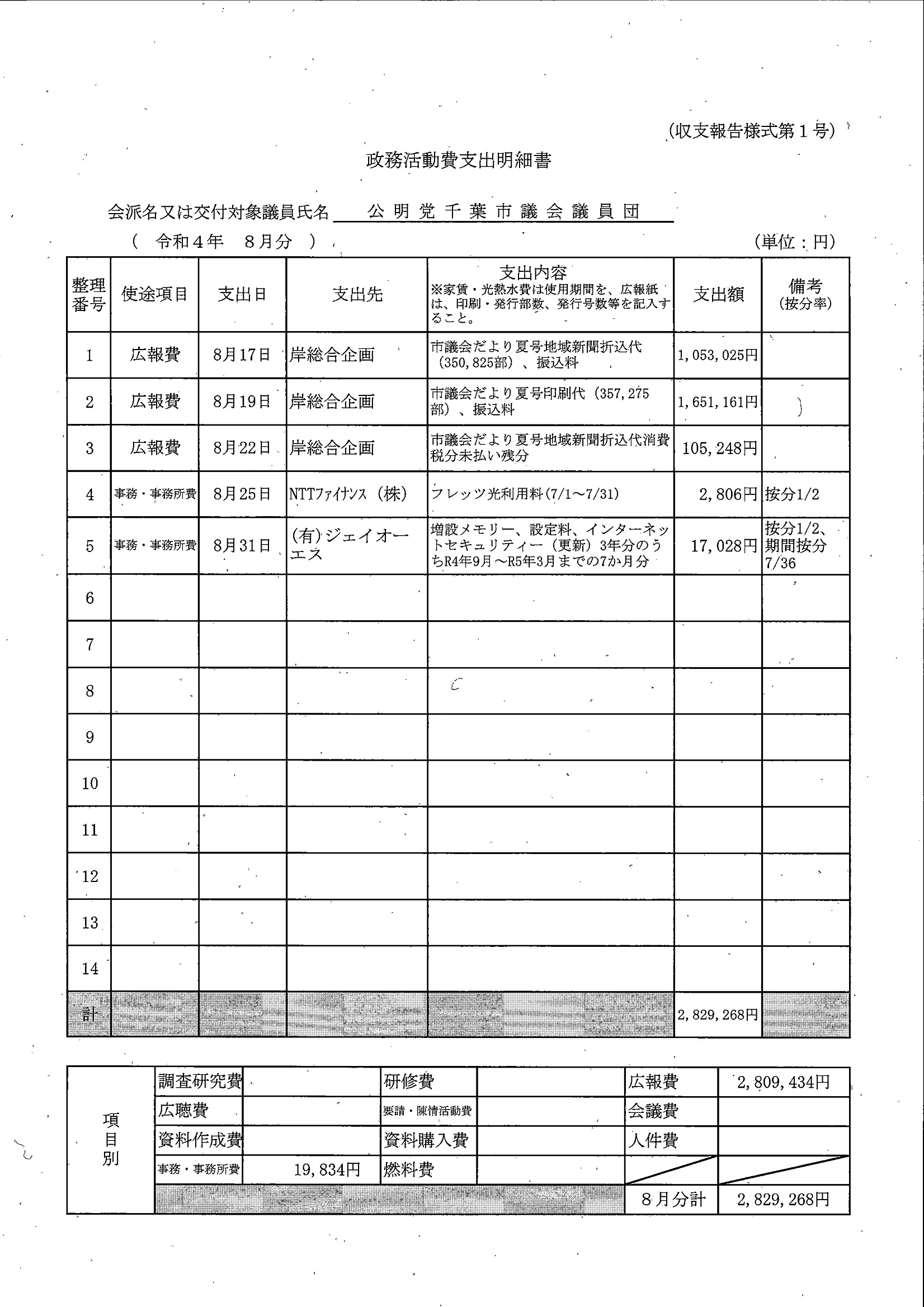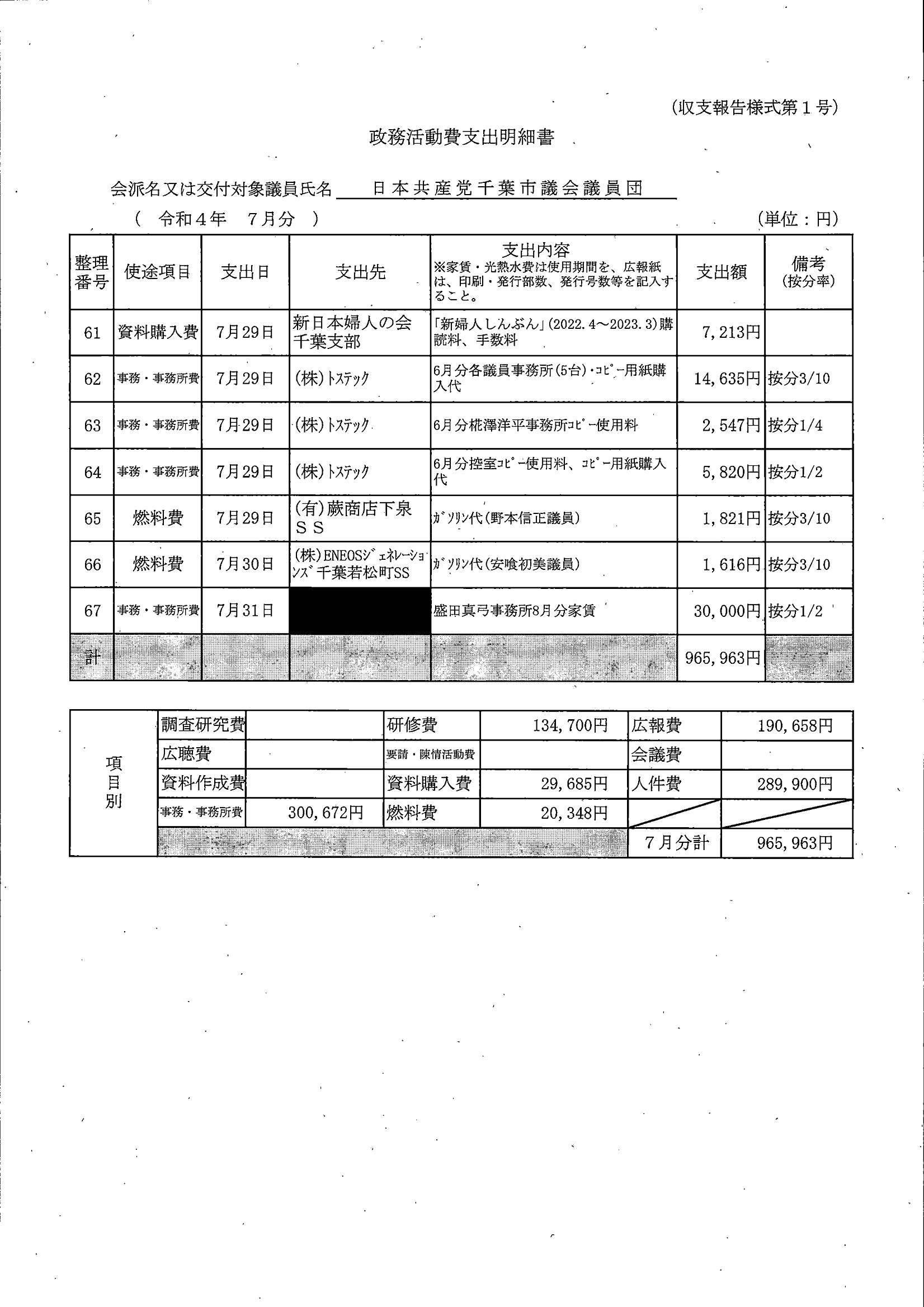 千葉市議会トップページ > 広報・情報公開 > 政務活動費 > 令和4年度交付分(政務活動費収支報告書)