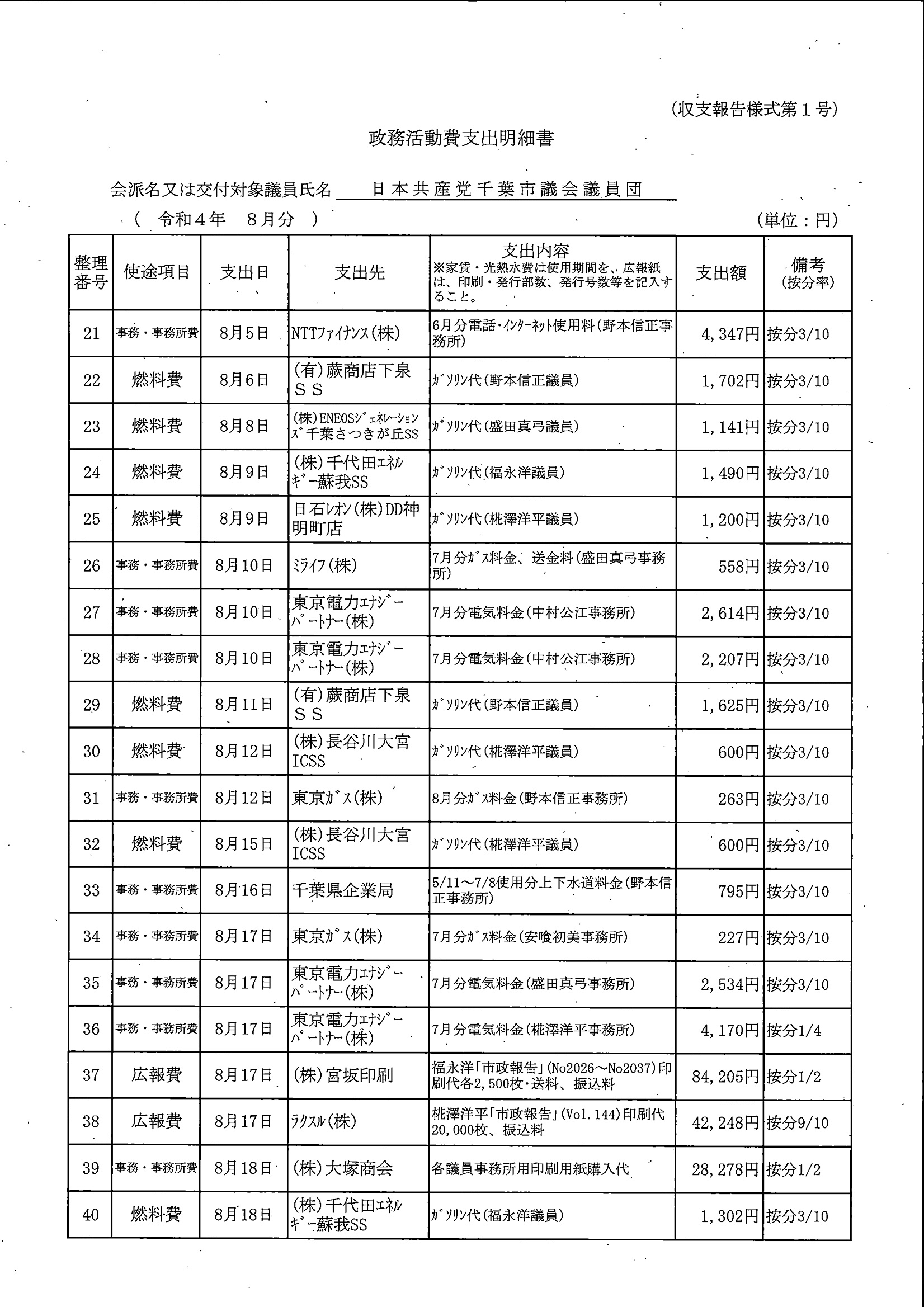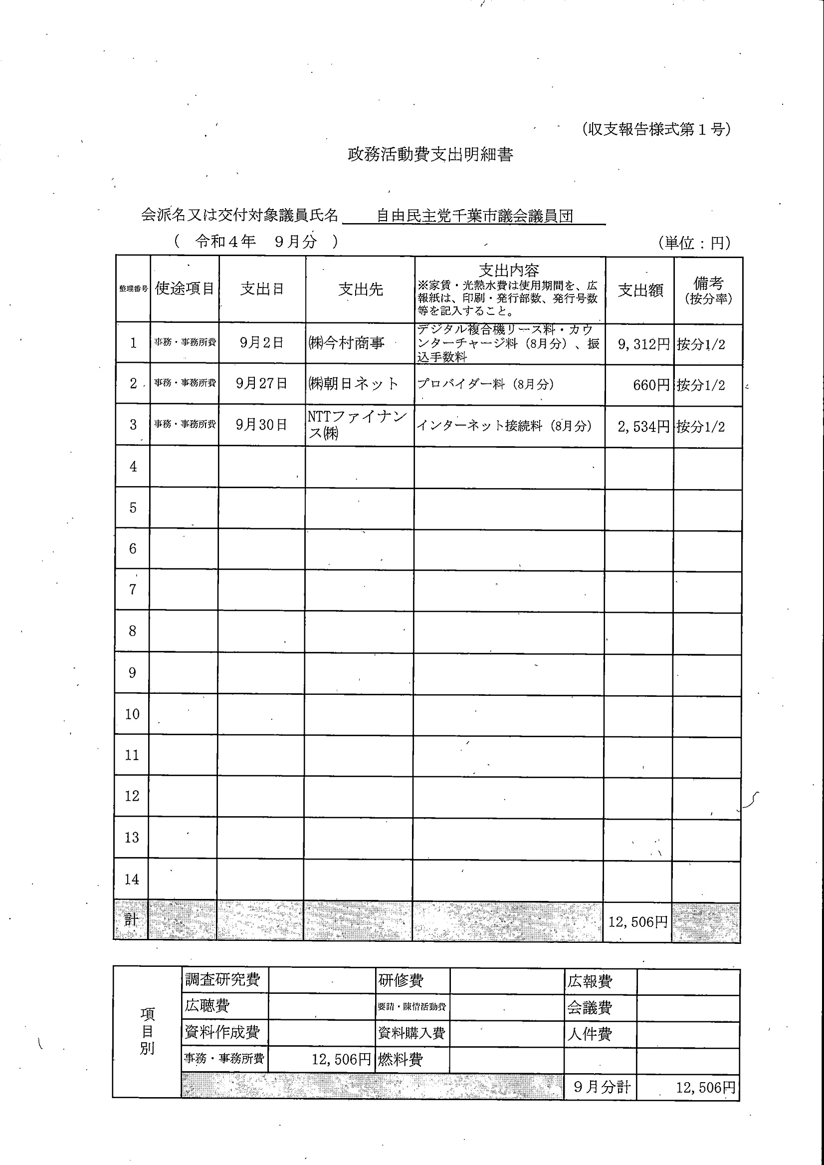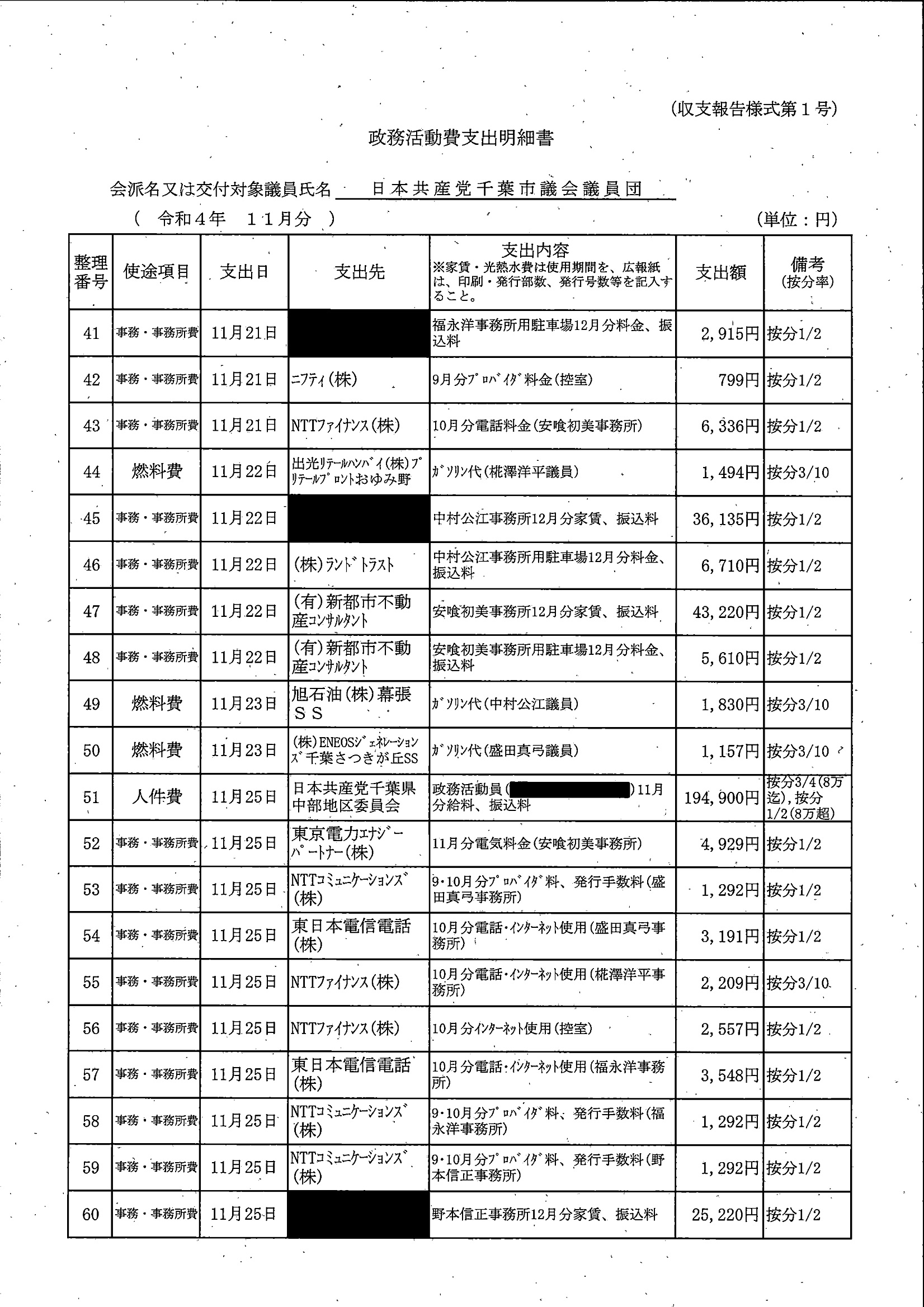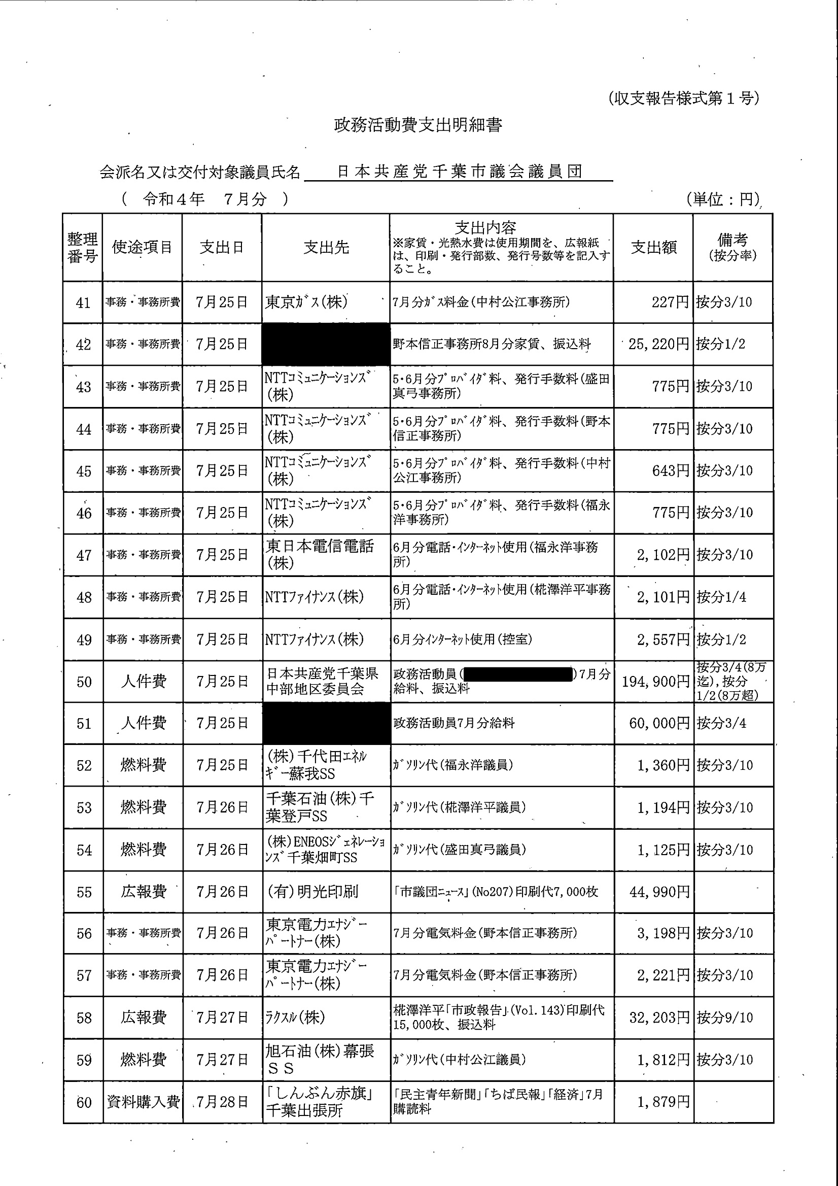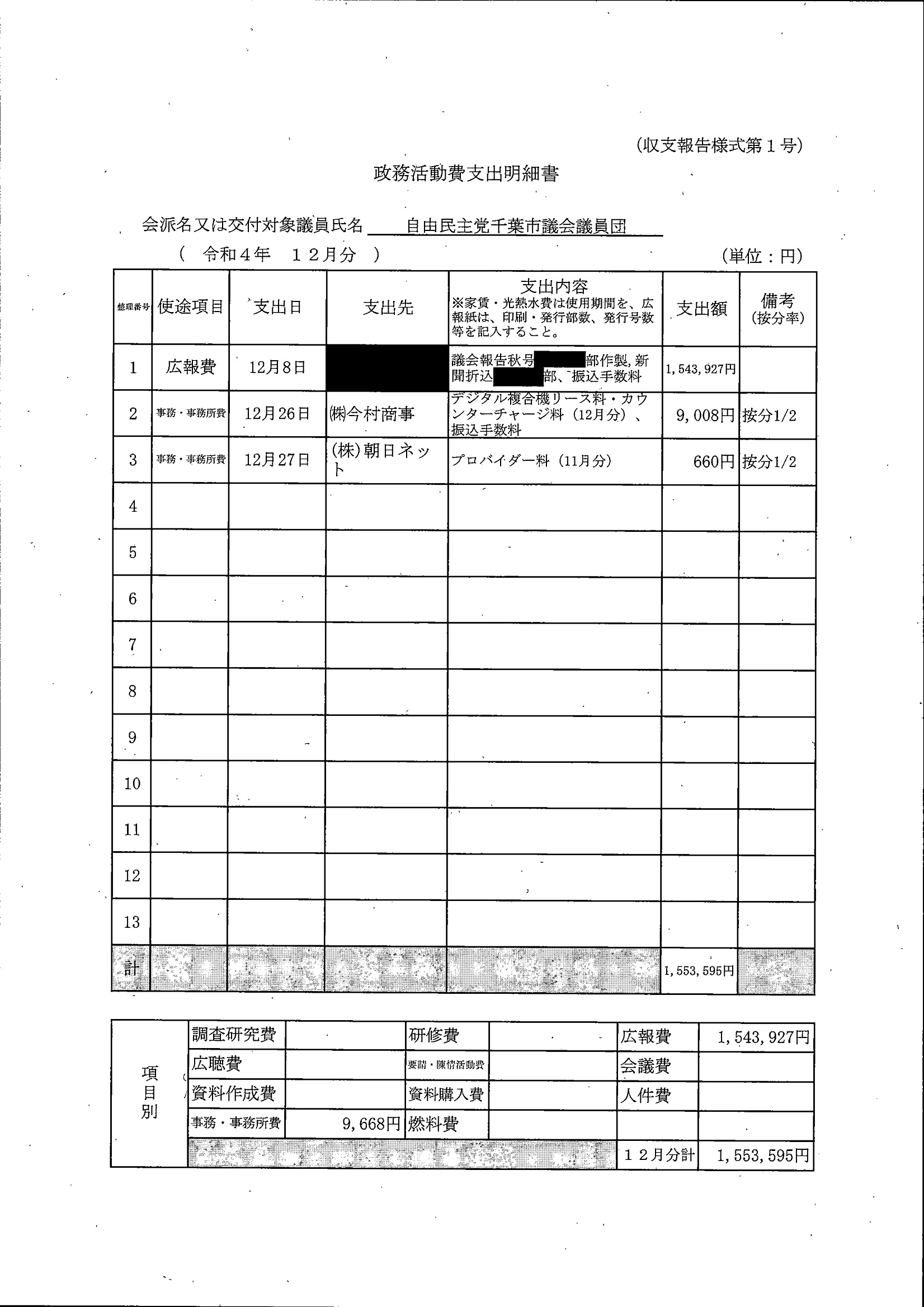 千葉市議会トップページ > 広報・情報公開 > 政務活動費 > 令和4年度交付分(政務活動費収支報告書)