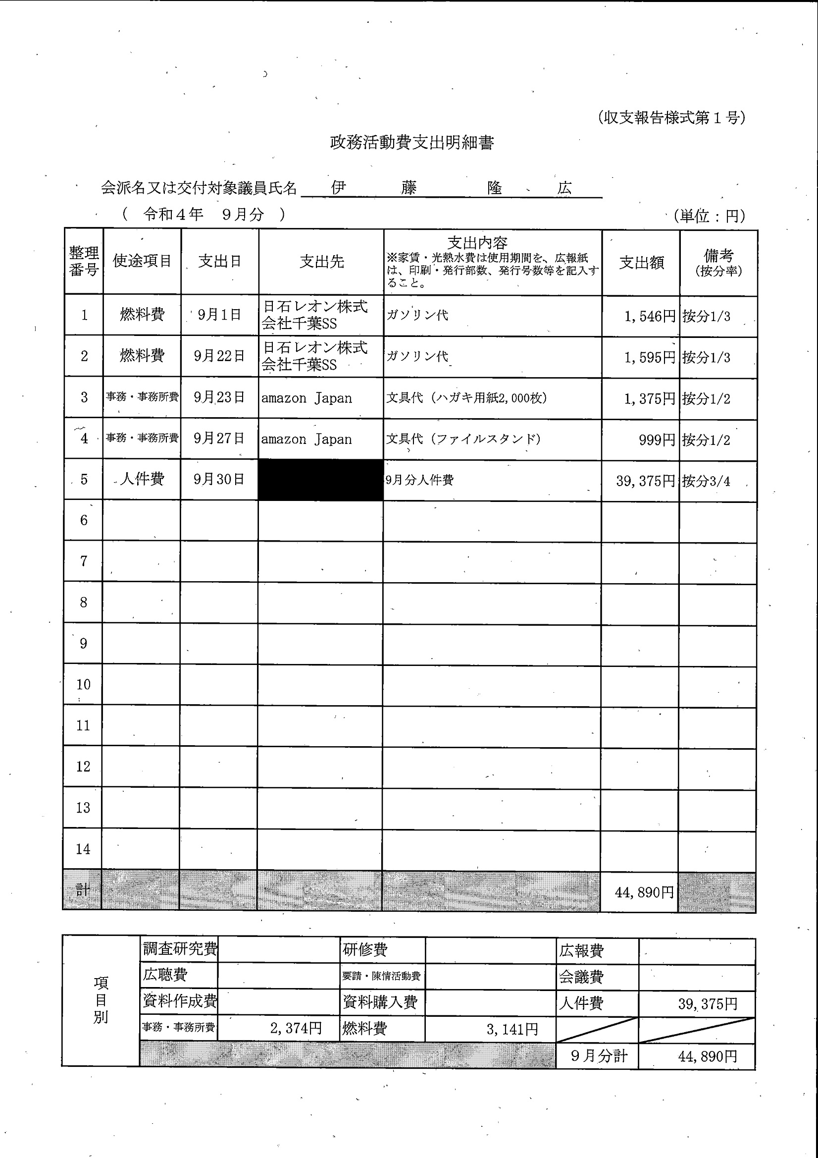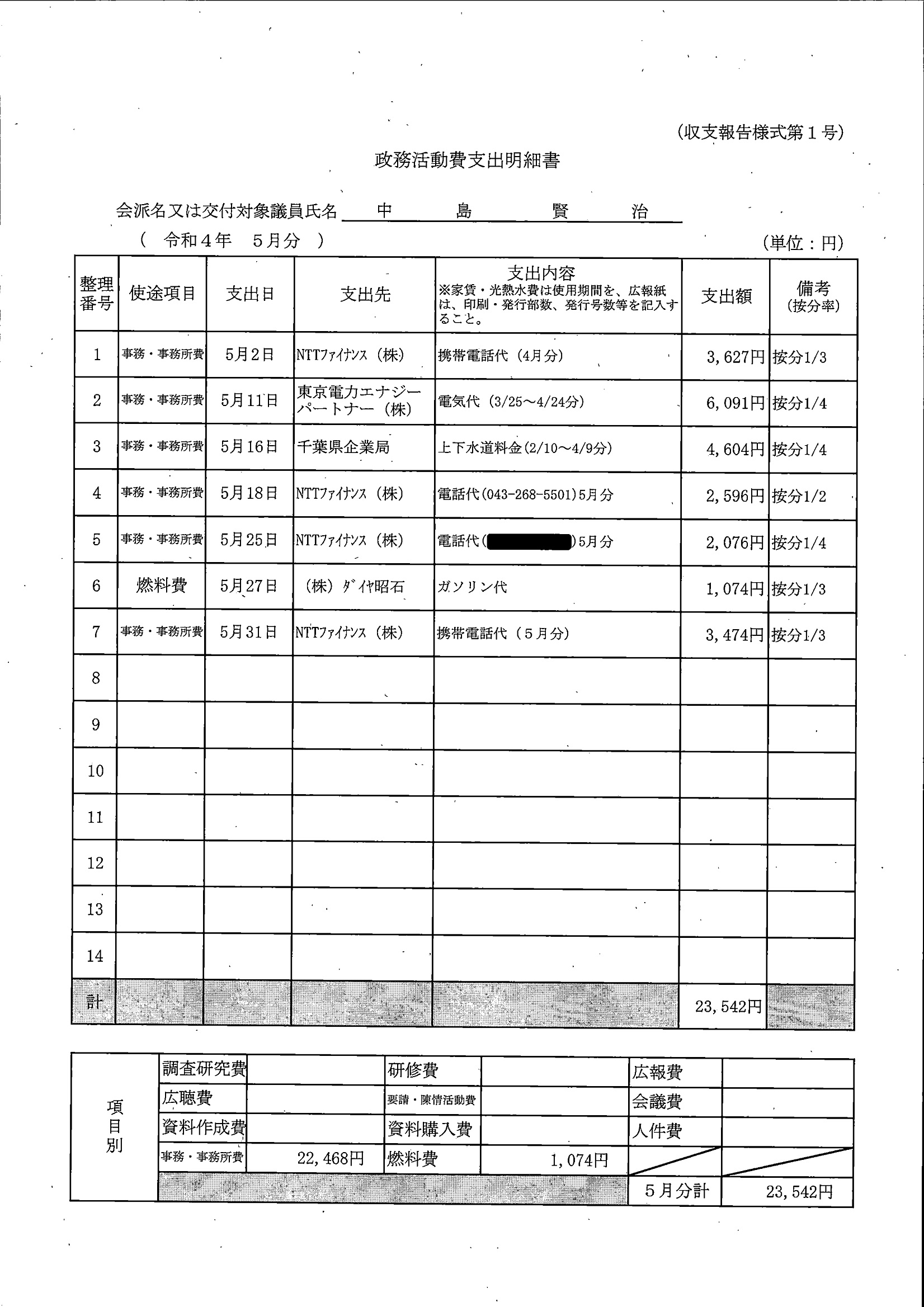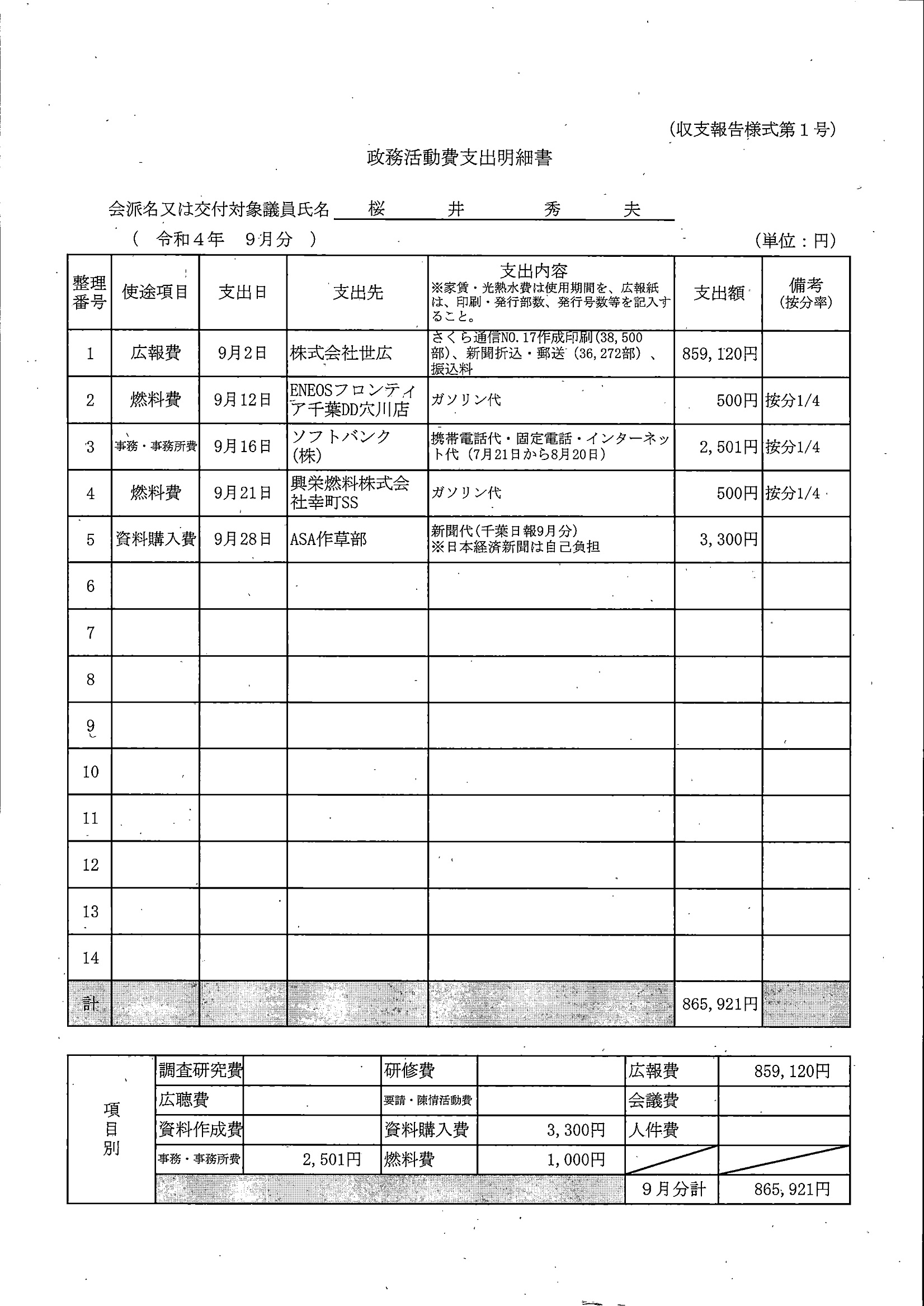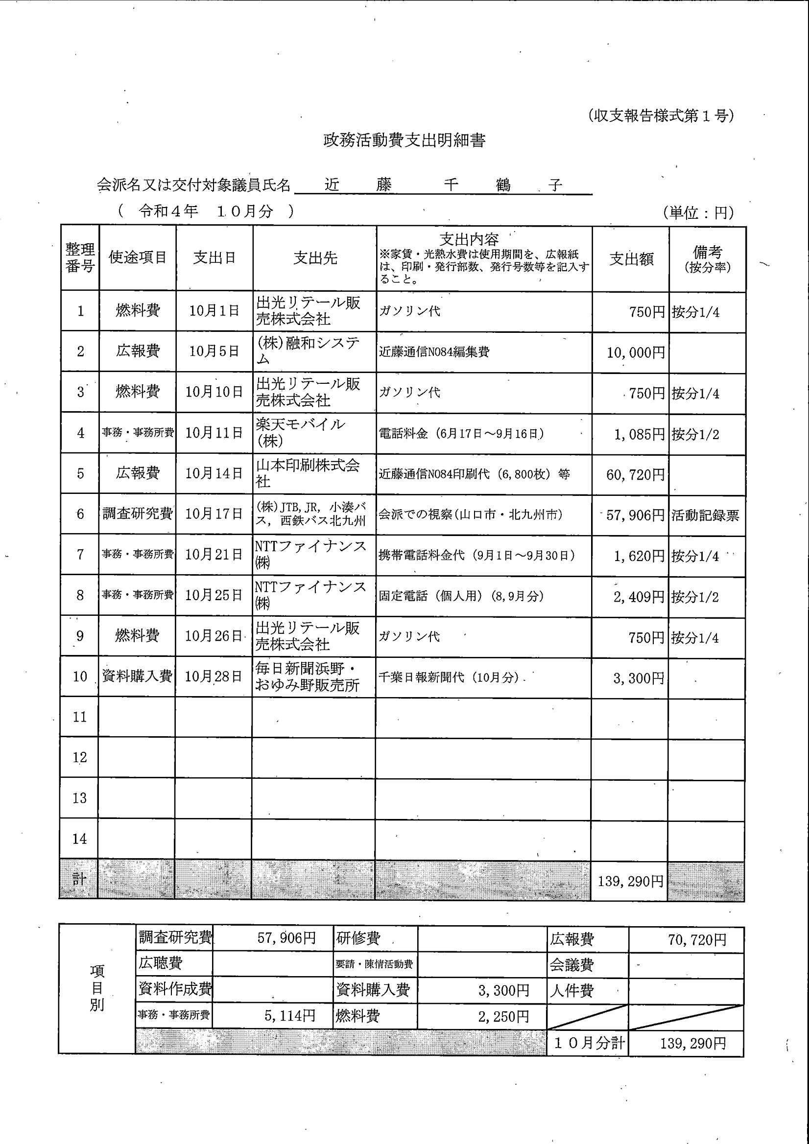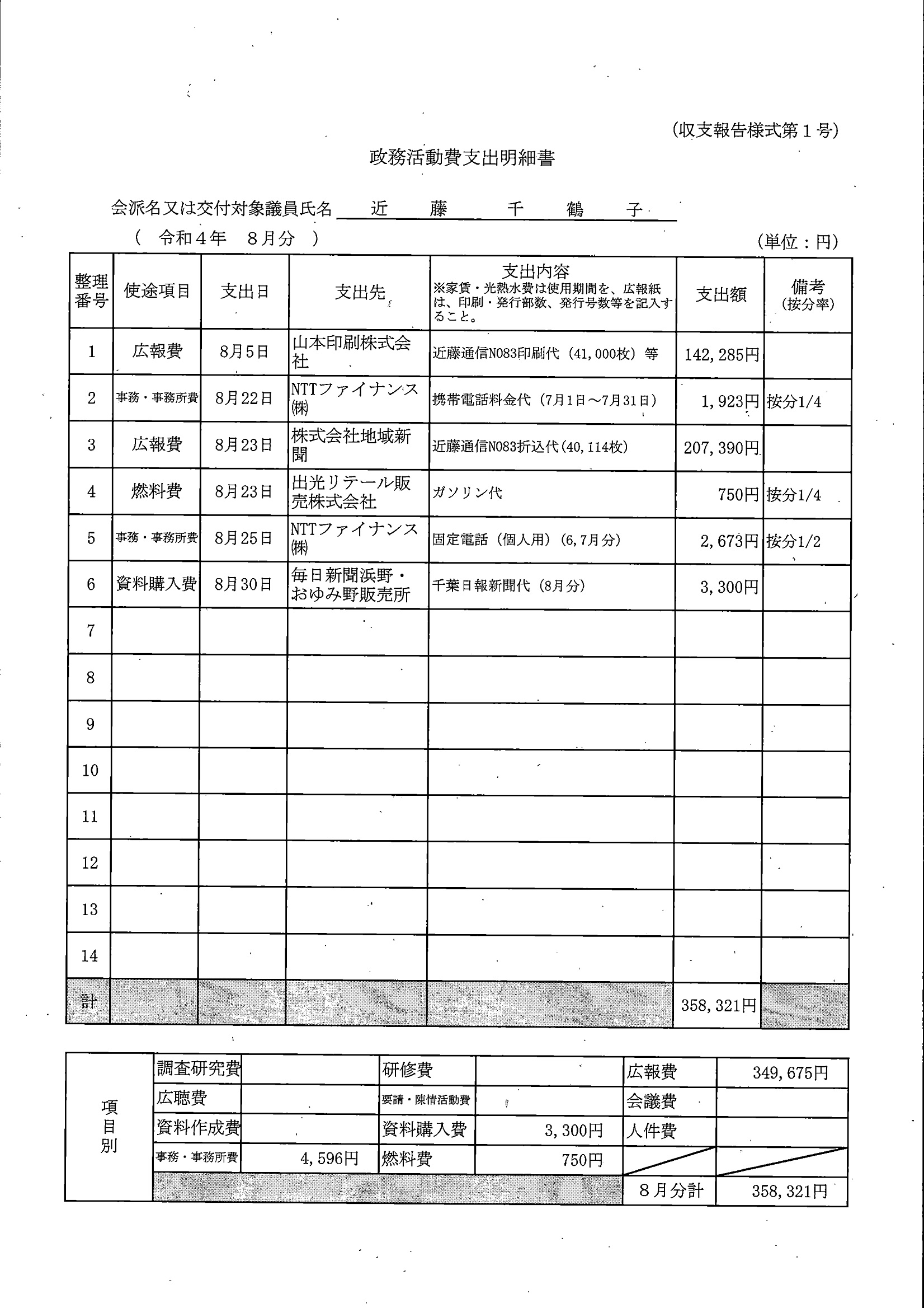 千葉市議会トップページ > 広報・情報公開 > 政務活動費 > 令和4年度交付分(政務活動費収支報告書)